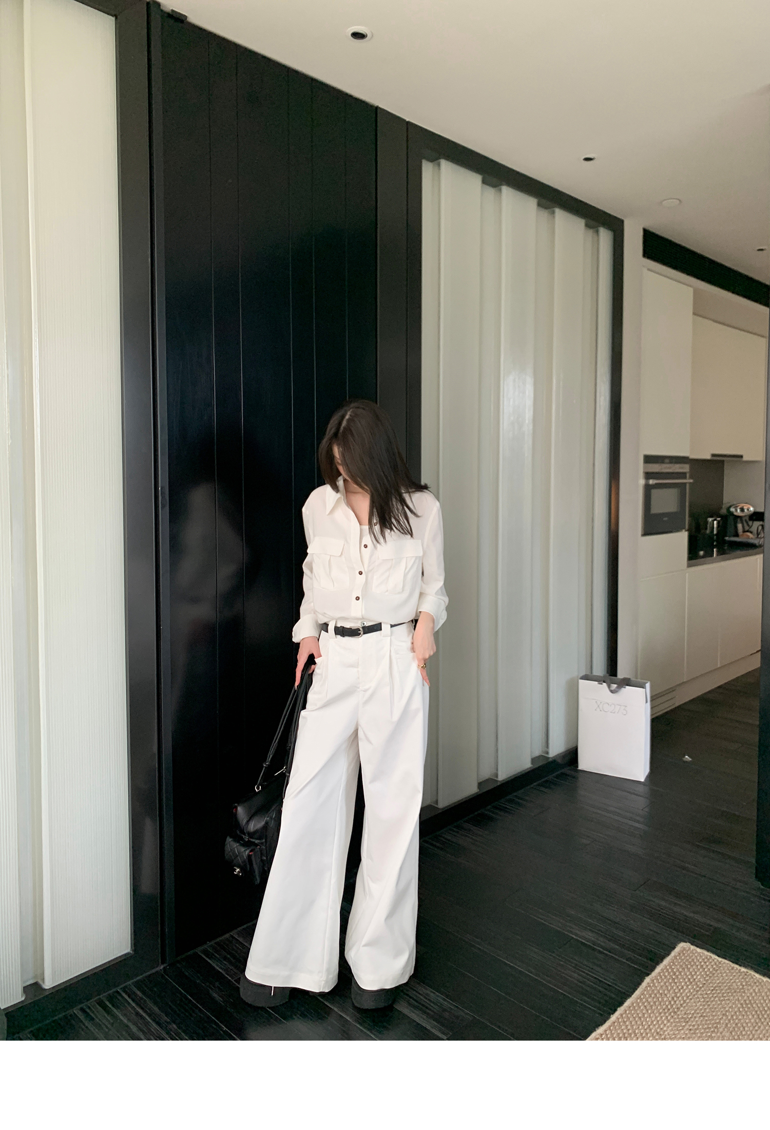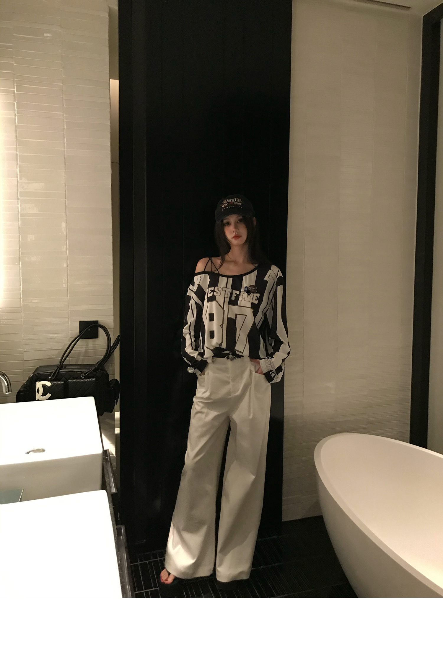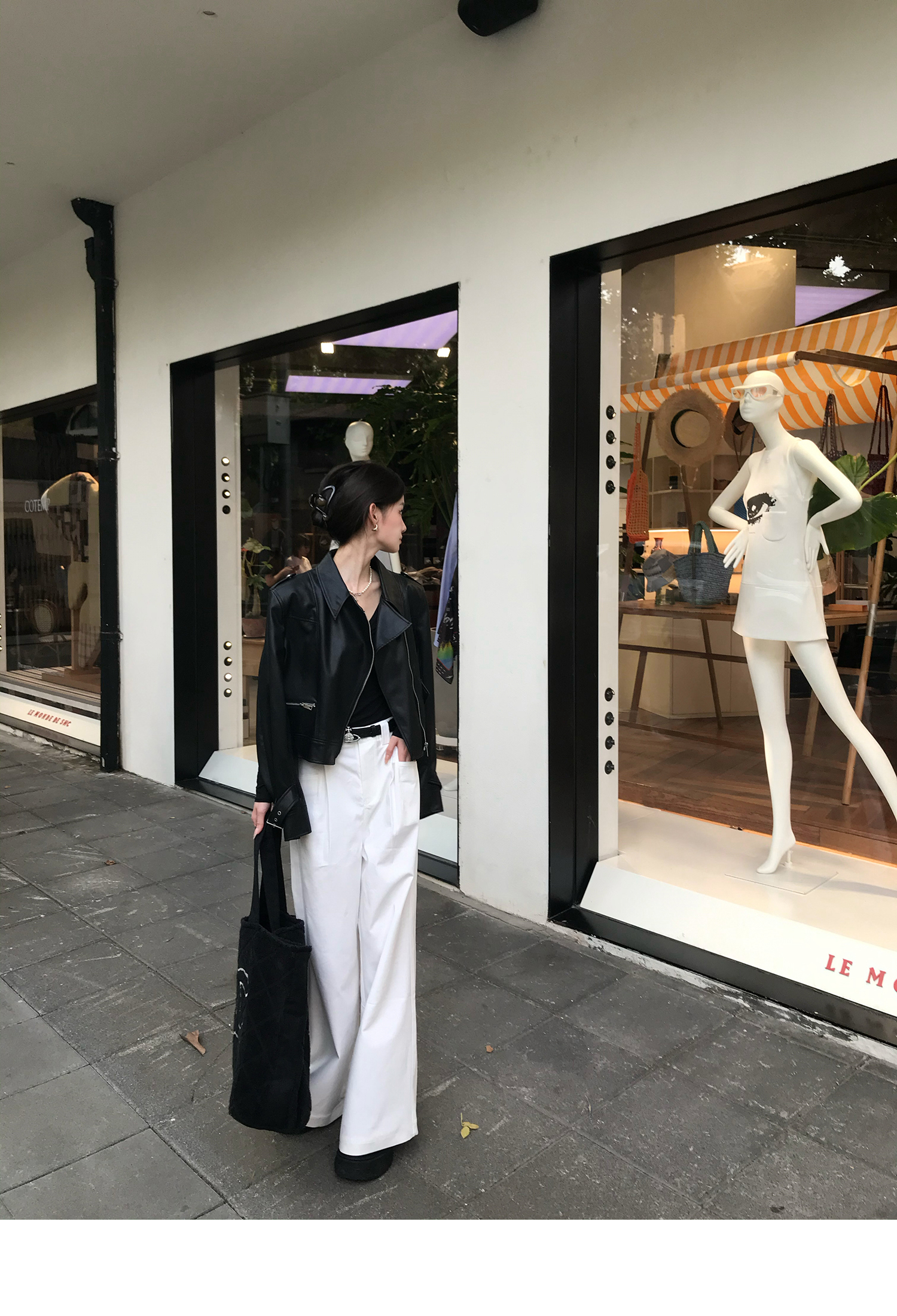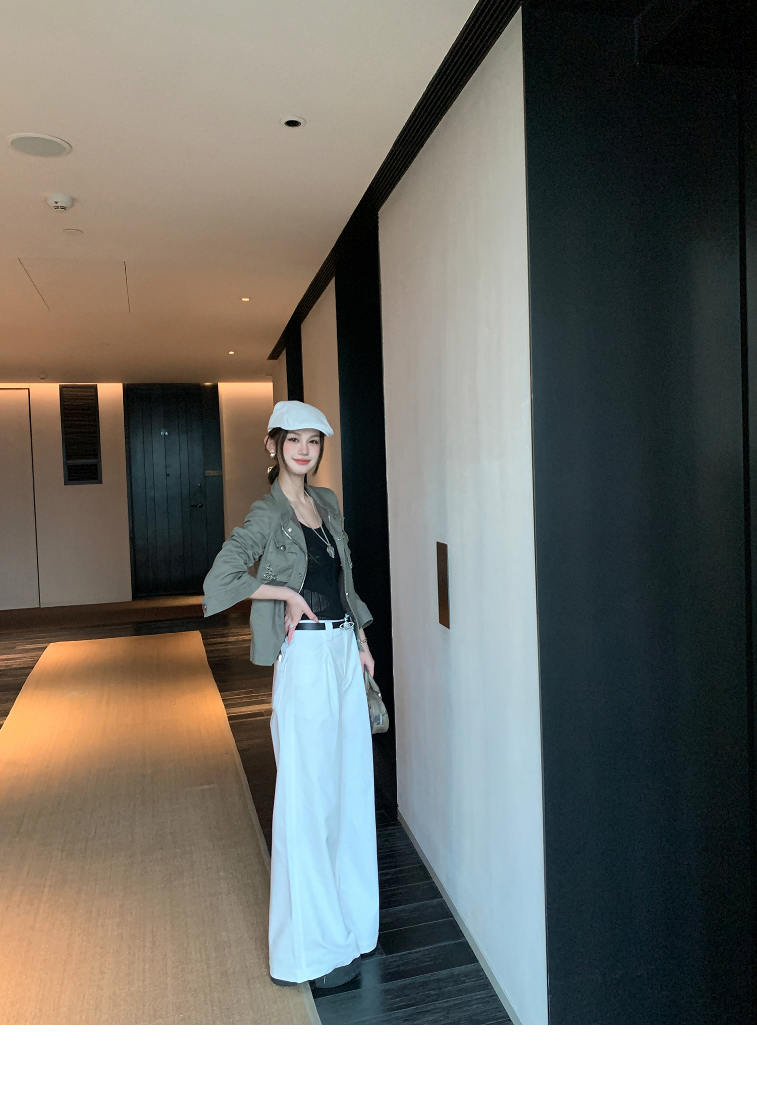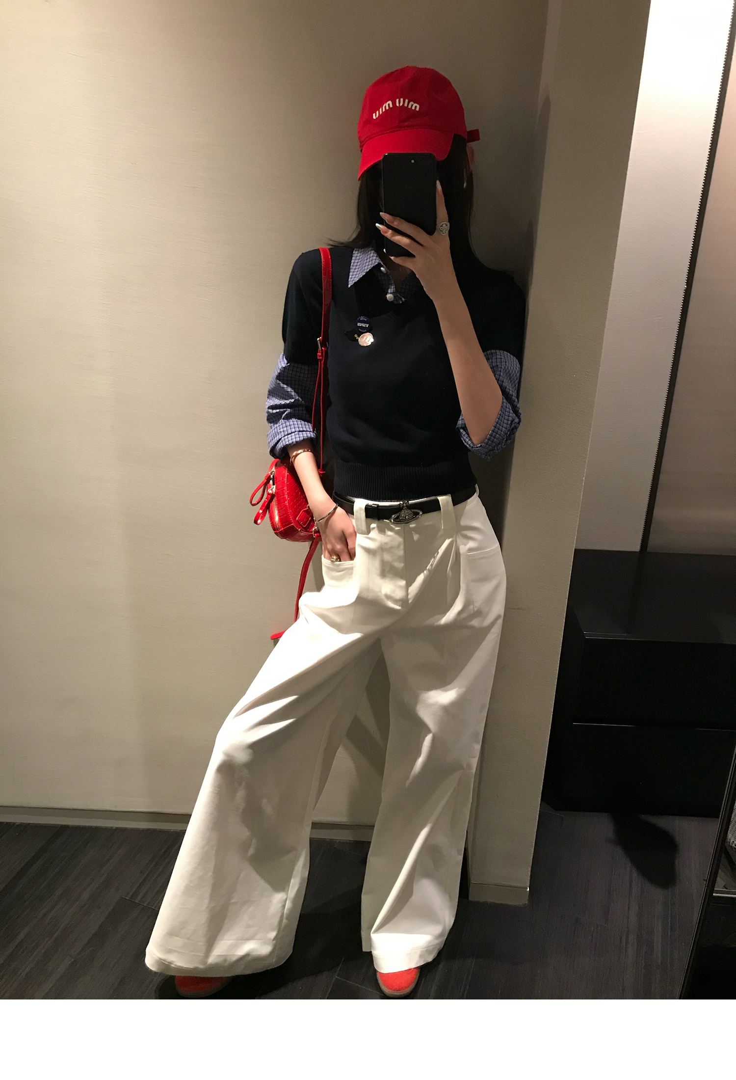 [Classic Wear] White Casual Pants - Drapey Retro Wide-Leg Style