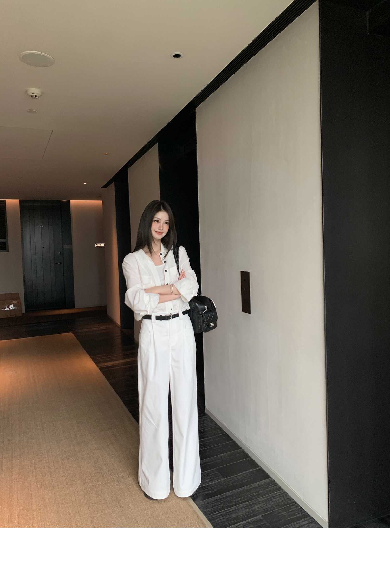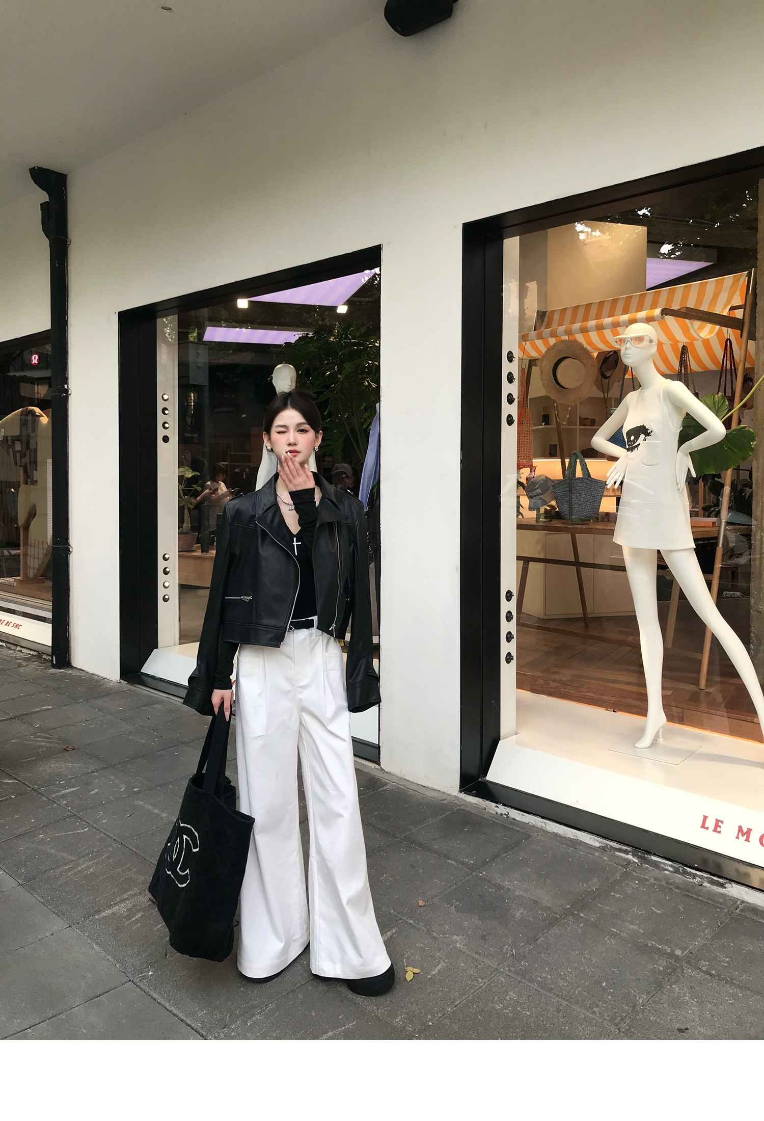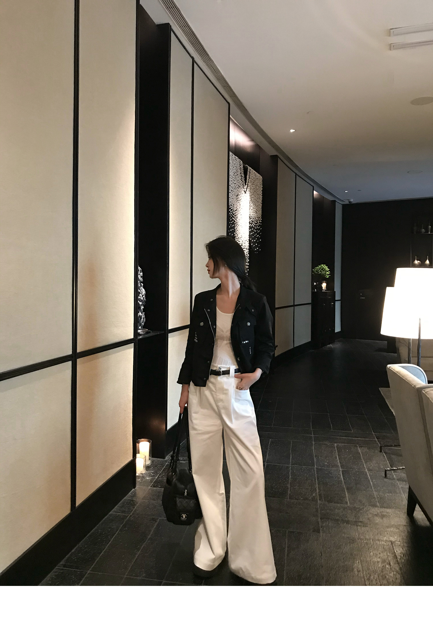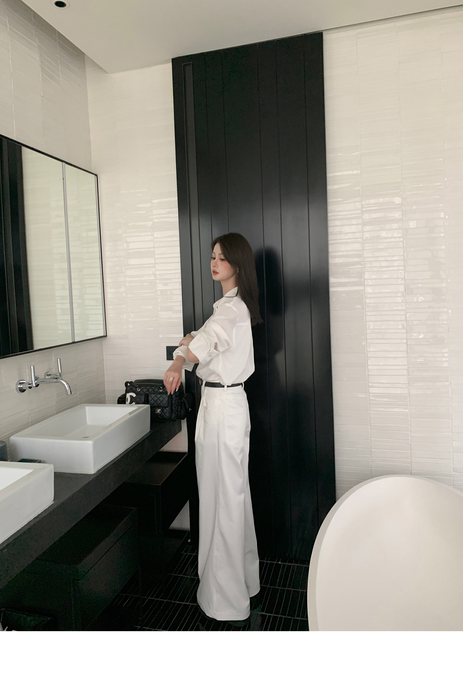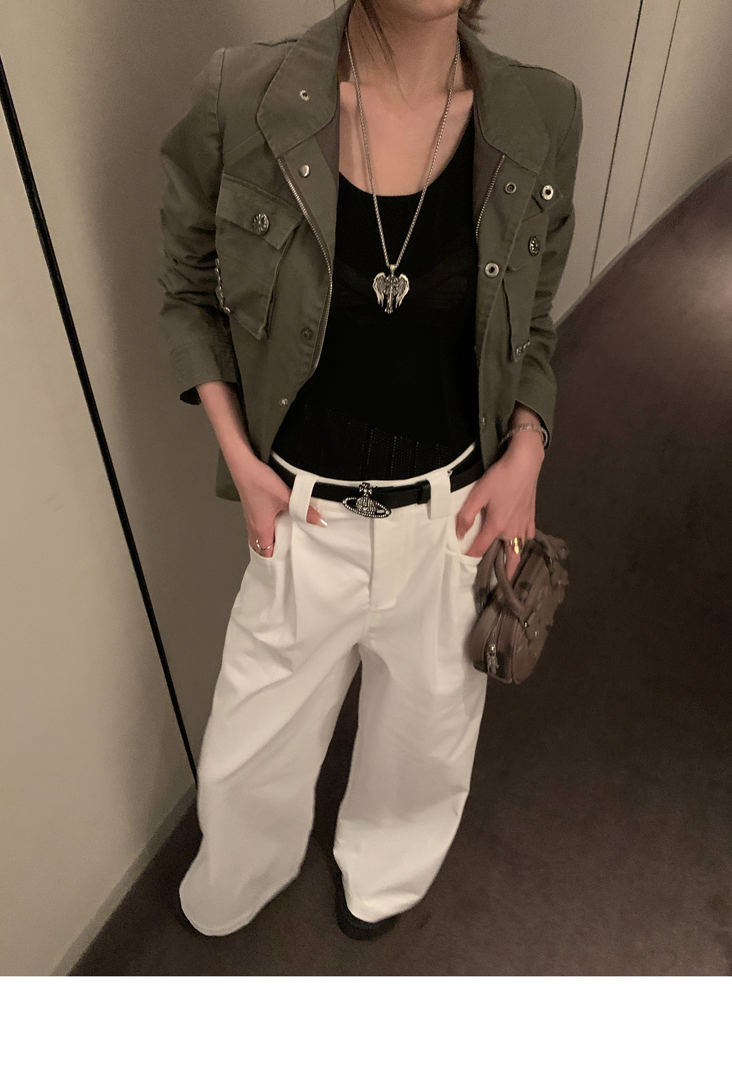 [Classic Wear] White Casual Pants - Drapey Retro Wide-Leg Style