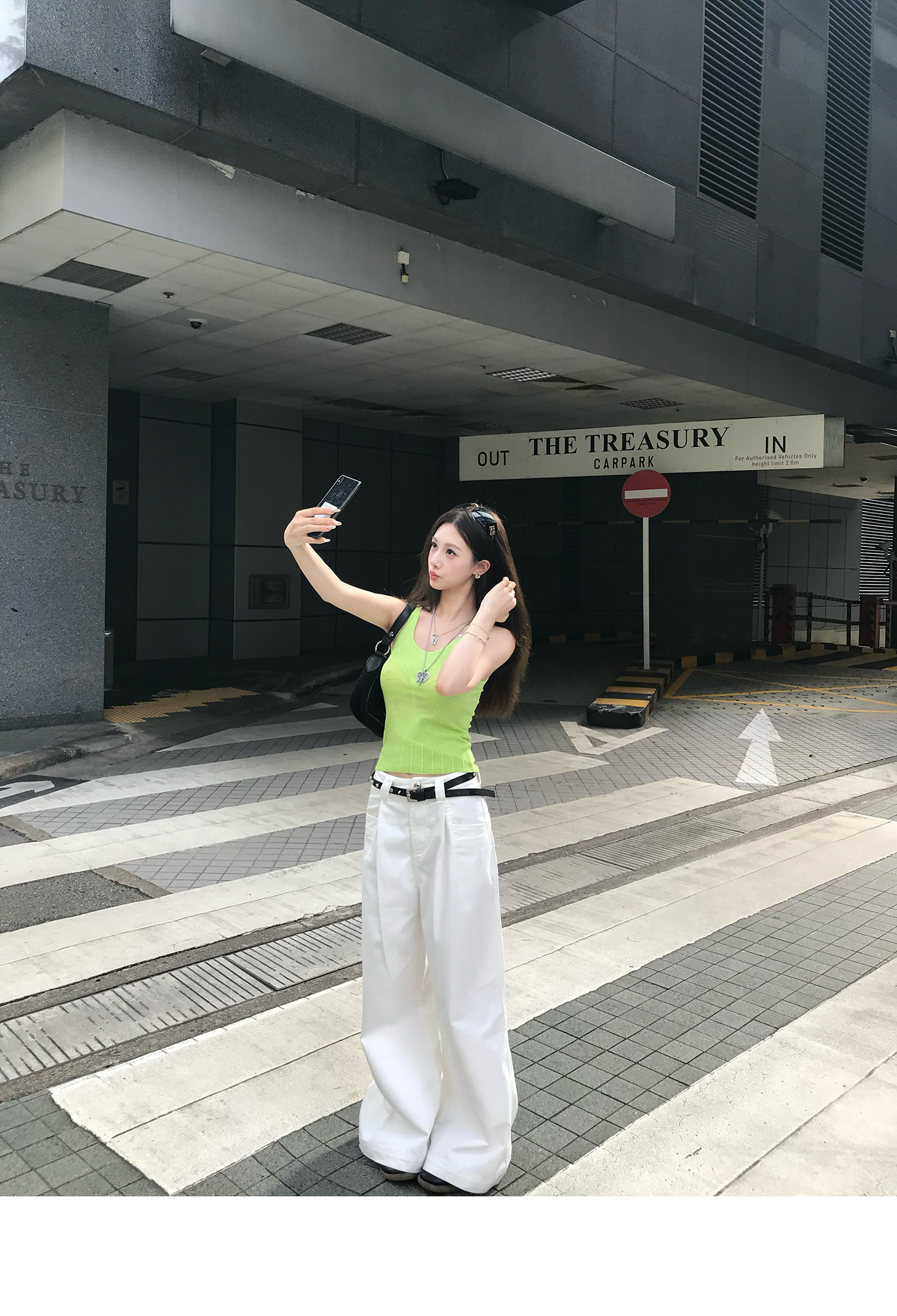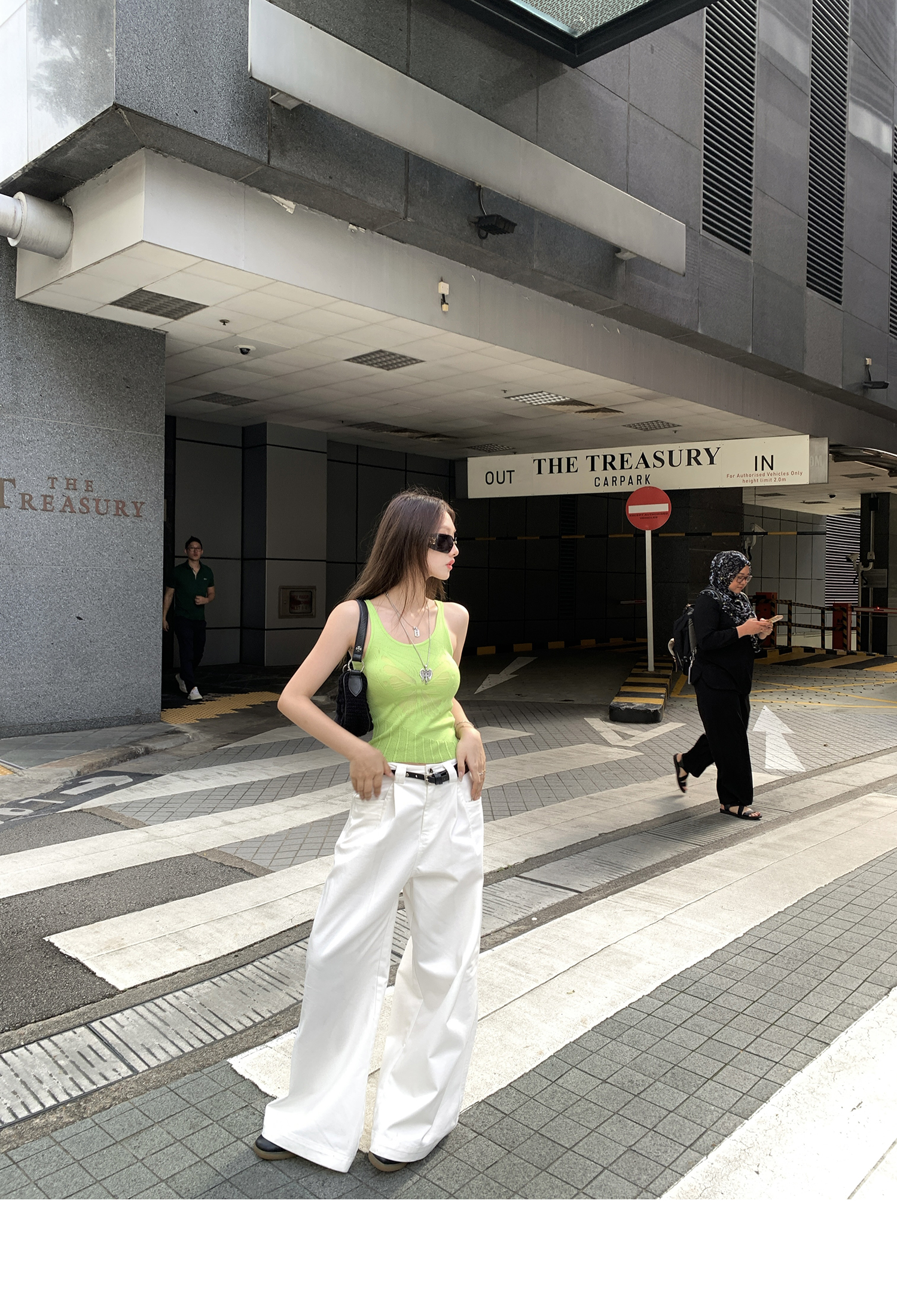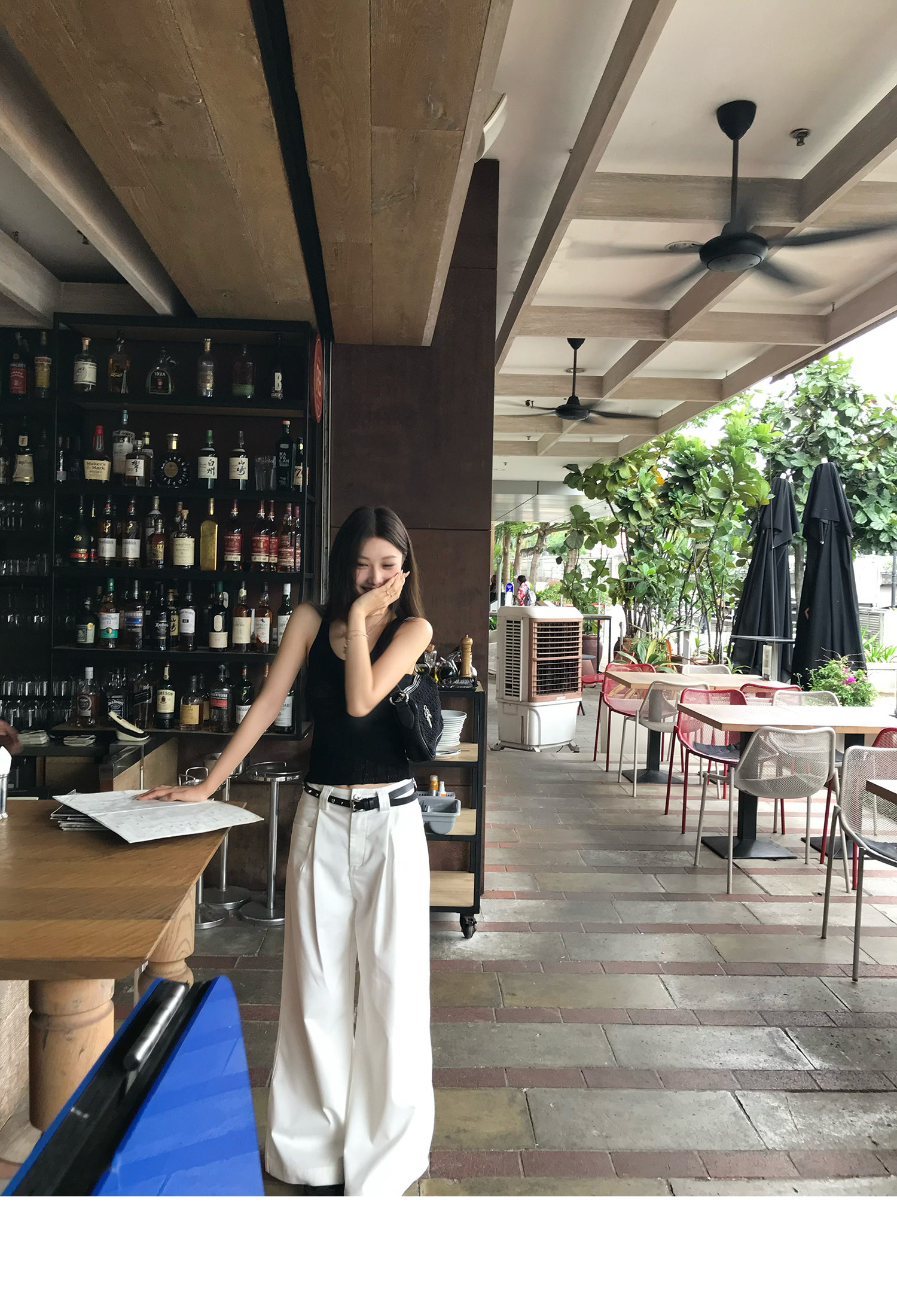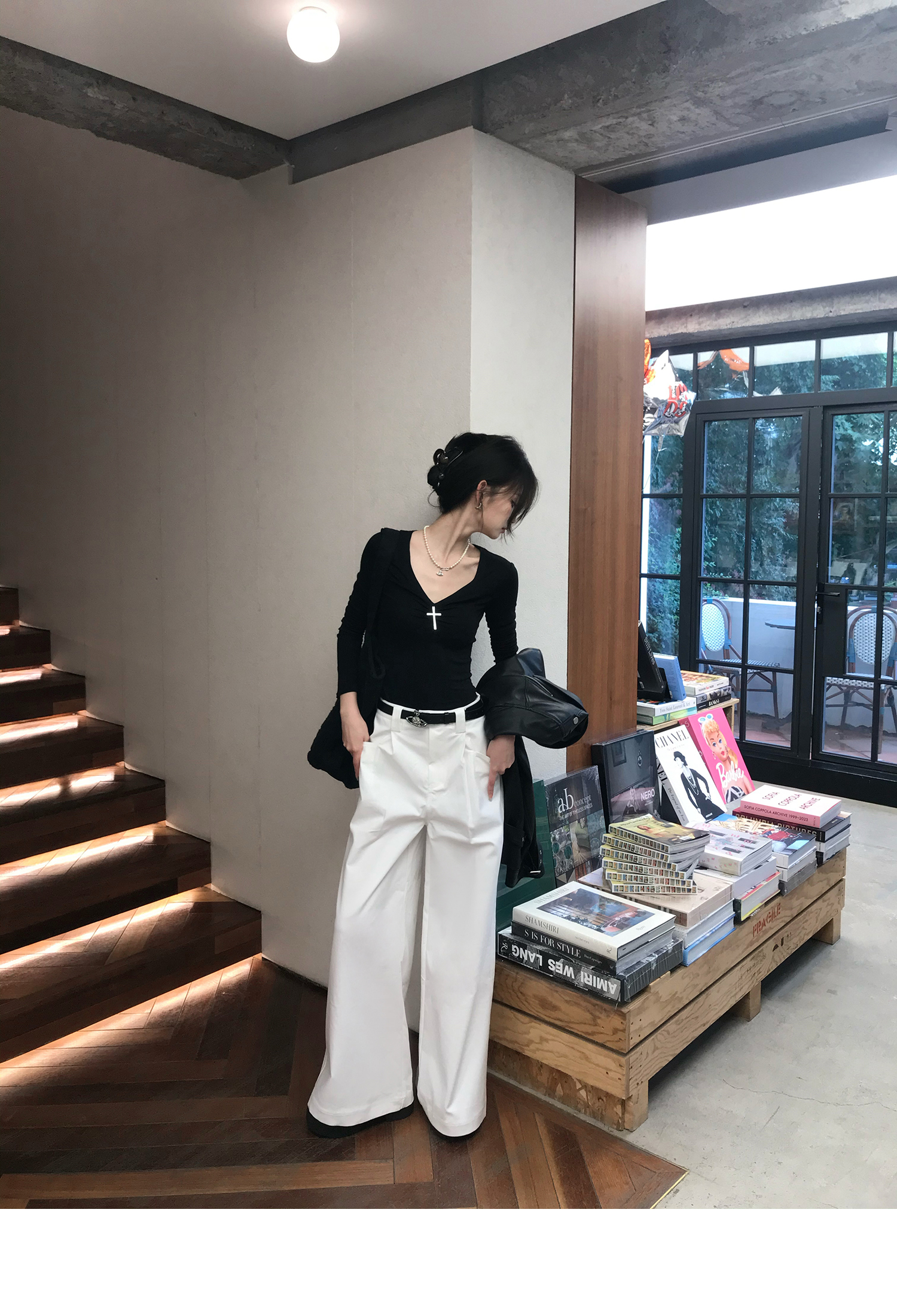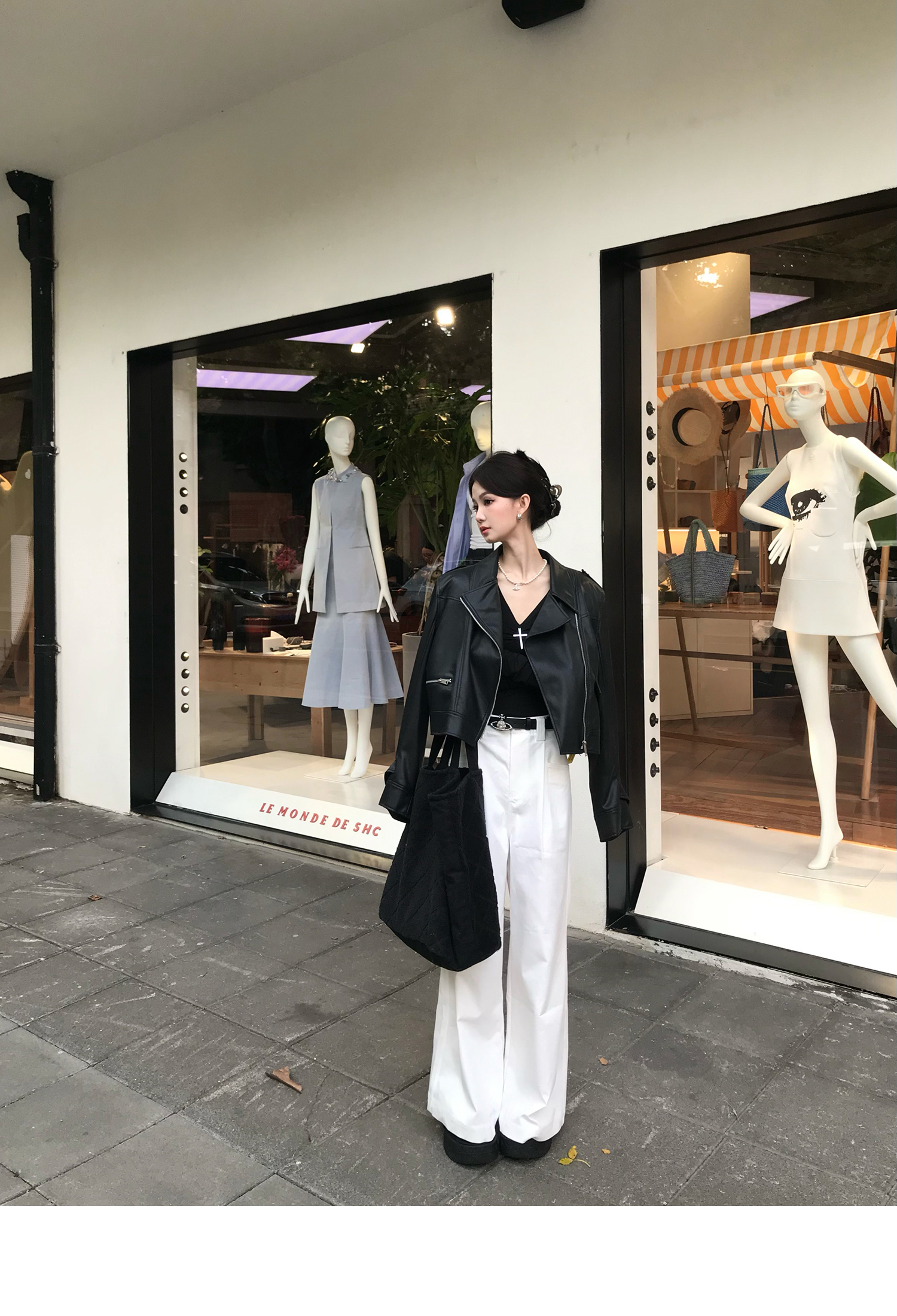 [Classic Wear] White Casual Pants - Drapey Retro Wide-Leg Style