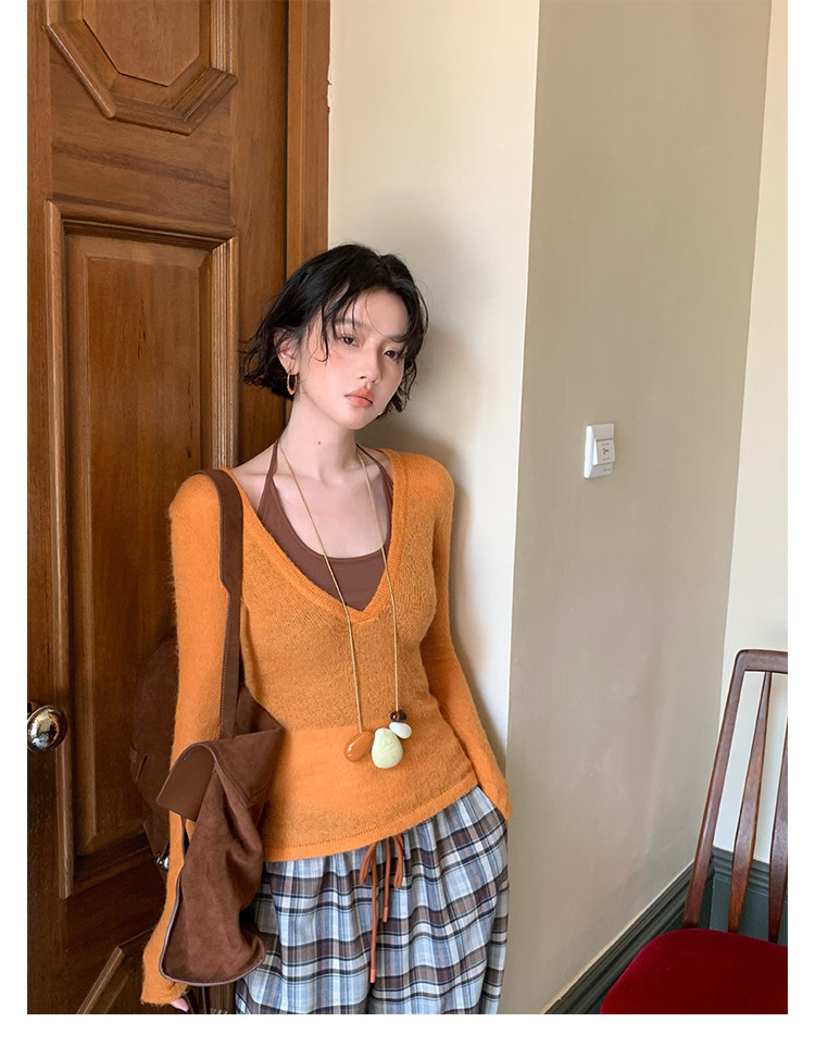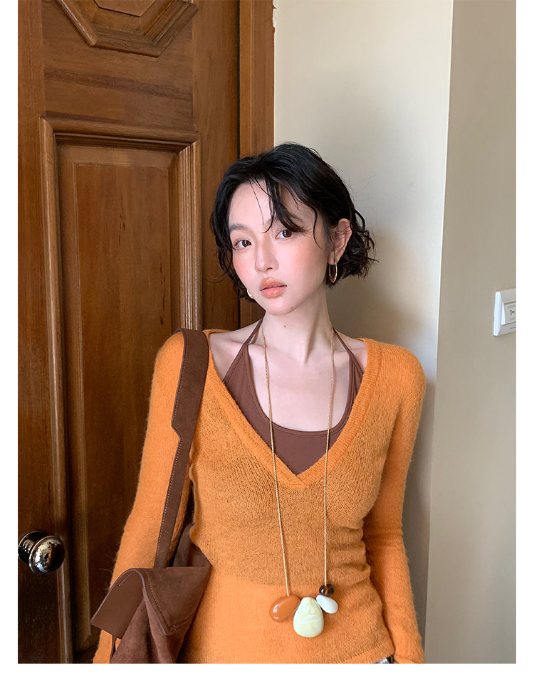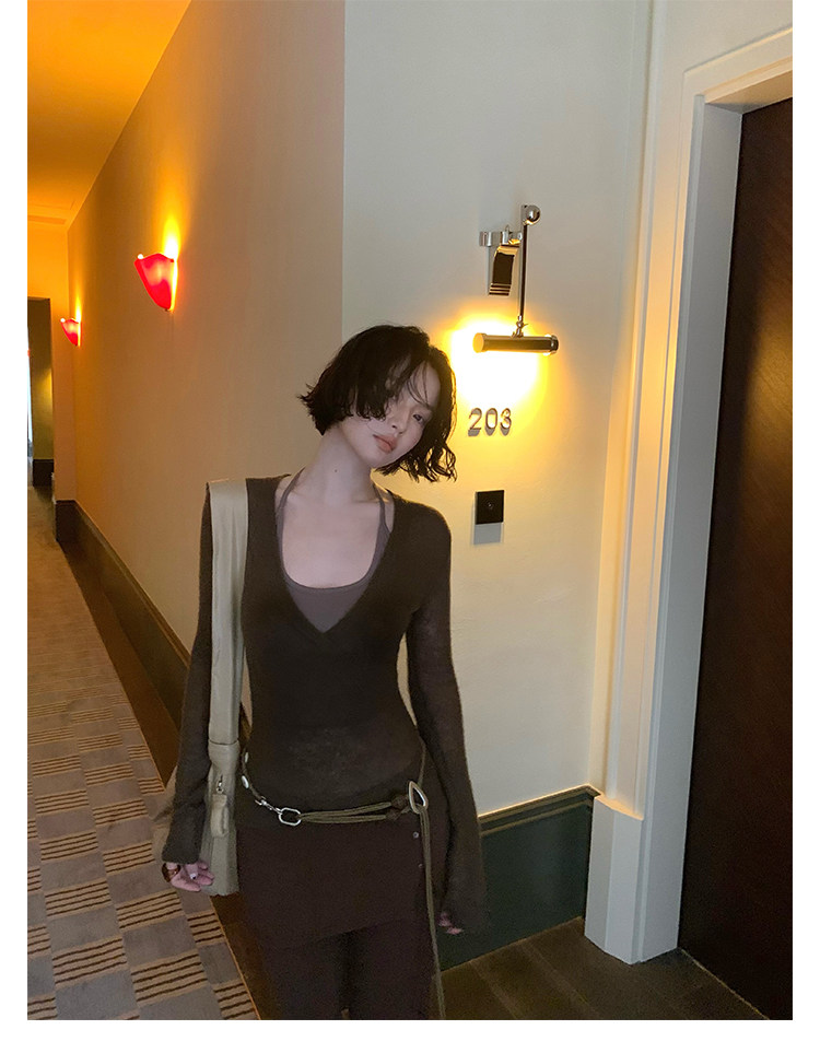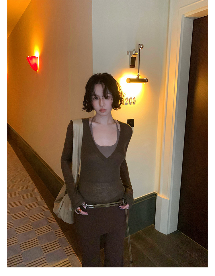 Rouzhiyin Knit Cover-Up & Halter Camisole Two-Piece Set – Hong Kong Retro Autumn
