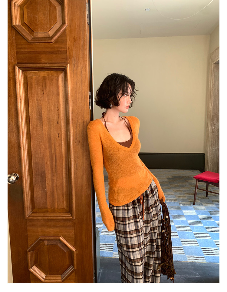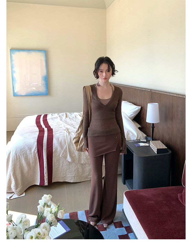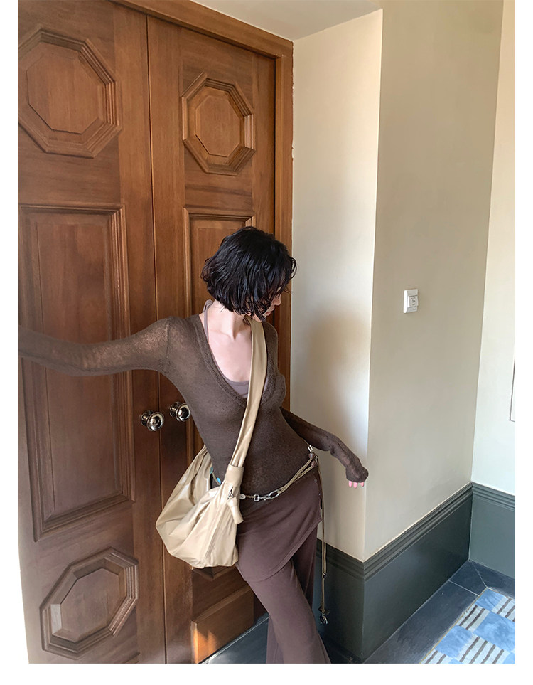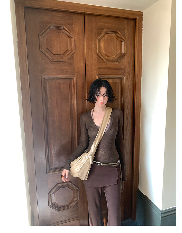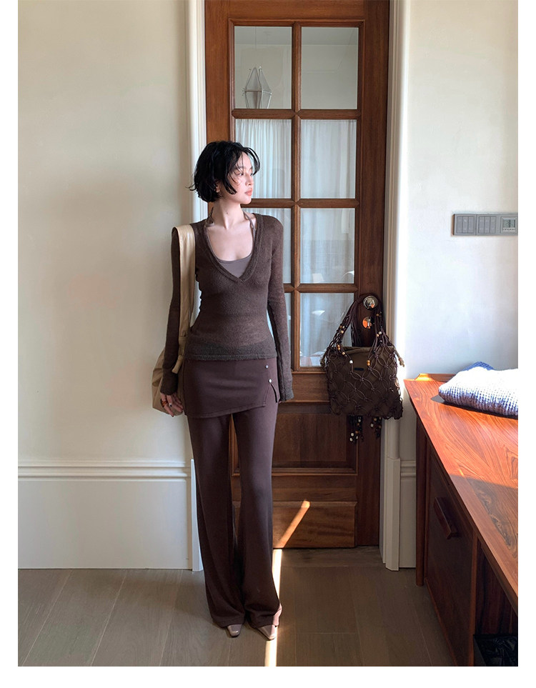 Rouzhiyin Knit Cover-Up & Halter Camisole Two-Piece Set – Hong Kong Retro Autumn