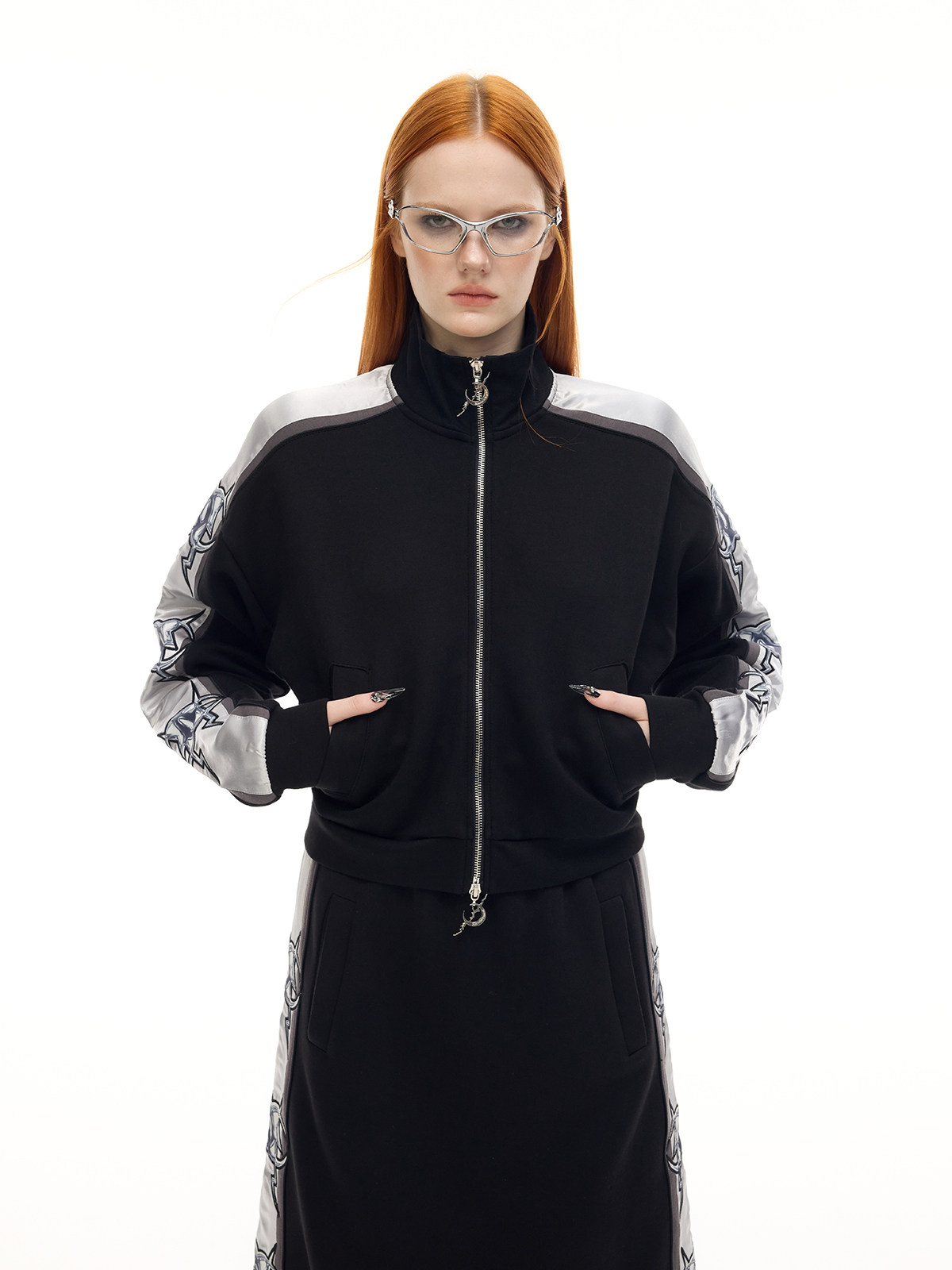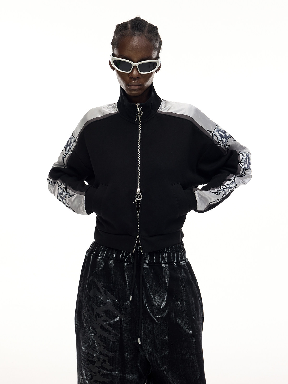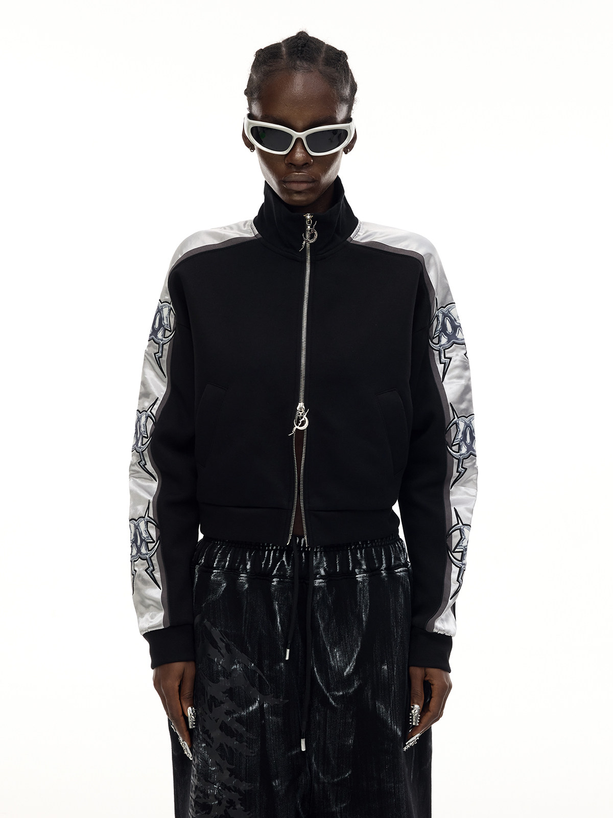 Electric Moon Mirror High-Neck Sporty Y2K Cropped Jacket