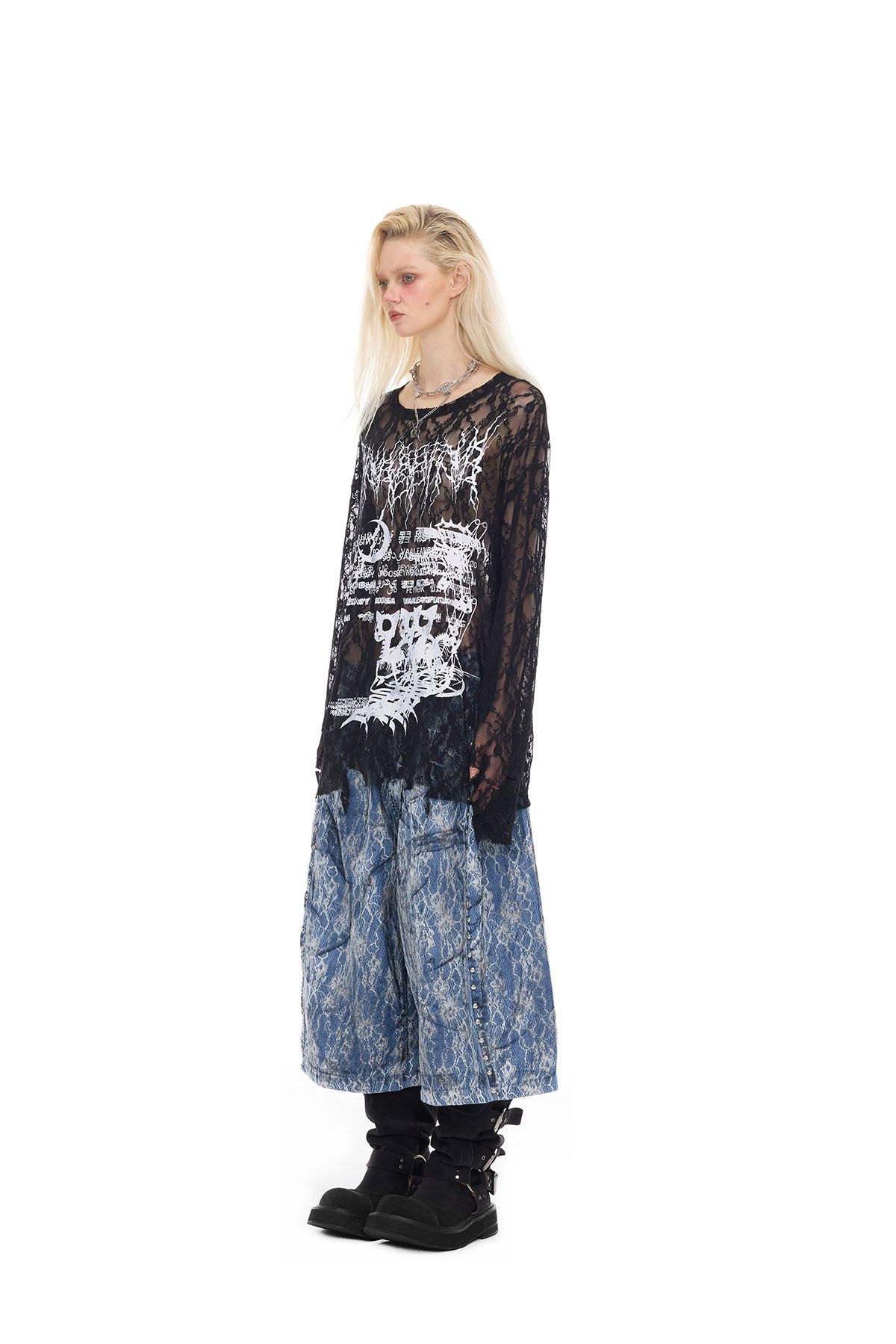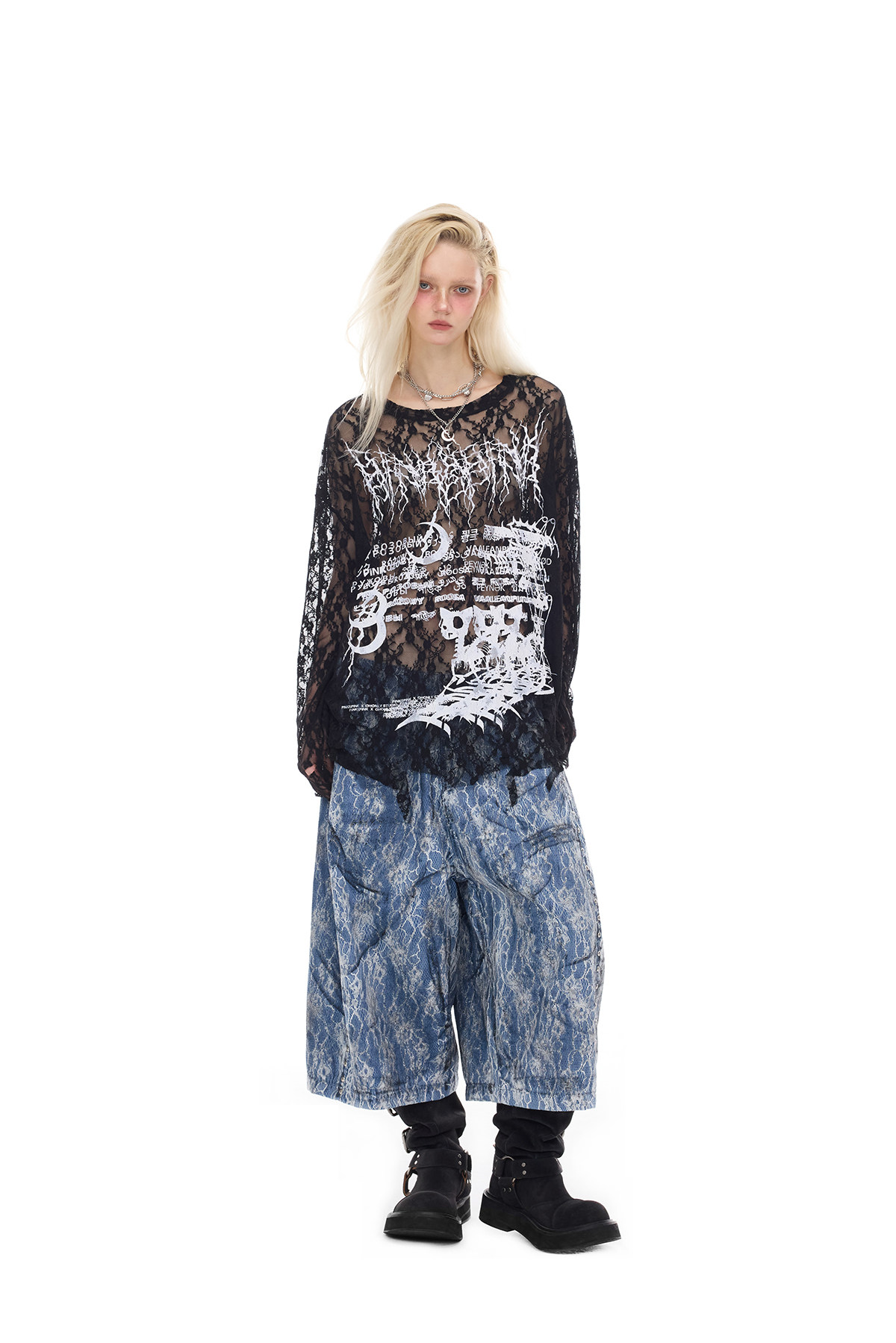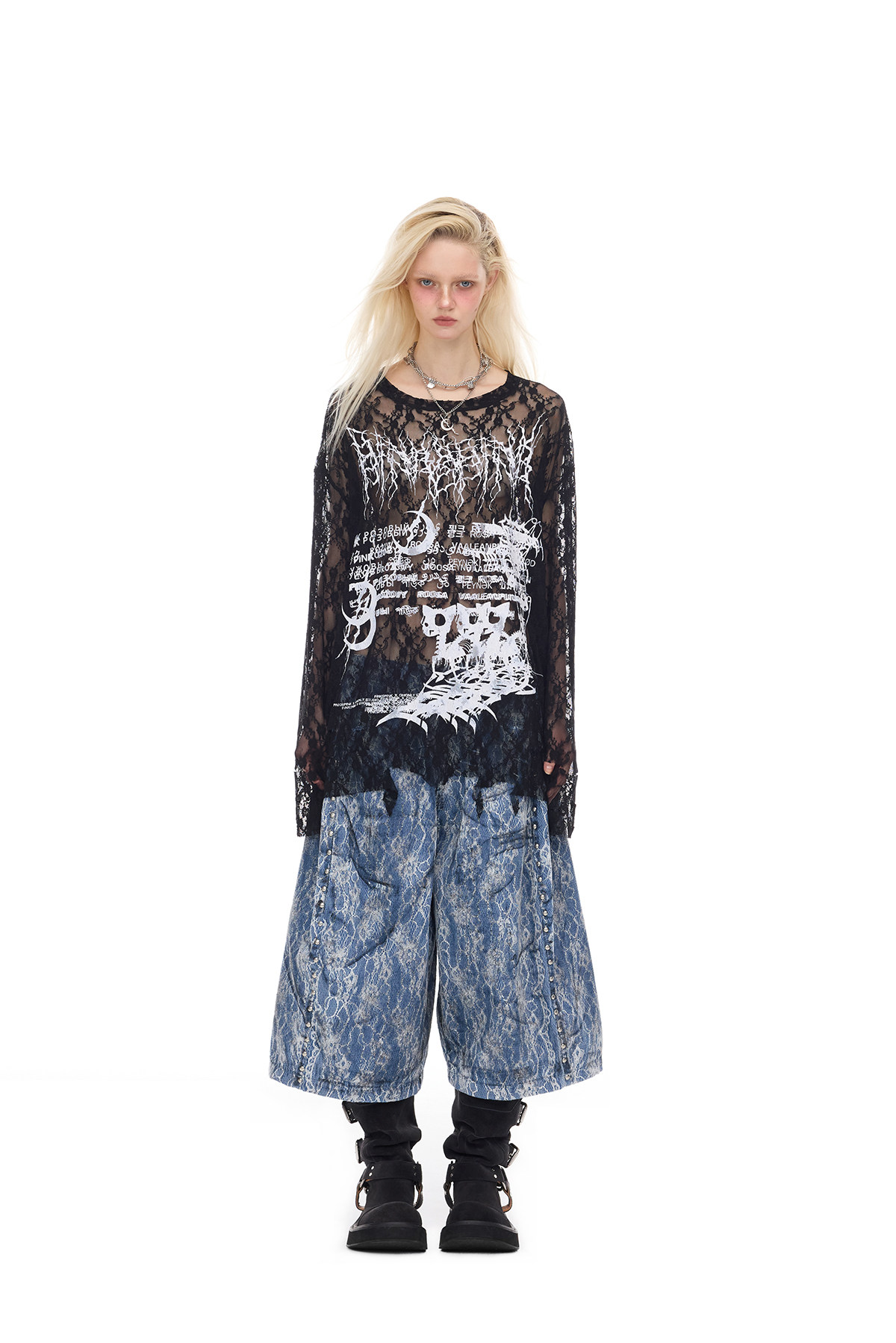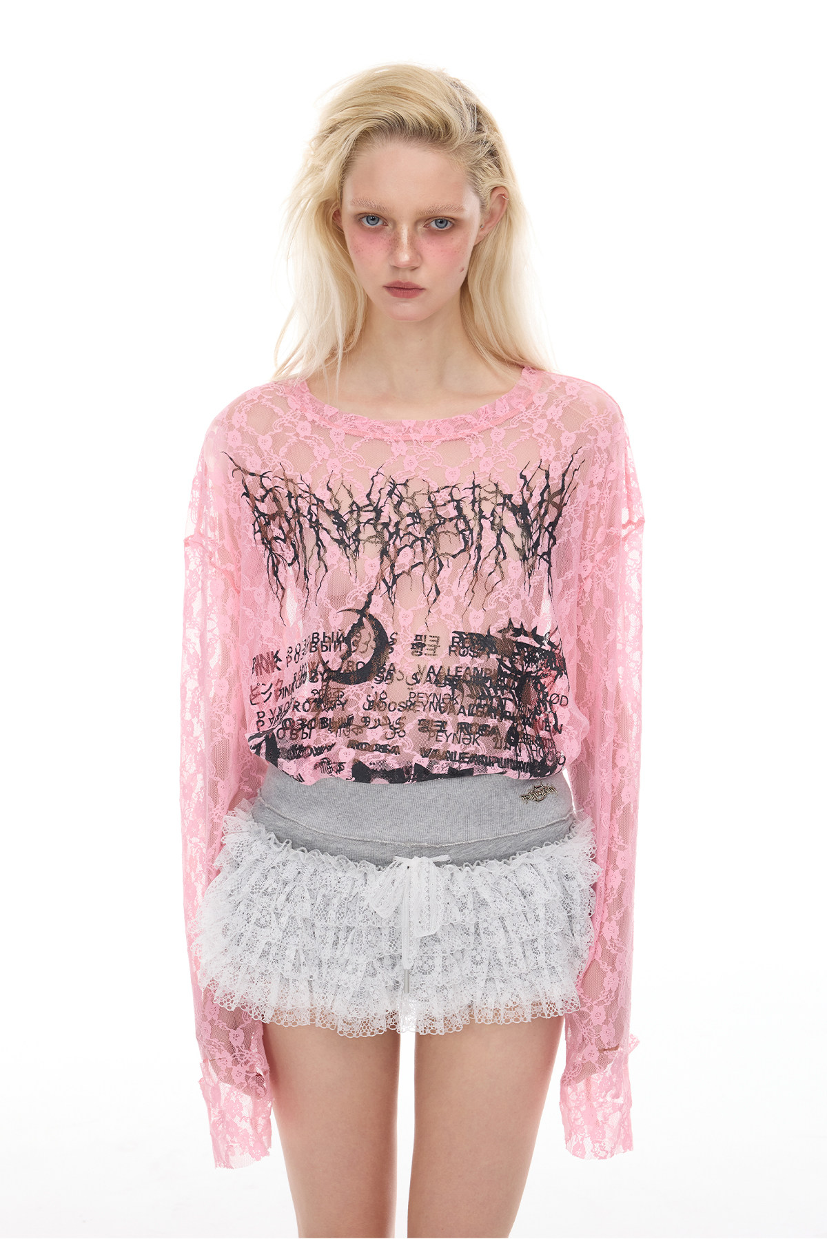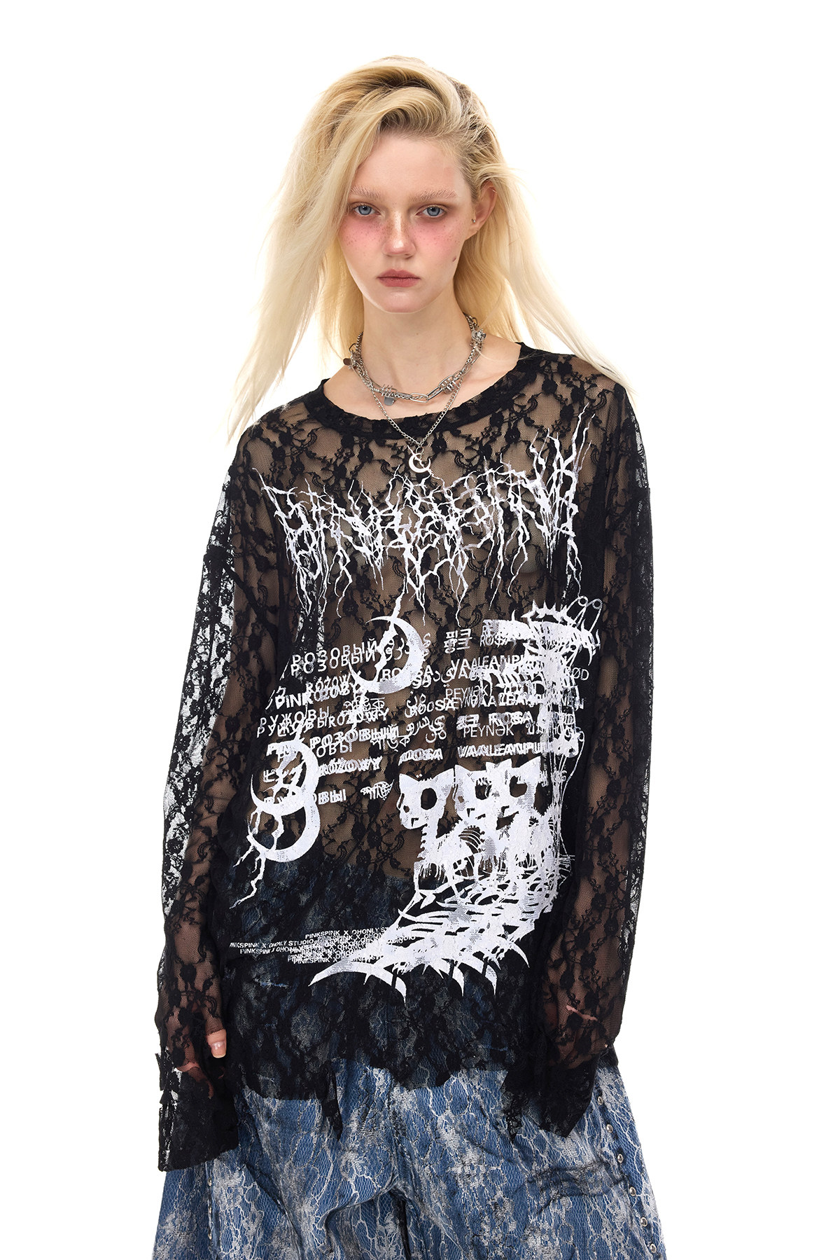 Electric Moon Thorn Cat Print Layered Y2K Unisex Tee