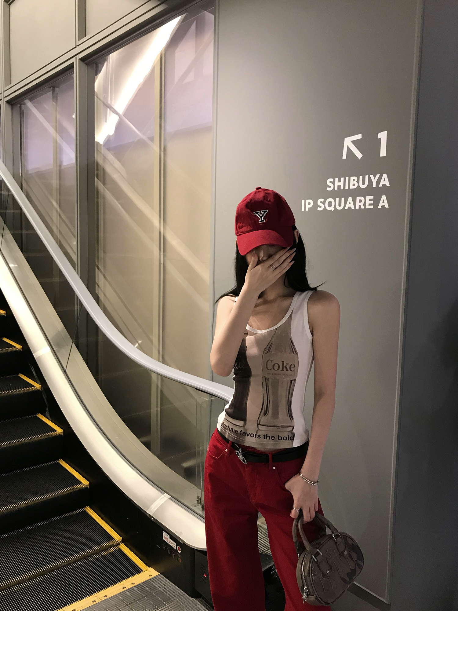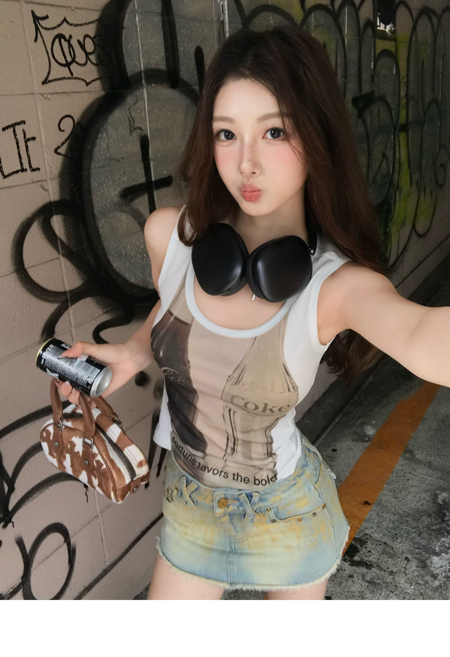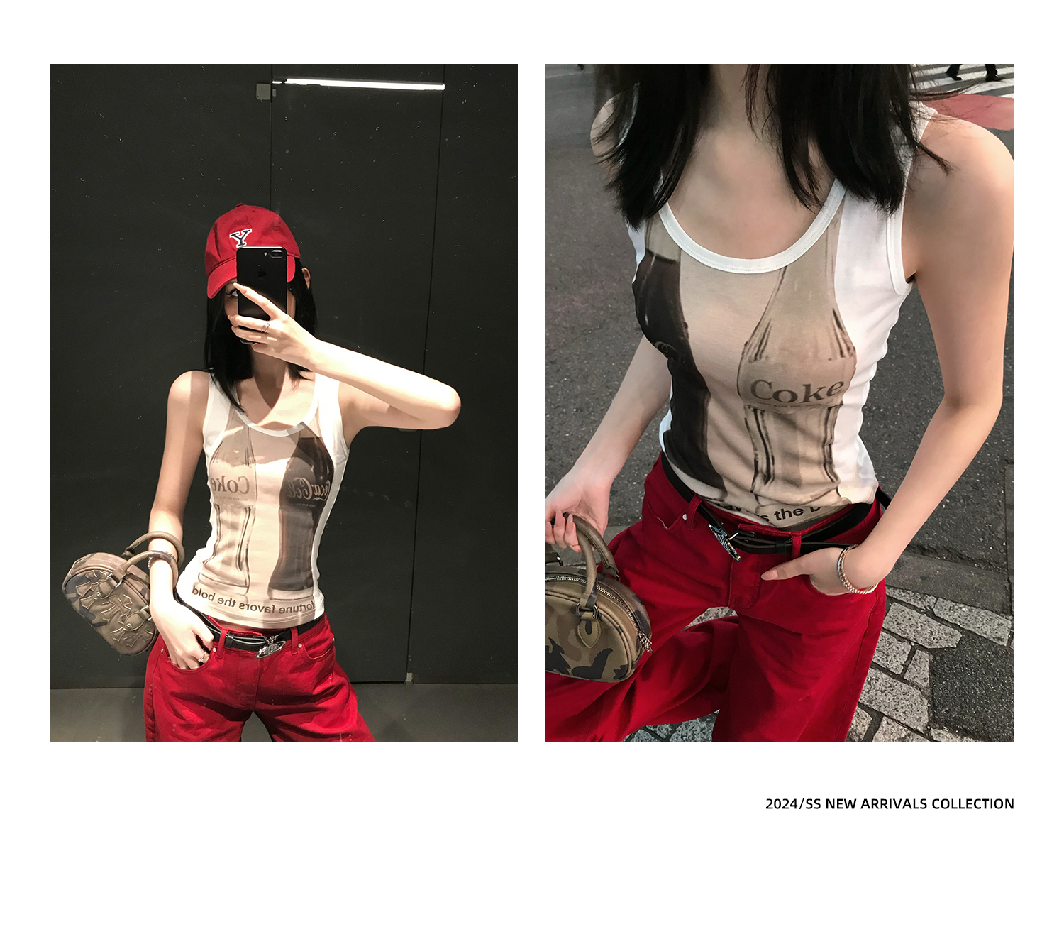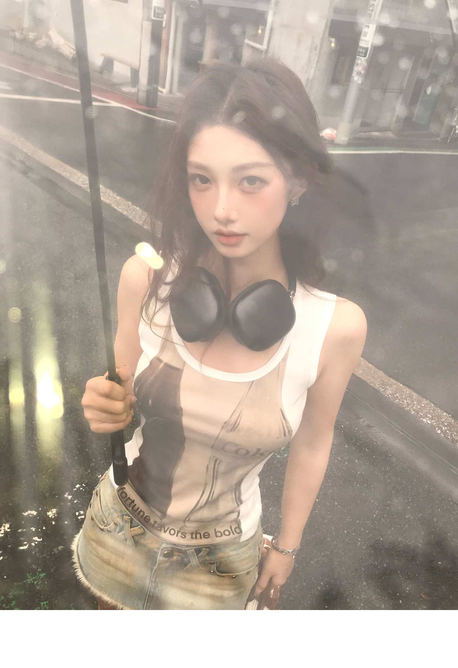 [Everything Cola] White Printed Slim Fit Vest - Women's Summer American Style