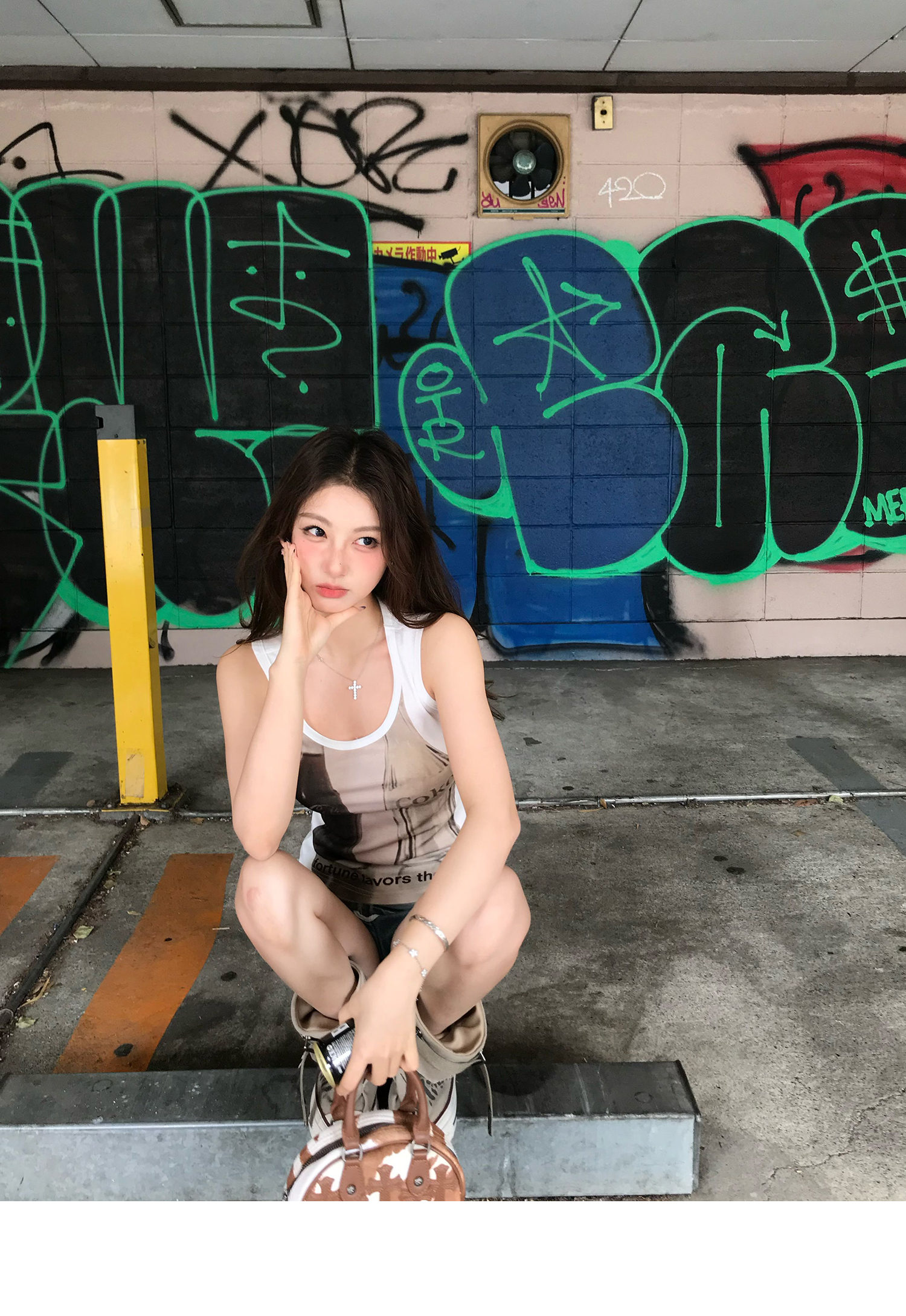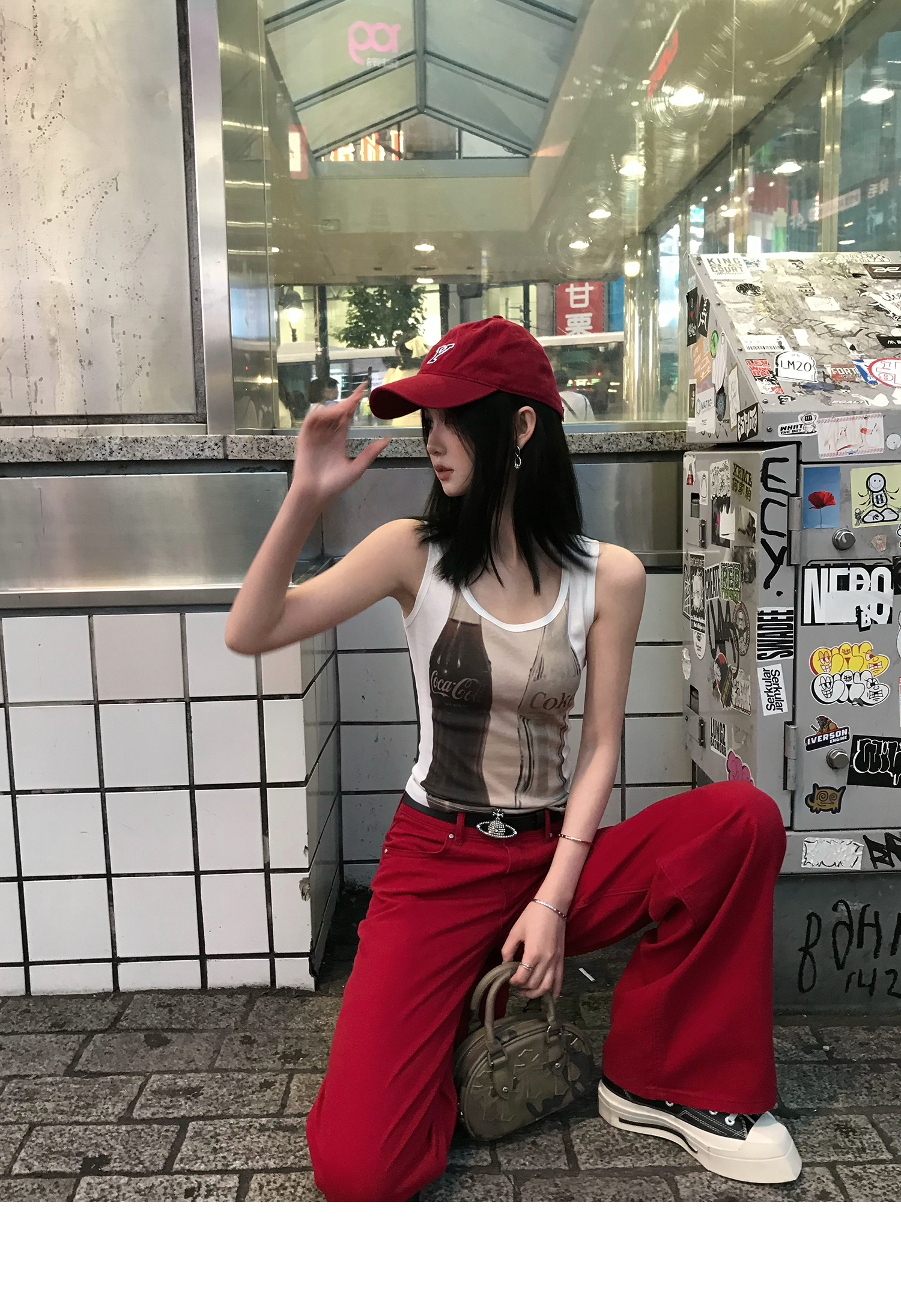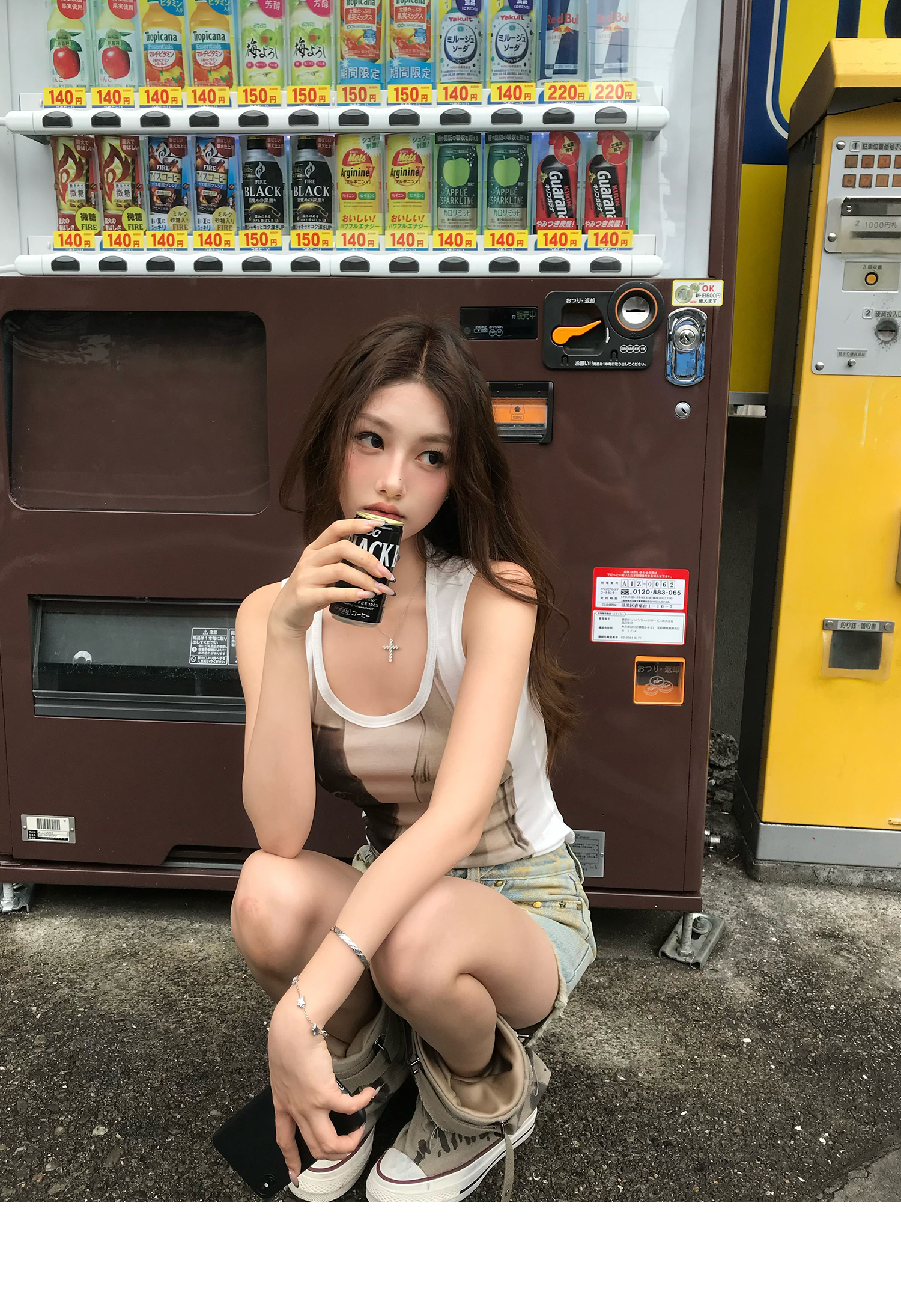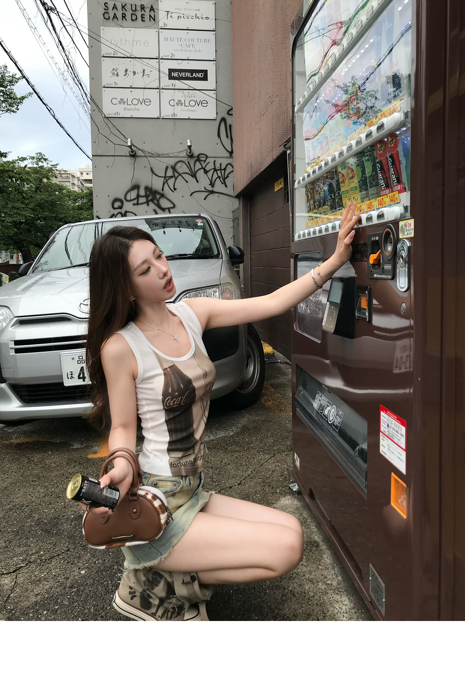 [Everything Cola] White Printed Slim Fit Vest - Women's Summer American Style