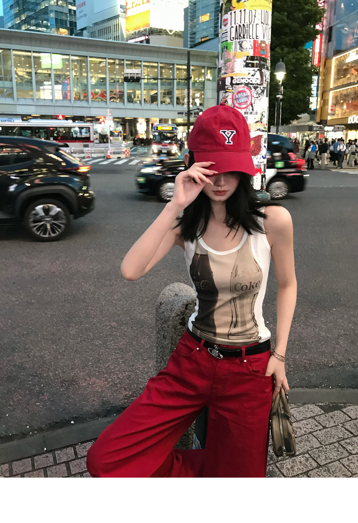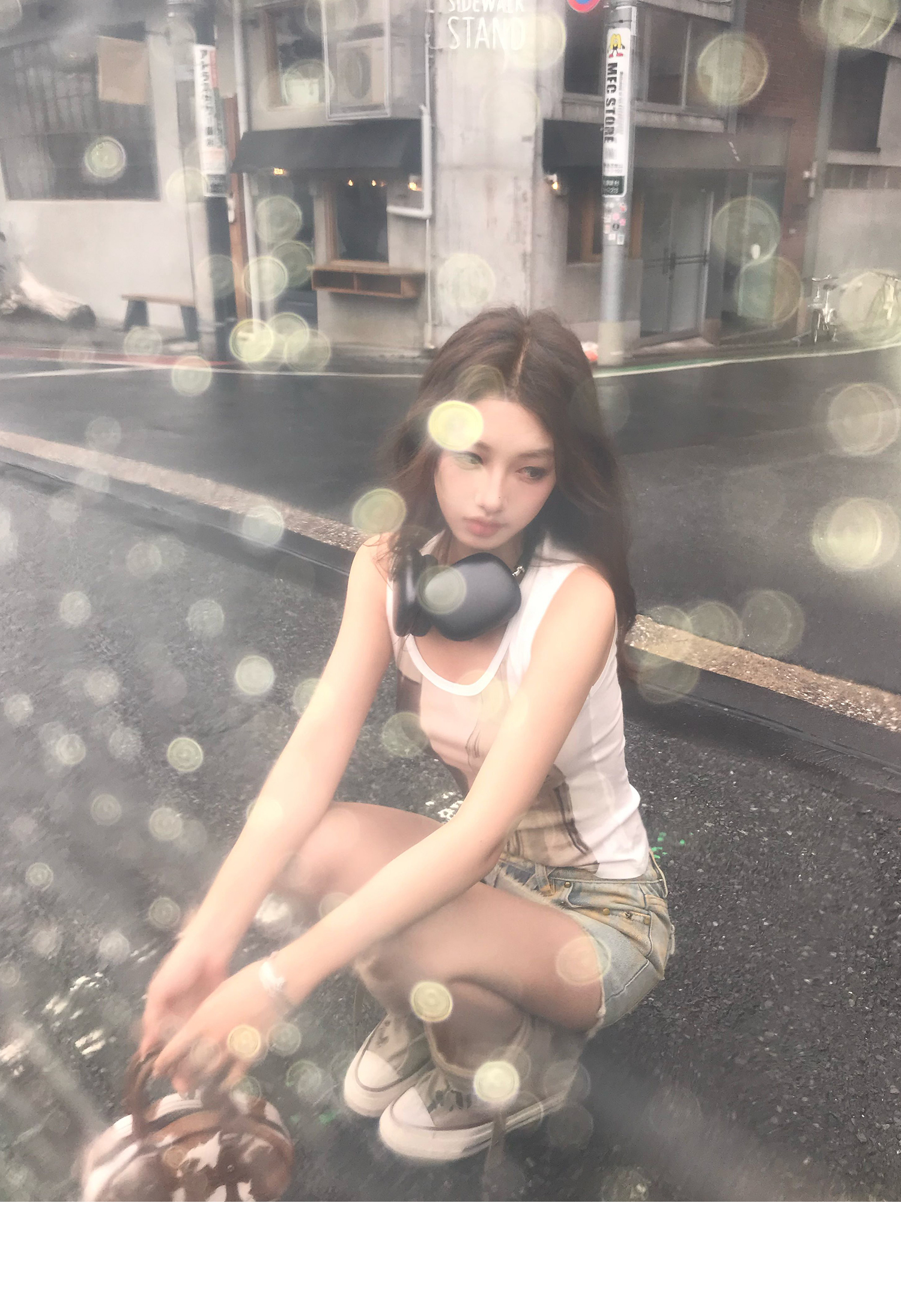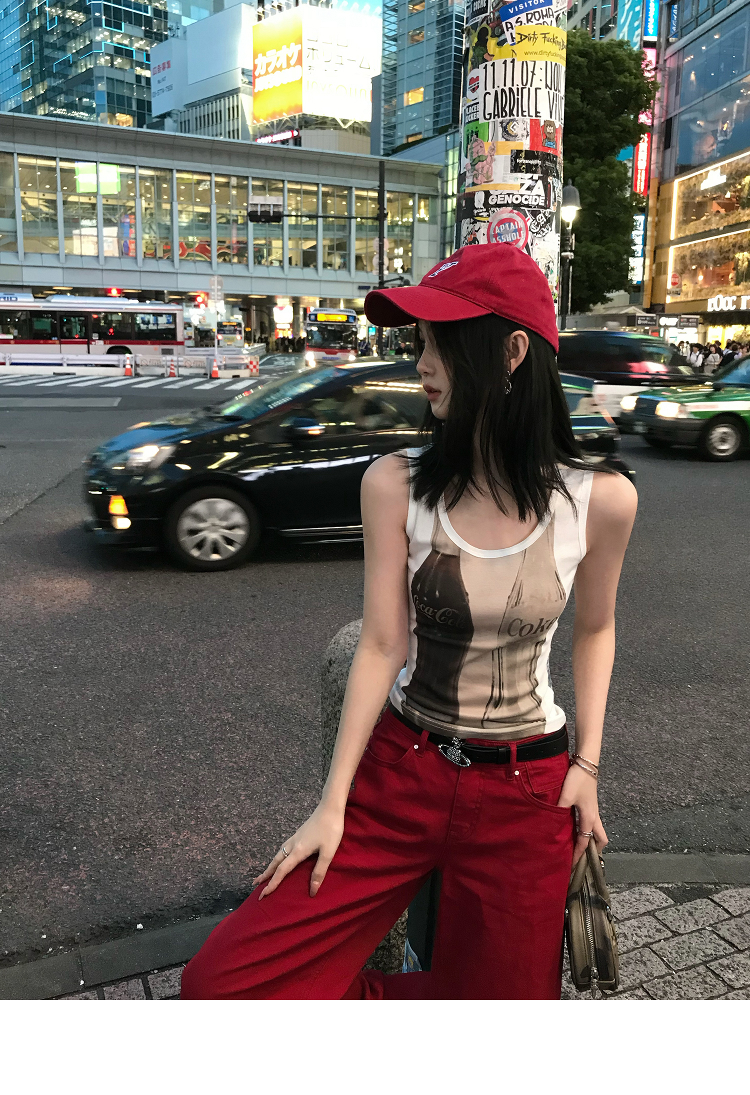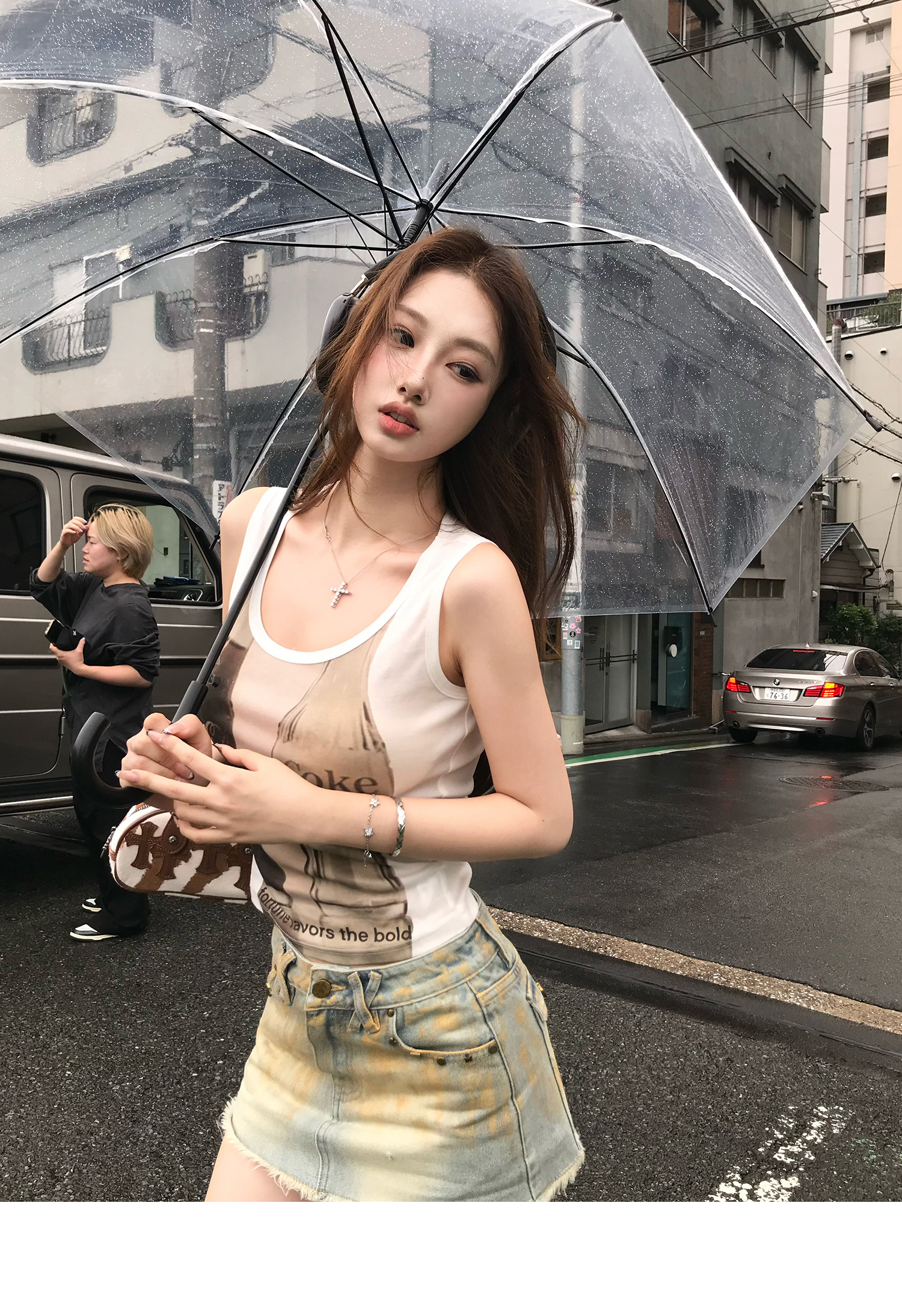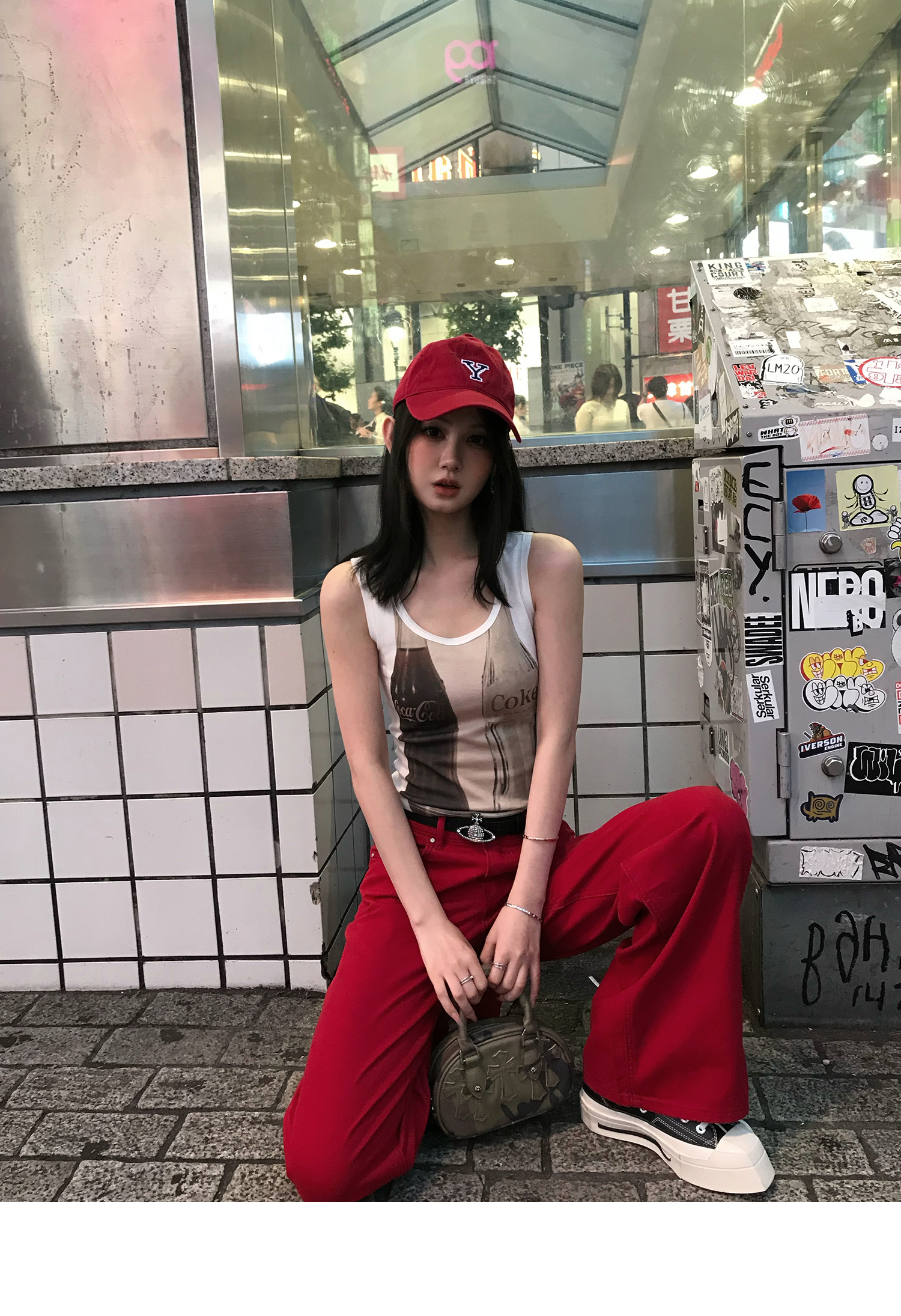 [Everything Cola] White Printed Slim Fit Vest - Women's Summer American Style