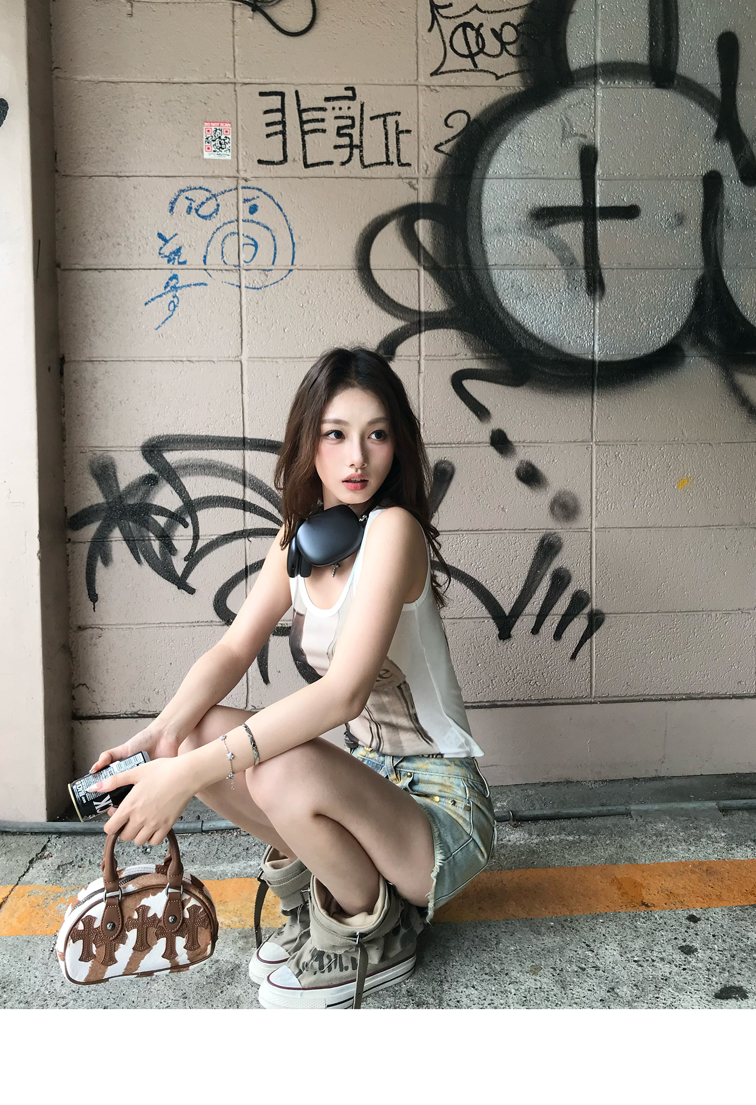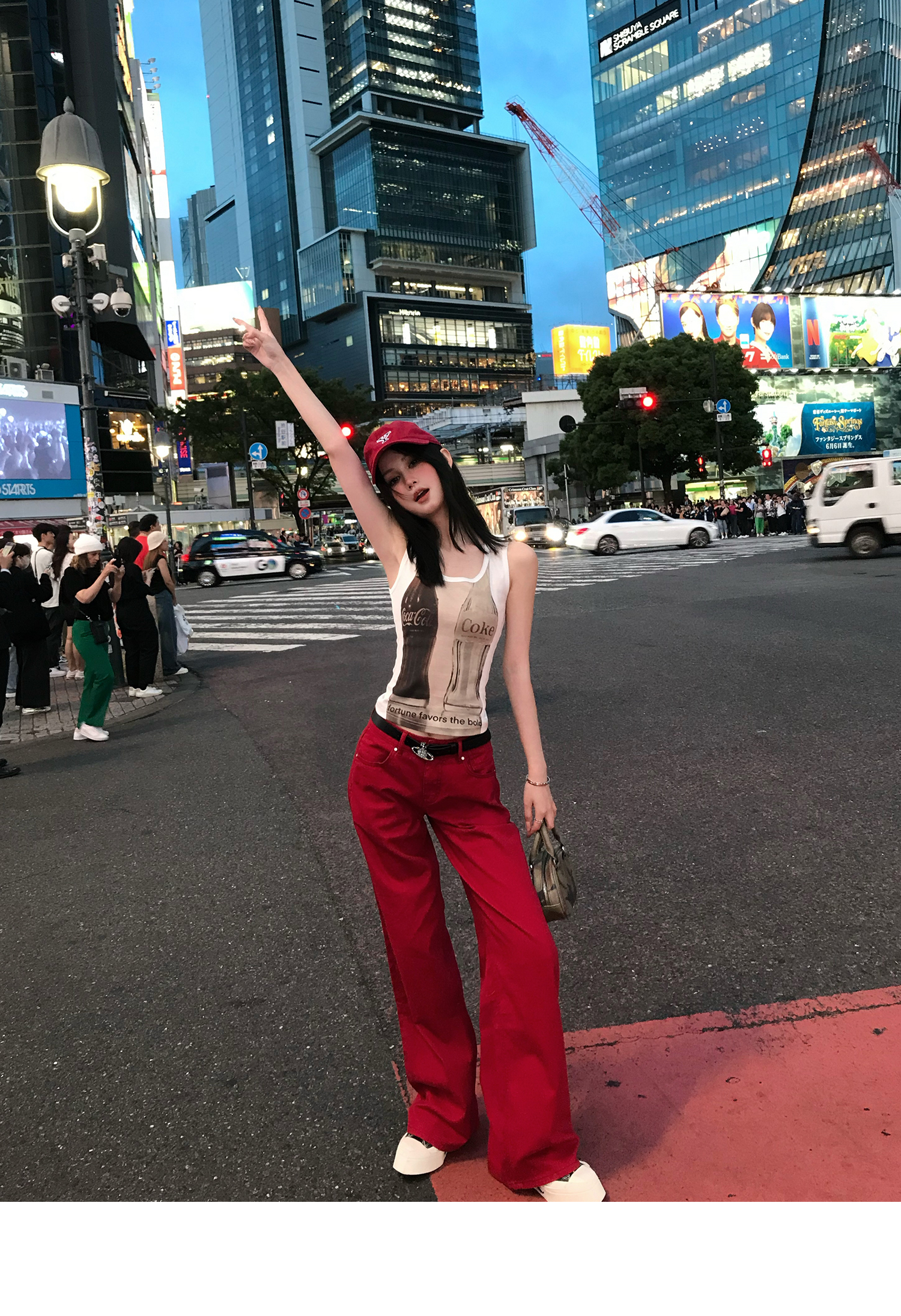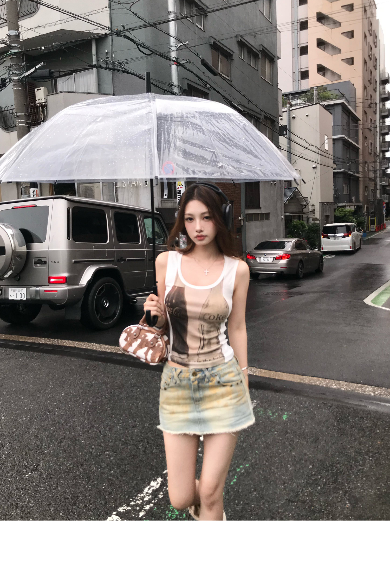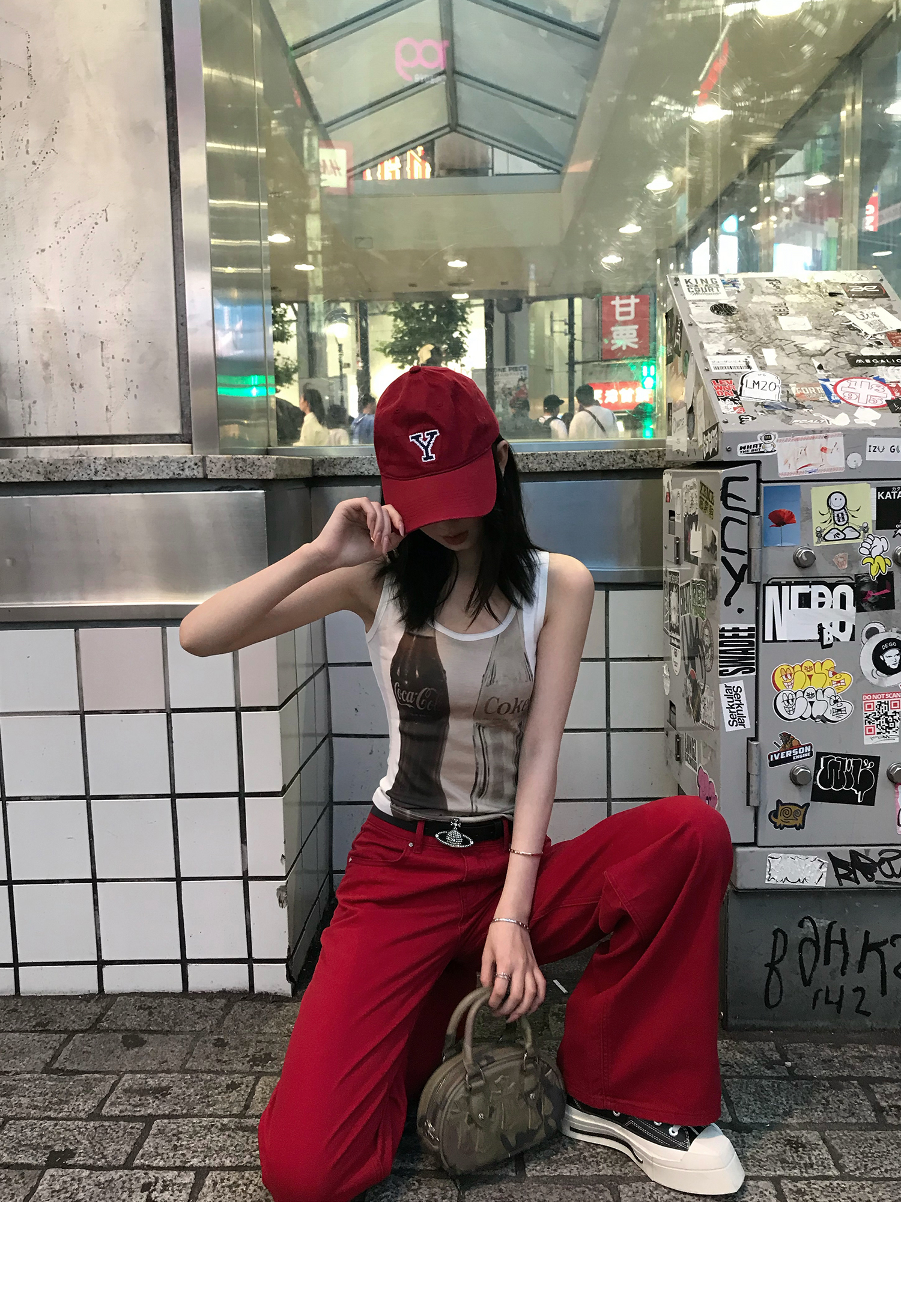 [Everything Cola] White Printed Slim Fit Vest - Women's Summer American Style