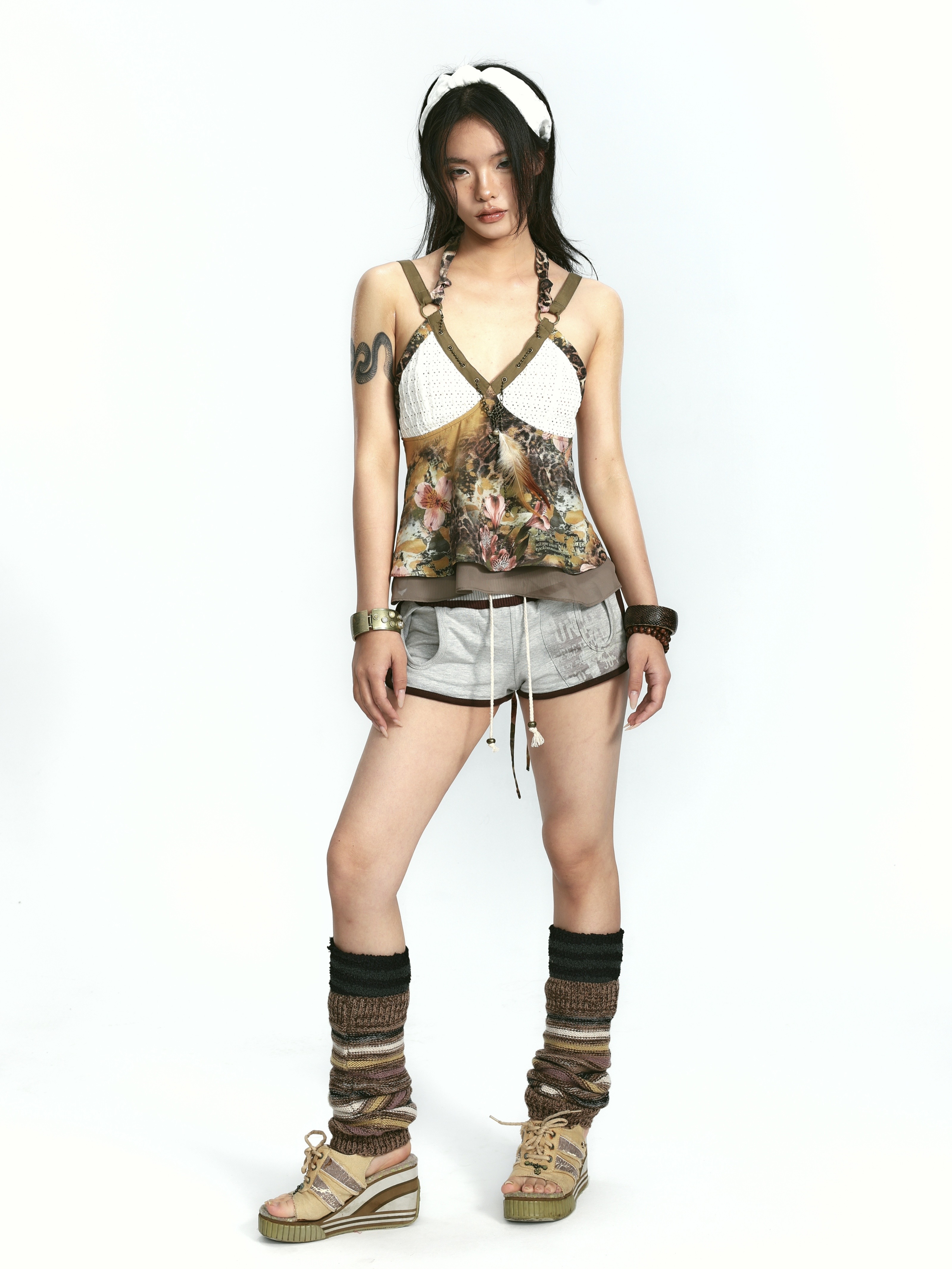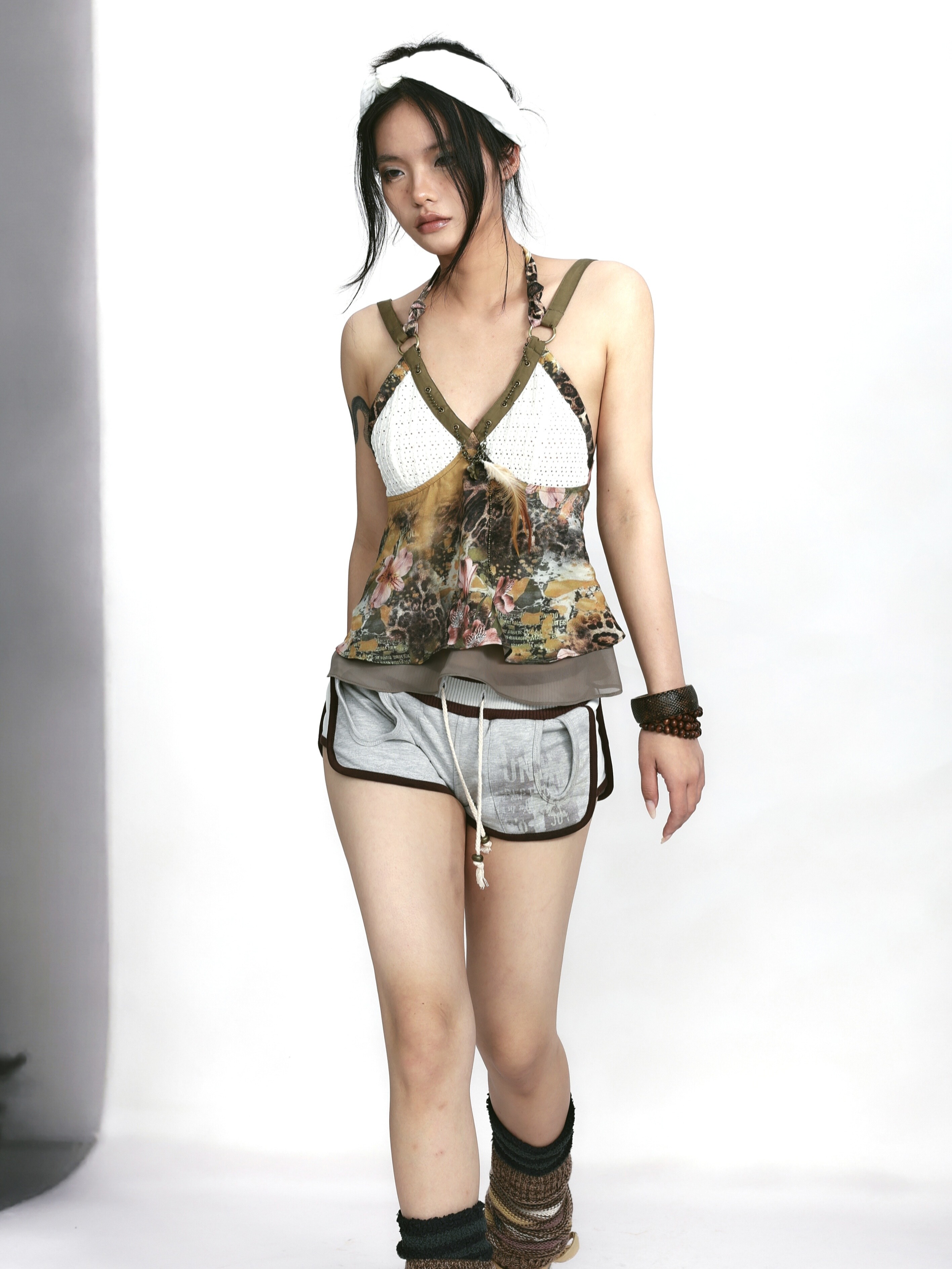 Floral Leopard Strap Panel Top – Feather Accent Look