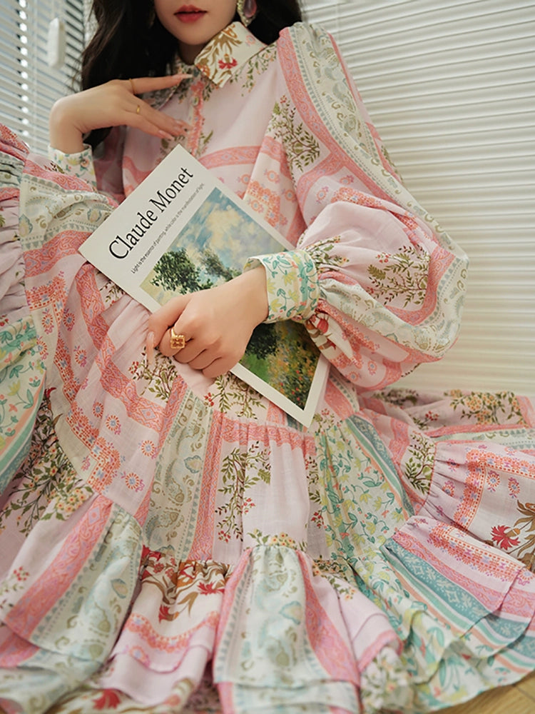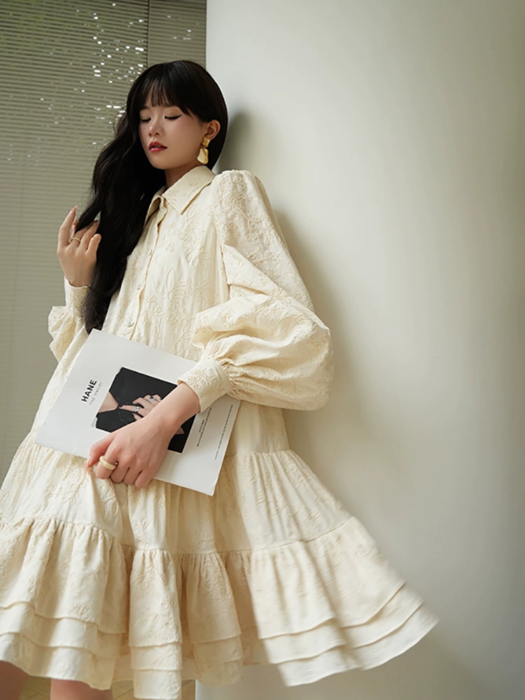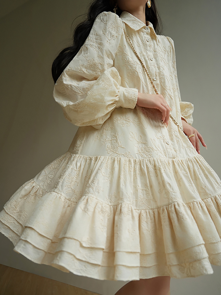3D Embroidery Print Mini Dress – French Girly Retro Vibe