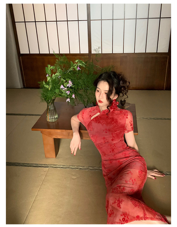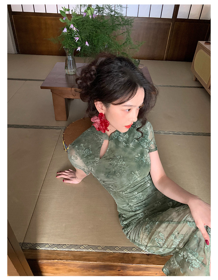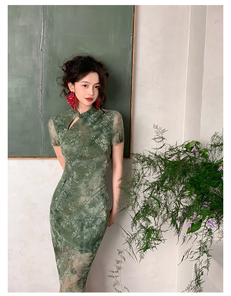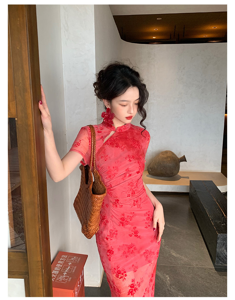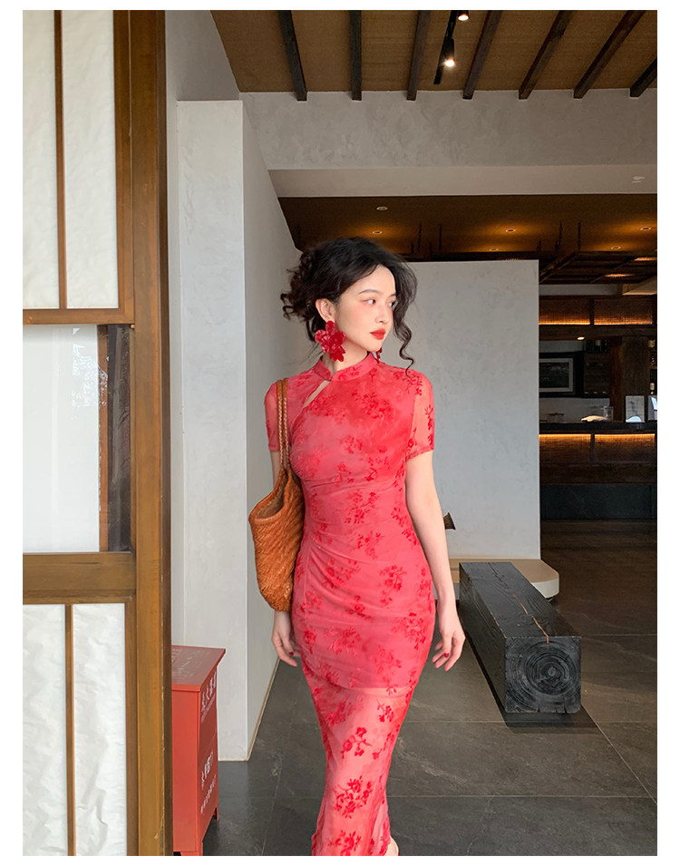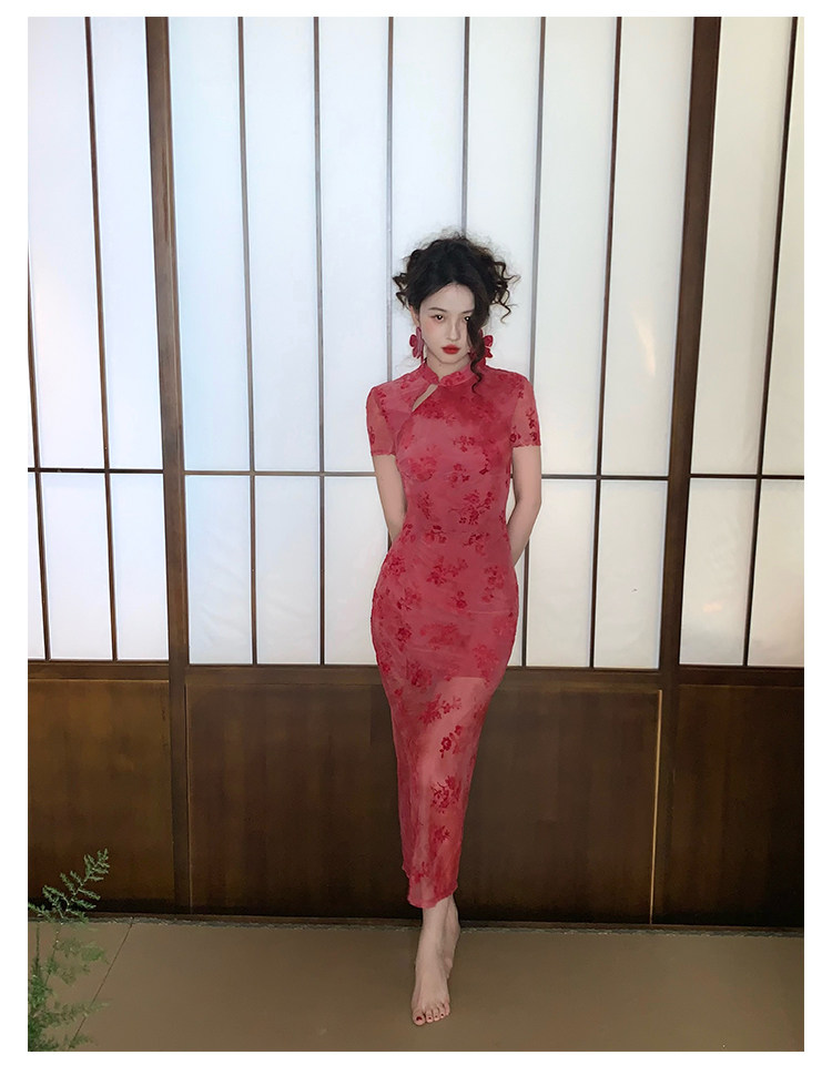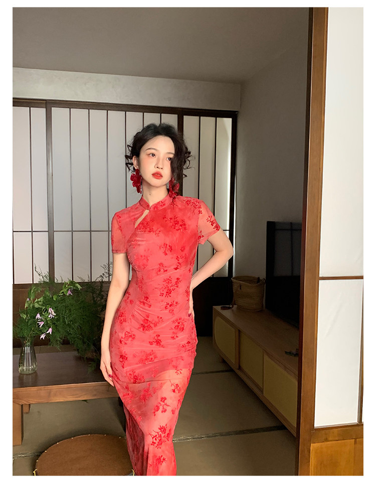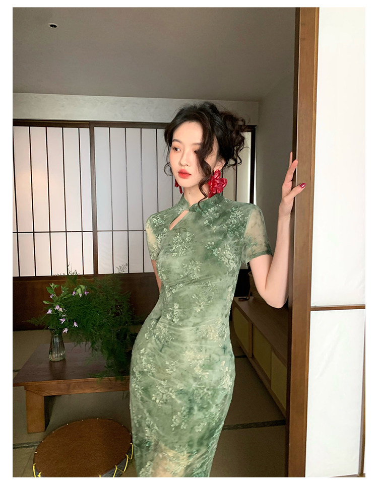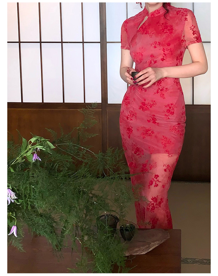 Mesh Floral Slim Cheongsam Dress