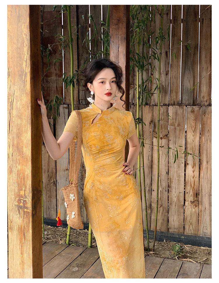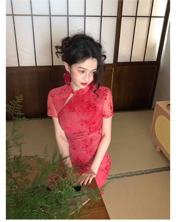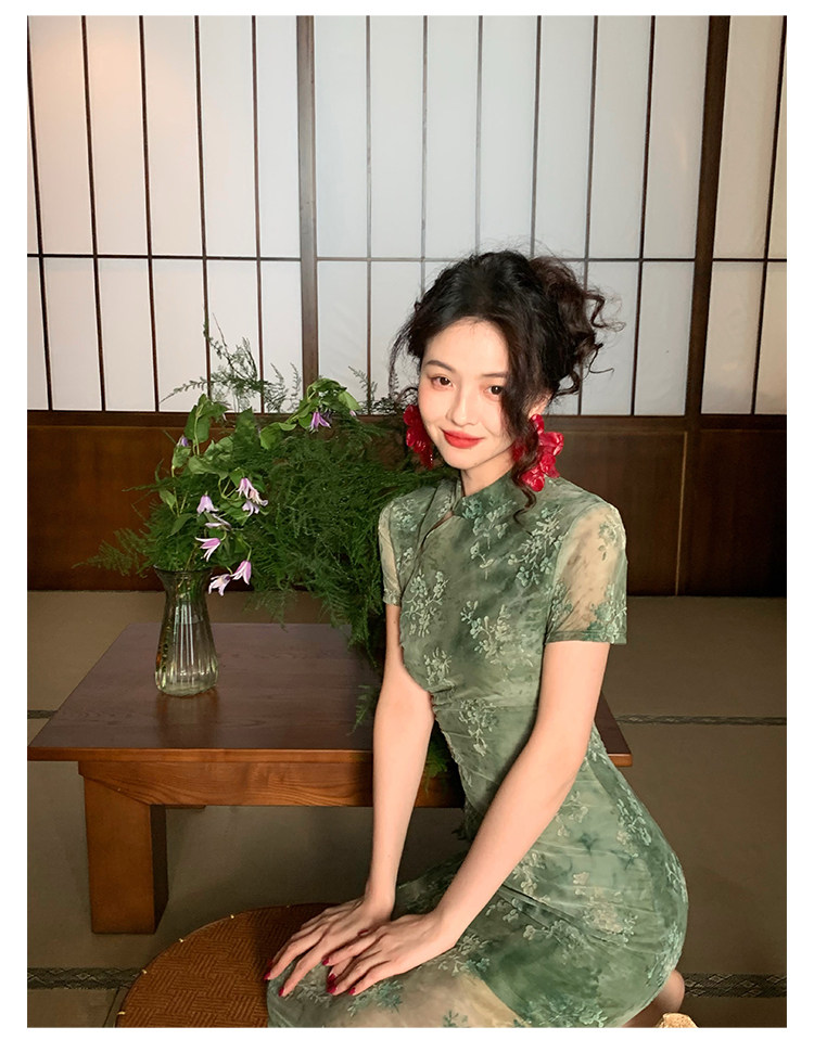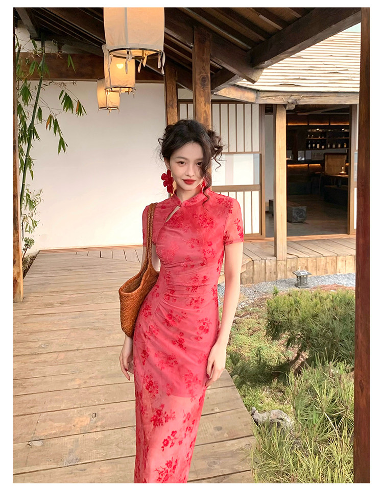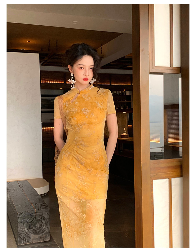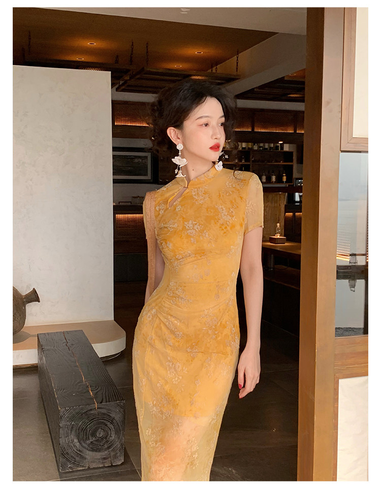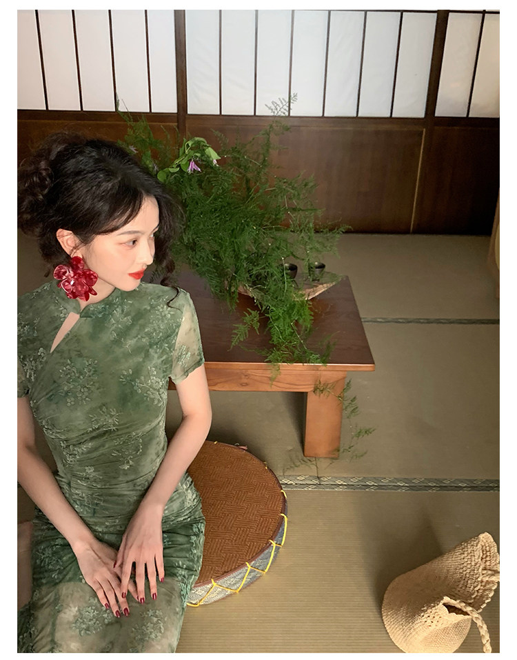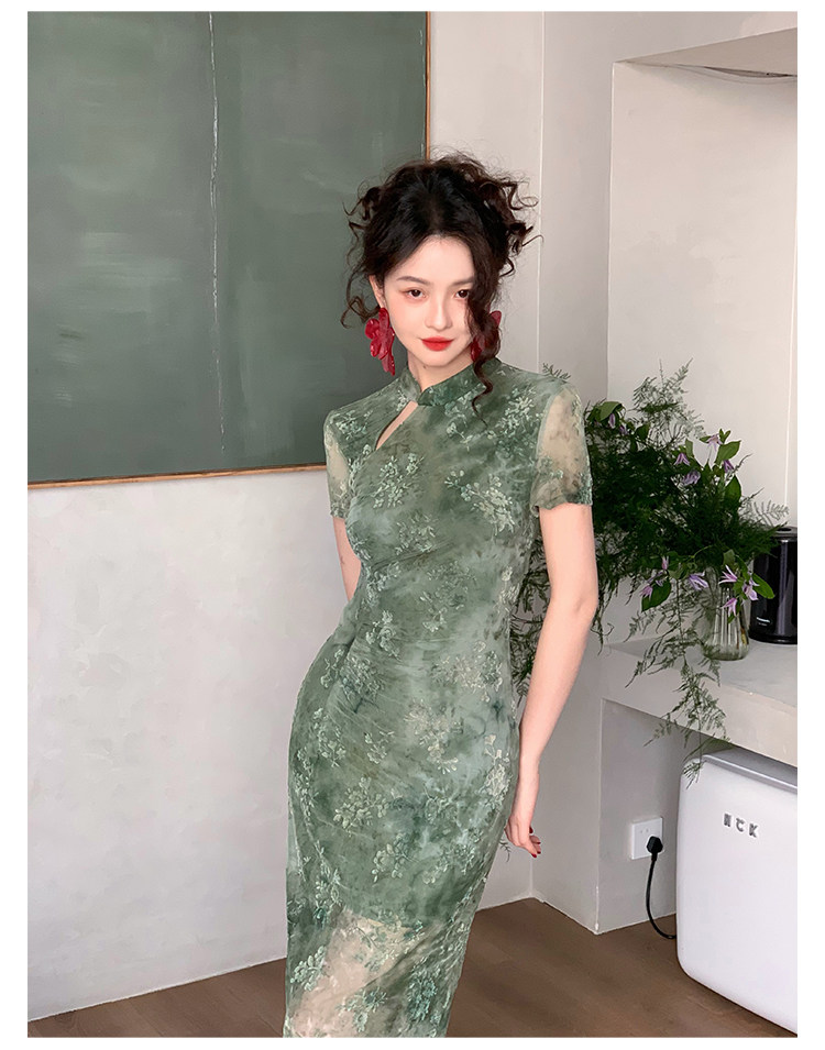 Mesh Floral Slim Cheongsam Dress