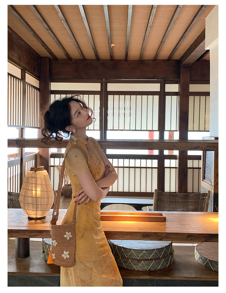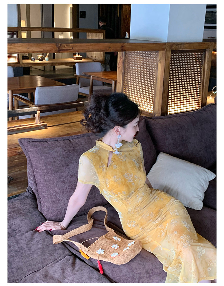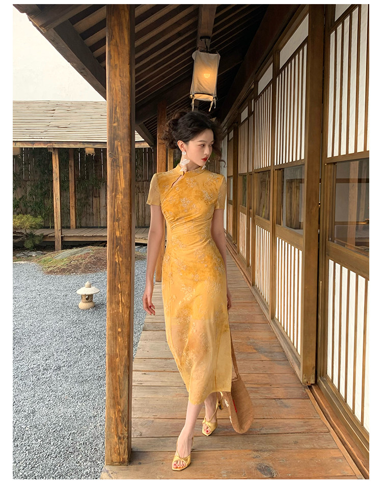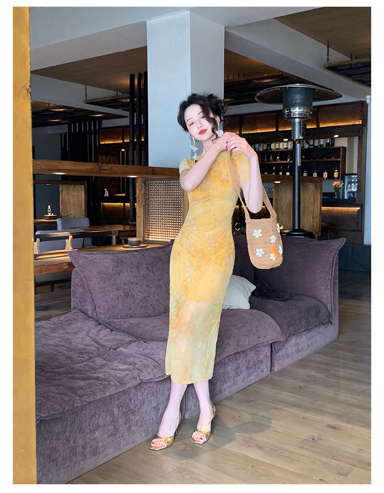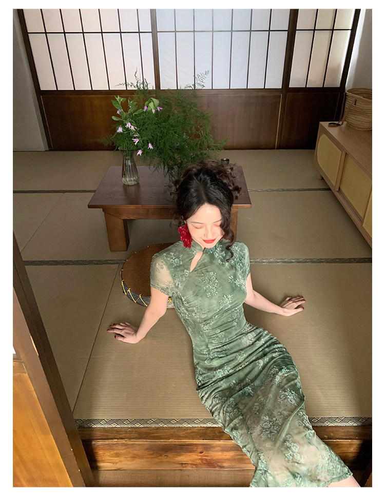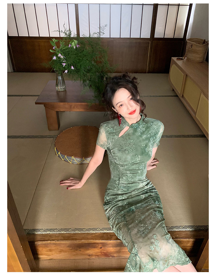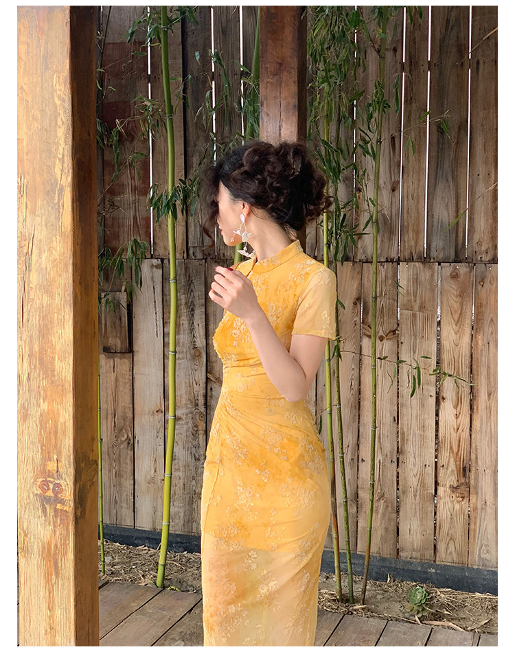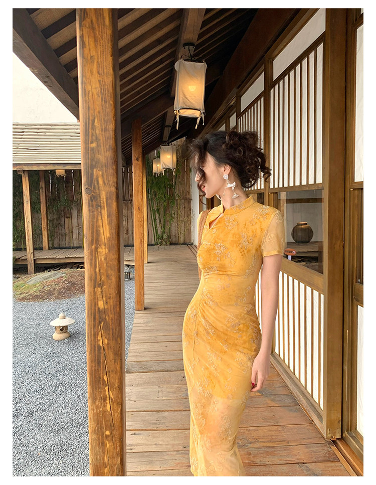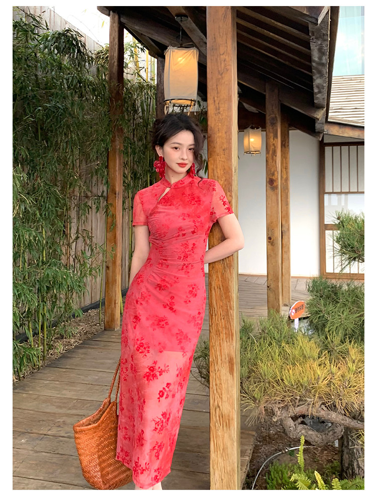 Mesh Floral Slim Cheongsam Dress