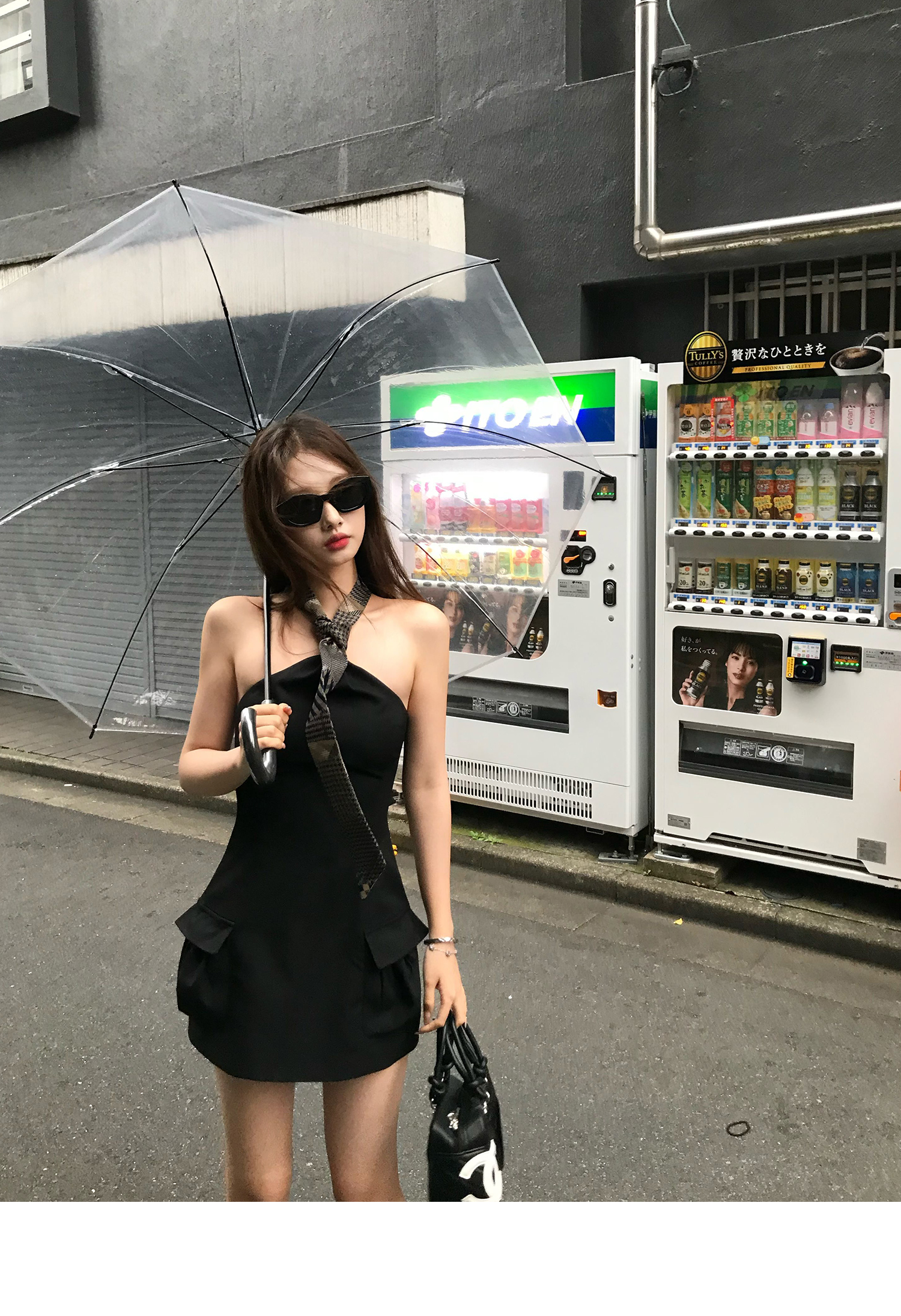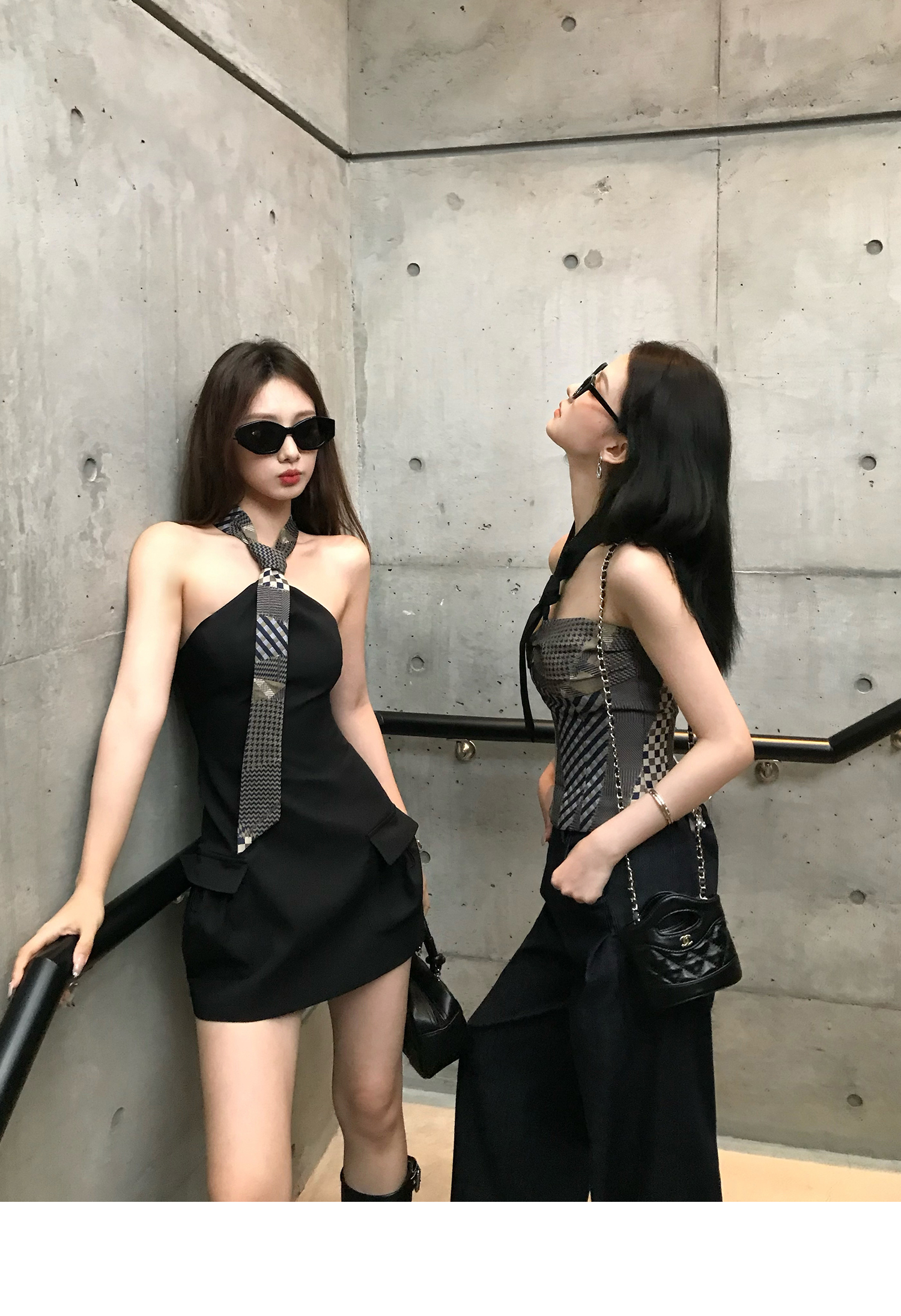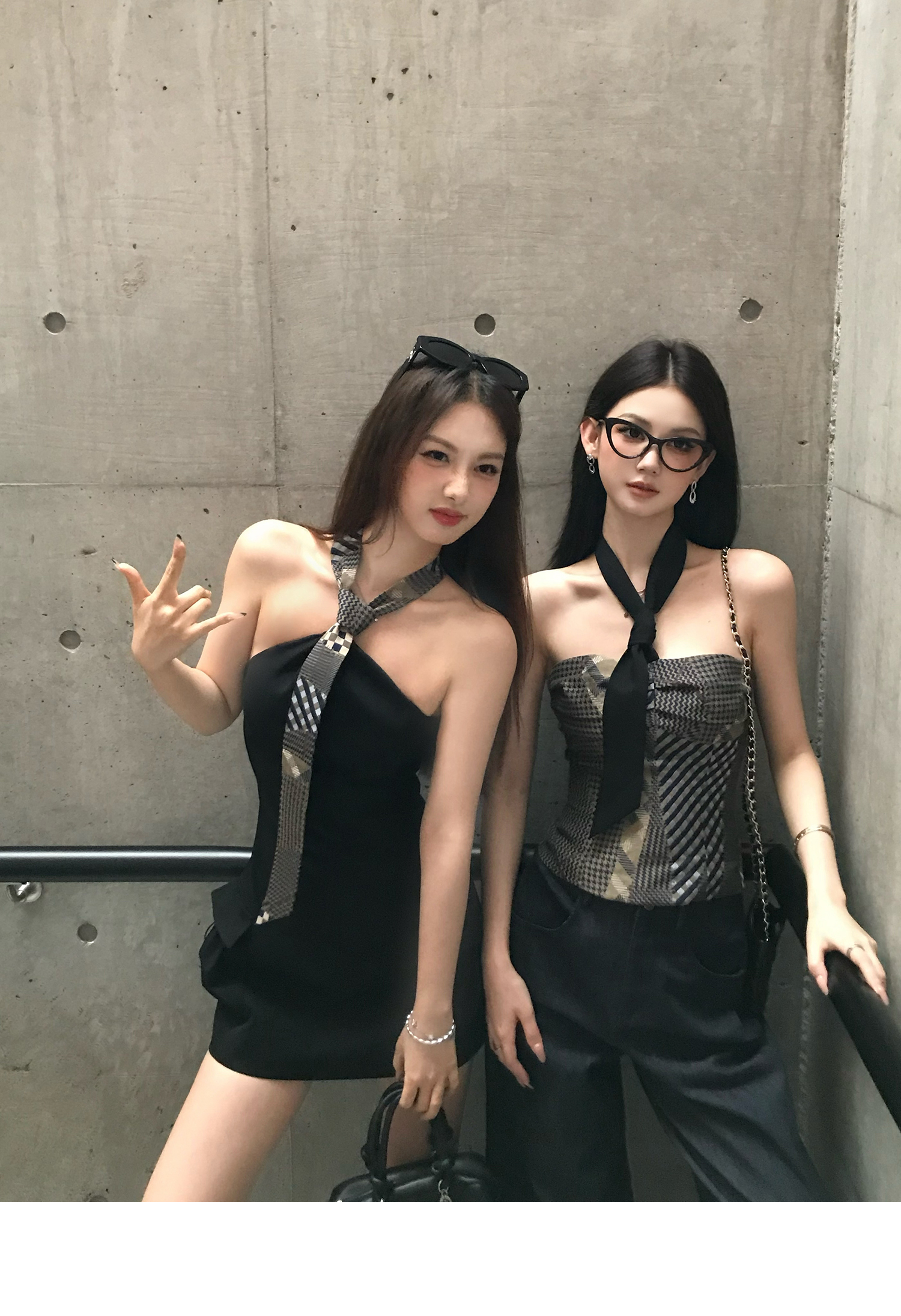 Hong Kong Love Letter Black Strapless Dress - Niche Design Spicy Girl Skirt