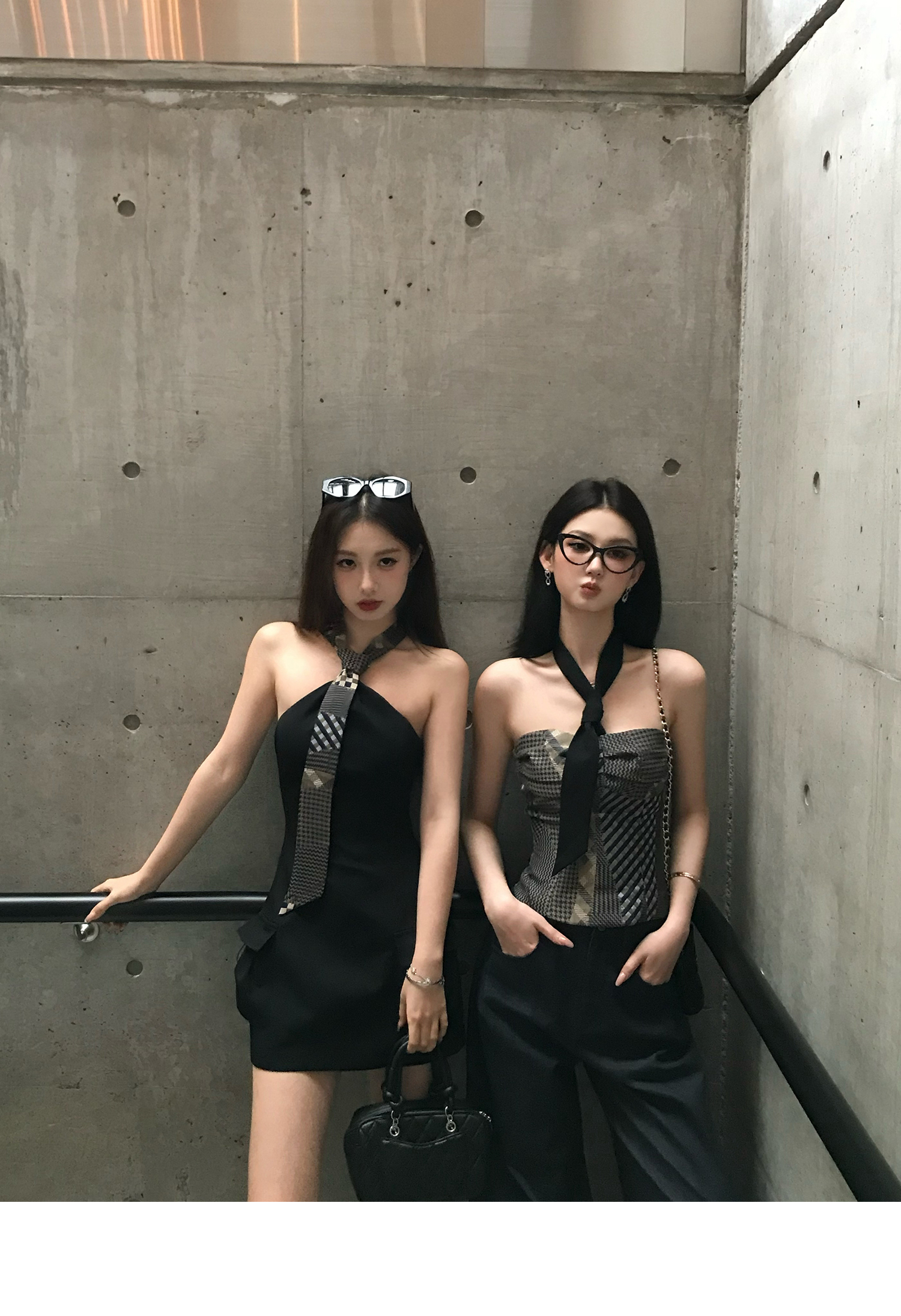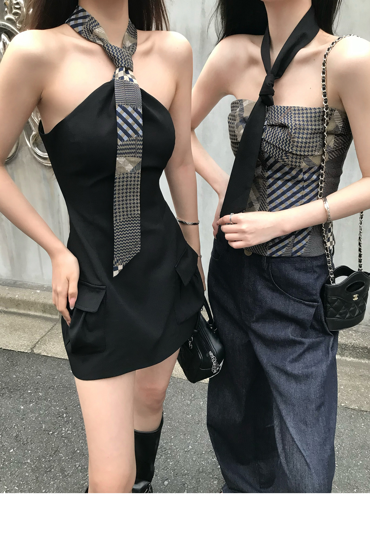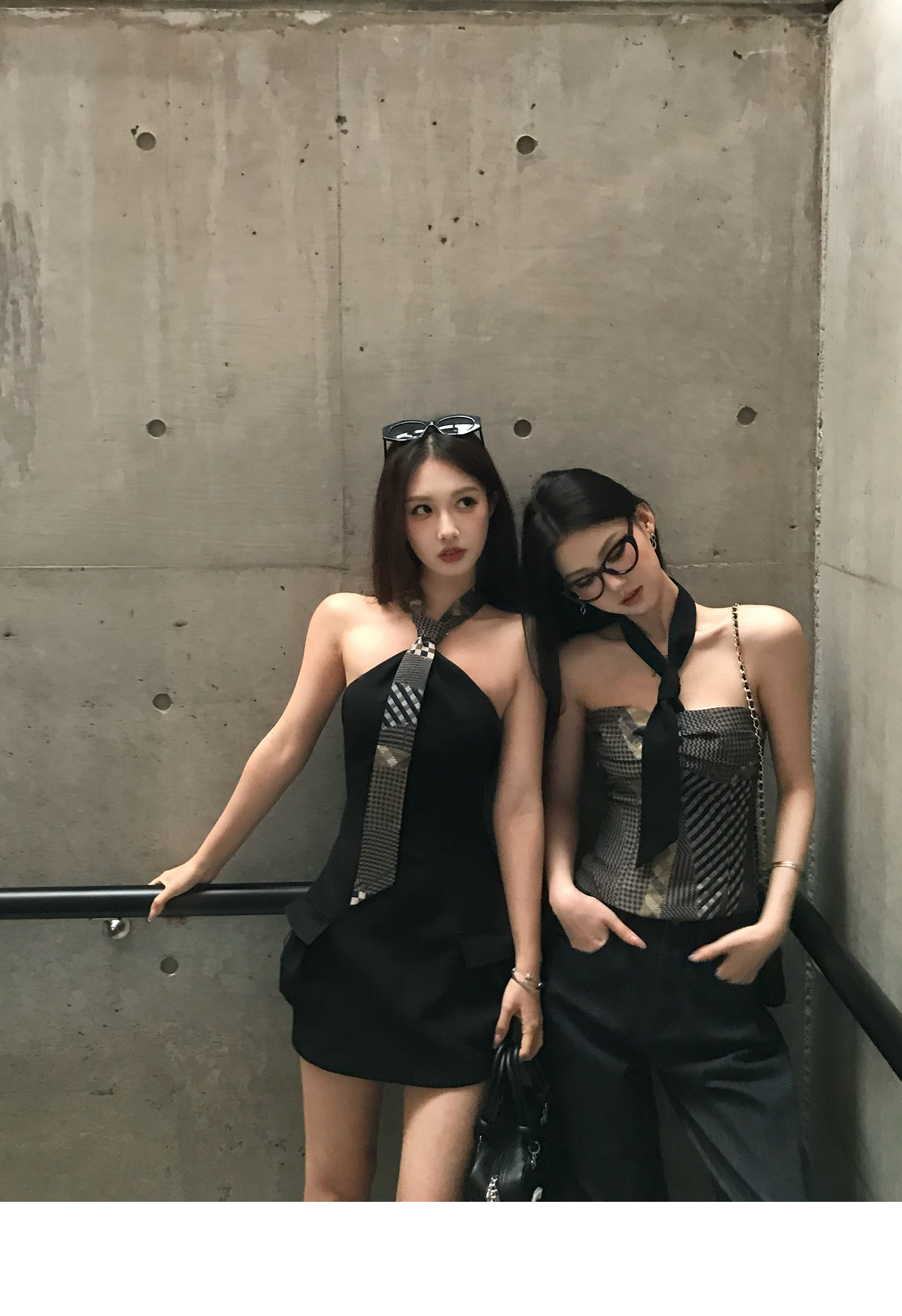 Hong Kong Love Letter Black Strapless Dress - Niche Design Spicy Girl Skirt