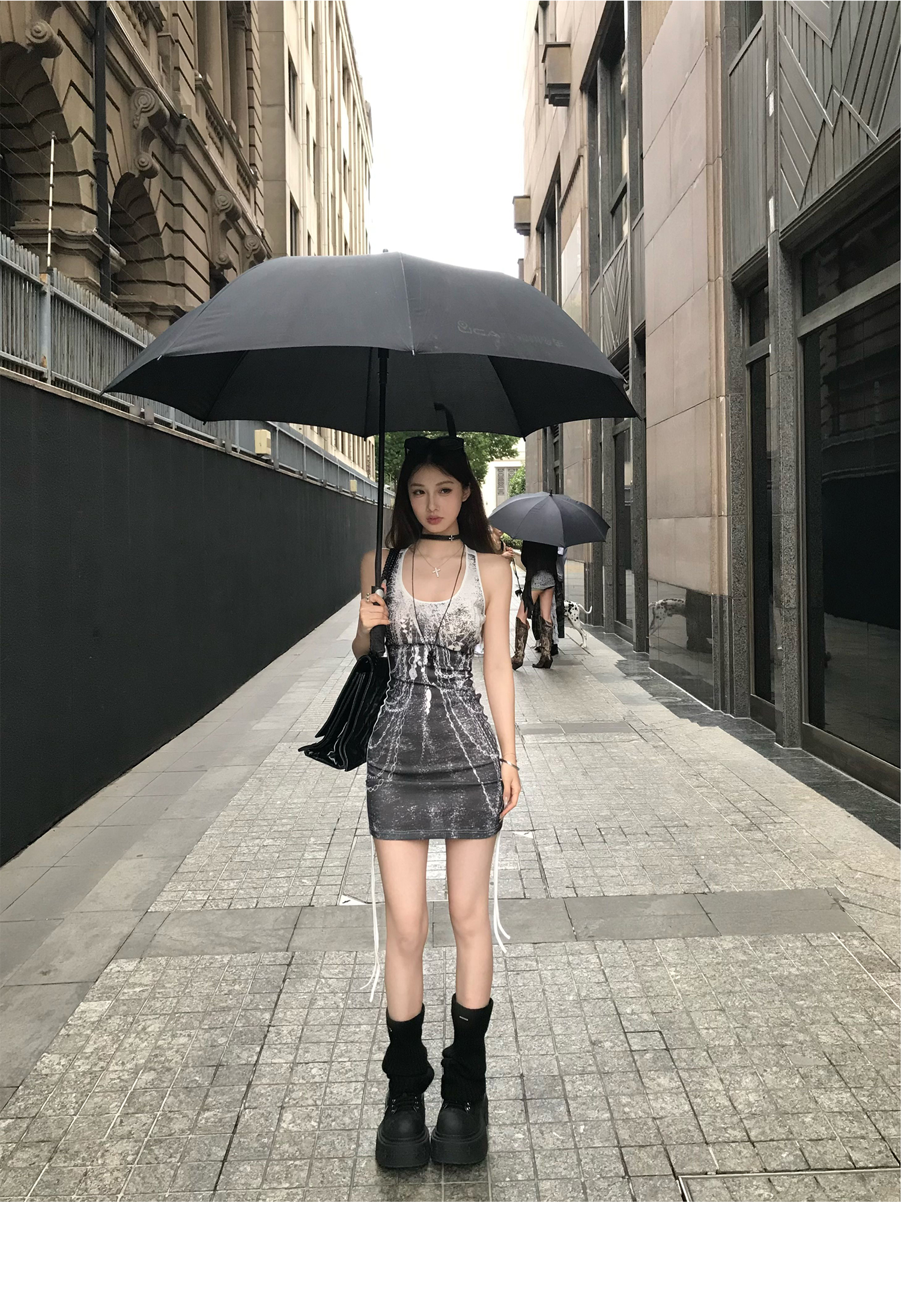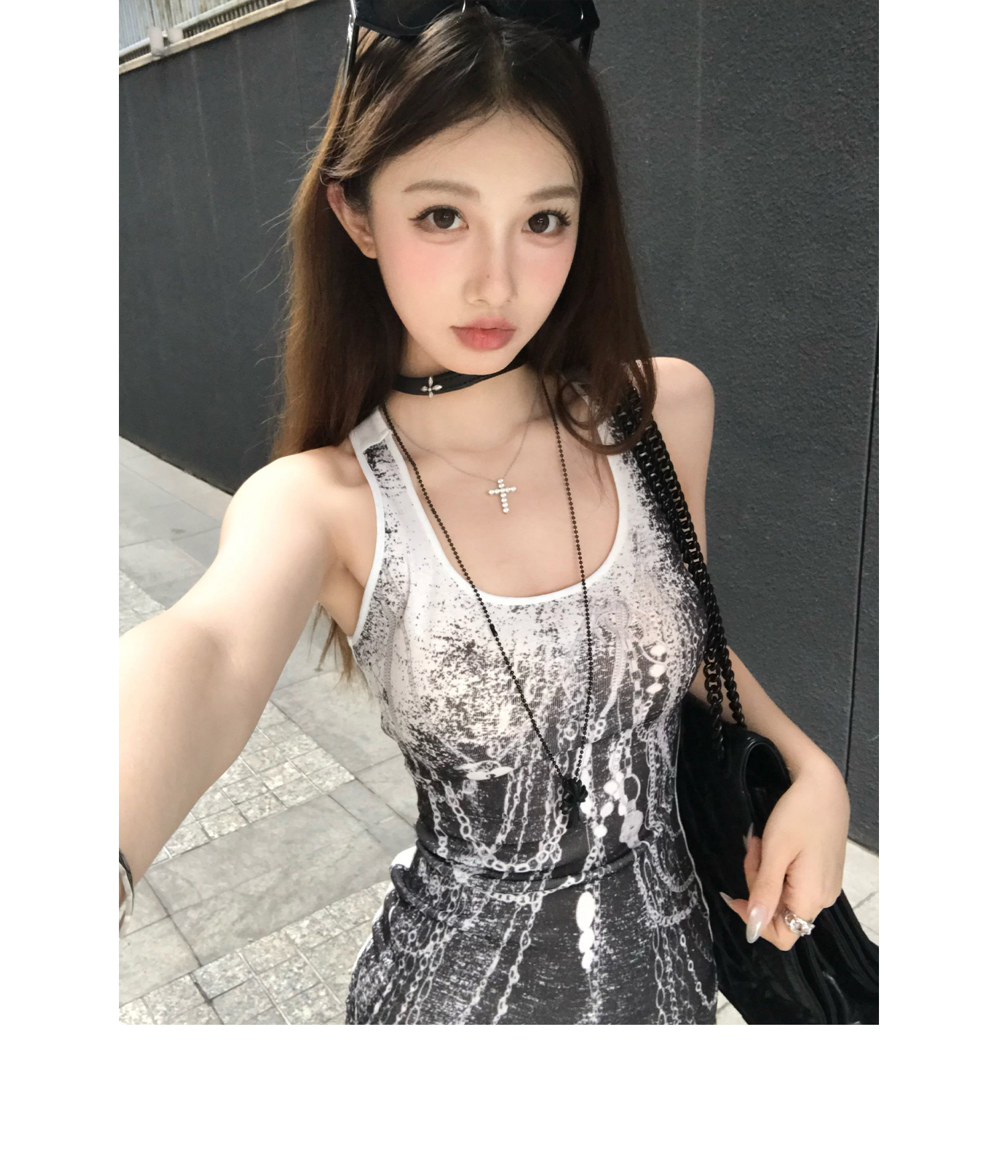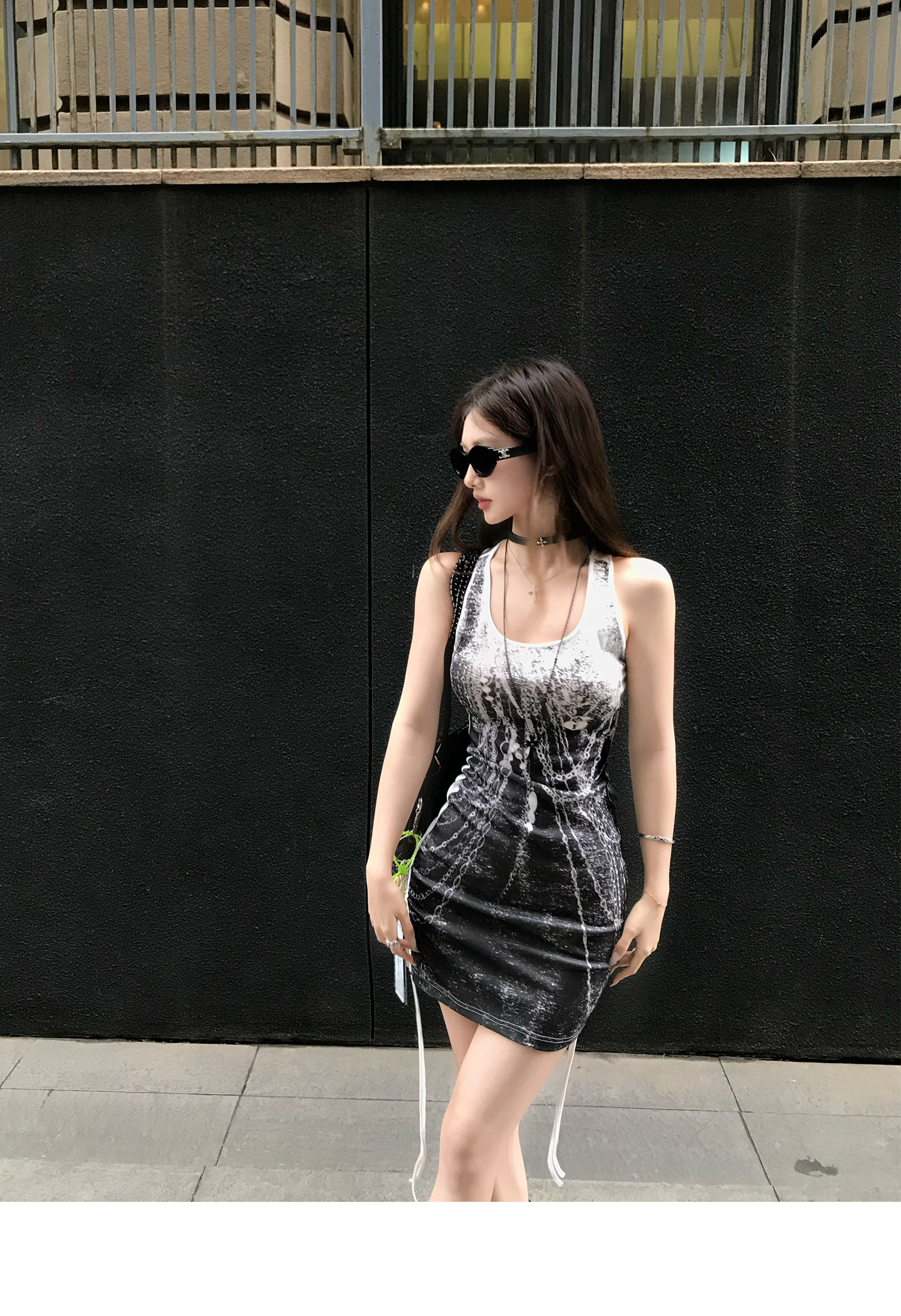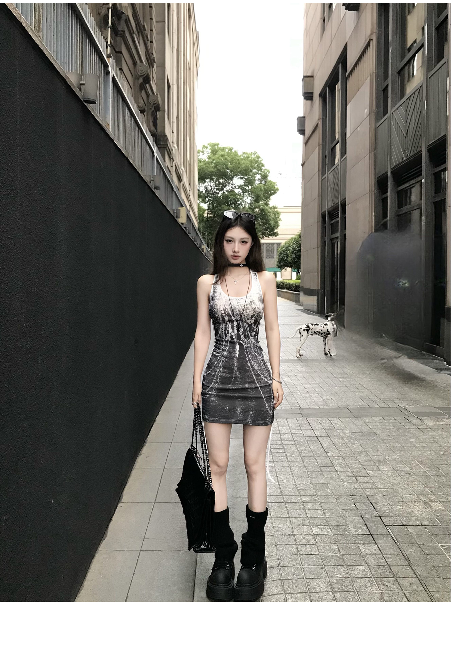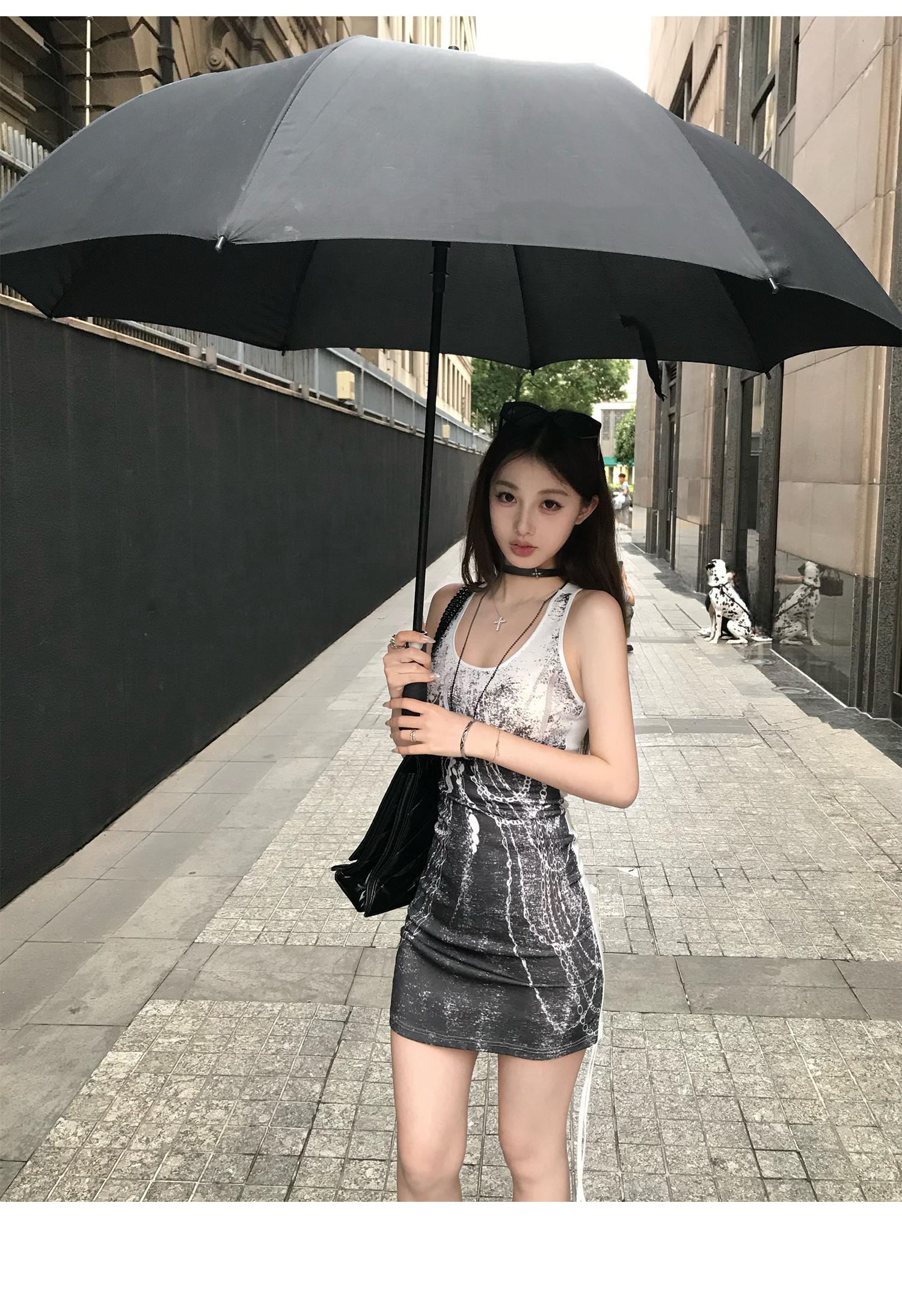 Hong Kong Style Slim Fit Sleeveless Printed Dress - Summer Vest Skirt