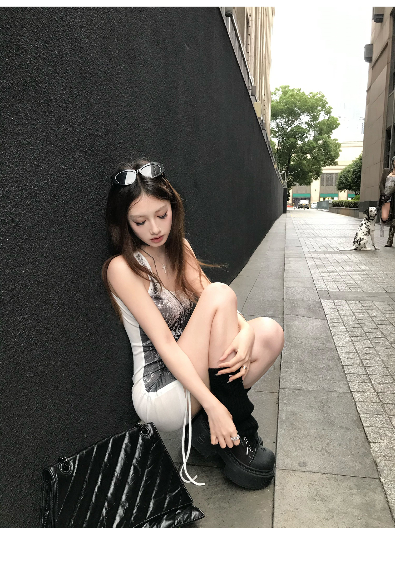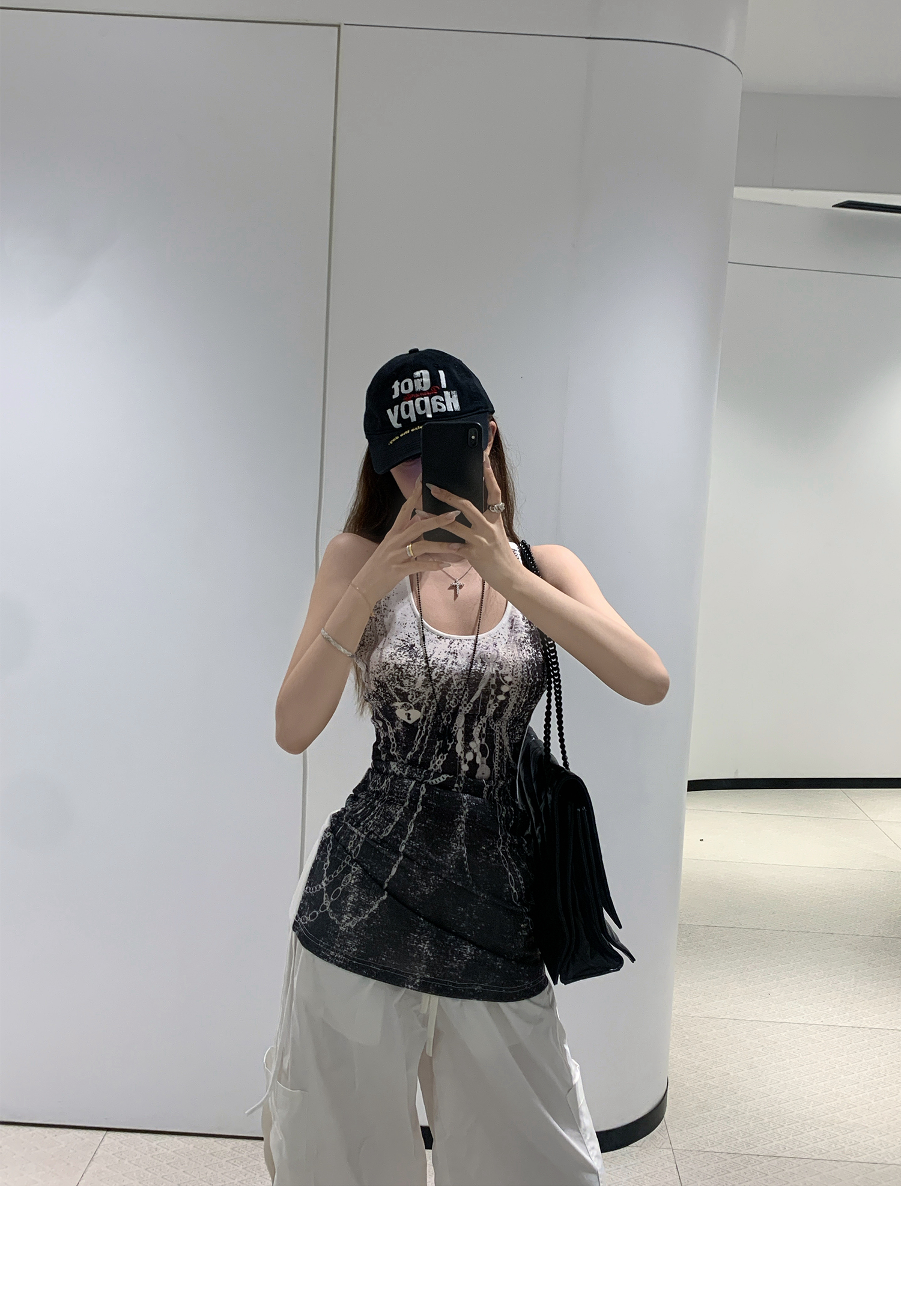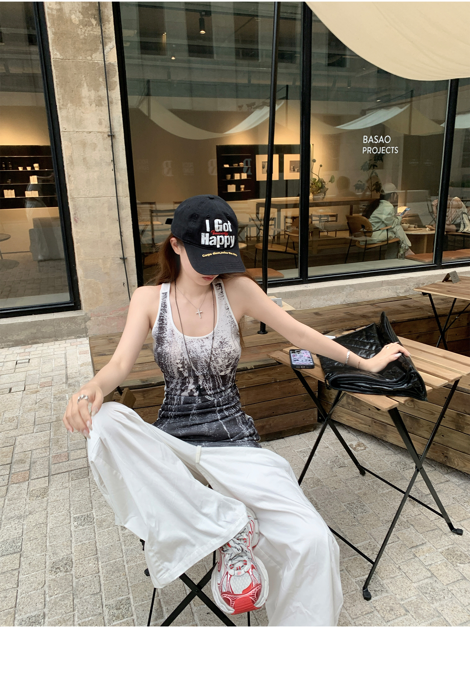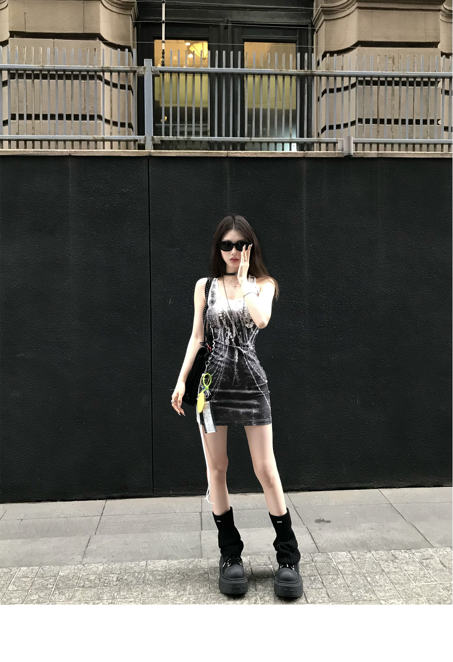 Hong Kong Style Slim Fit Sleeveless Printed Dress - Summer Vest Skirt