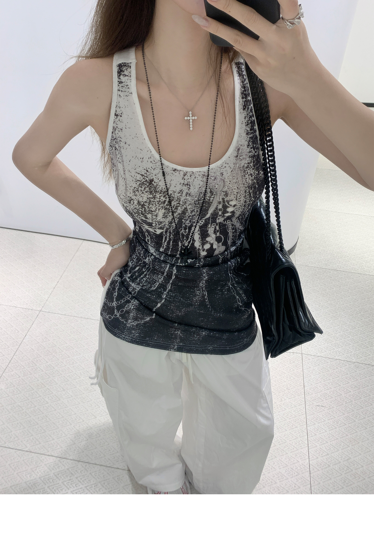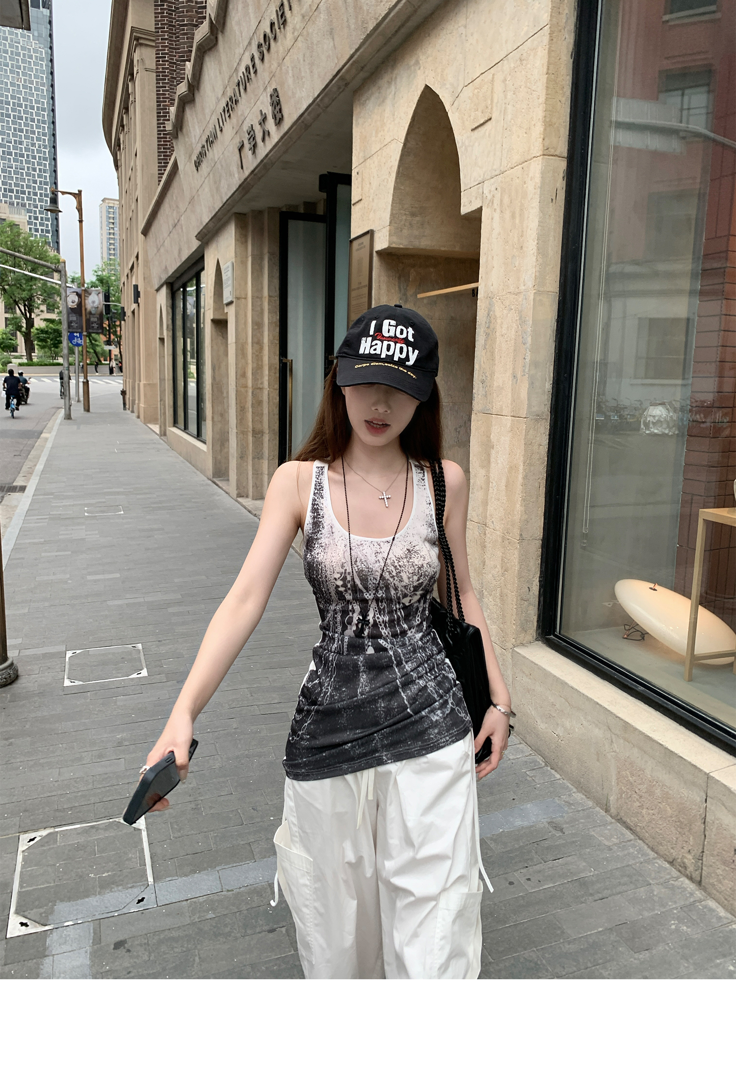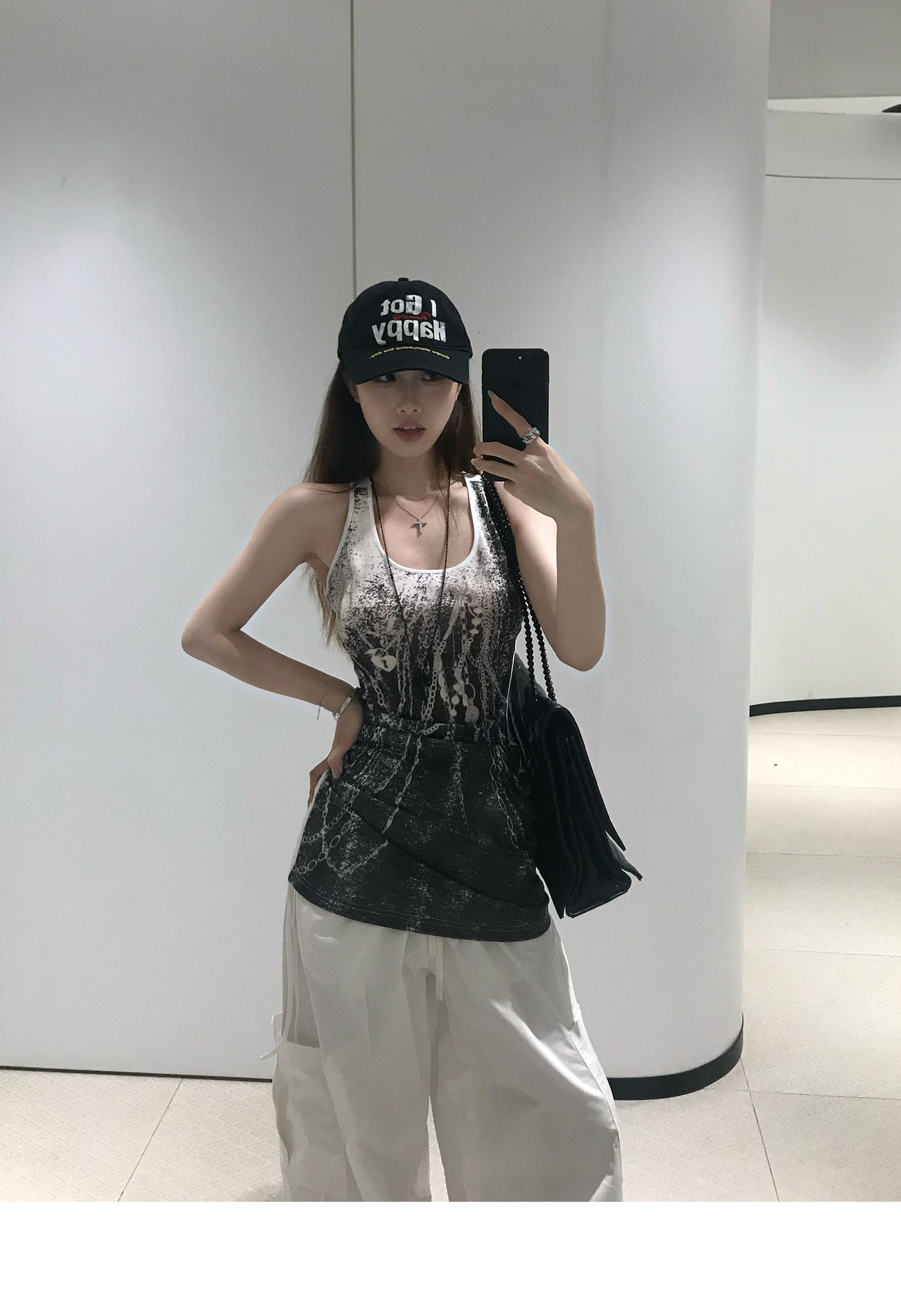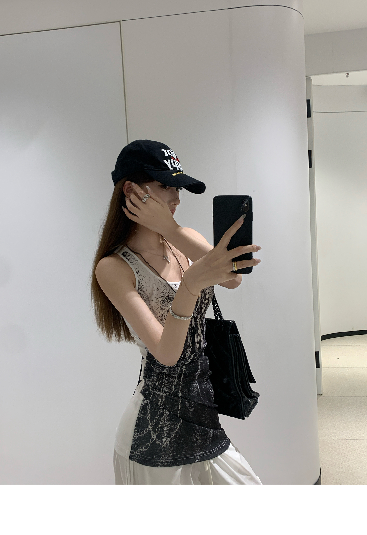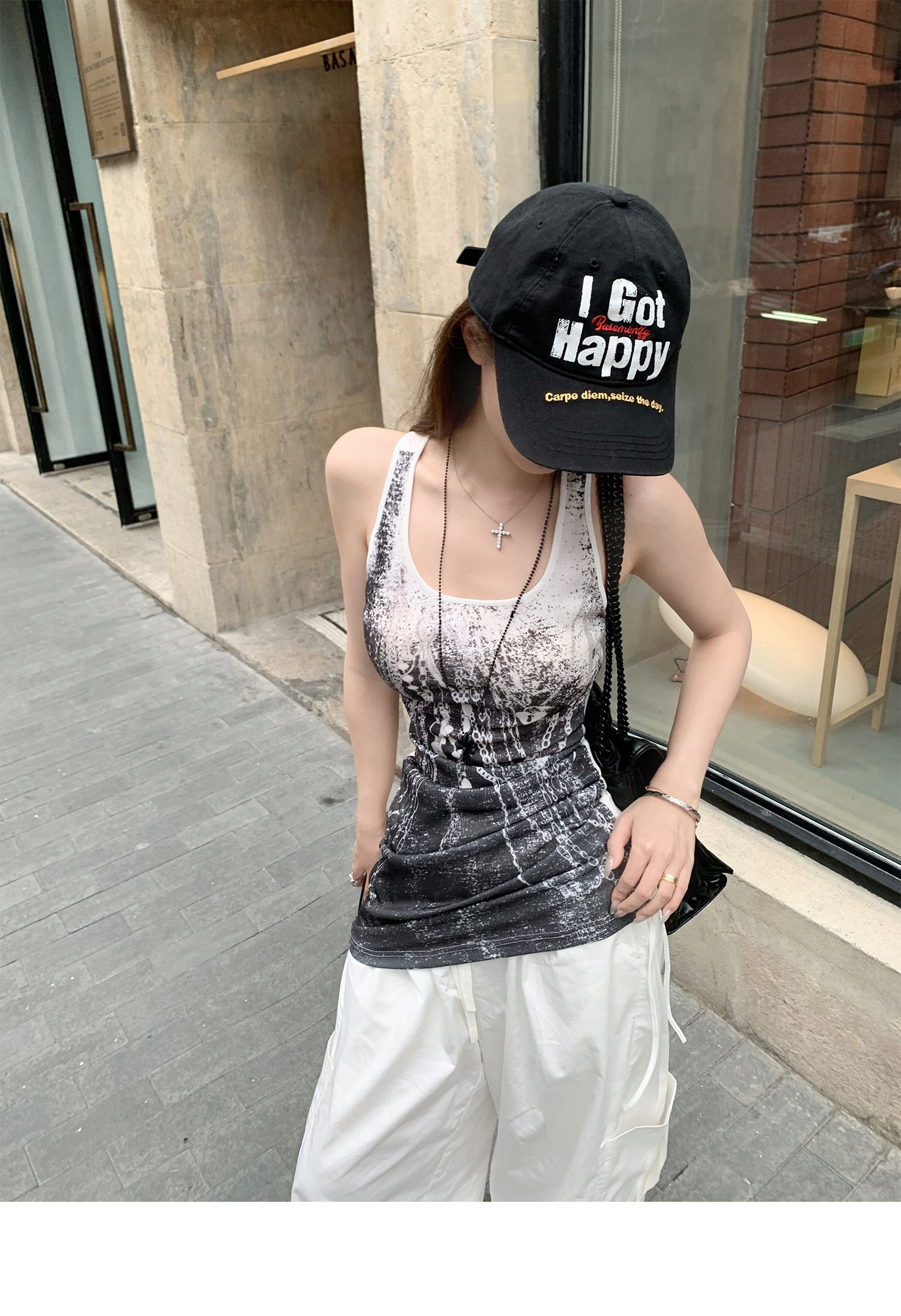 Hong Kong Style Slim Fit Sleeveless Printed Dress - Summer Vest Skirt