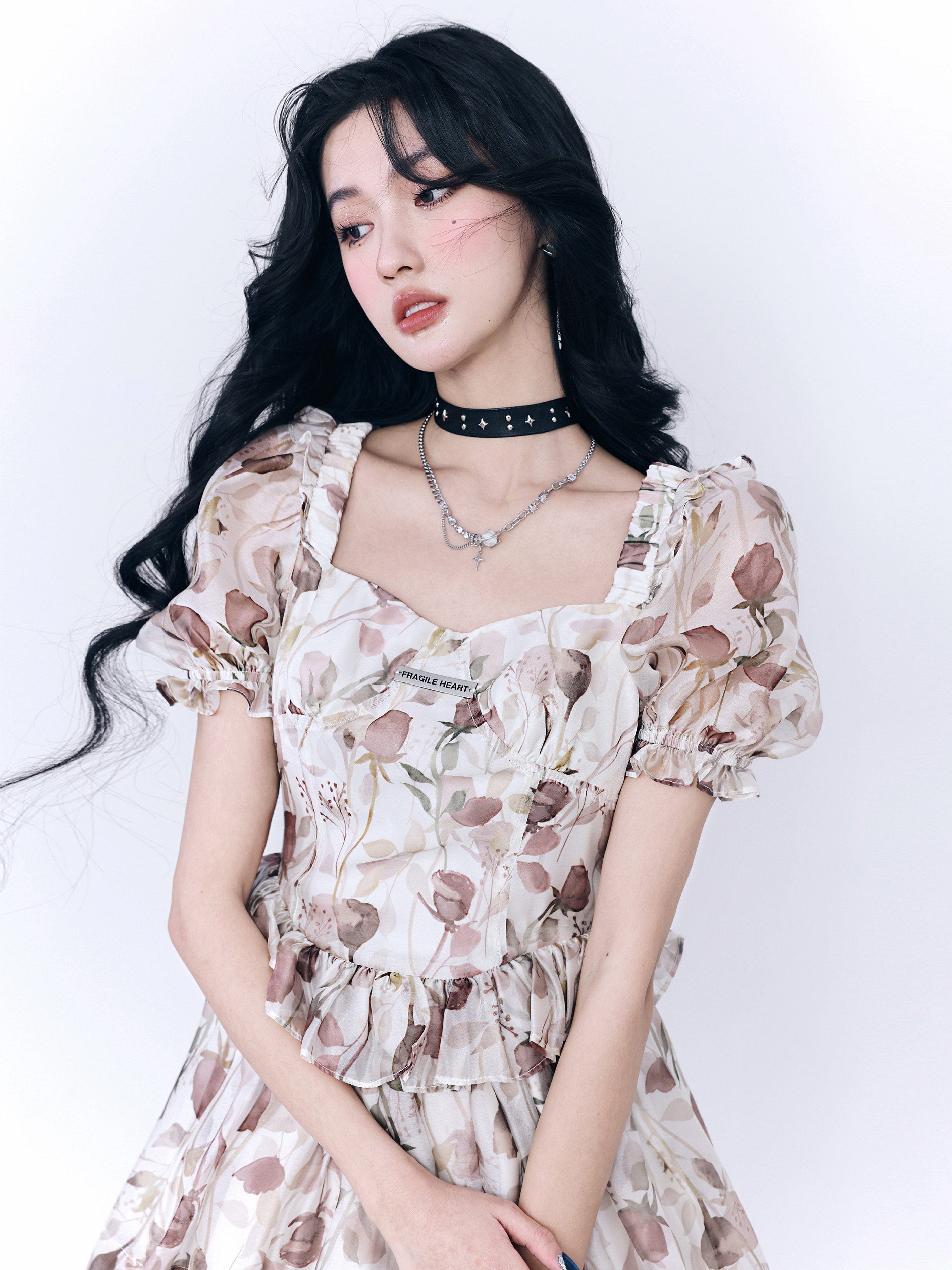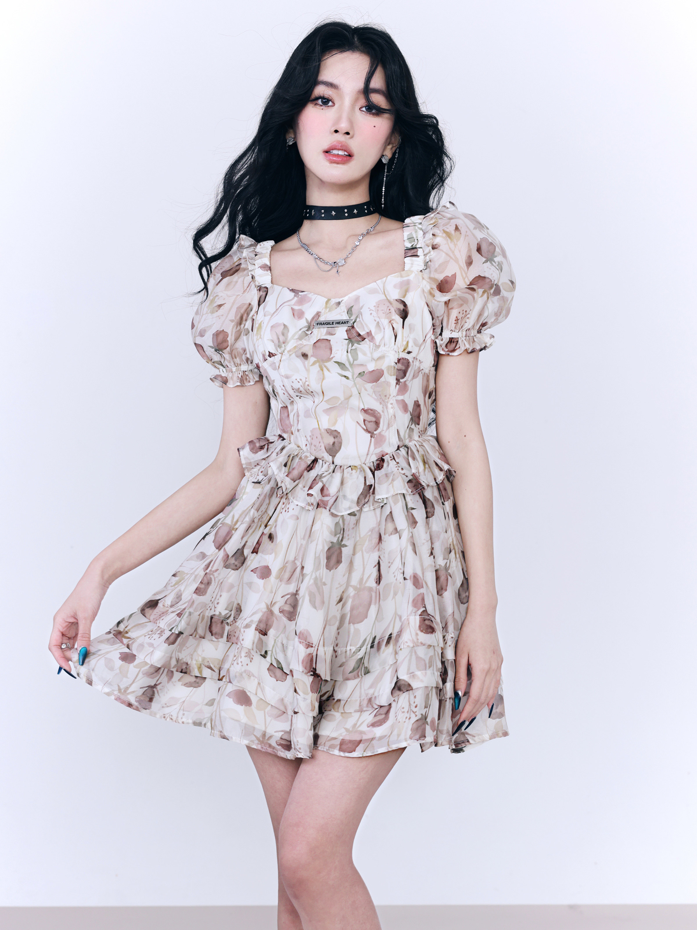 Caramel Macchiato Princess Bubble Sleeve Dress