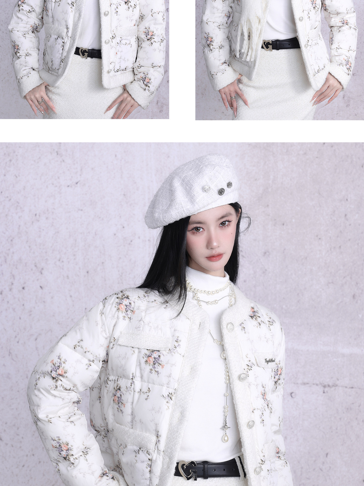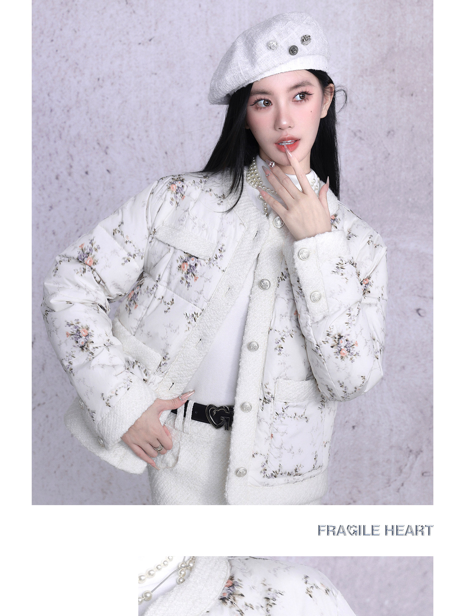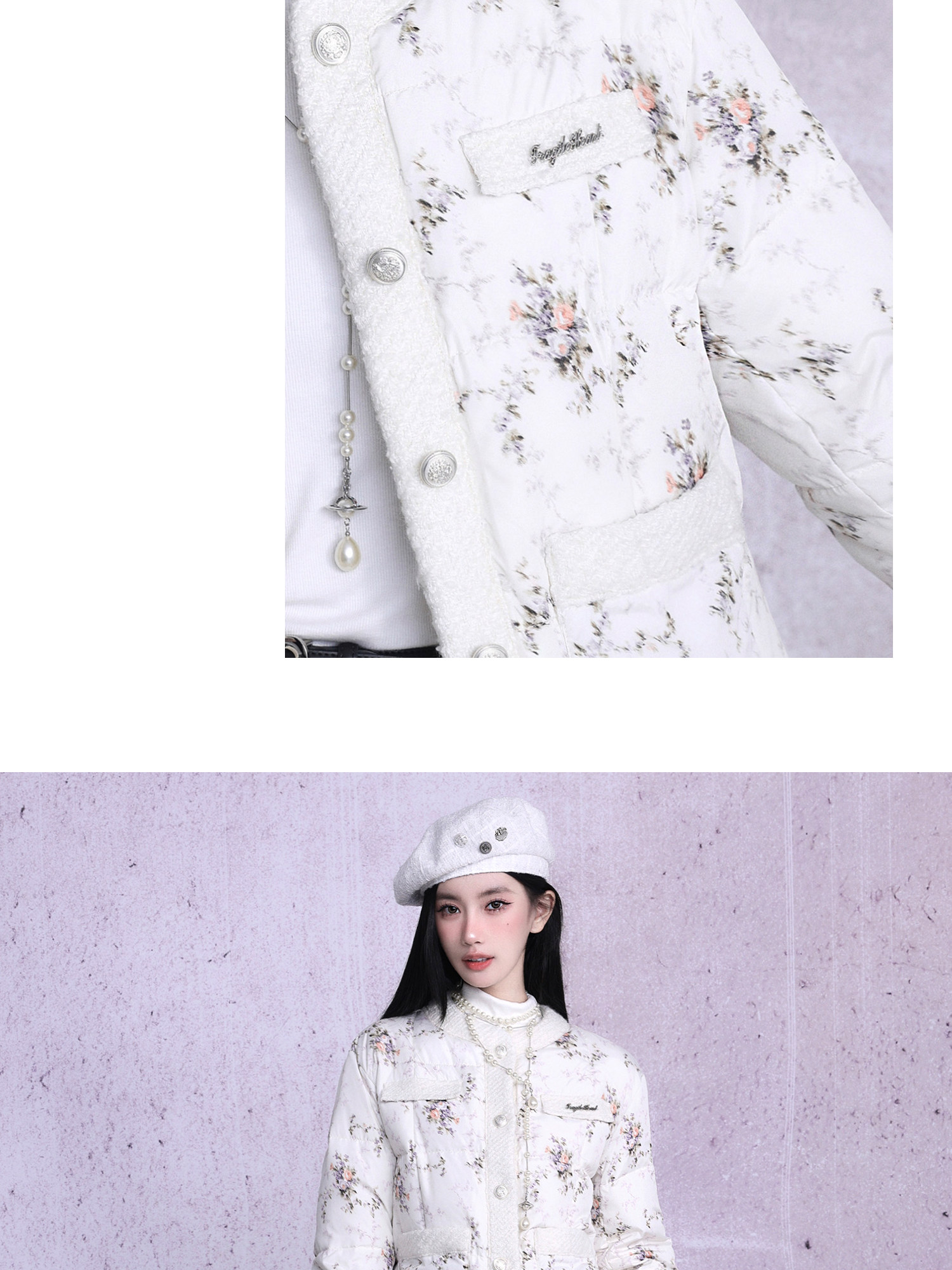 White Tower Rose Patchwork Cotton Jacket