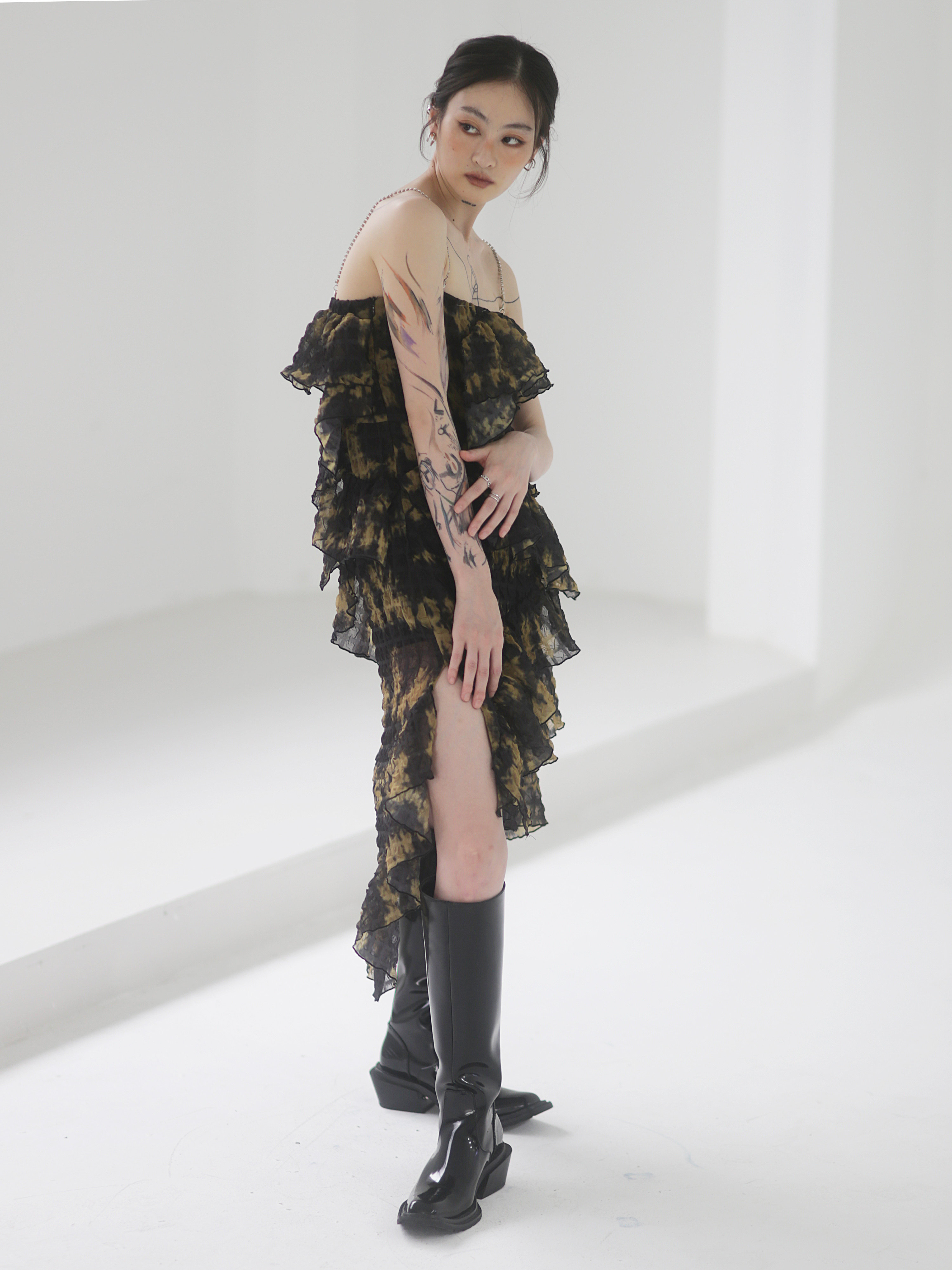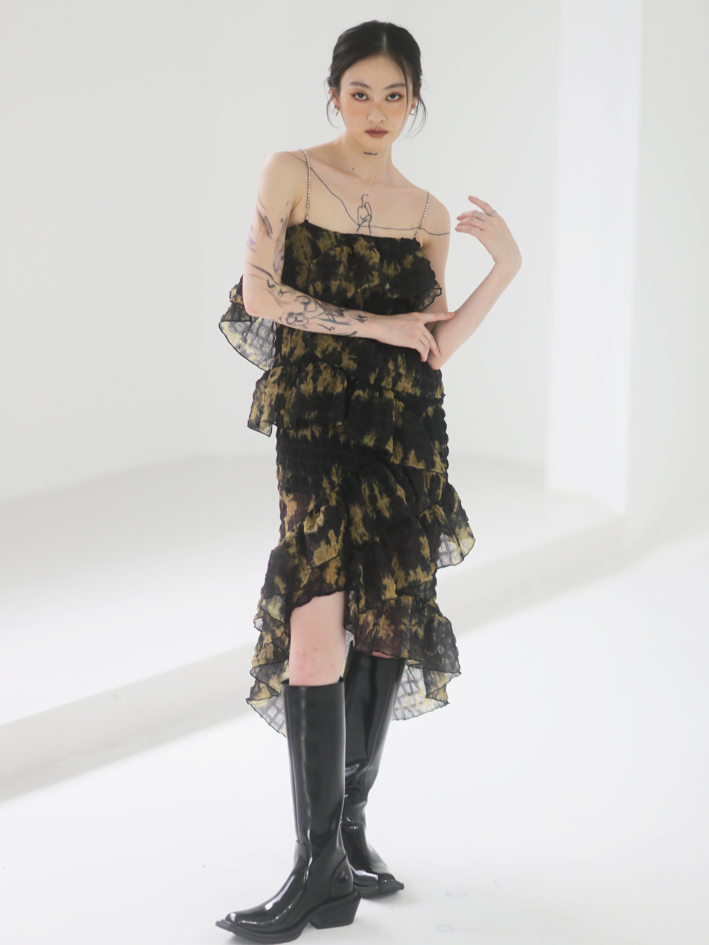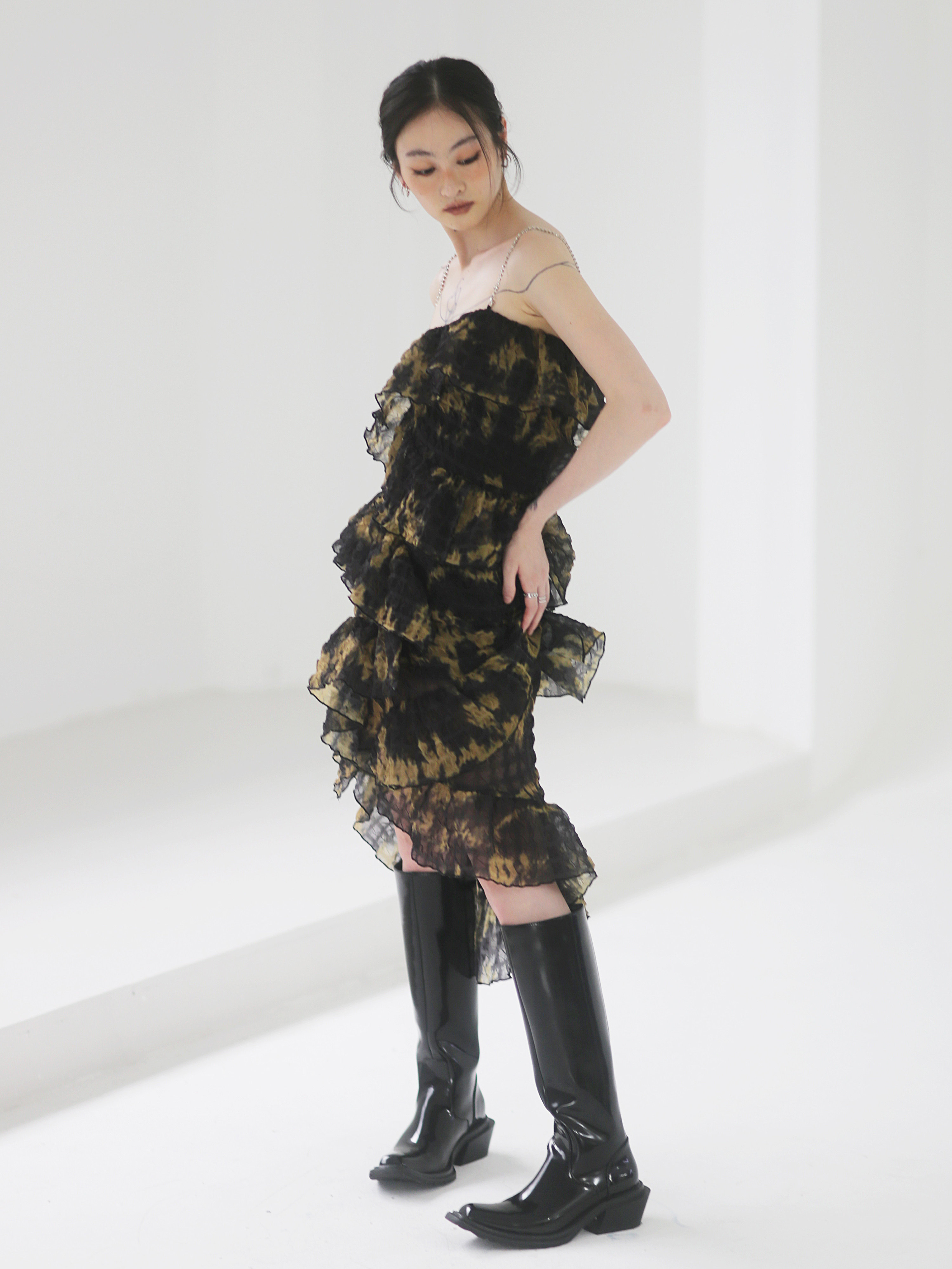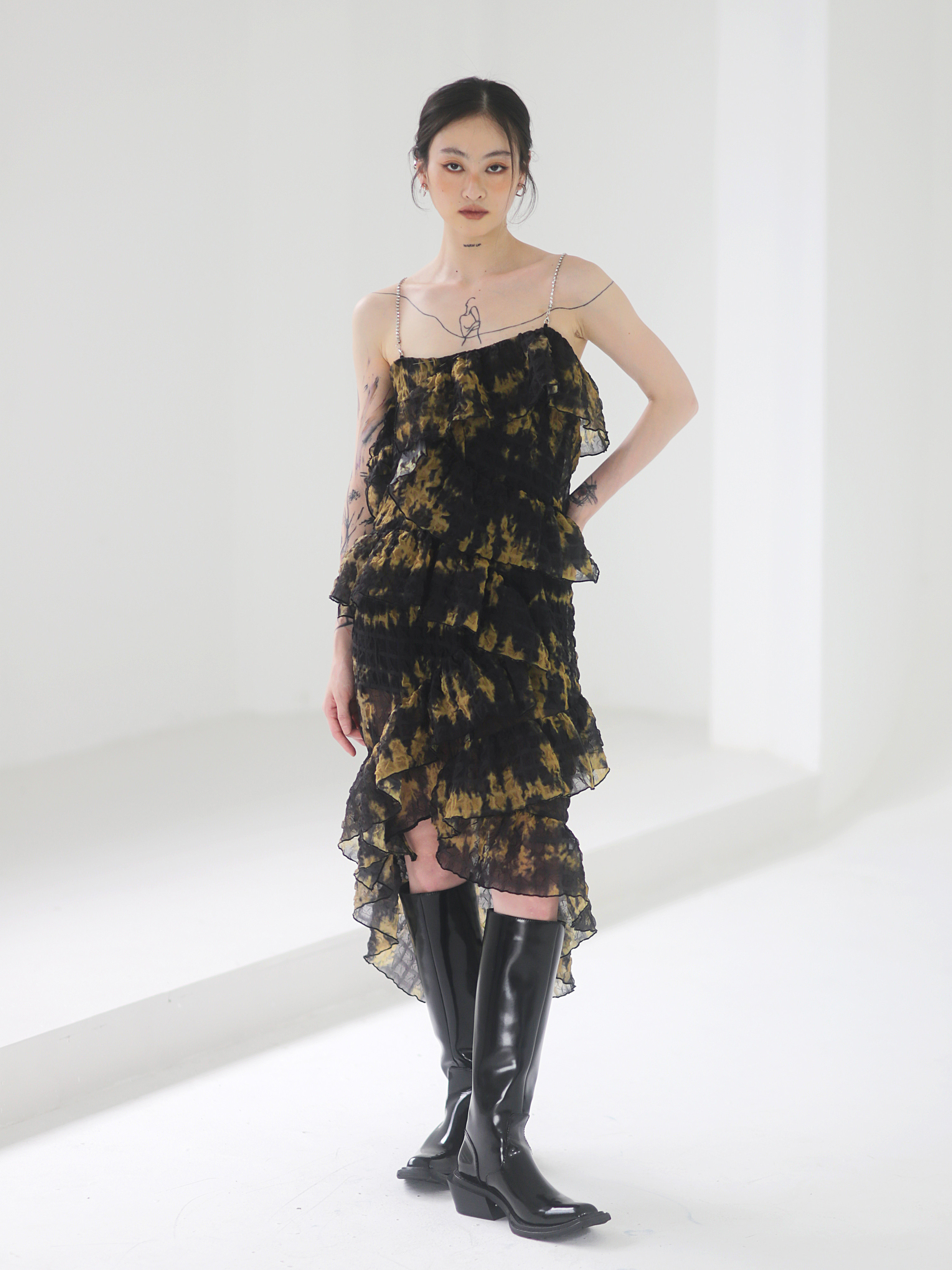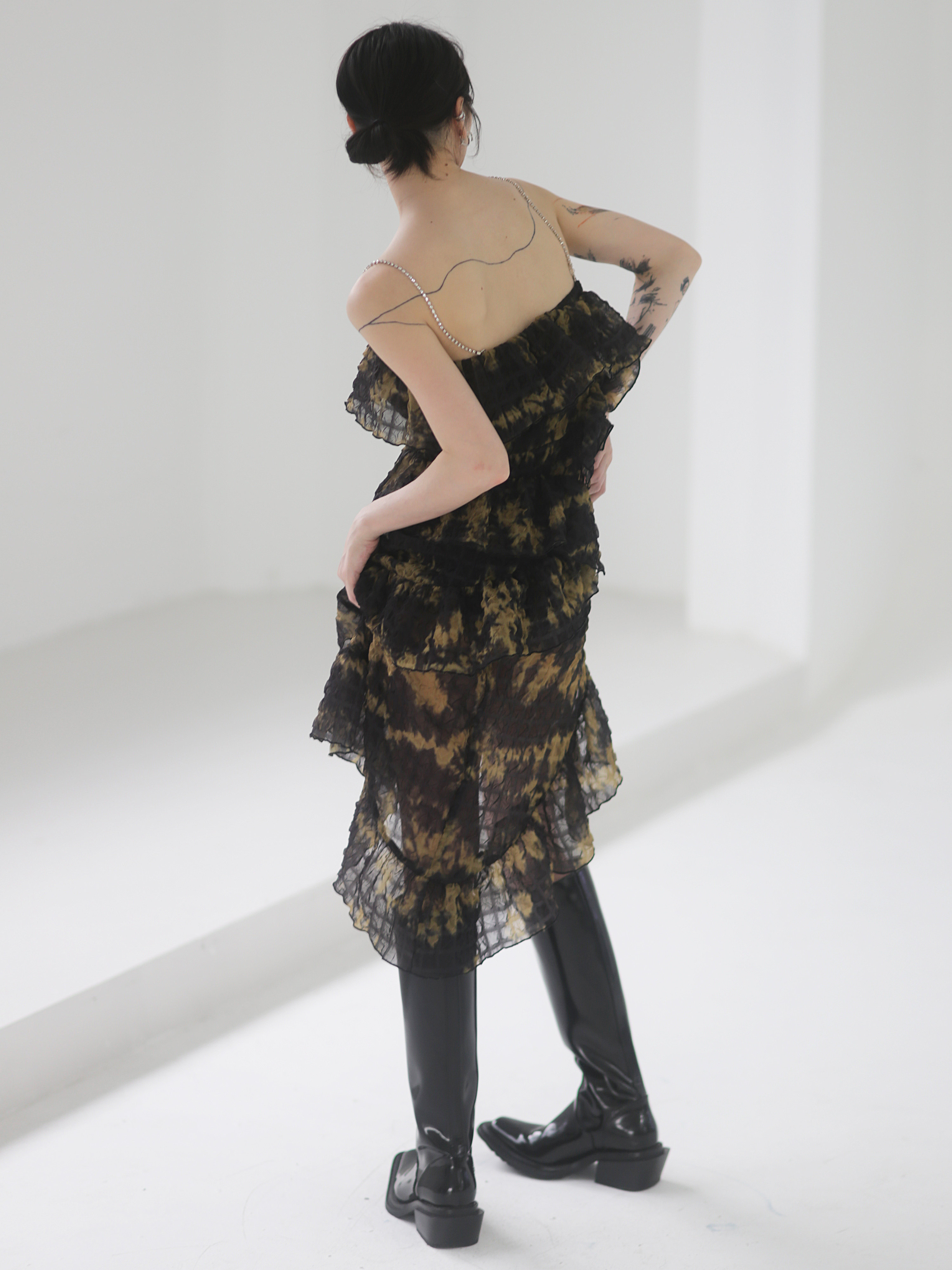 Chinese Tie Dye Printed Ruffle Edge Camisole Skirt