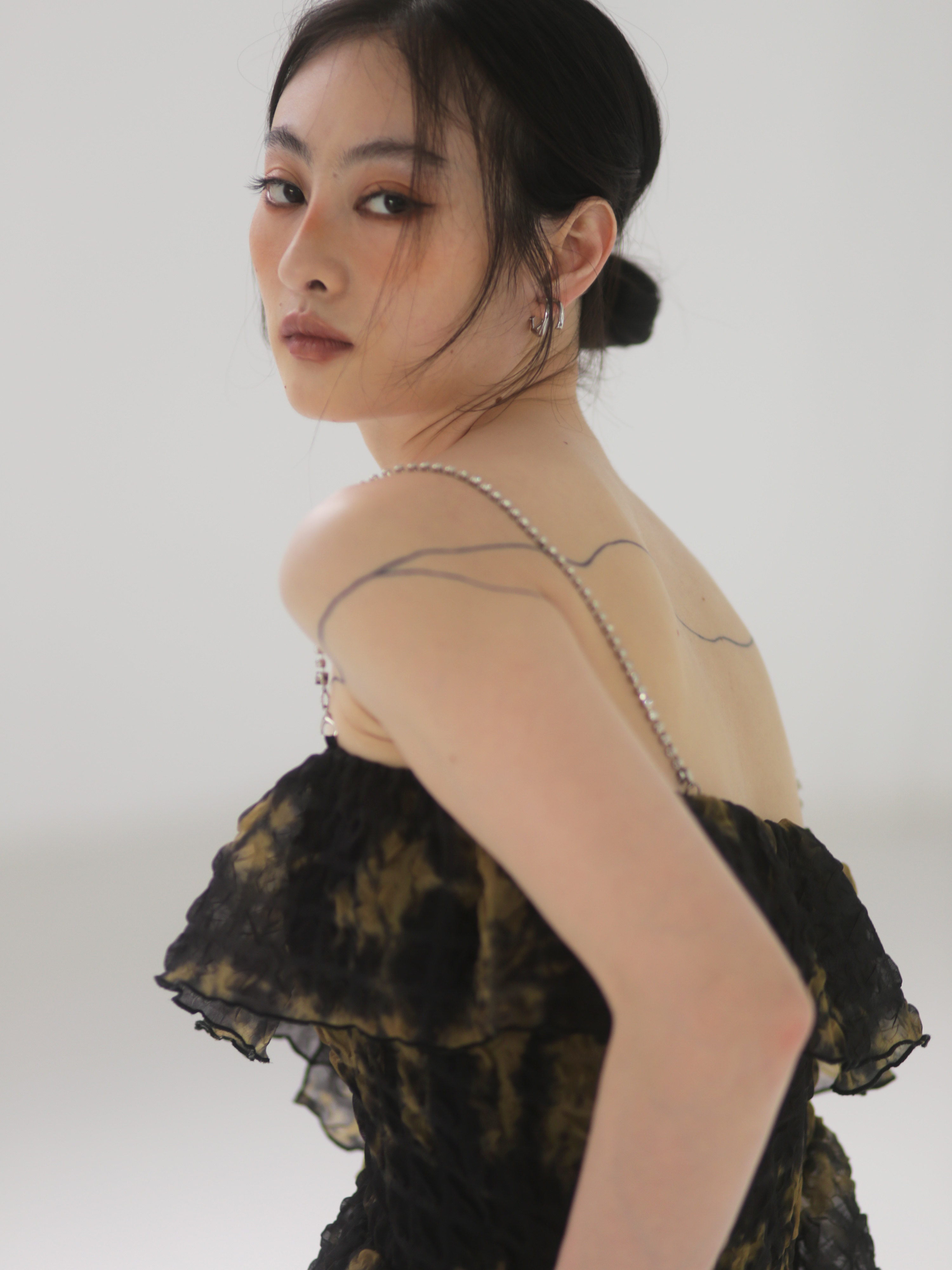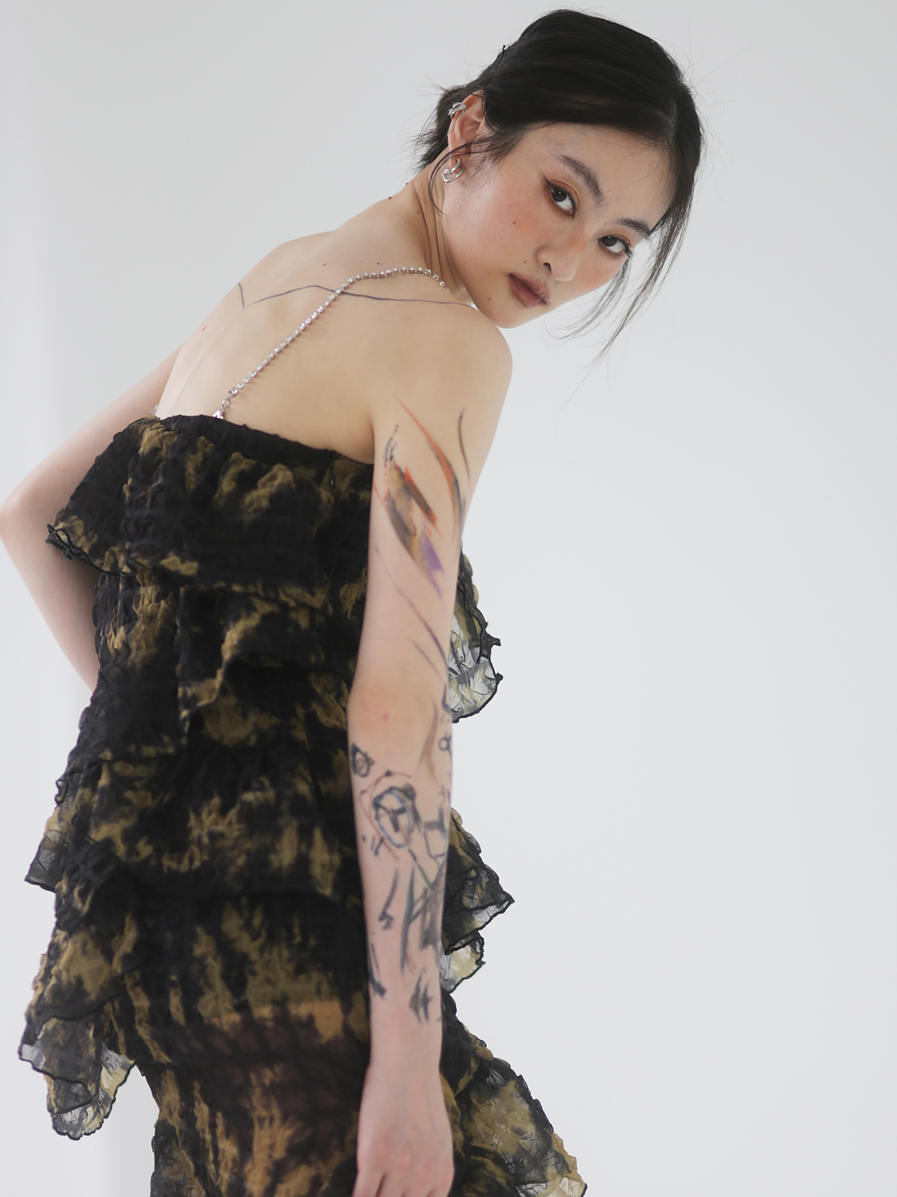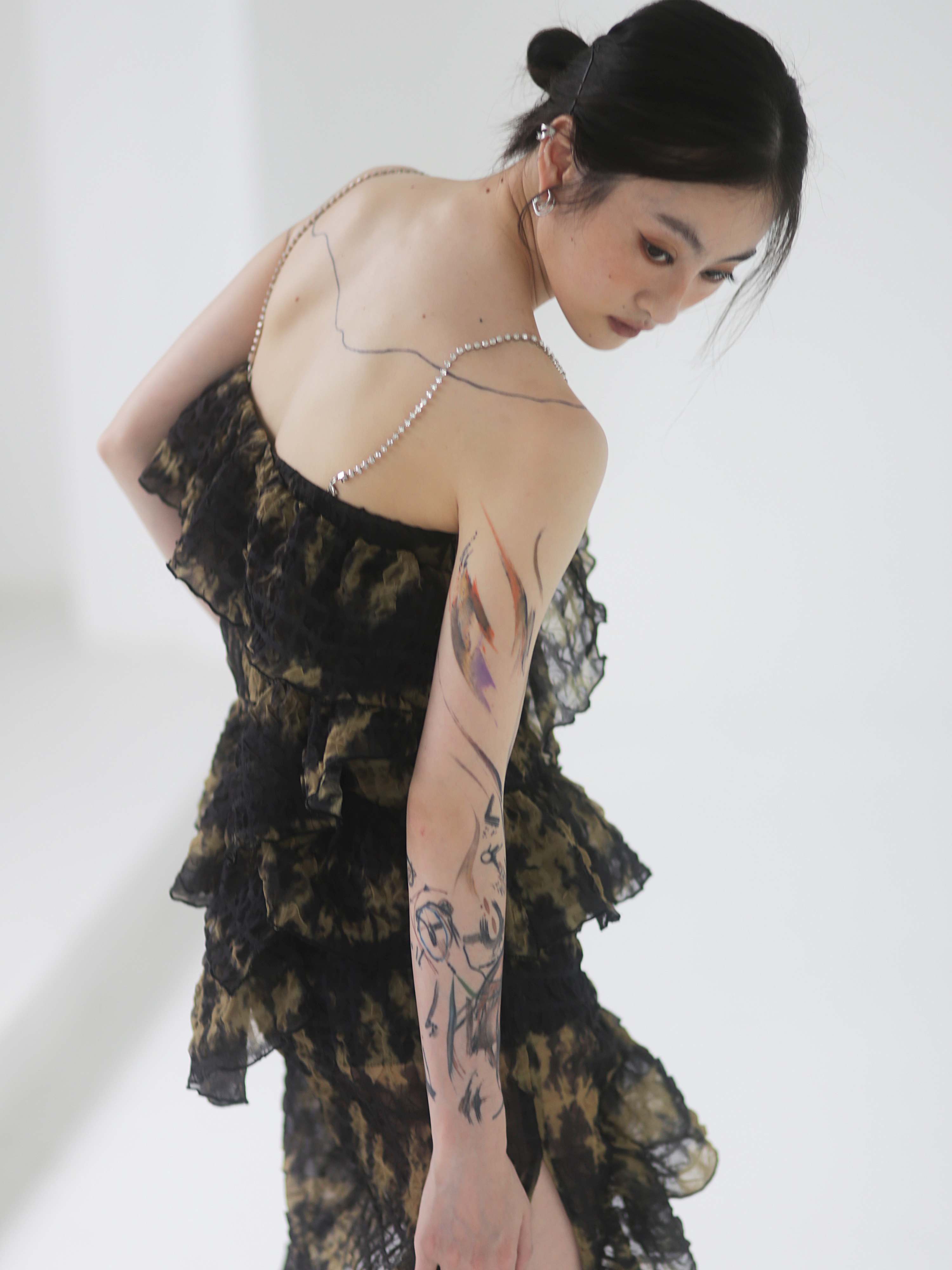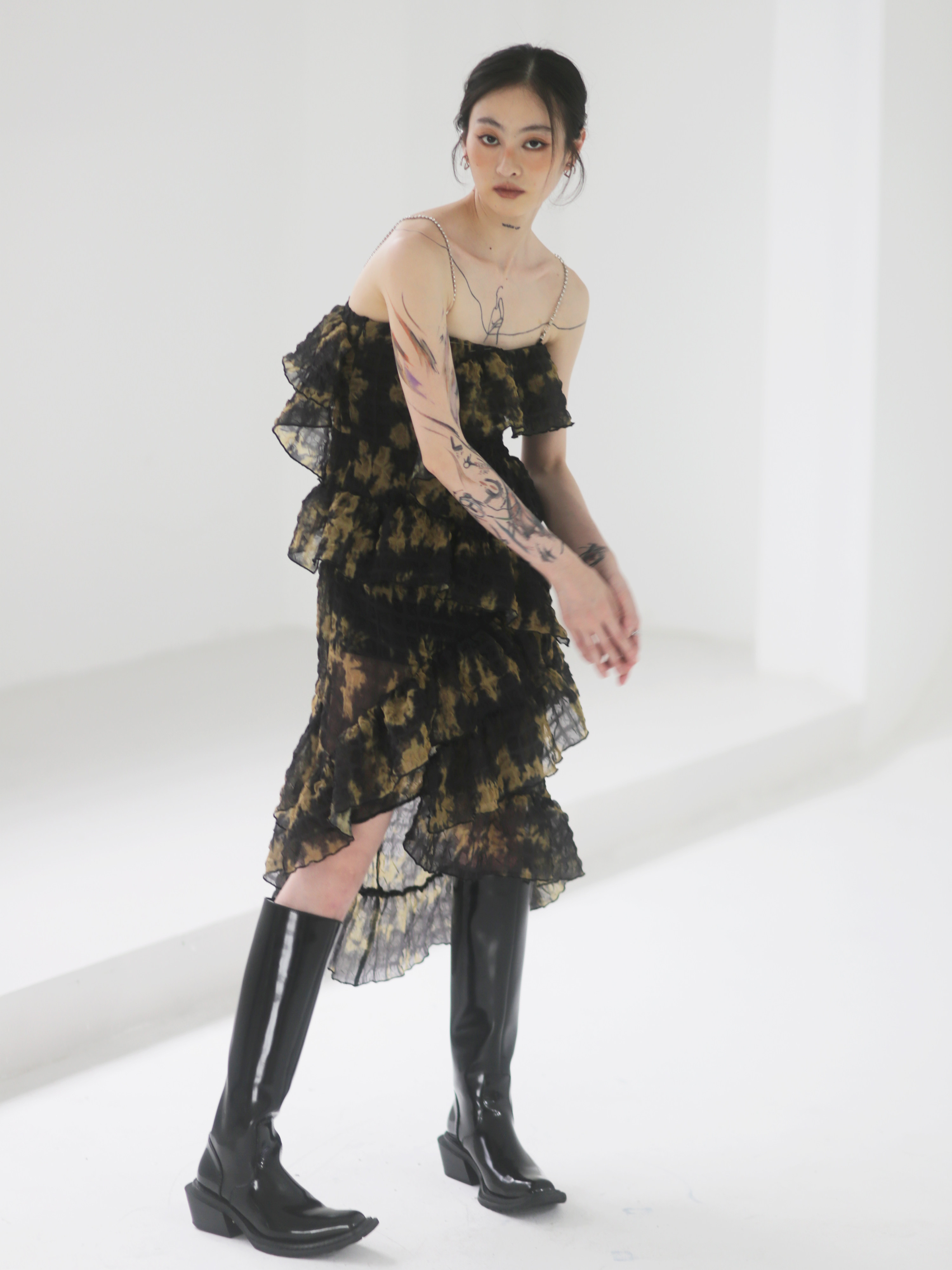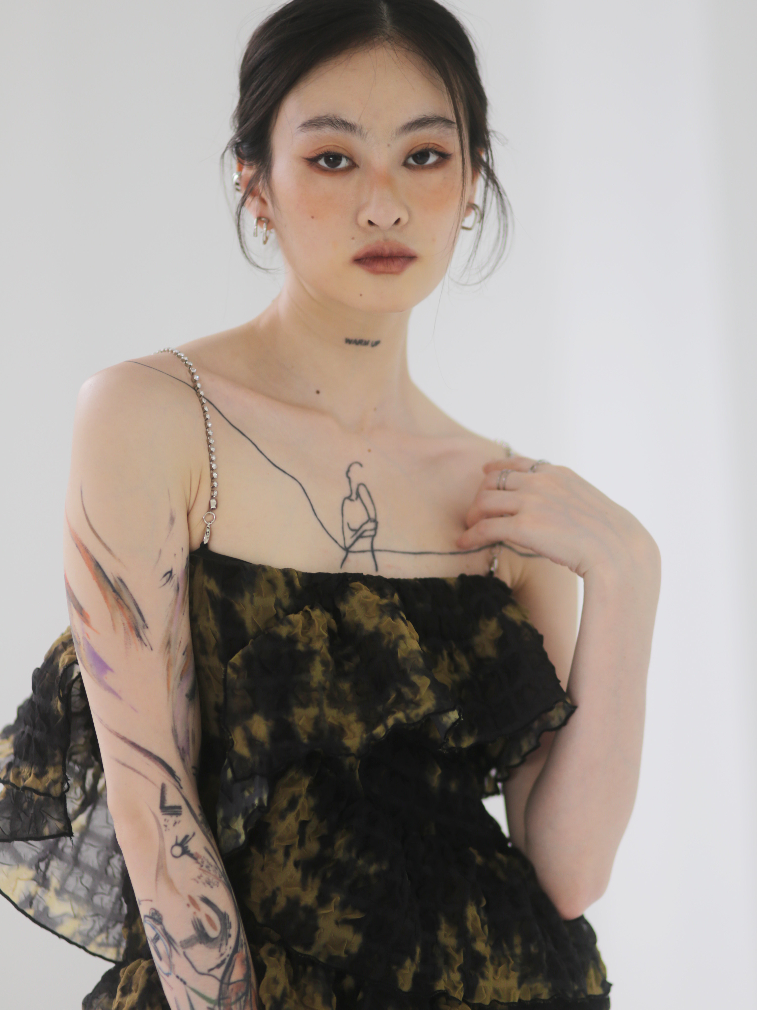 Chinese Tie Dye Printed Ruffle Edge Camisole Skirt