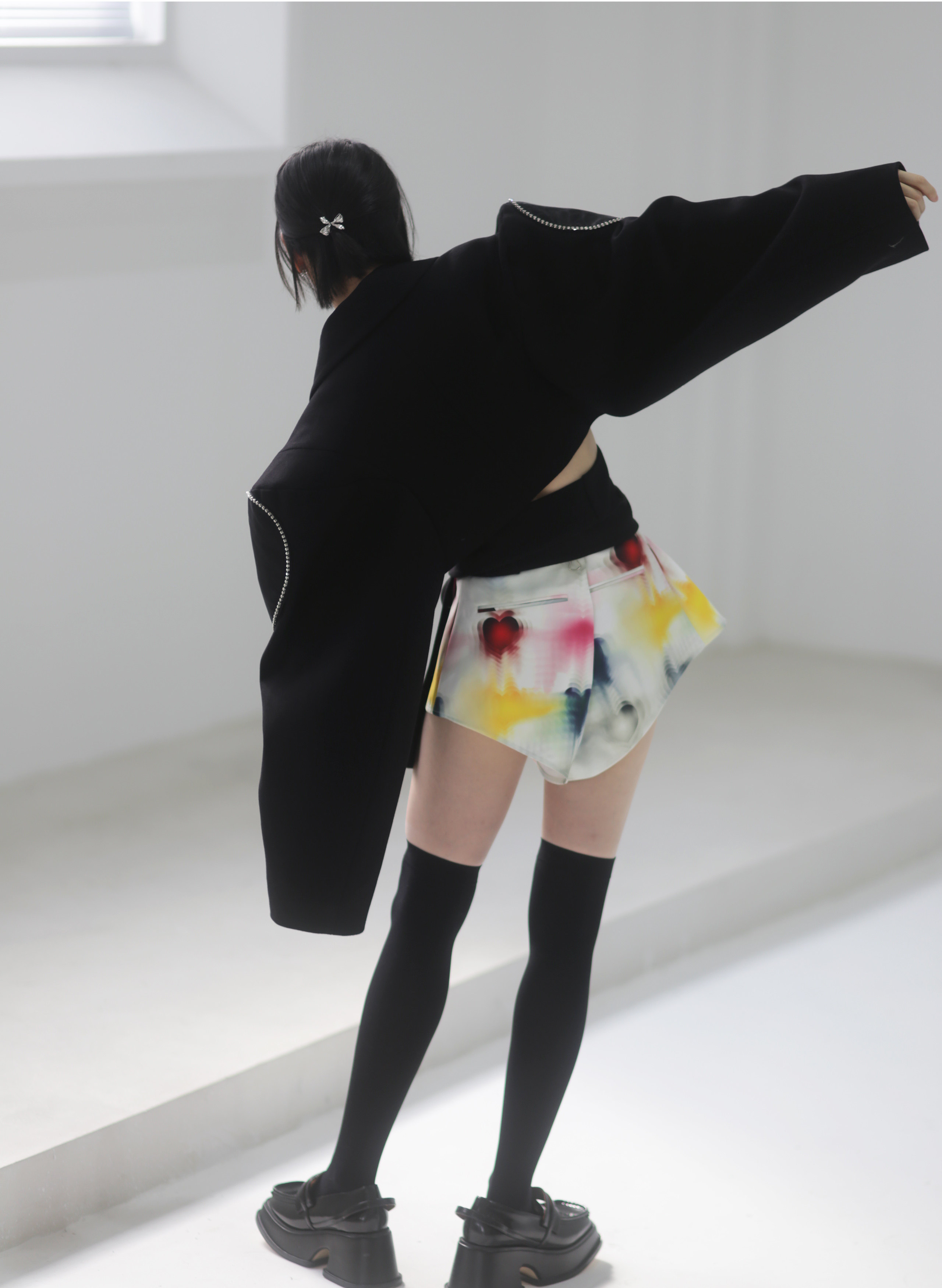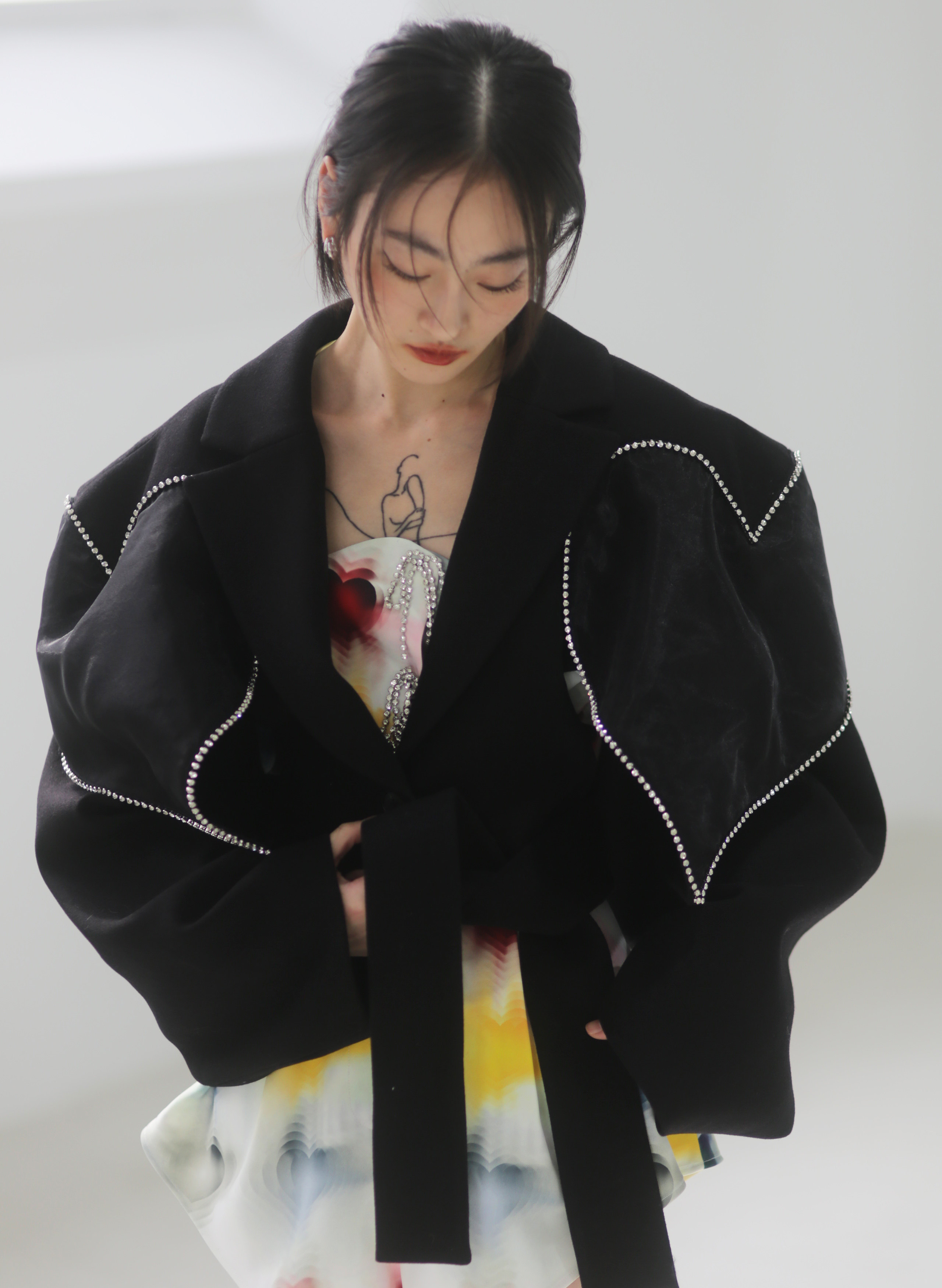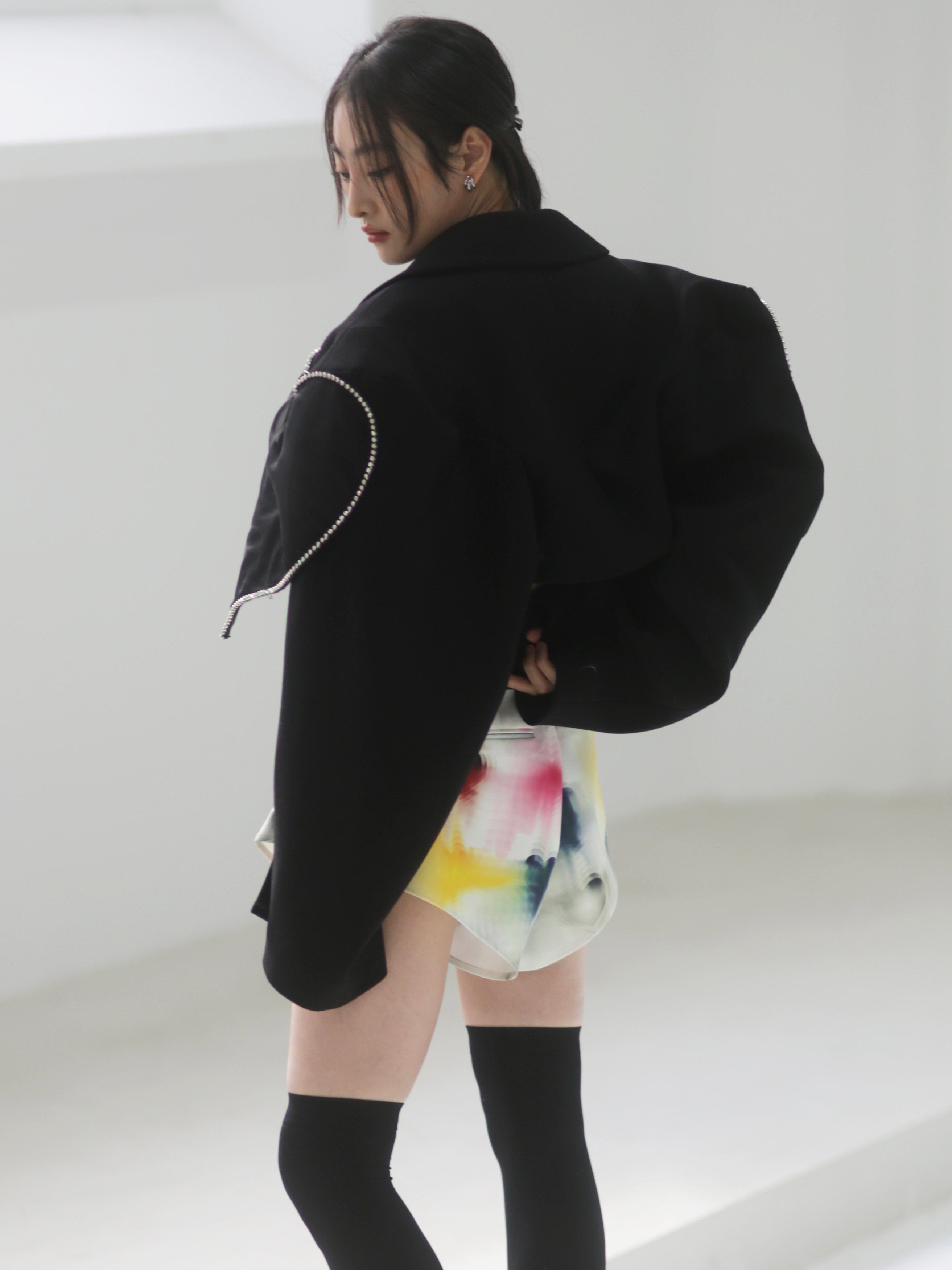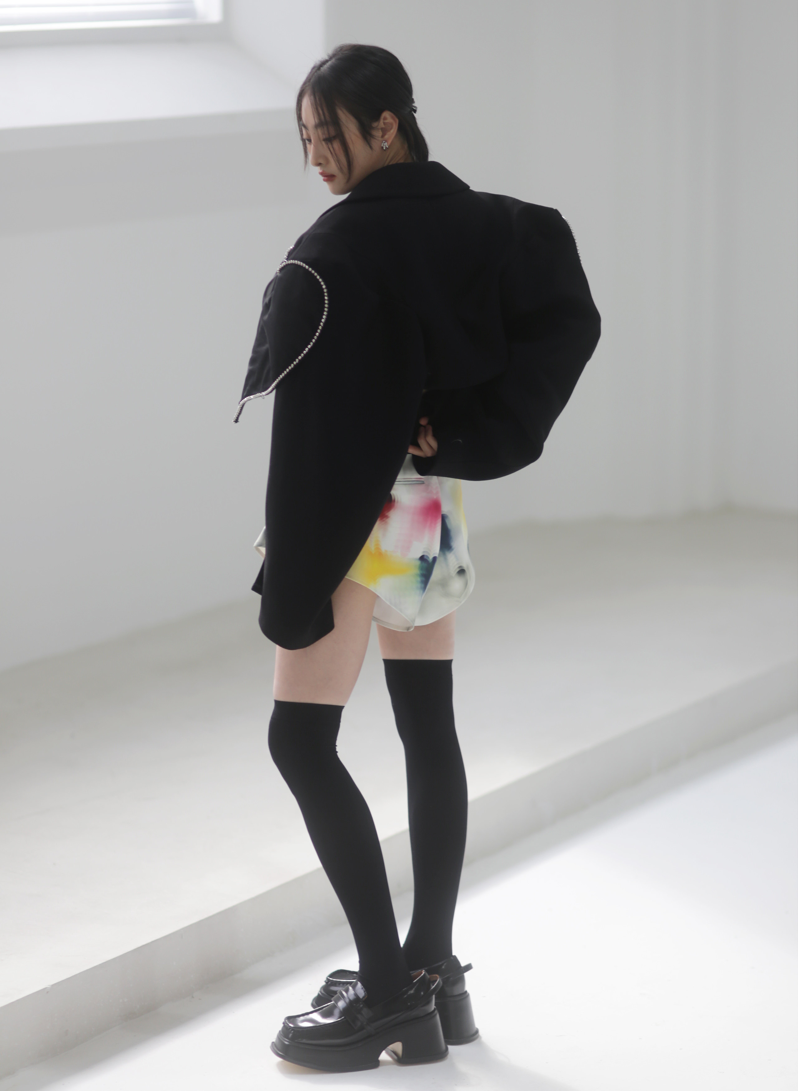 Spade Heart Spliced Bright Diamond Woolen Coat