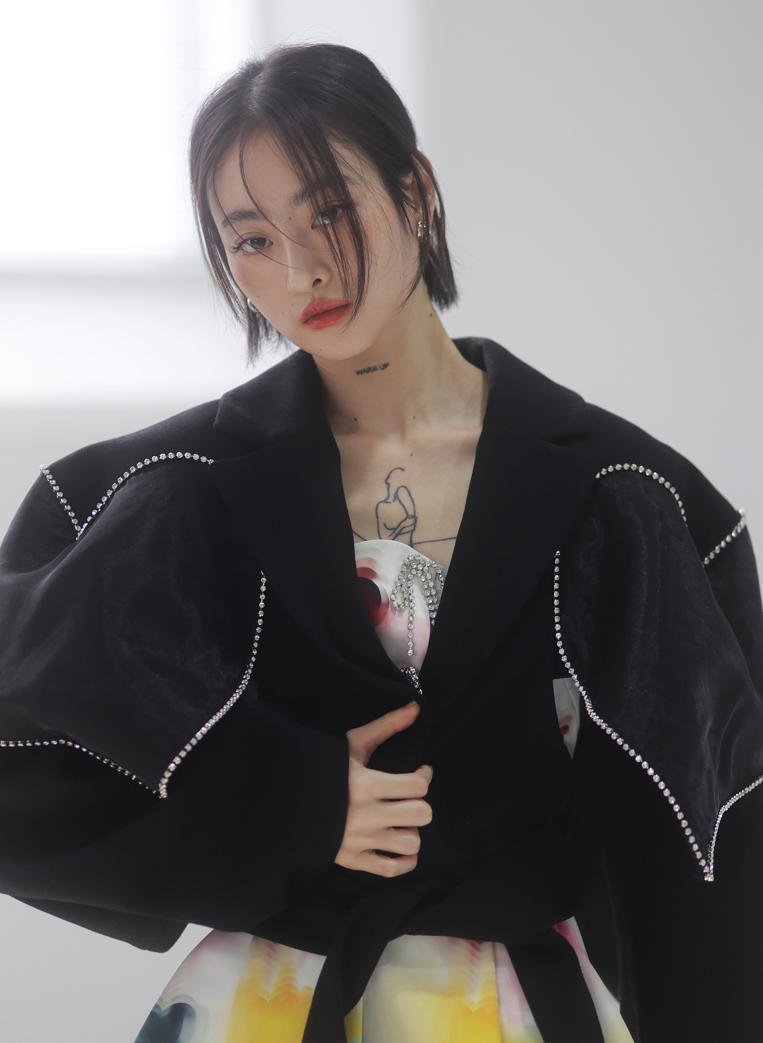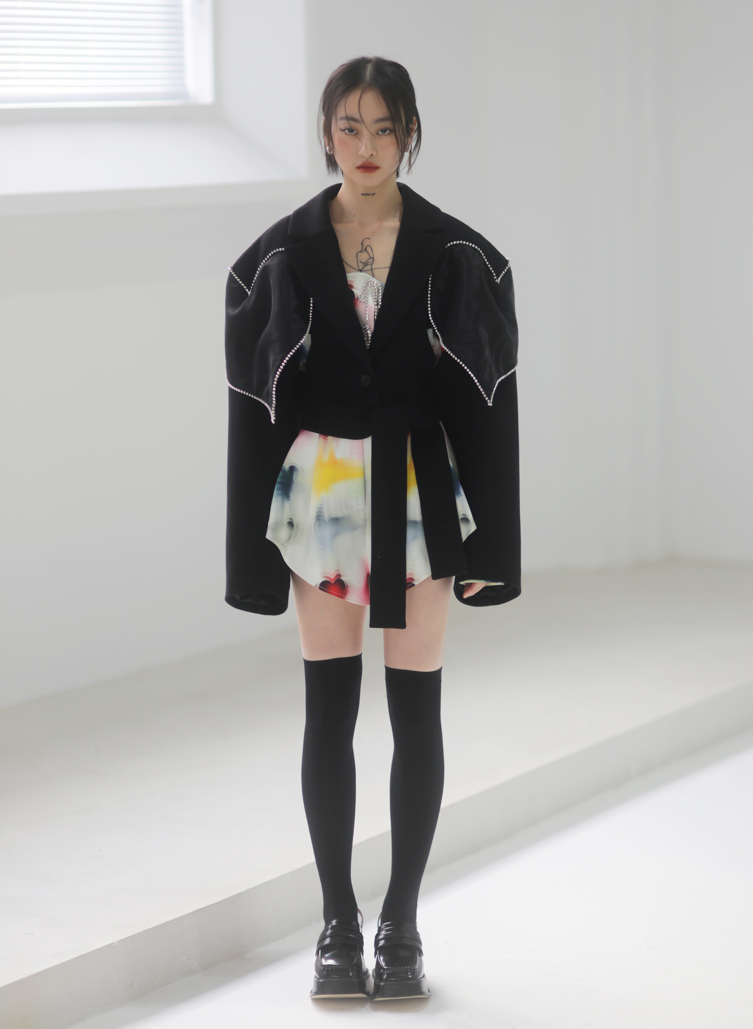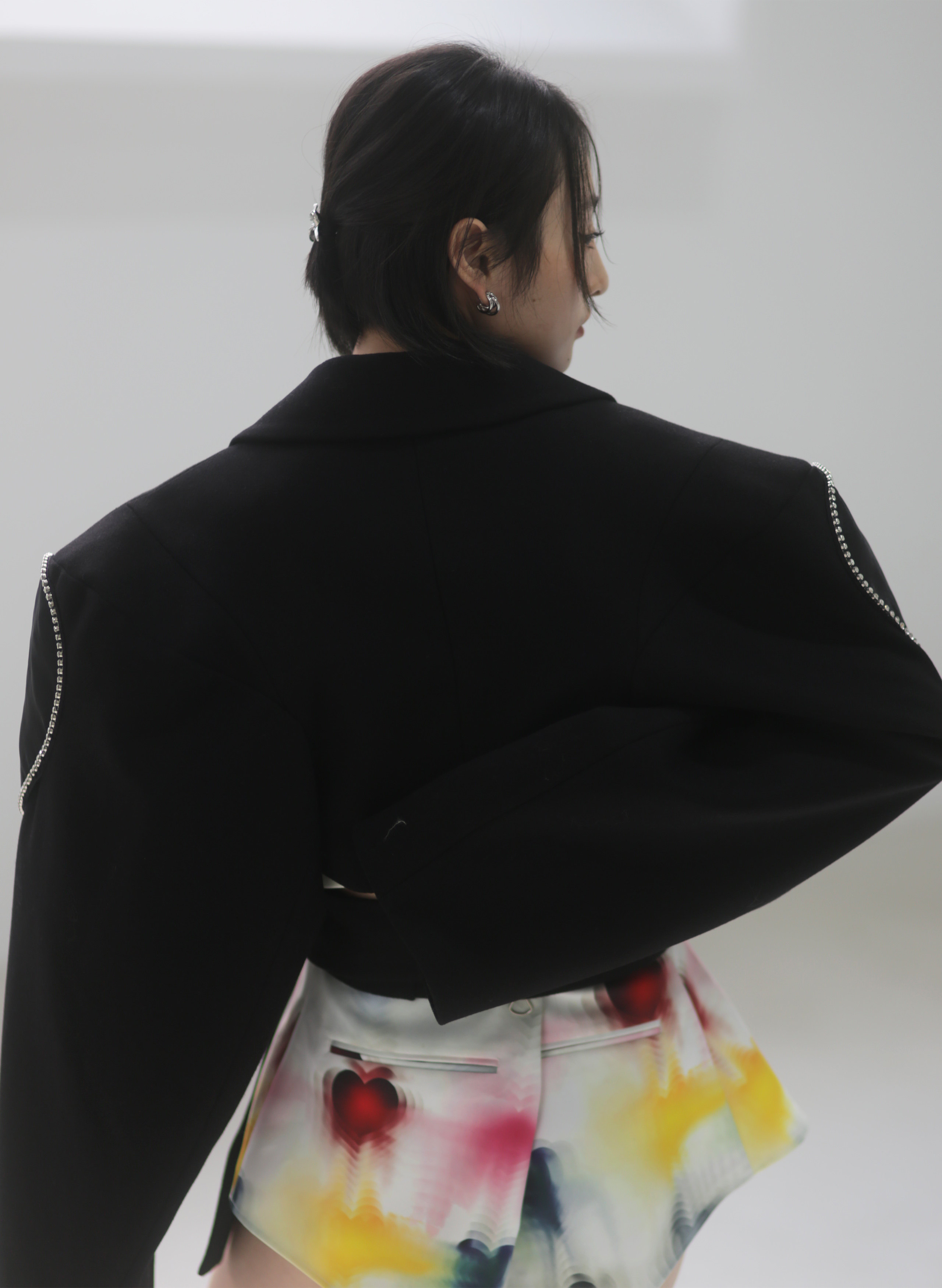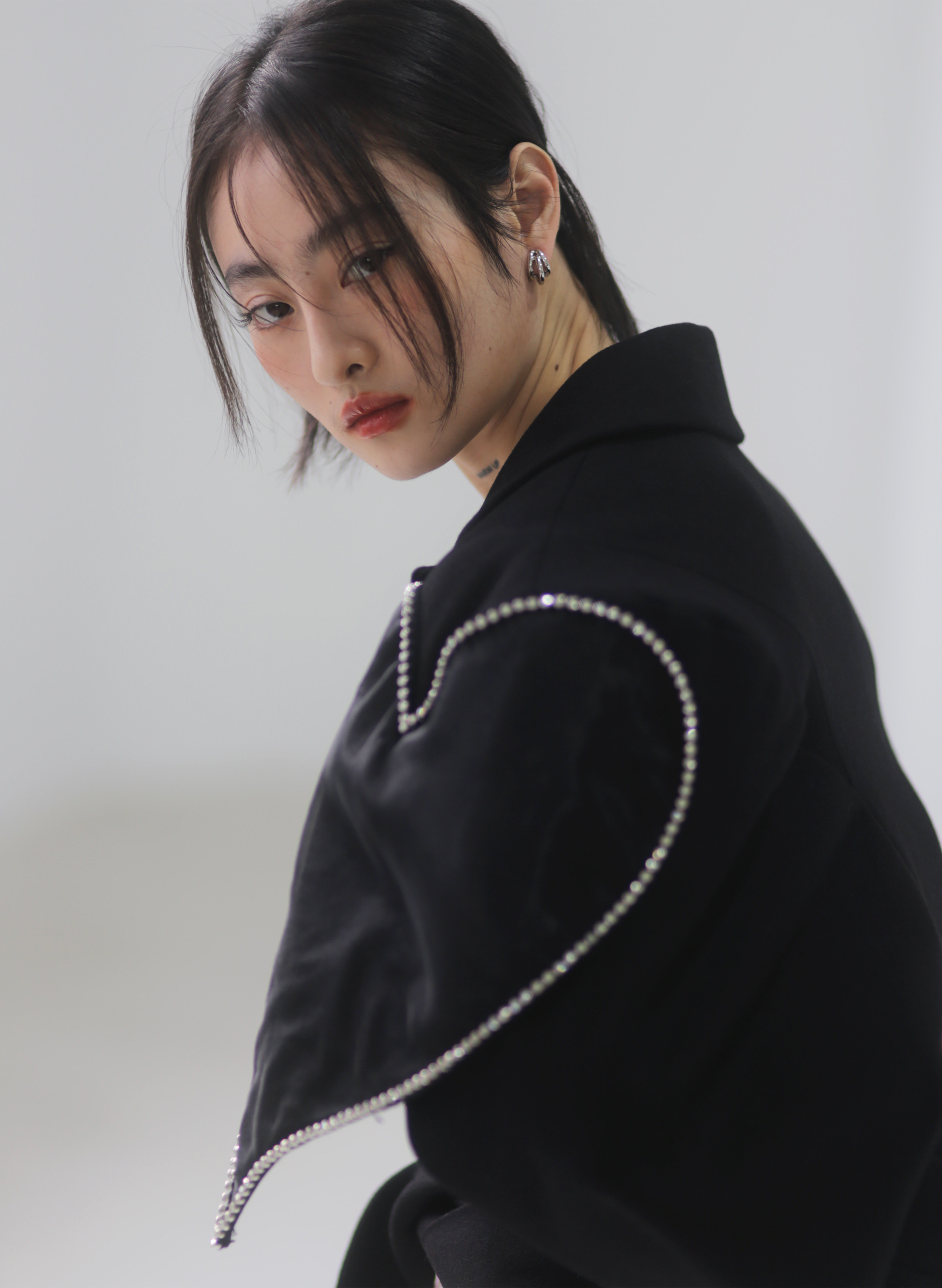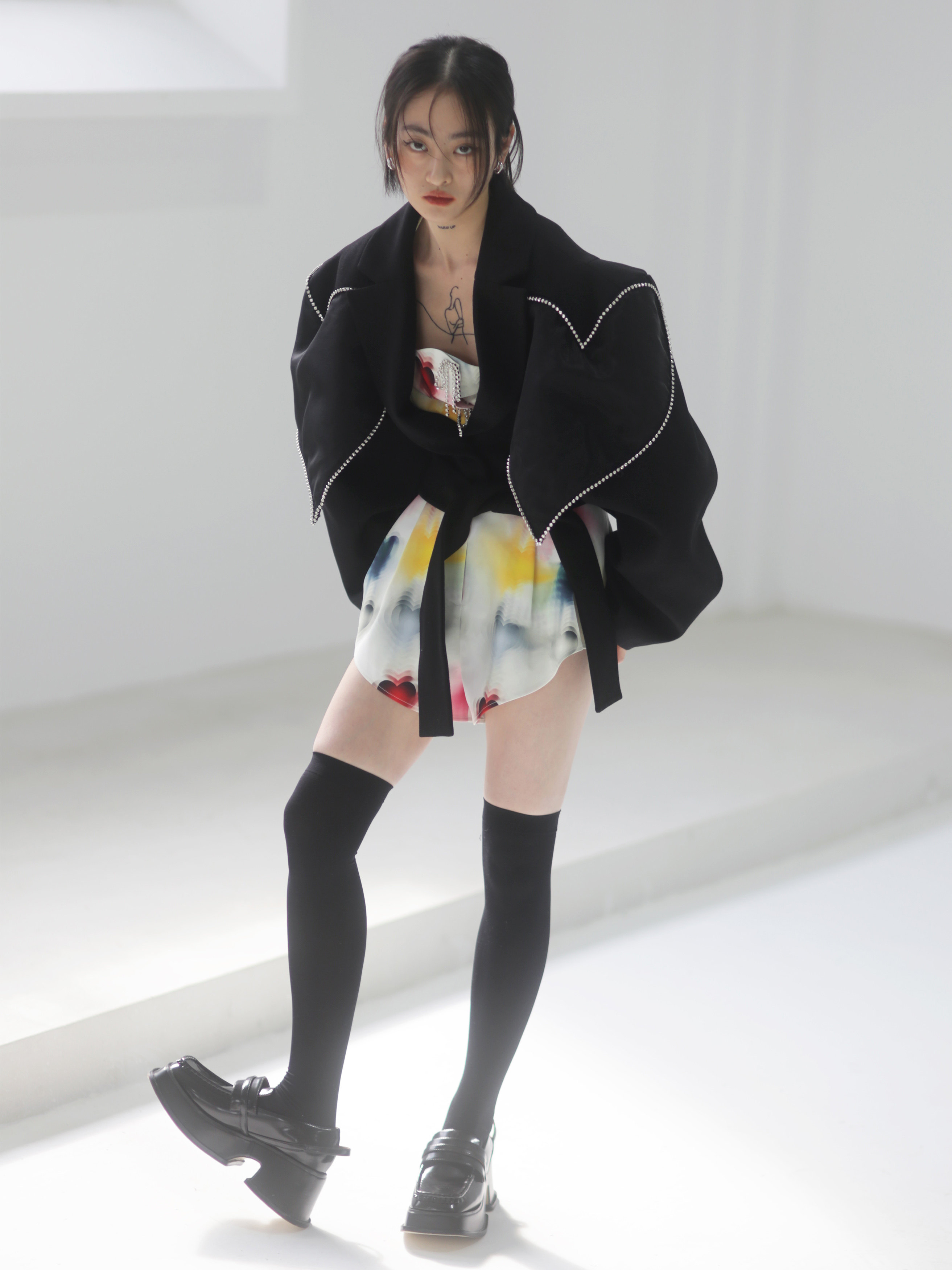 Spade Heart Spliced Bright Diamond Woolen Coat