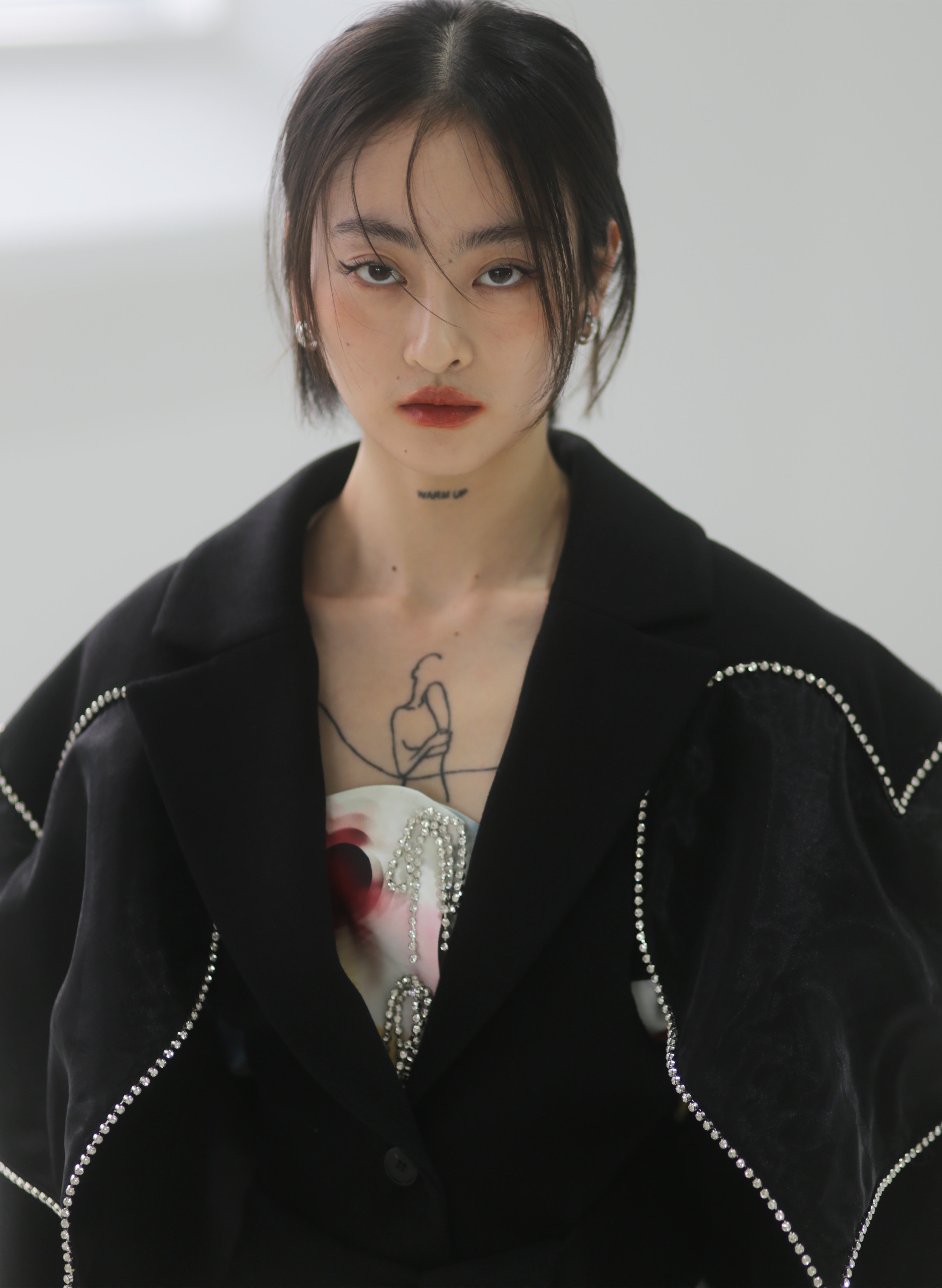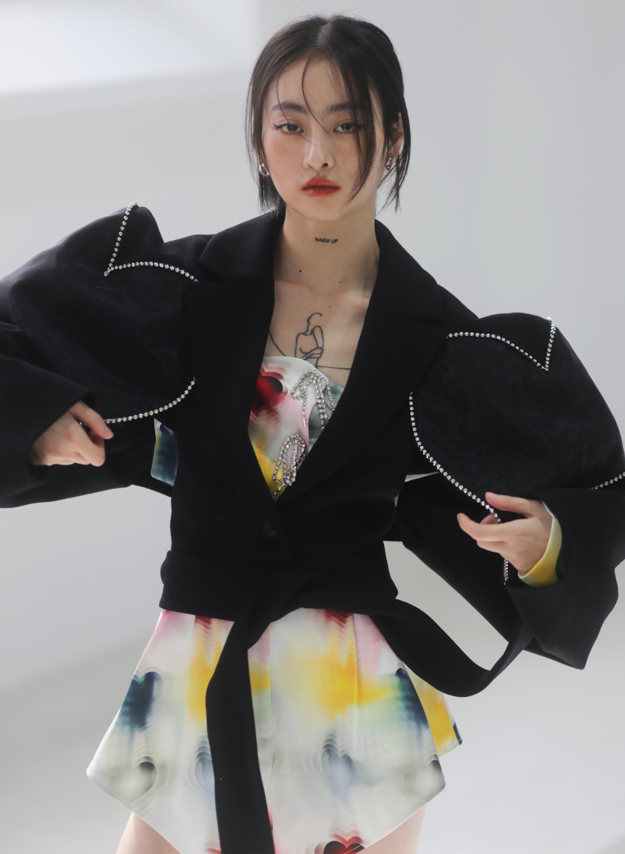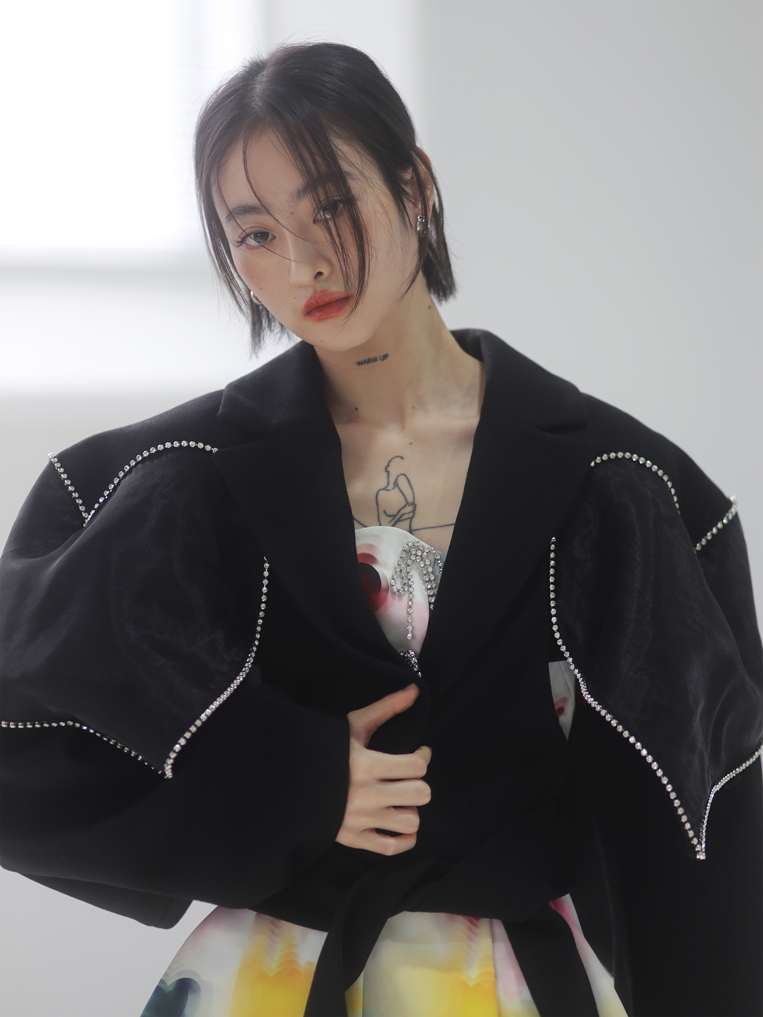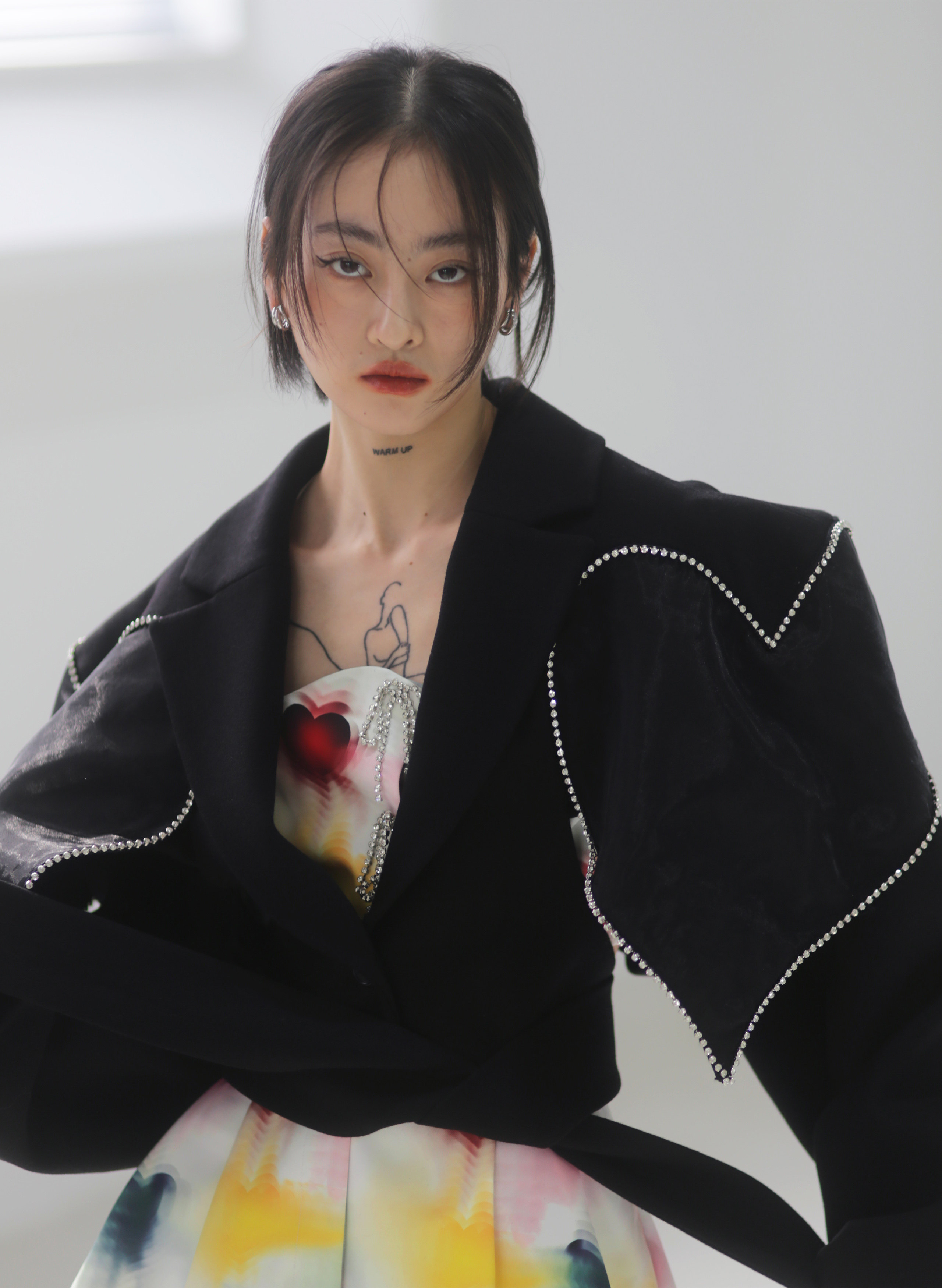 Spade Heart Spliced Bright Diamond Woolen Coat