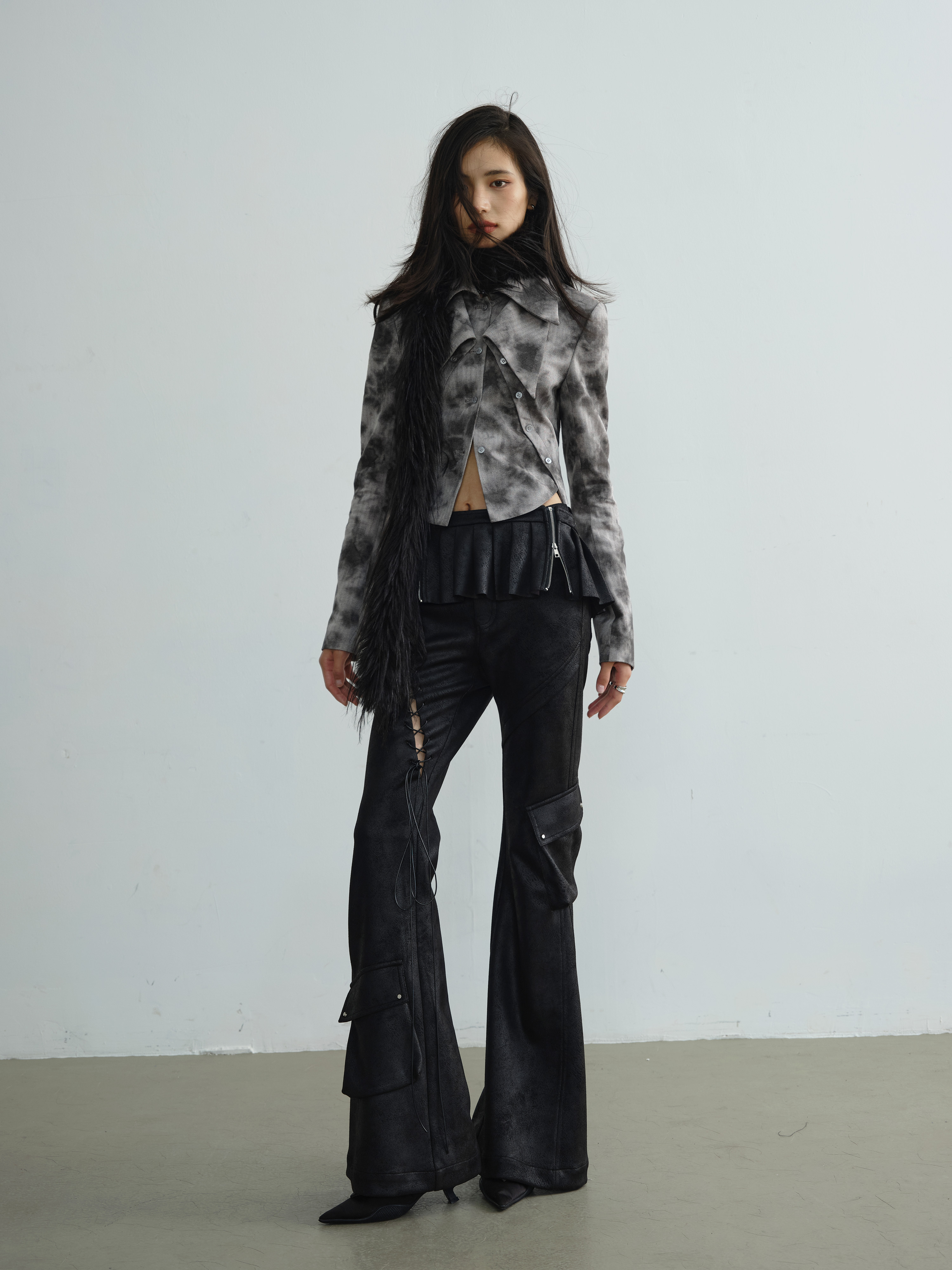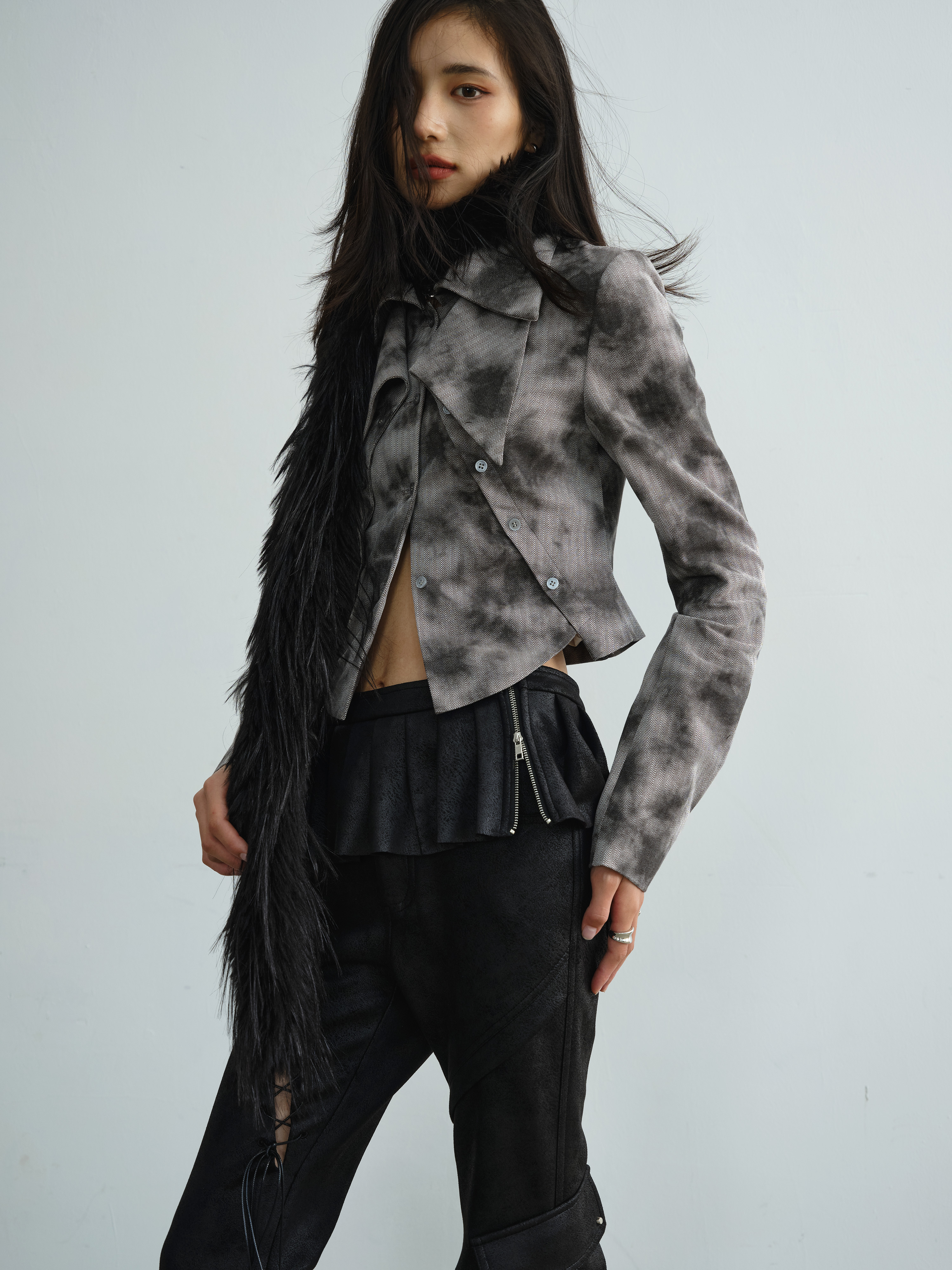 Tie Dyed Slim Fit Double Necked Shirt Jacket