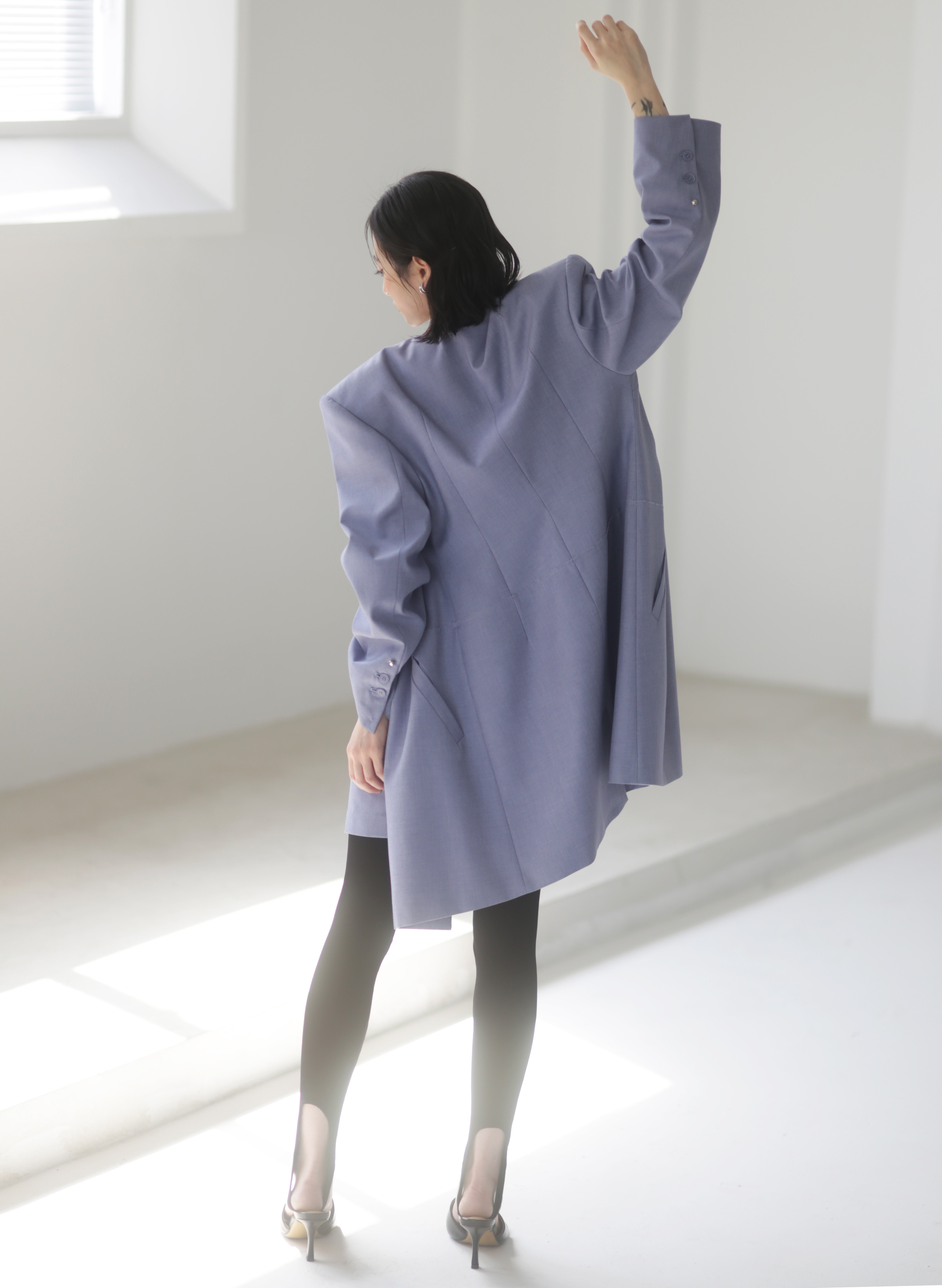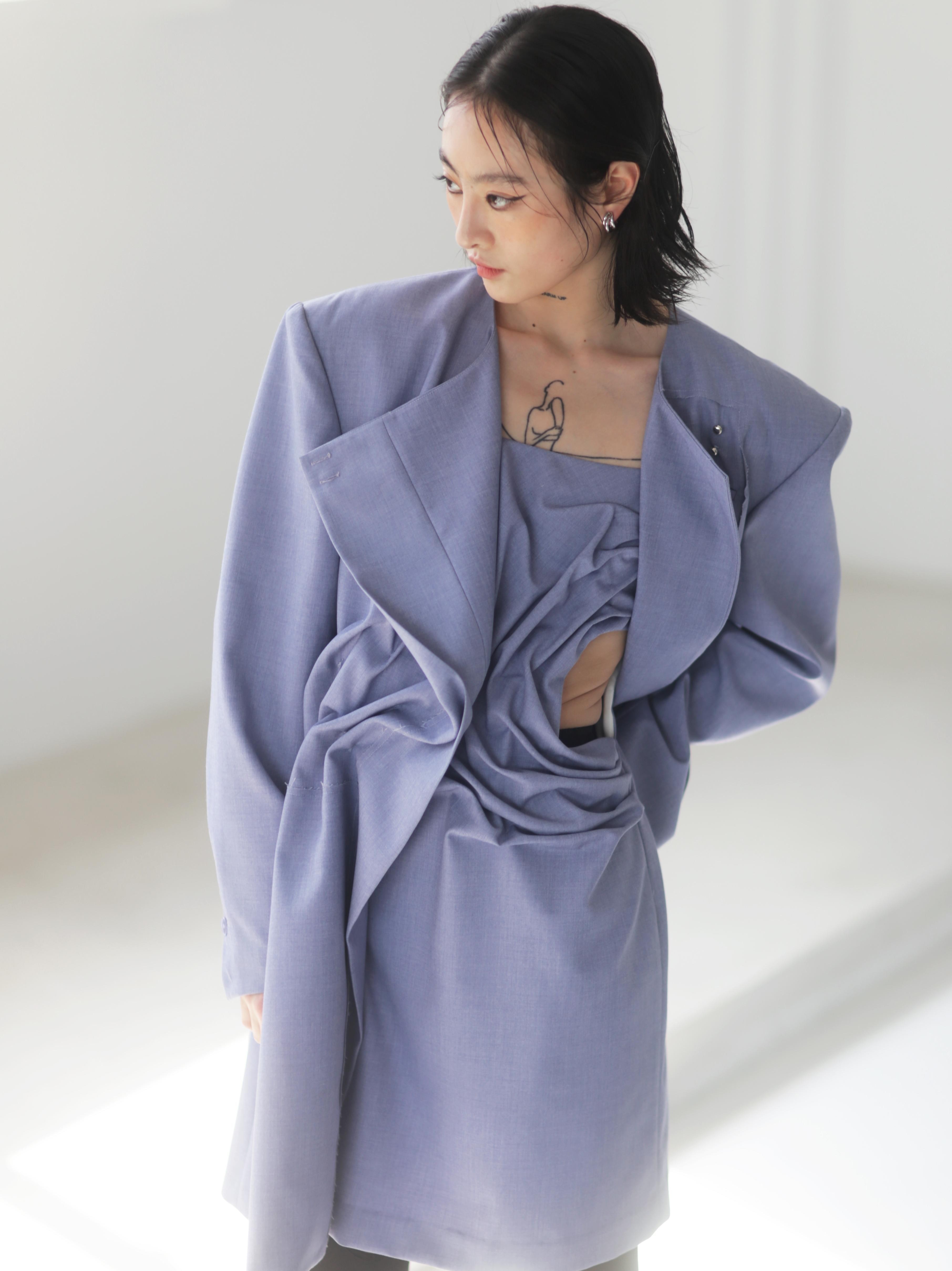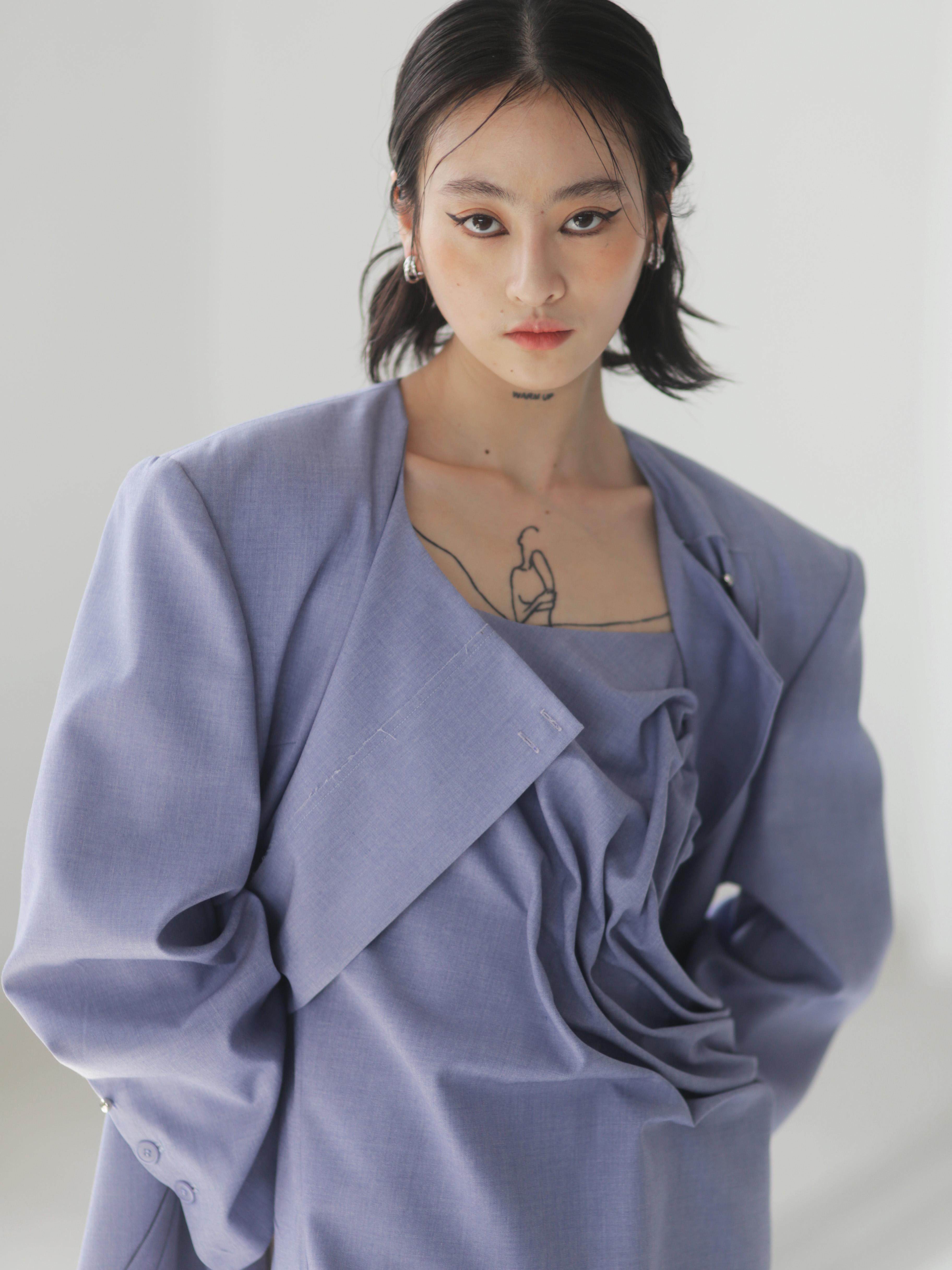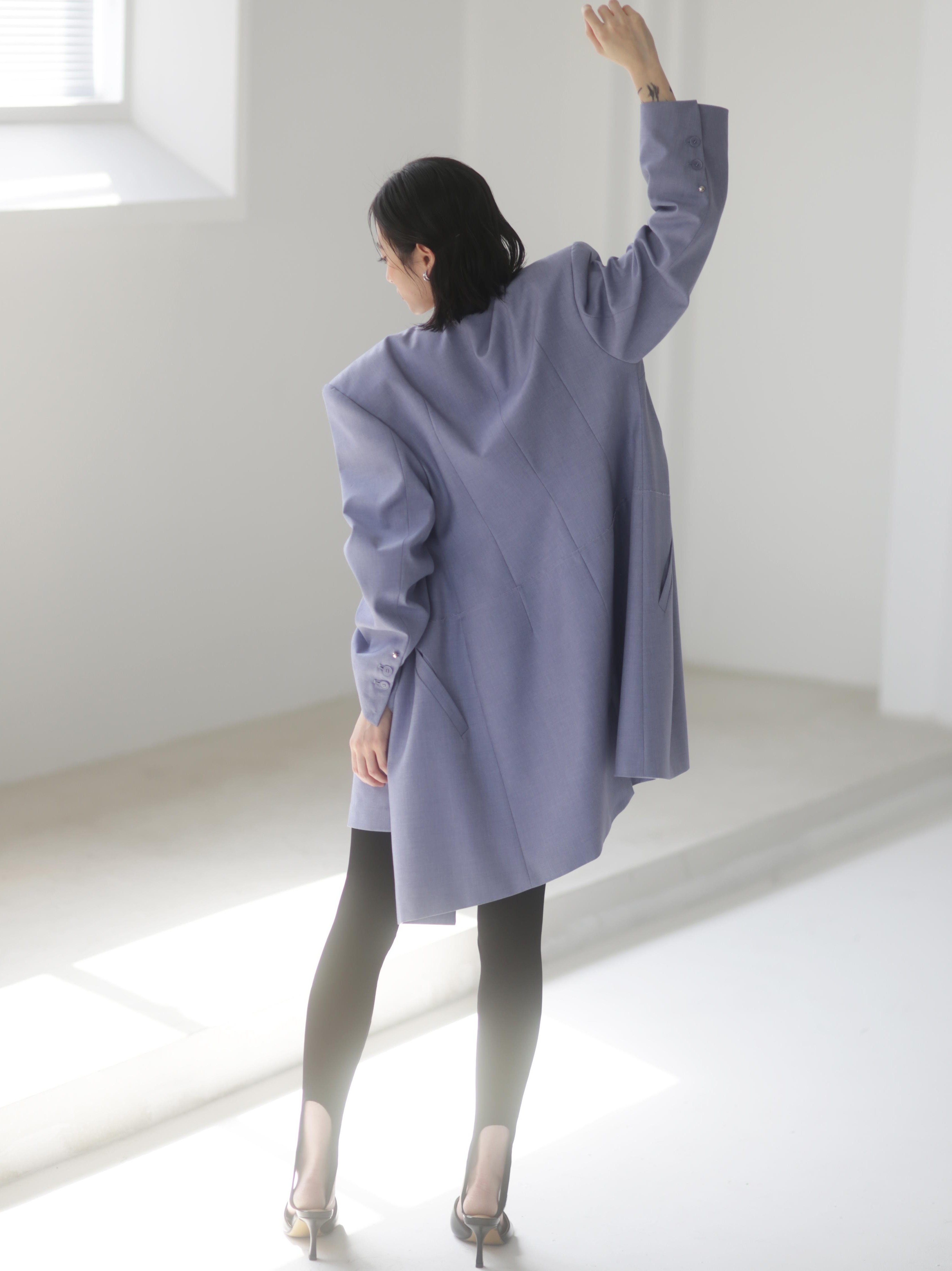 Asymmetrical Wide Shoulder Pleated Suit Jacket