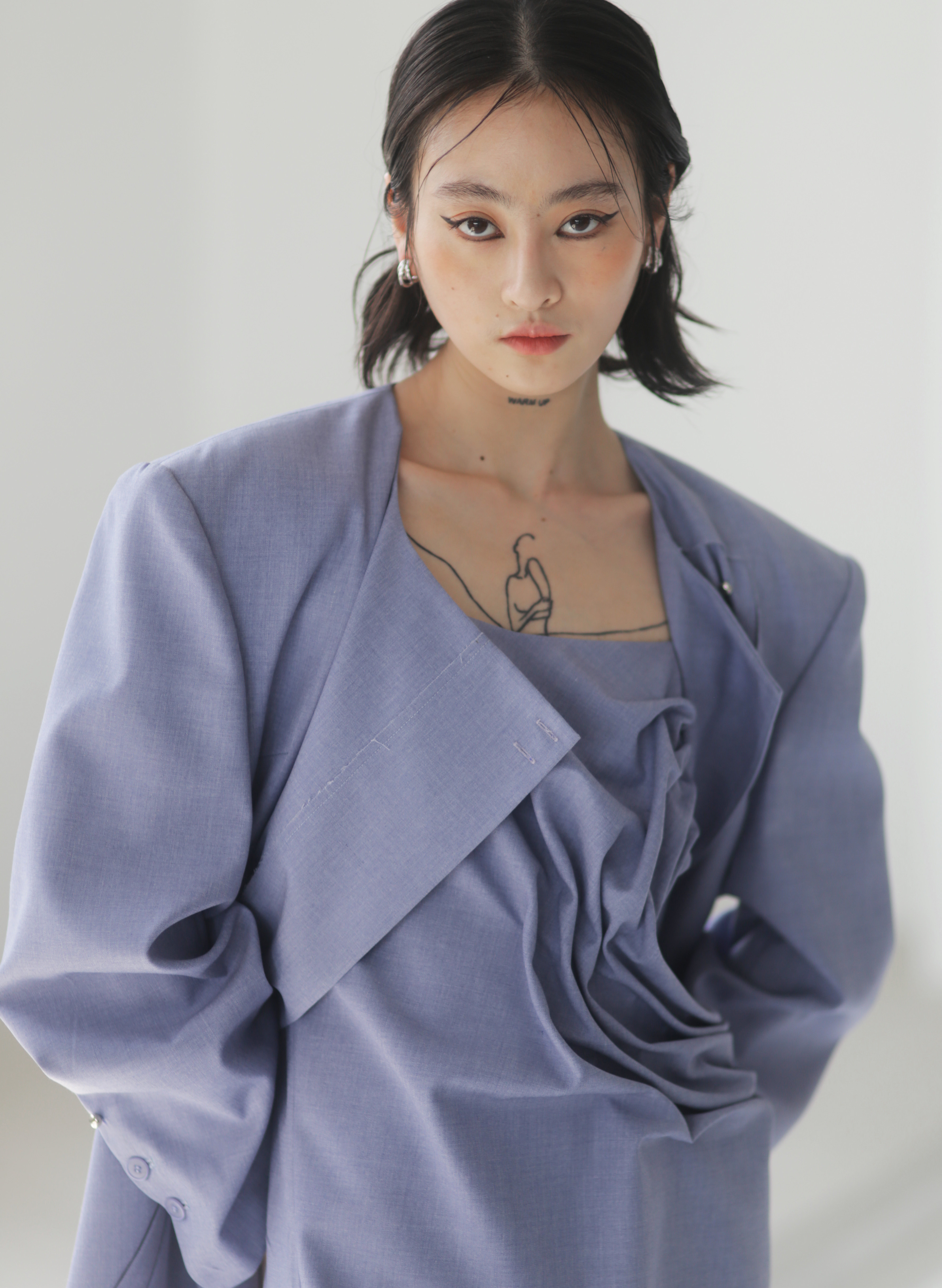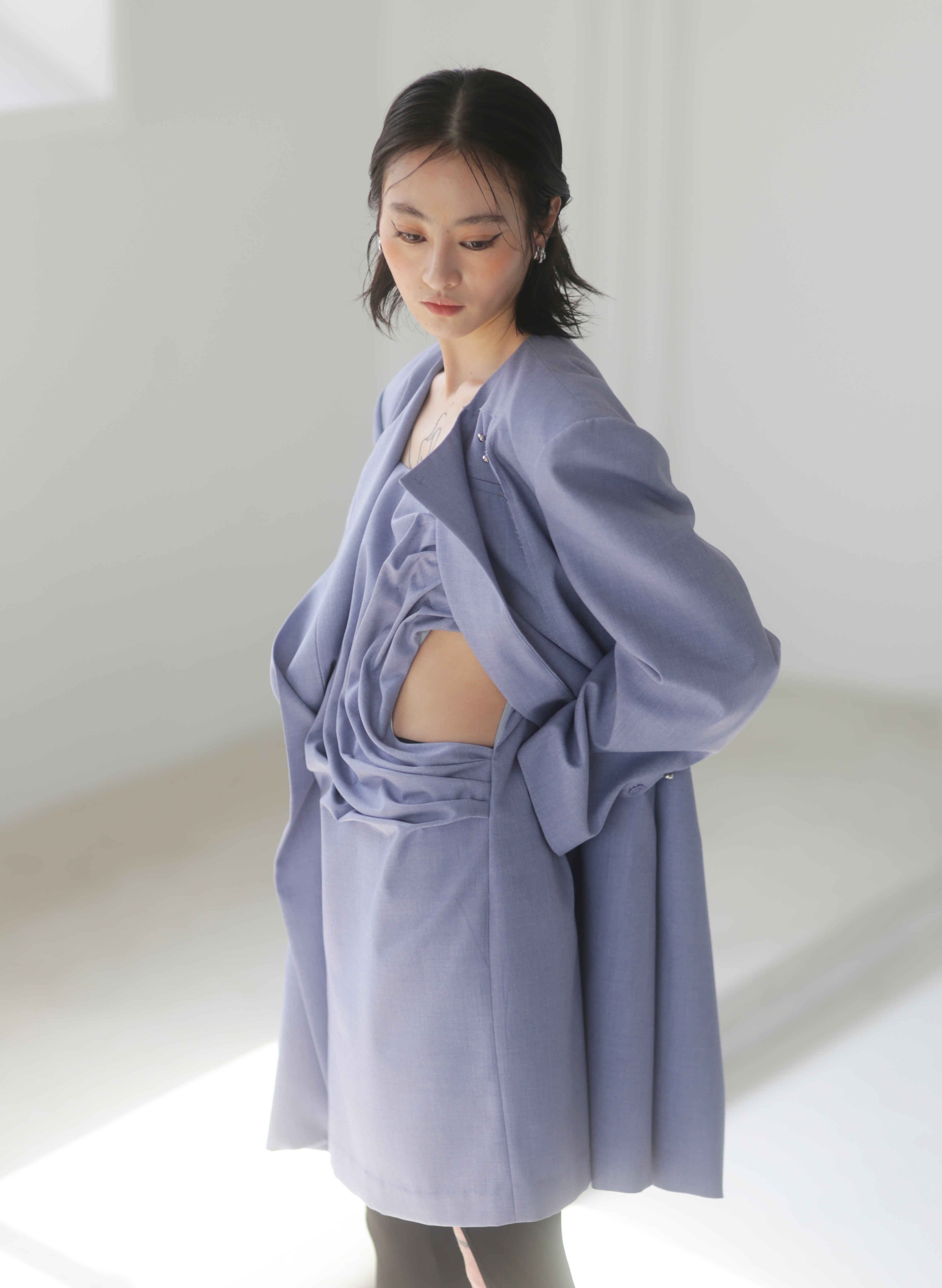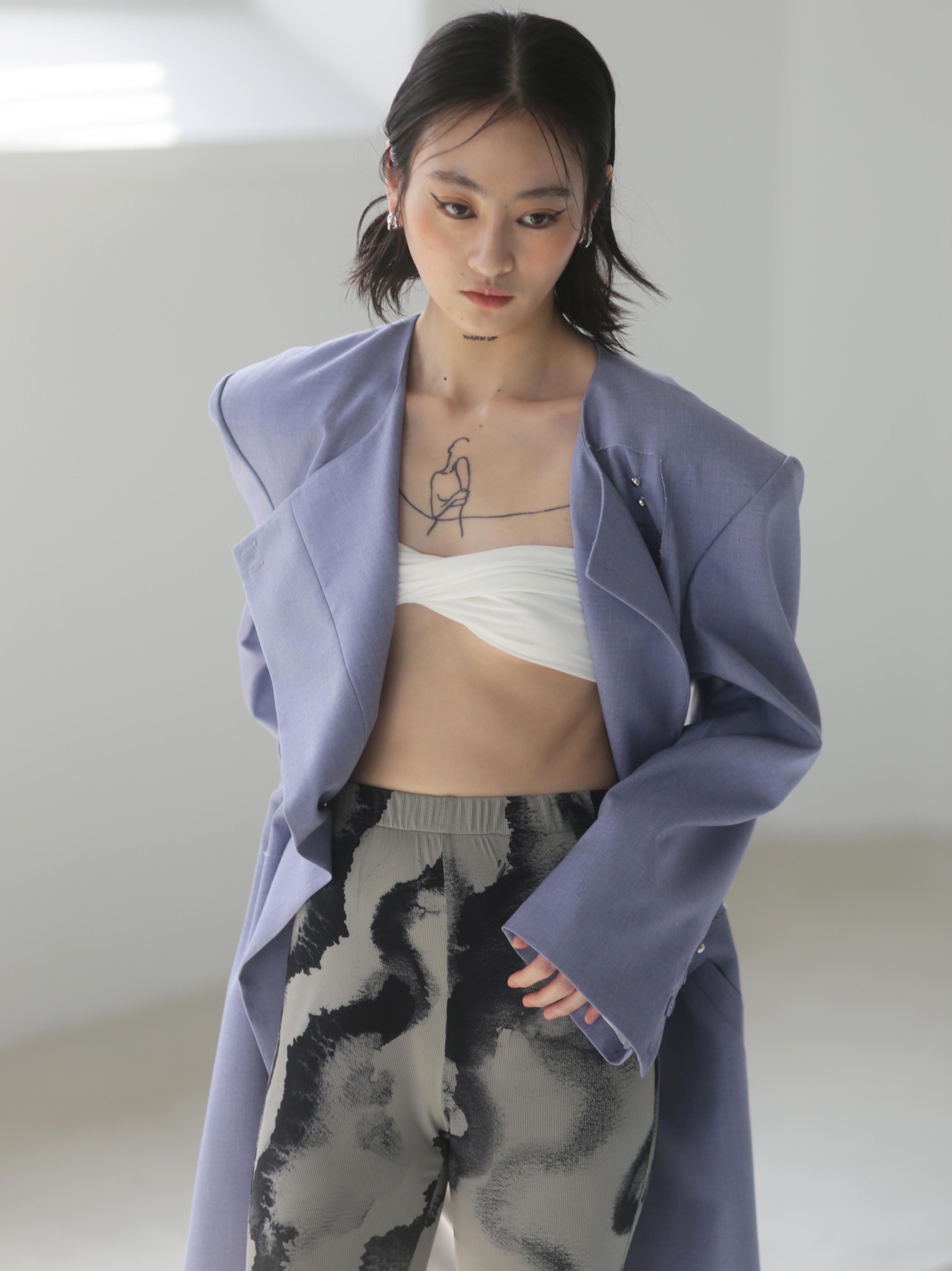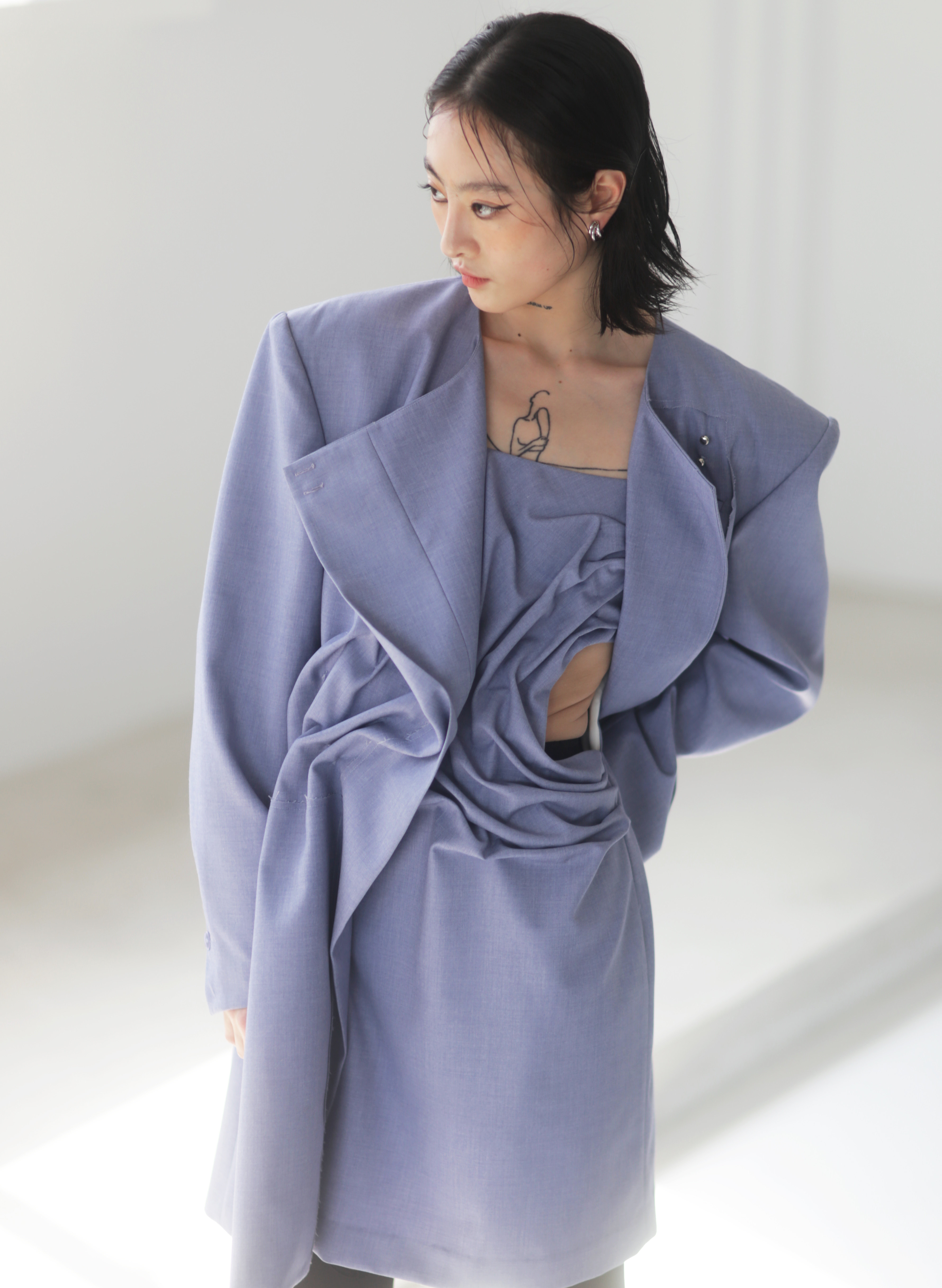 Asymmetrical Wide Shoulder Pleated Suit Jacket