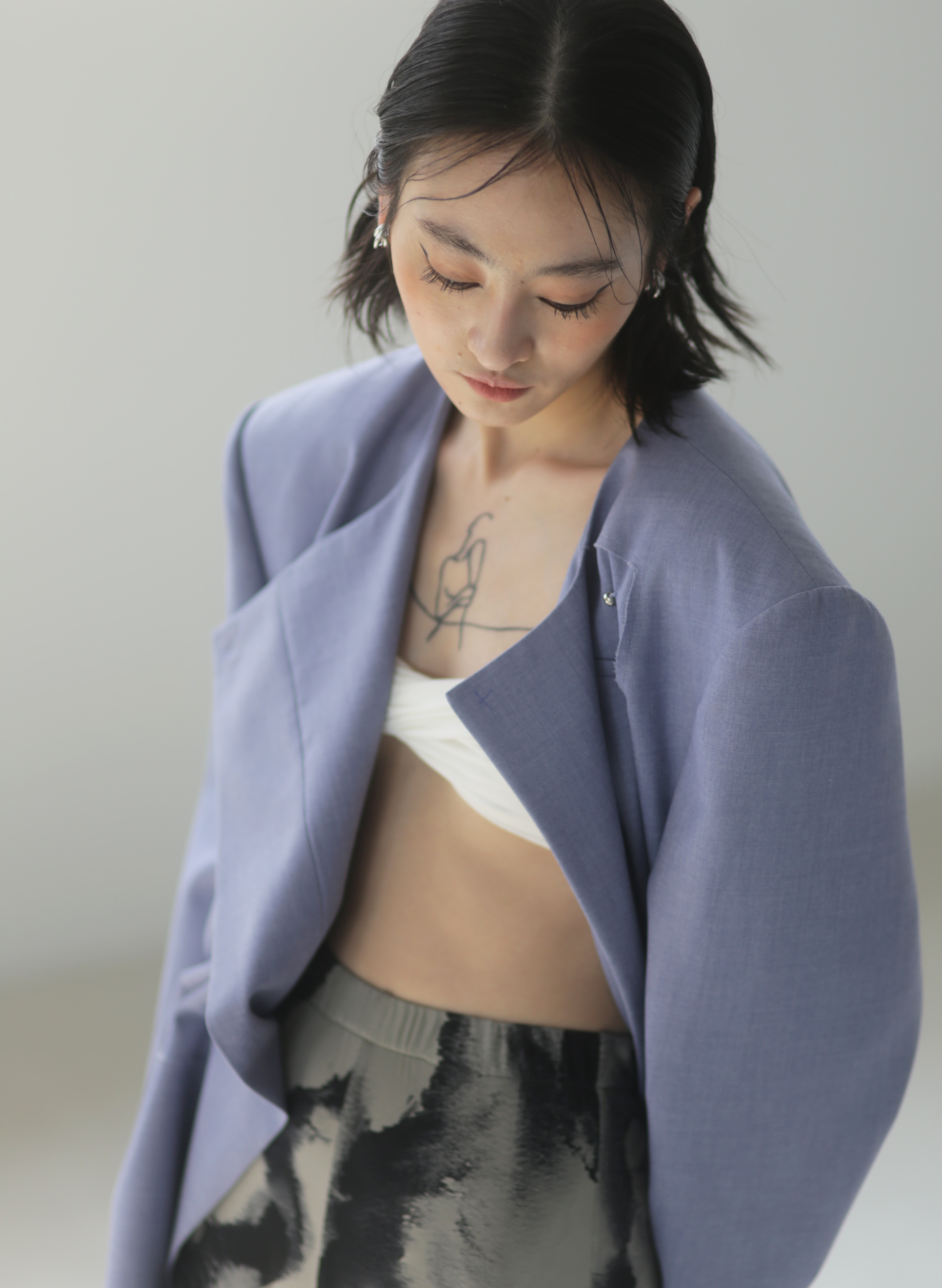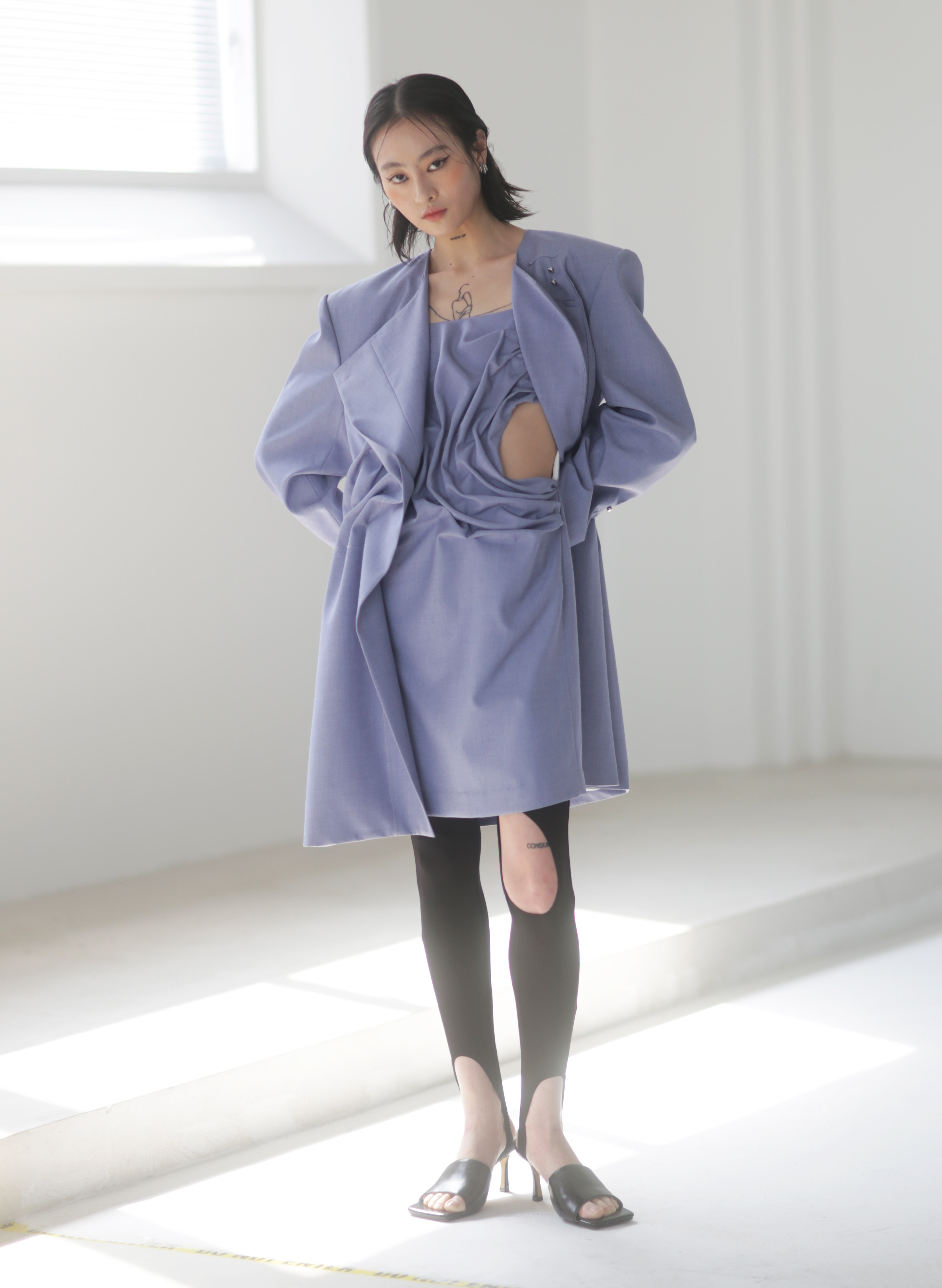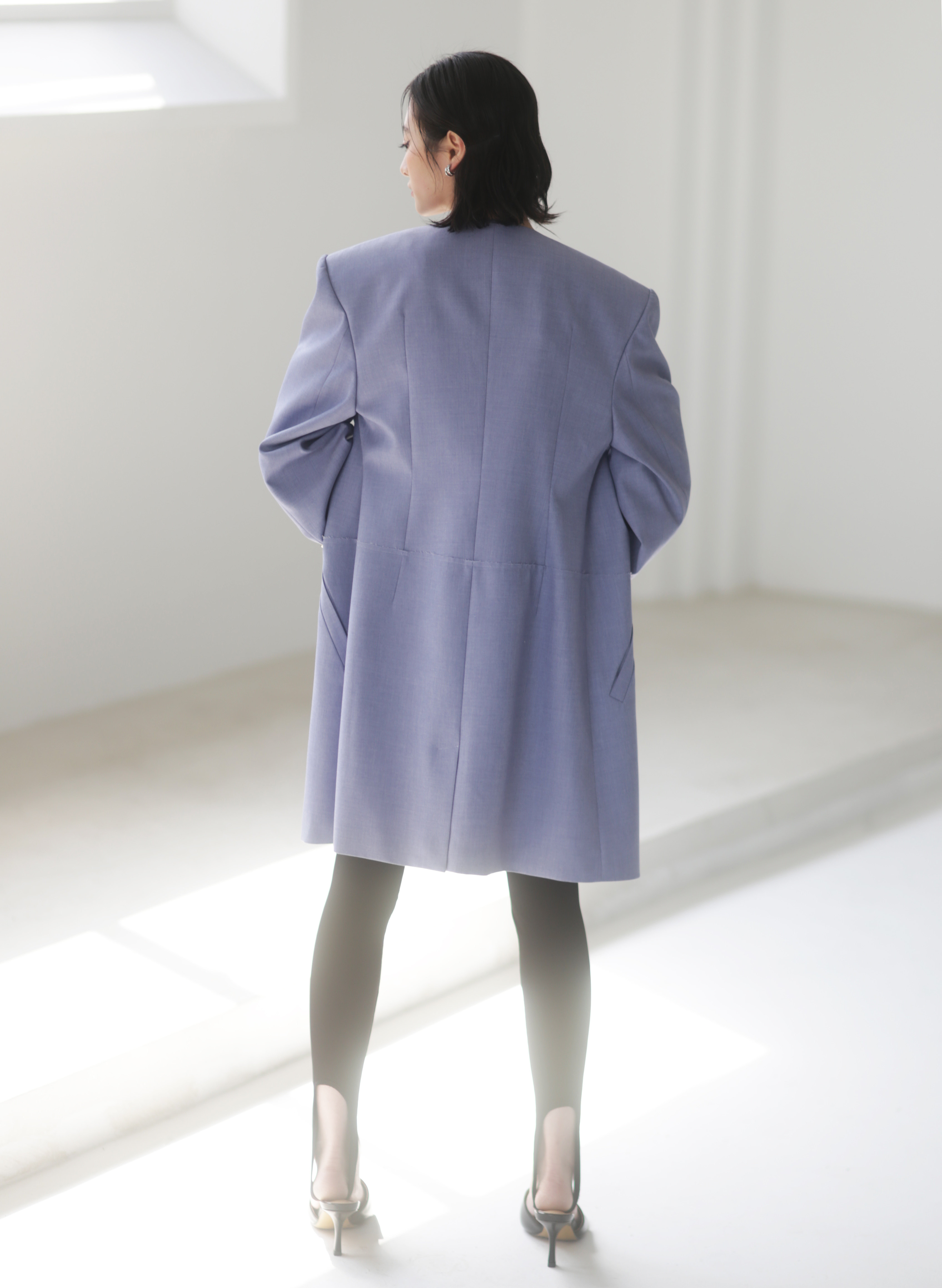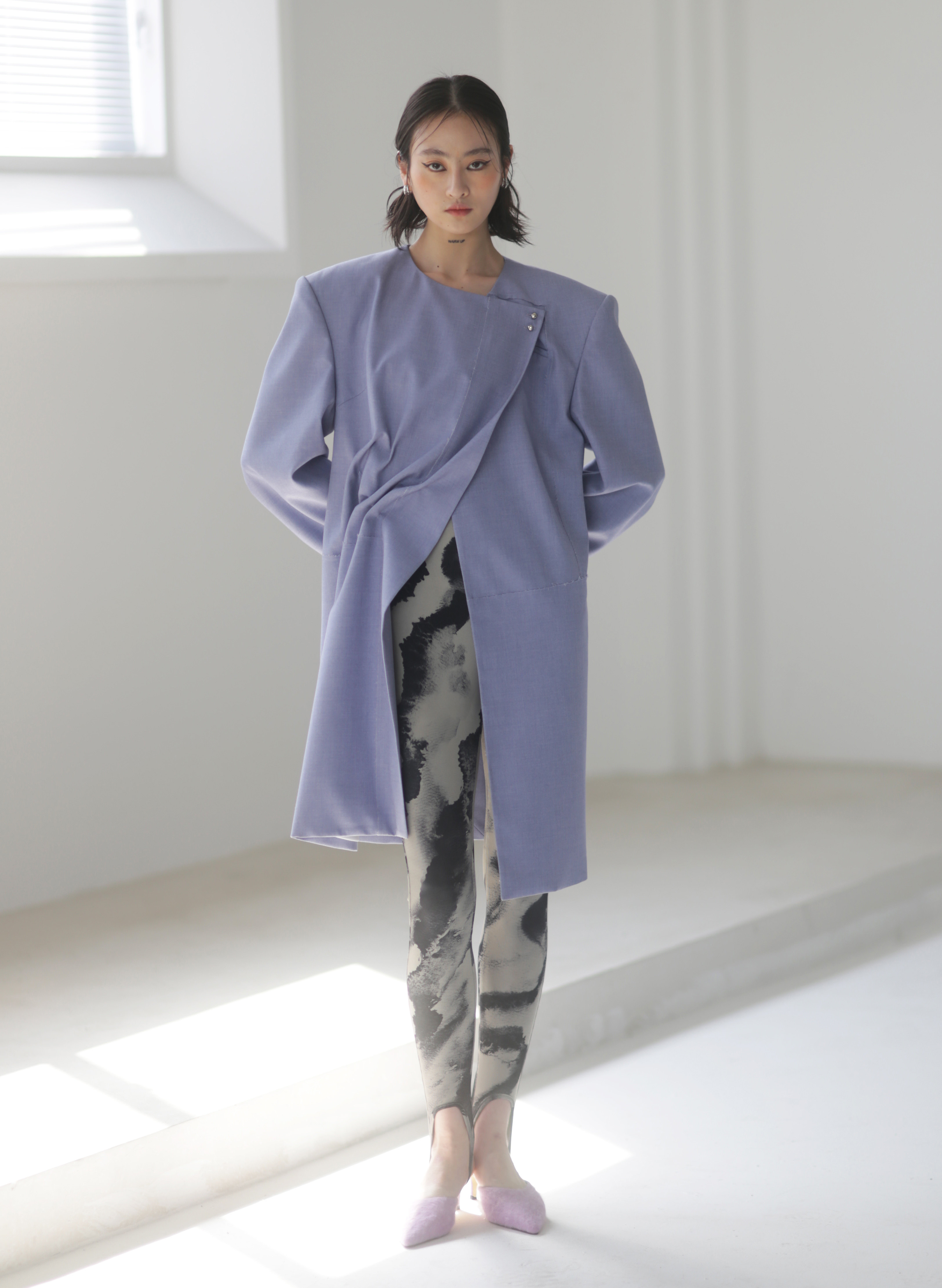 Asymmetrical Wide Shoulder Pleated Suit Jacket