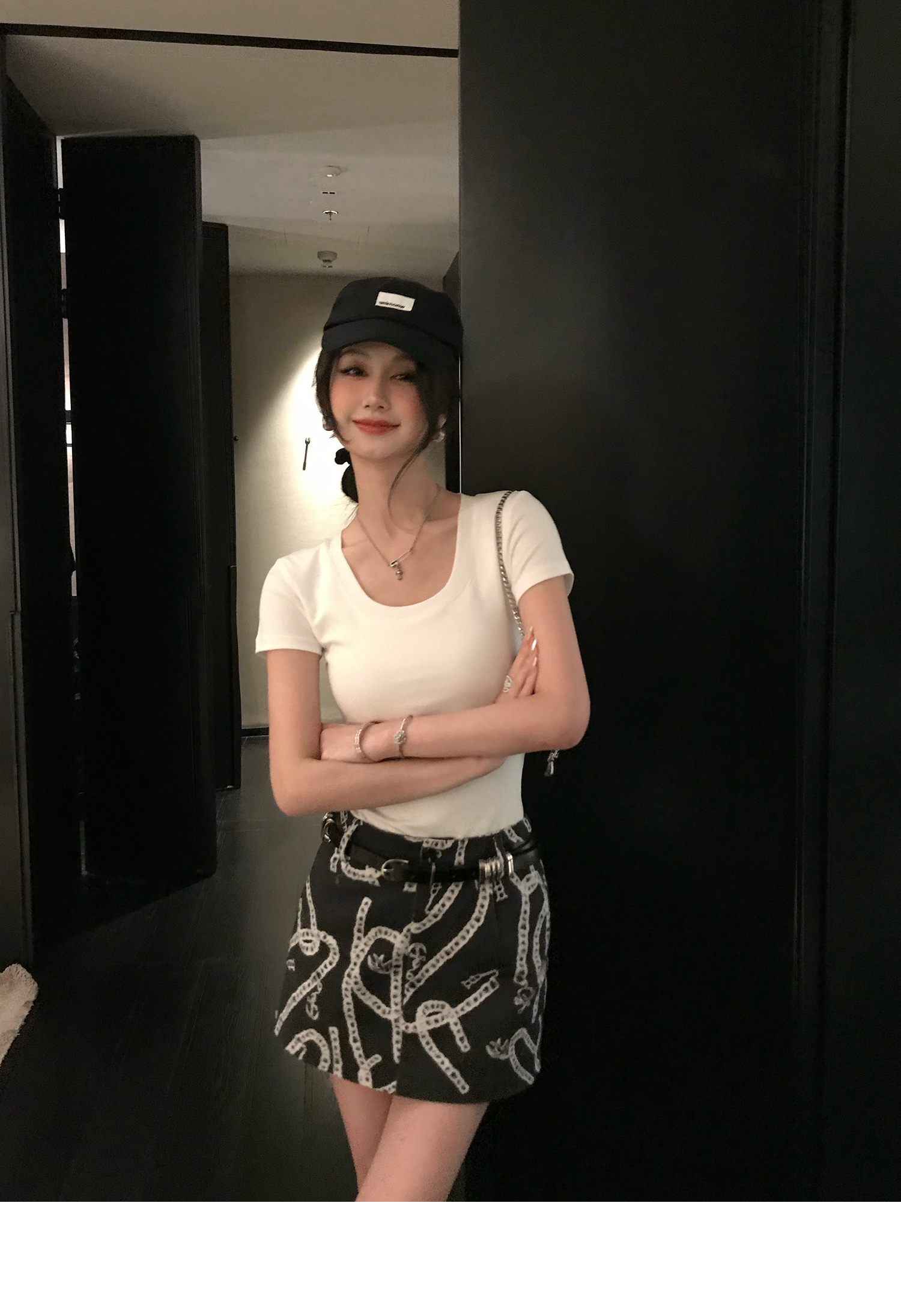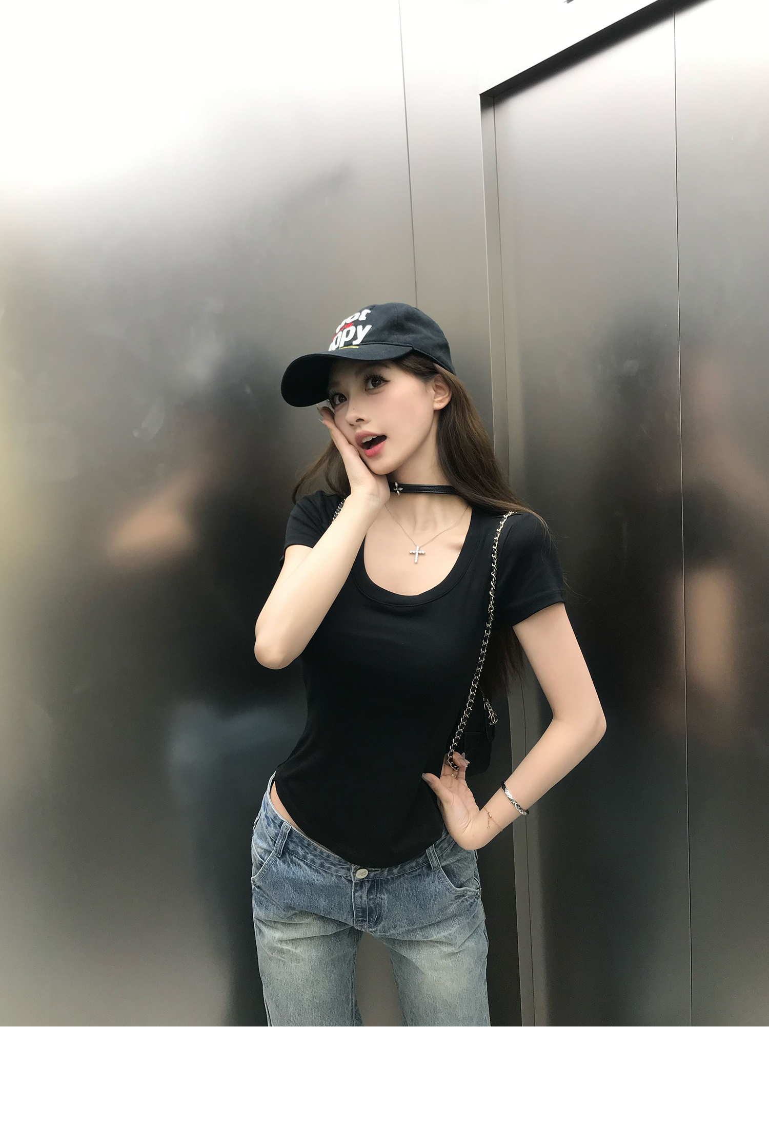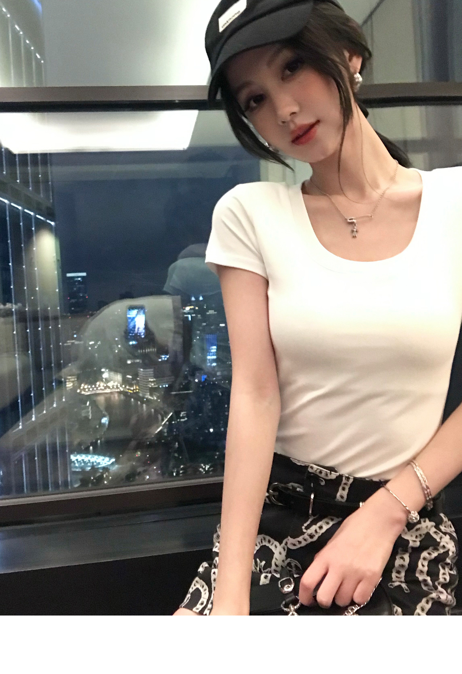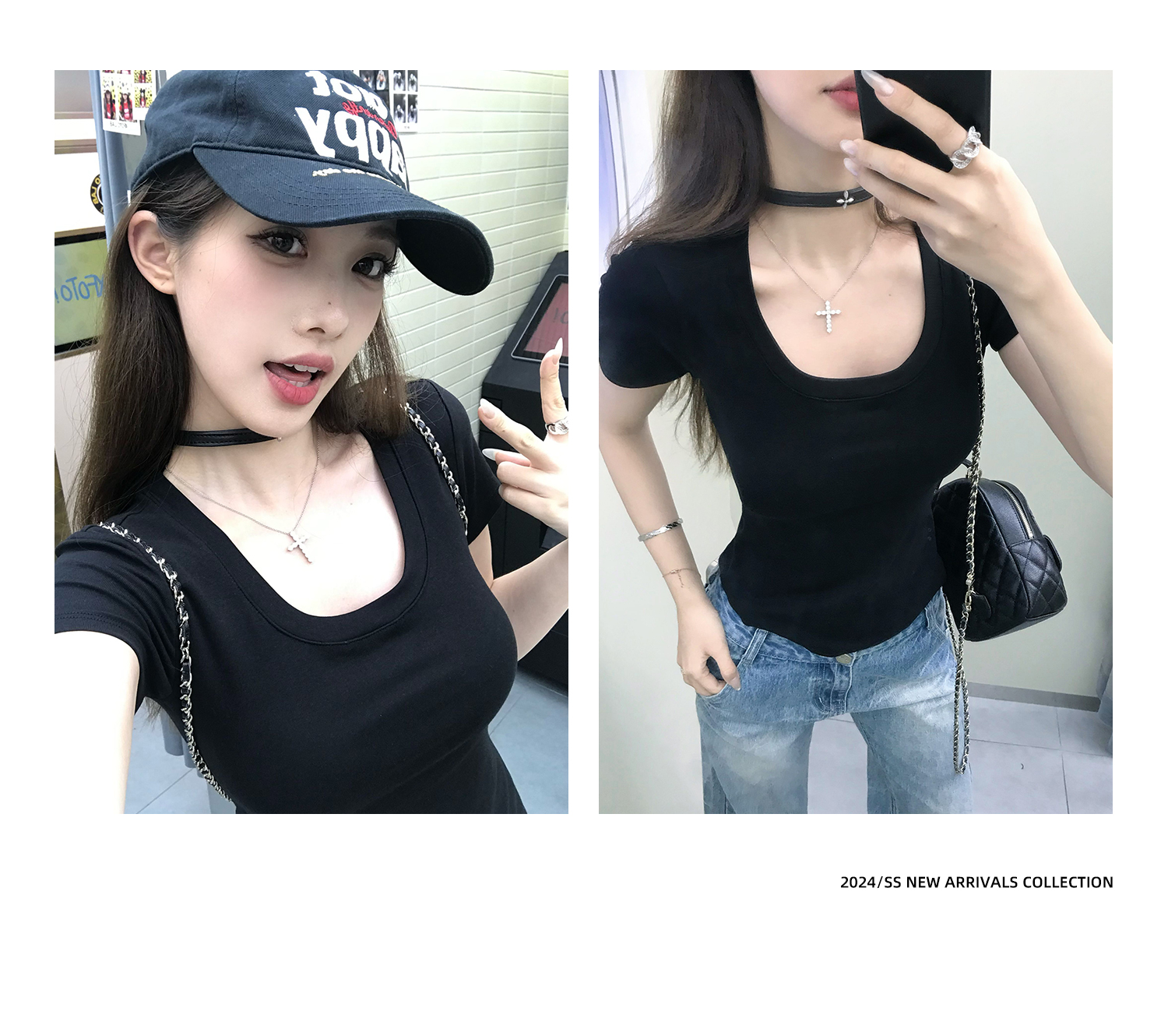 Korean Anime-Inspired Slim Fit Round Neck T-Shirt - Women's Summer Style with Chest Padding