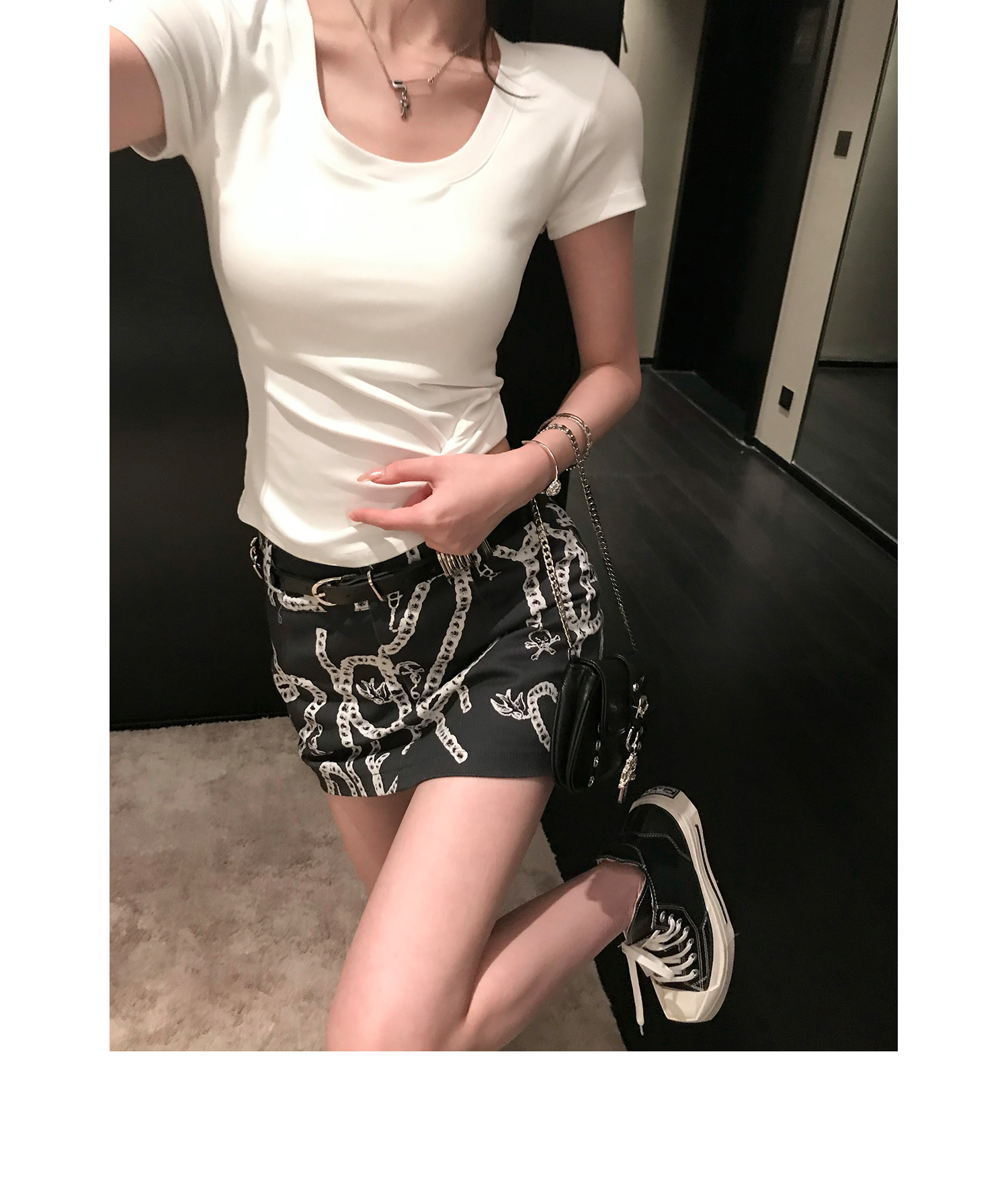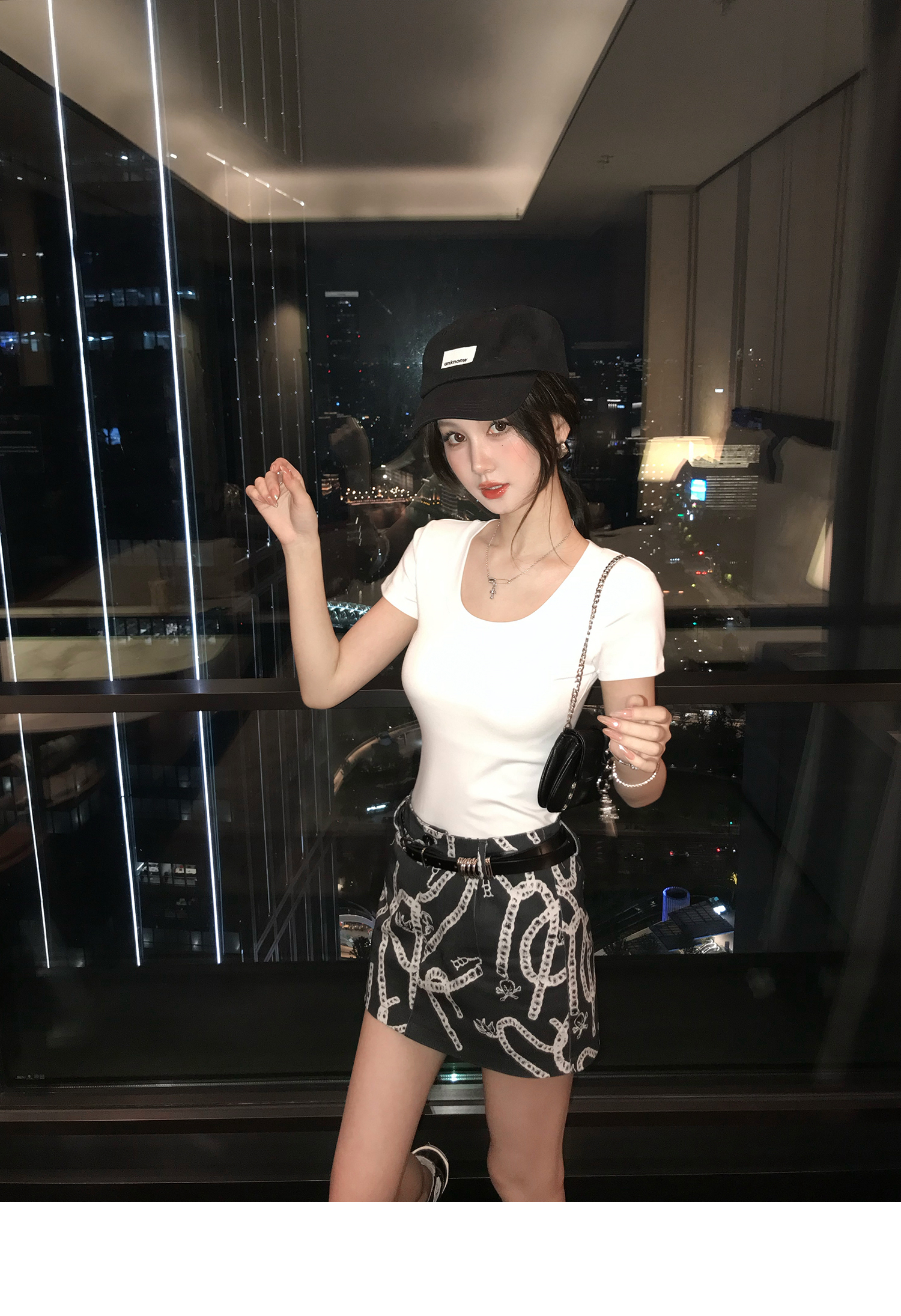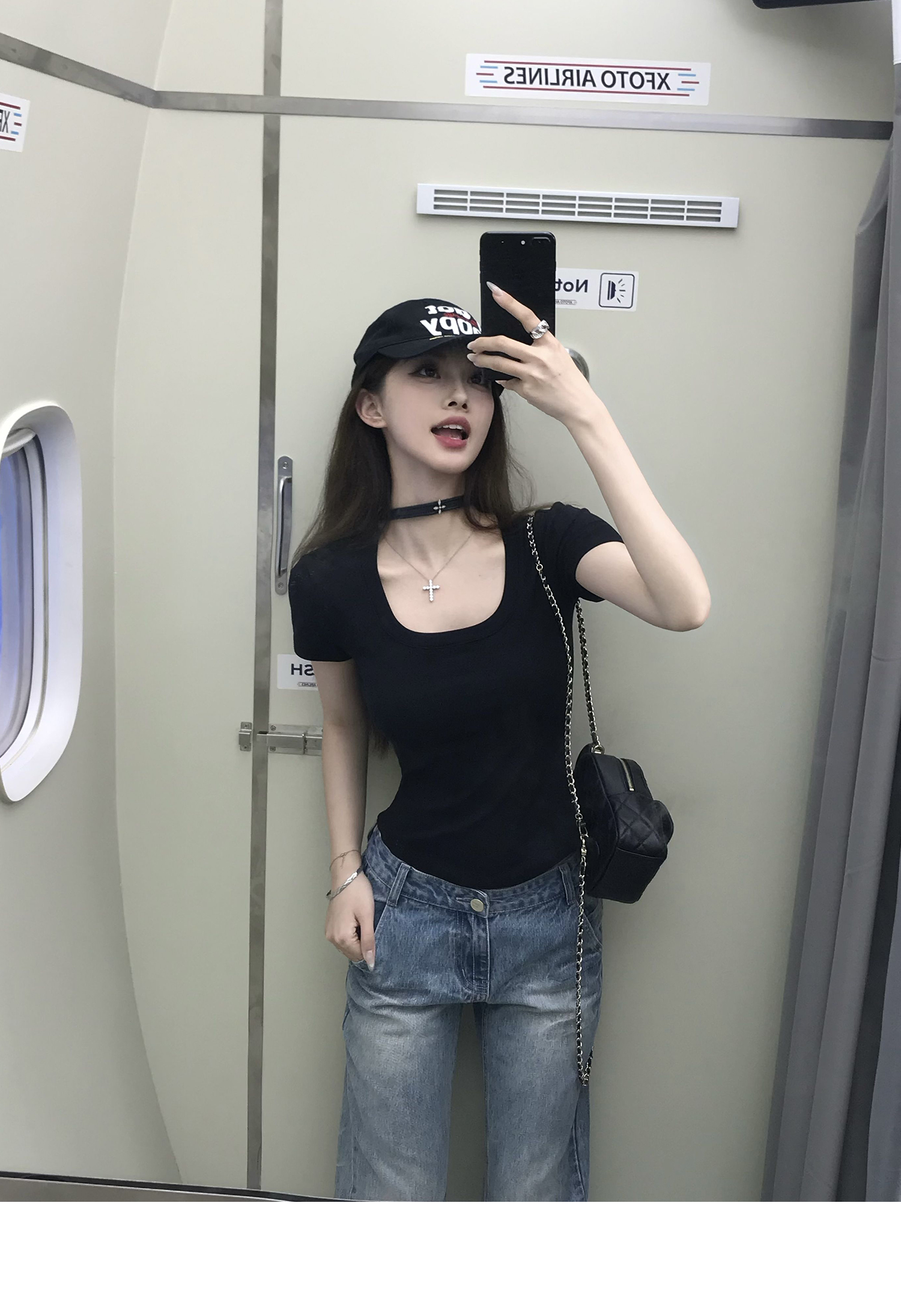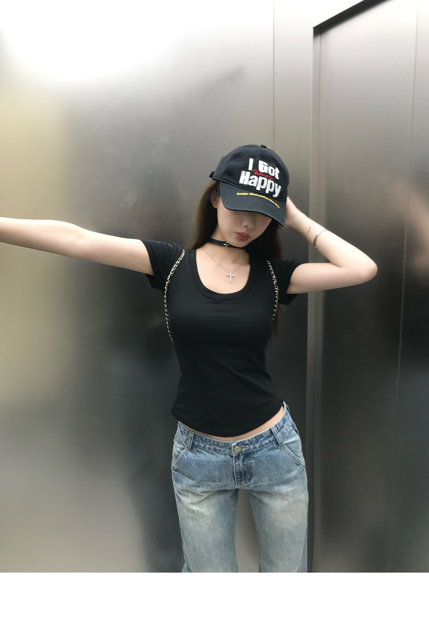 Korean Anime-Inspired Slim Fit Round Neck T-Shirt - Women's Summer Style with Chest Padding