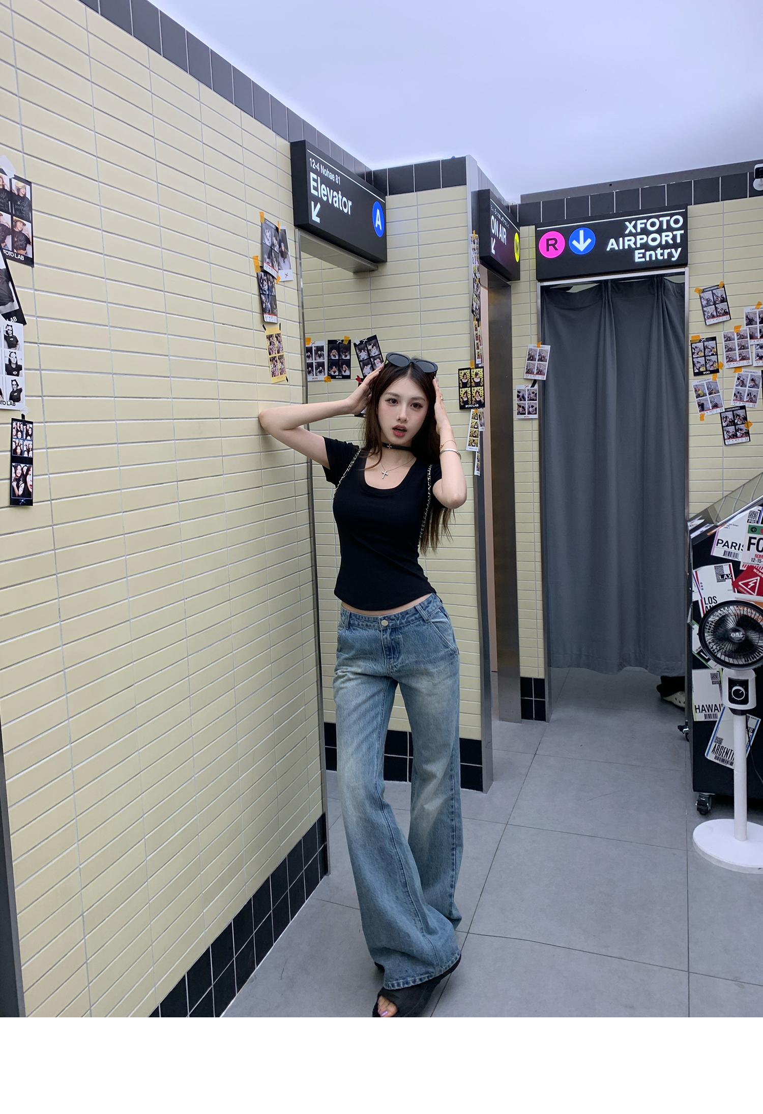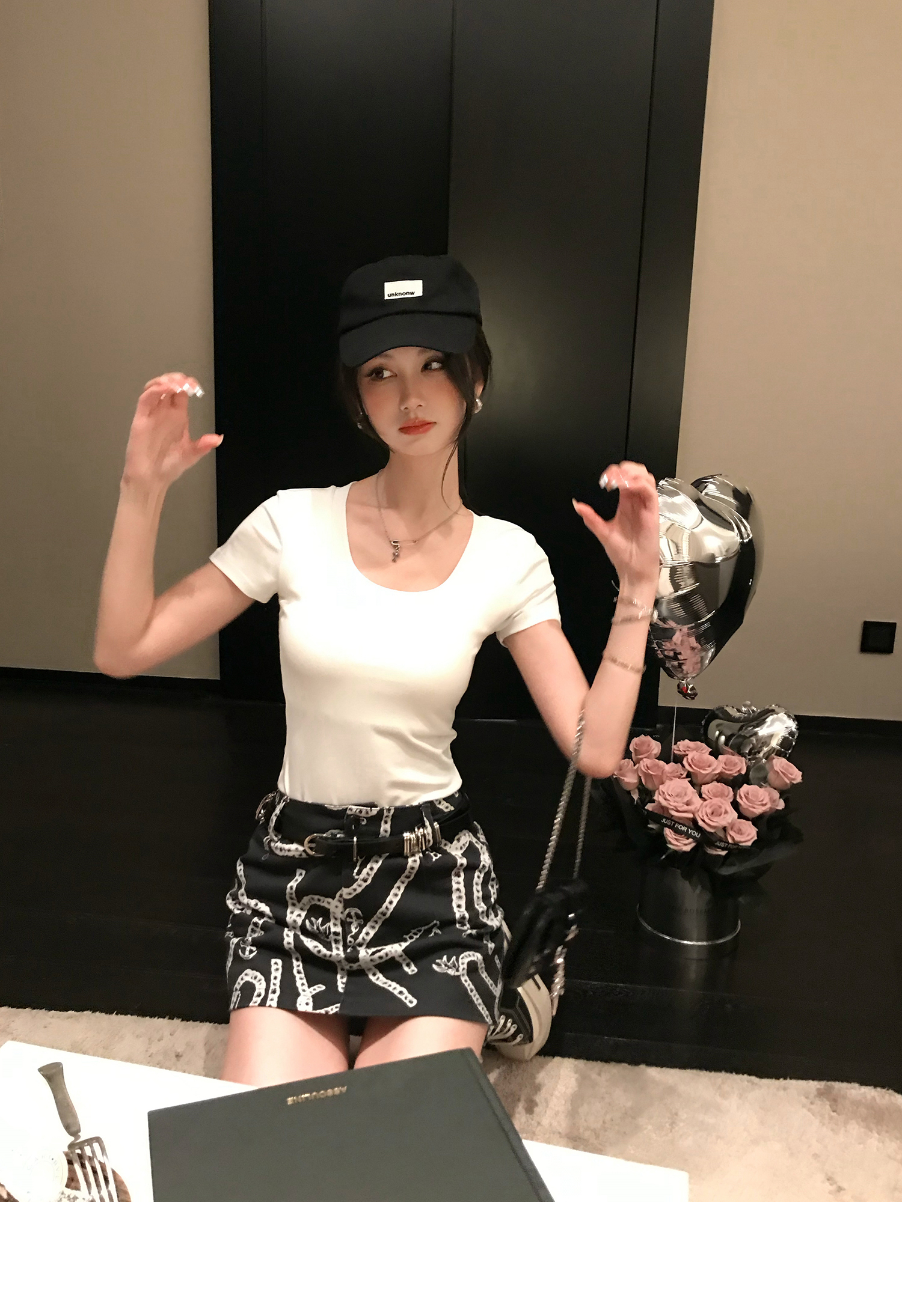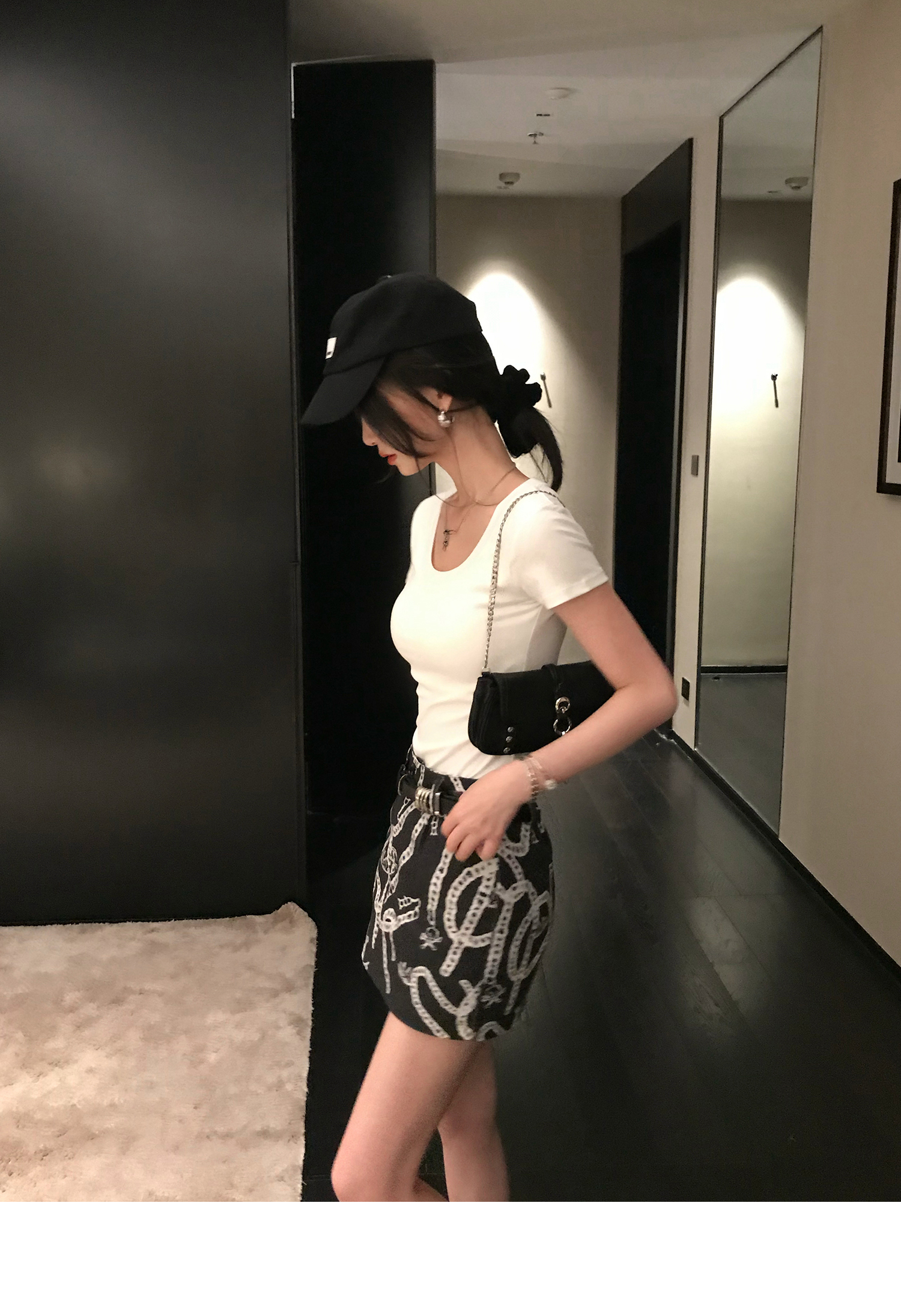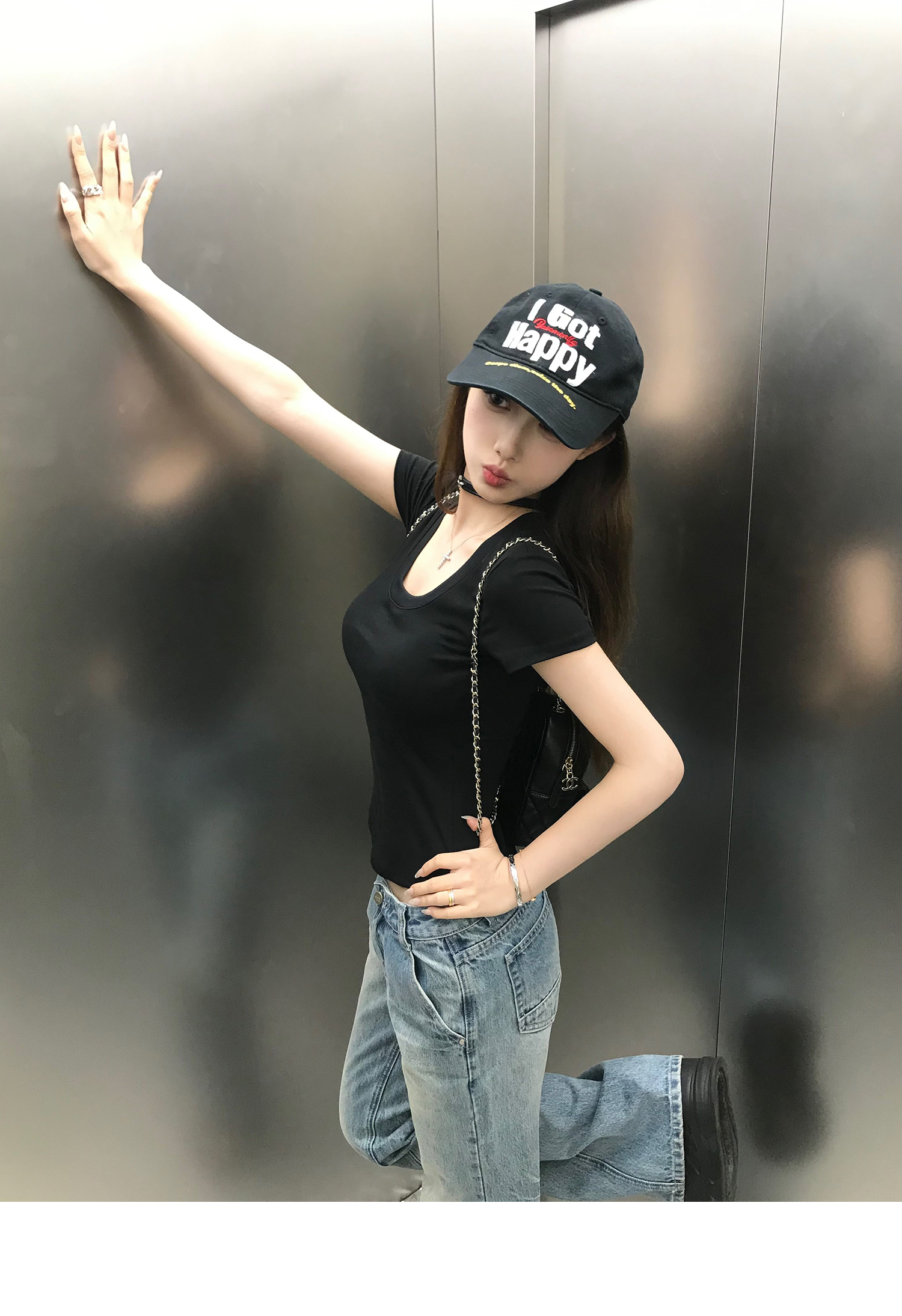 Korean Anime-Inspired Slim Fit Round Neck T-Shirt - Women's Summer Style with Chest Padding