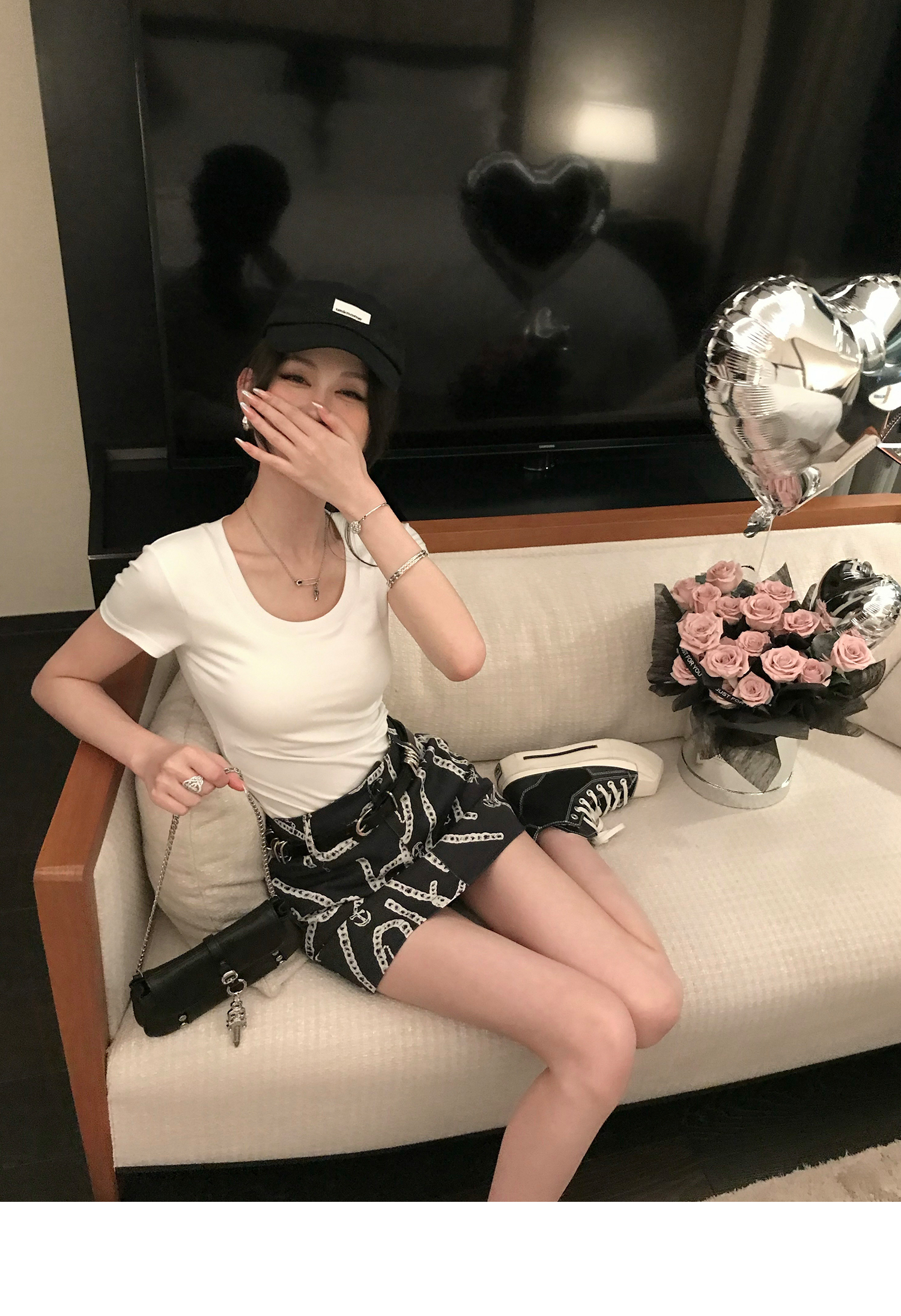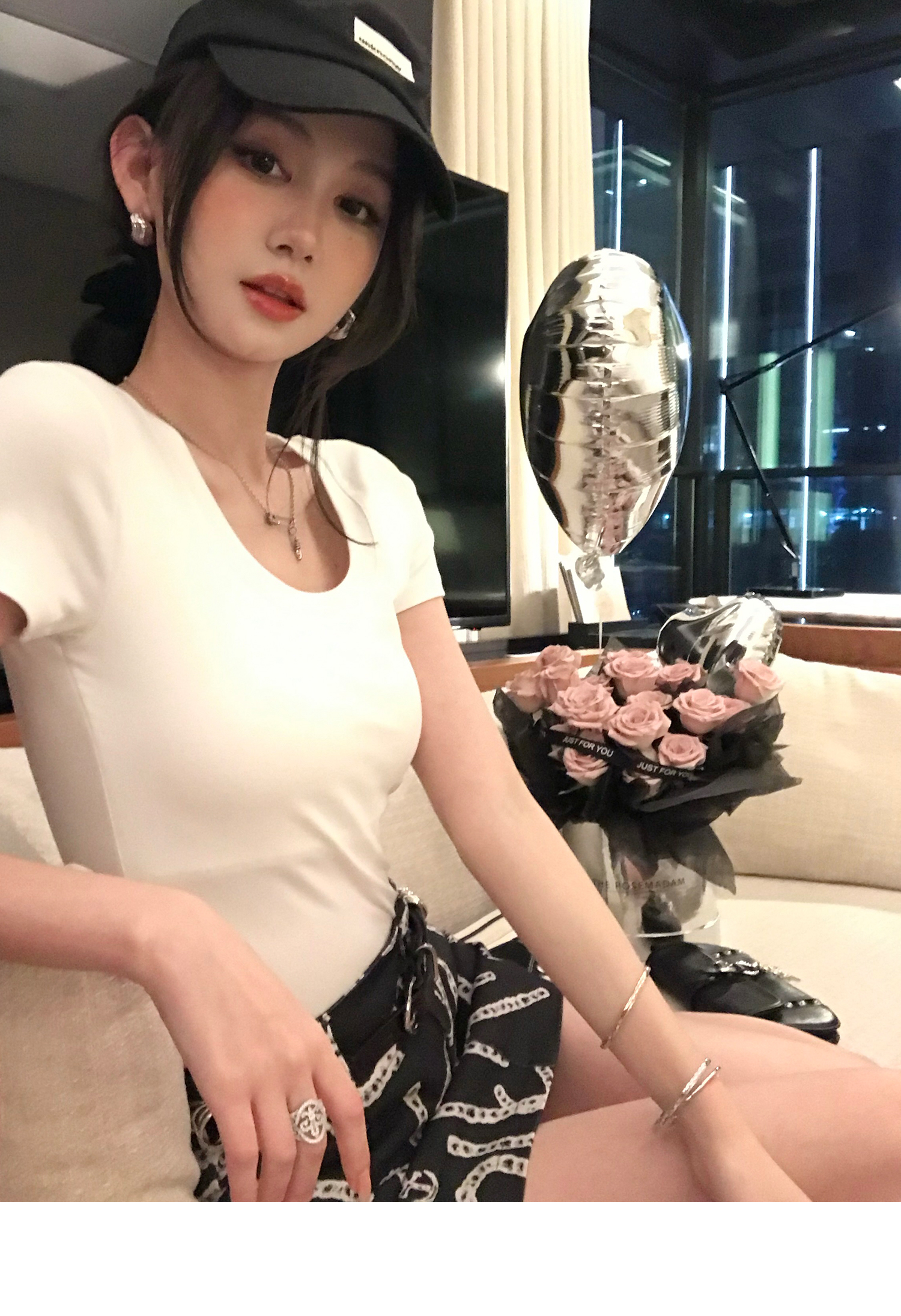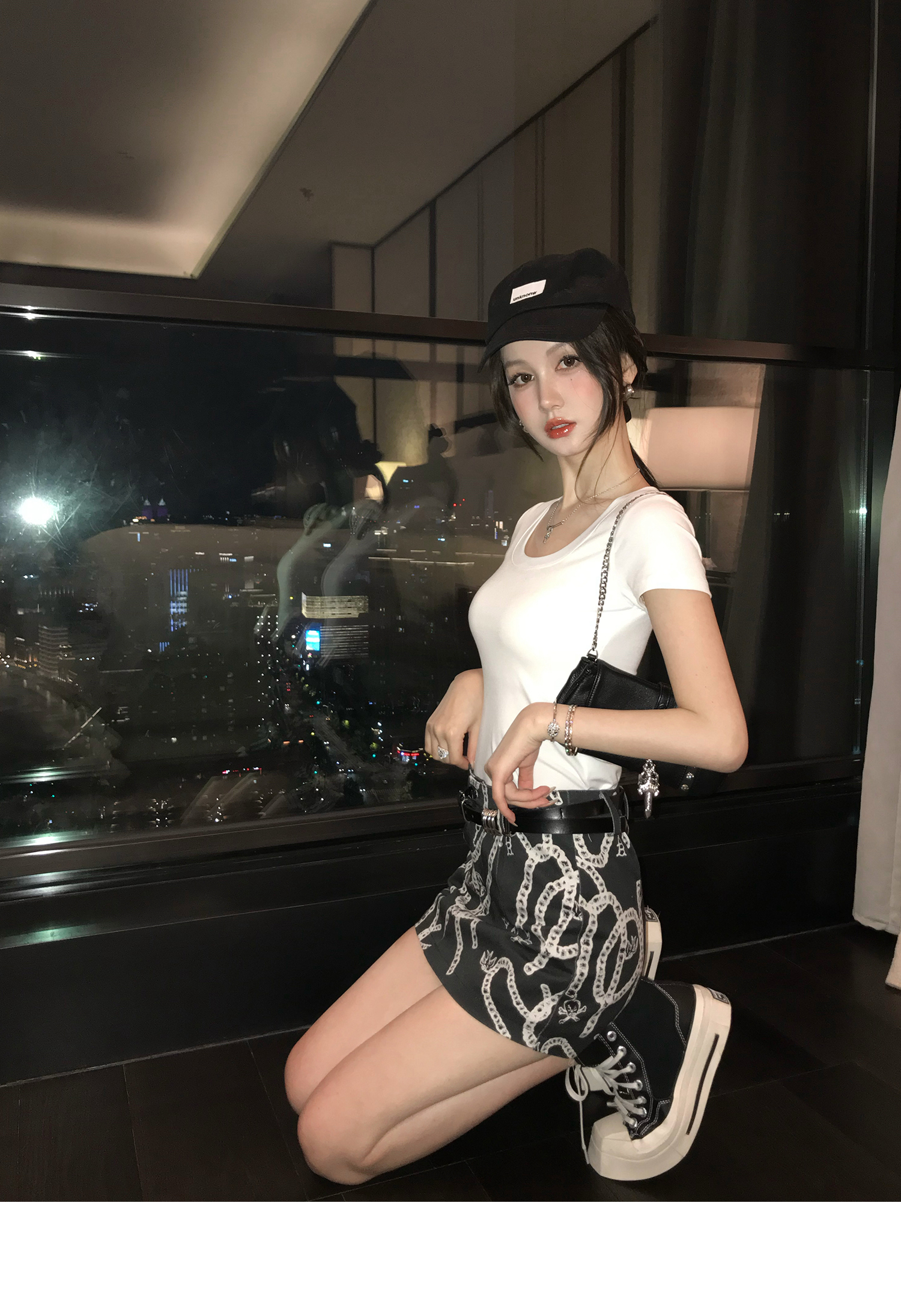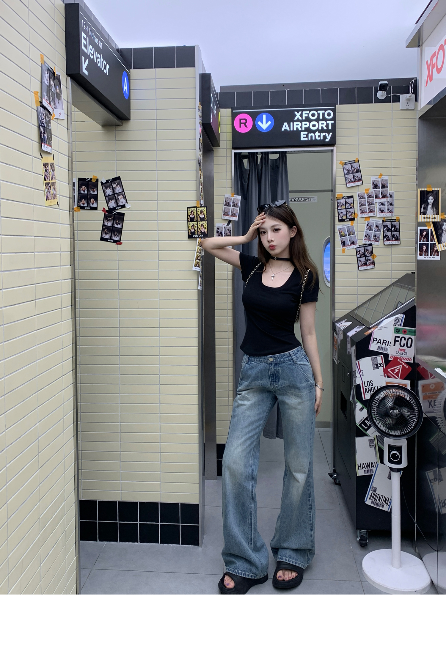 Korean Anime-Inspired Slim Fit Round Neck T-Shirt - Women's Summer Style with Chest Padding