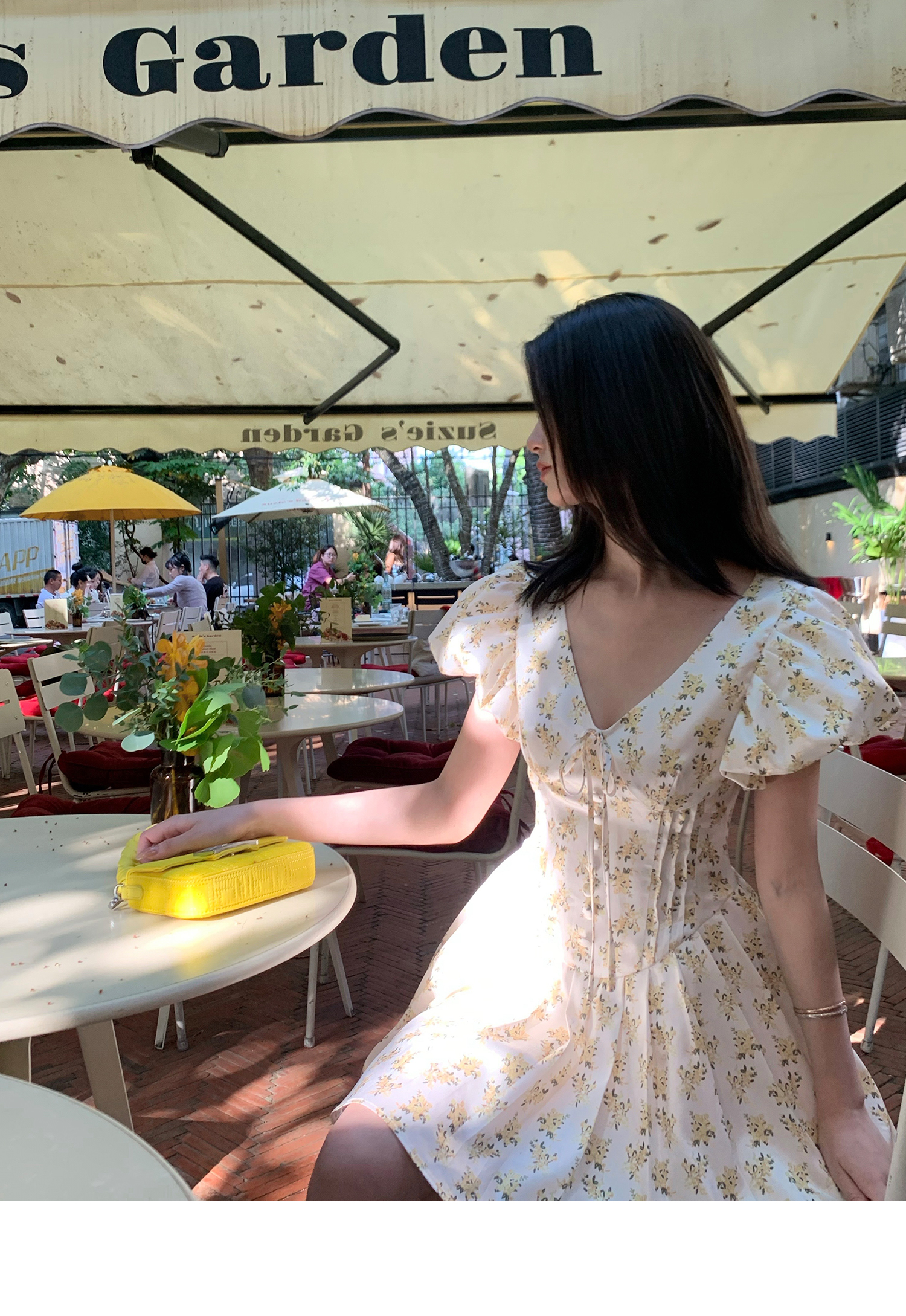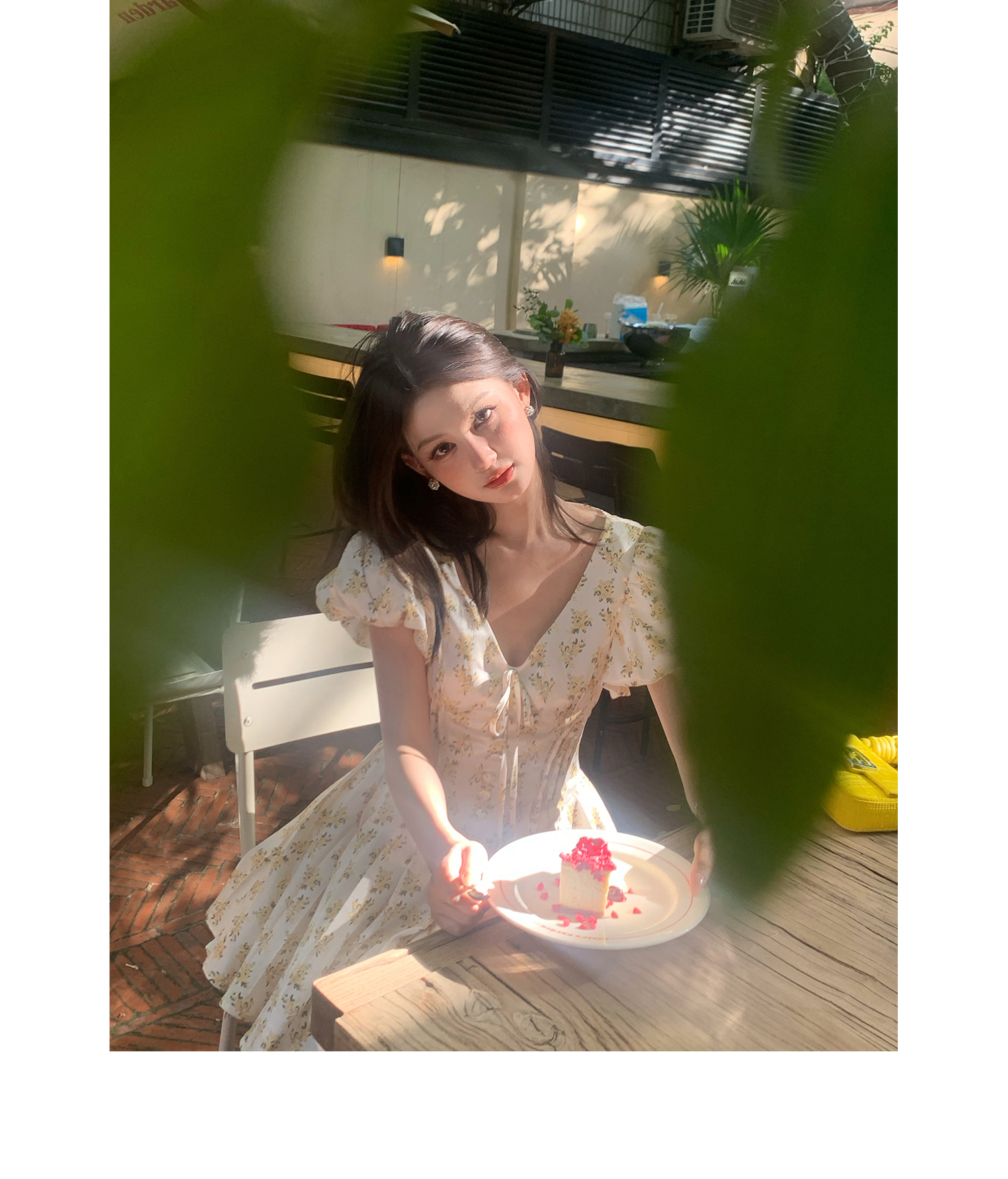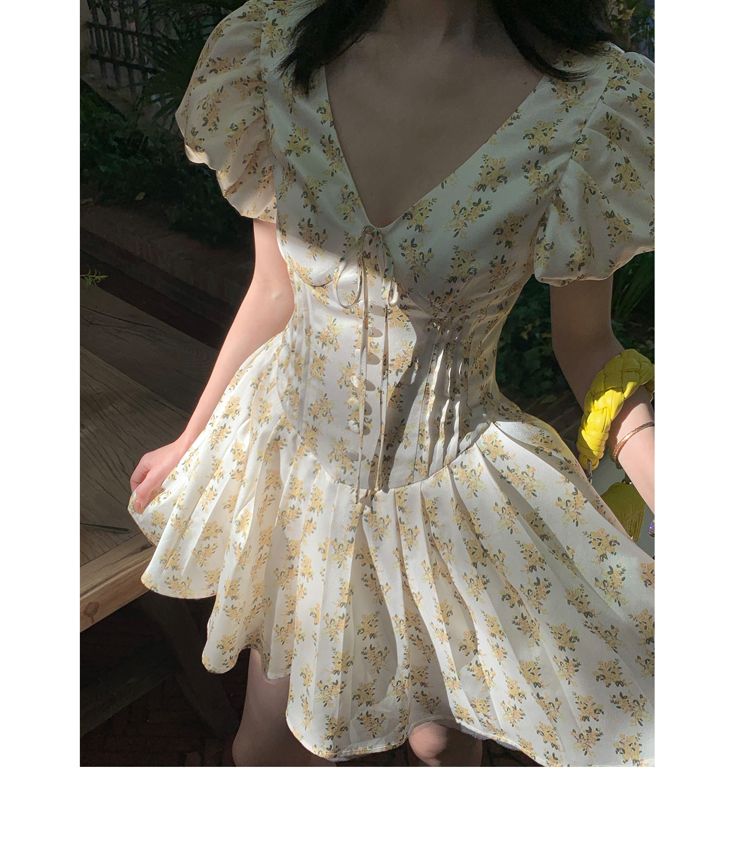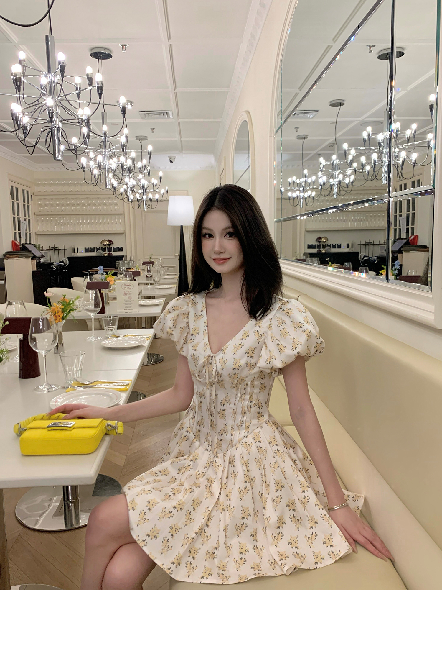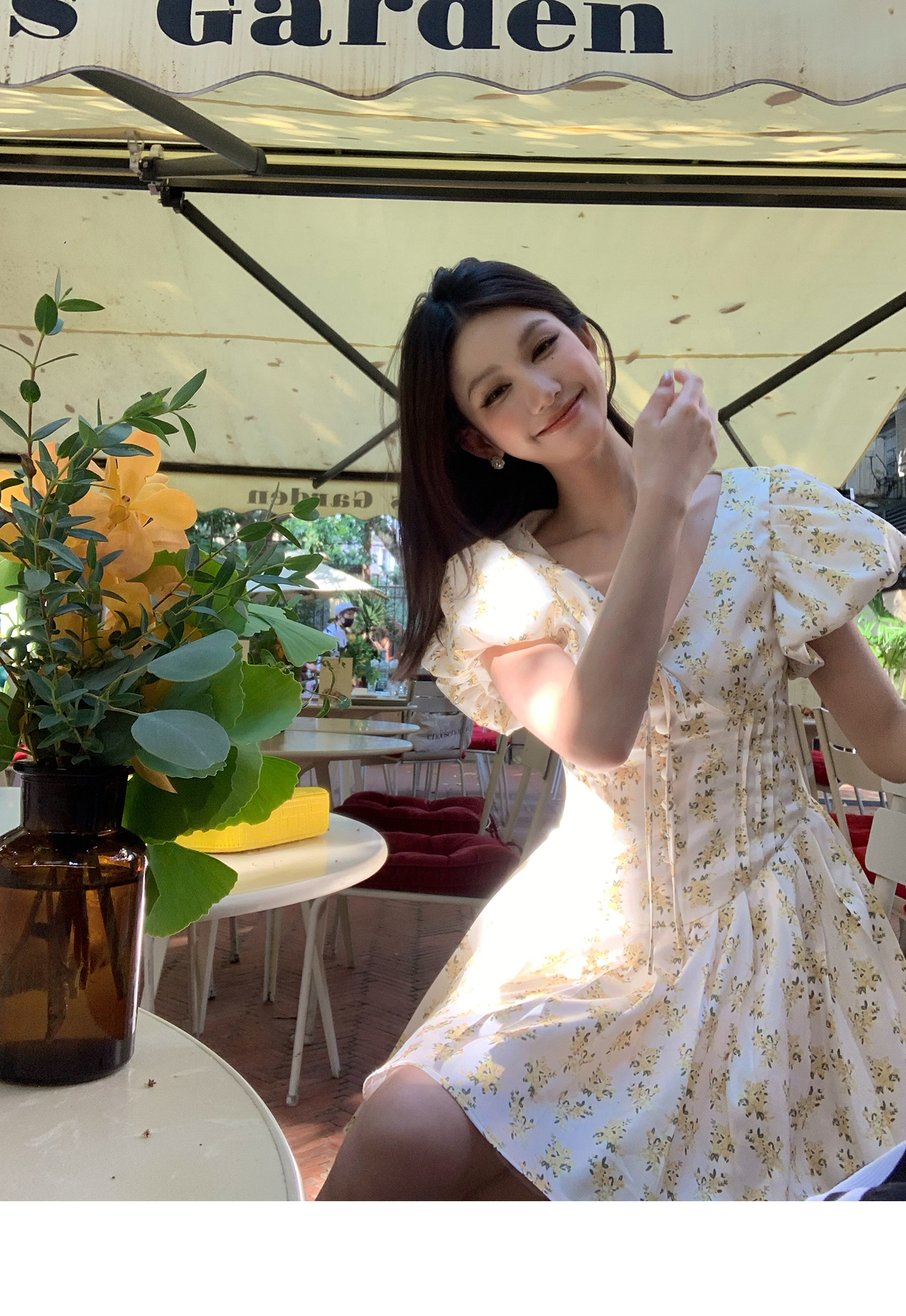 [Late Night Philadelphia] Slimming Puff Sleeve French Umbrella Skirt - Summer Floral Design