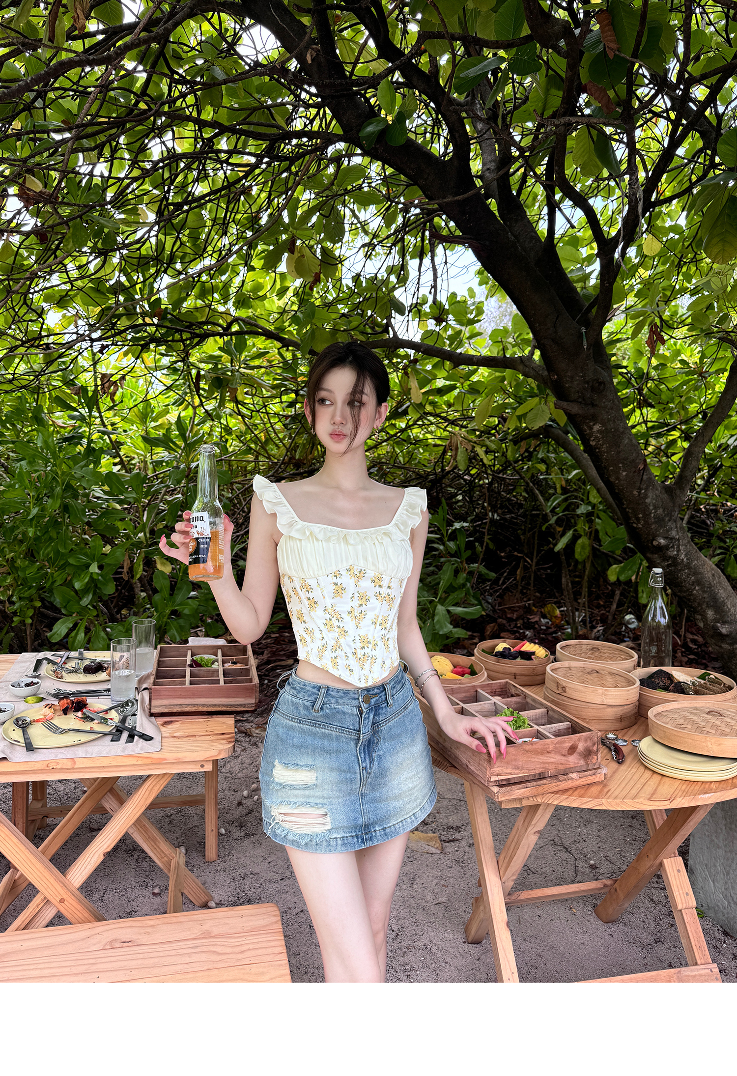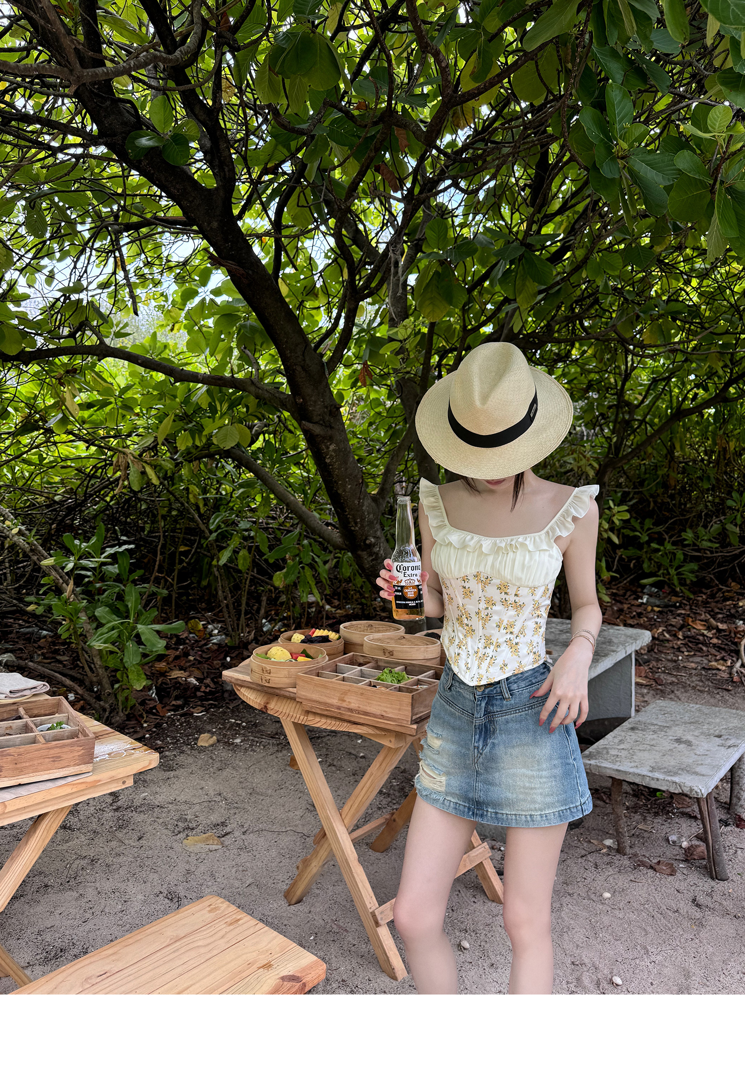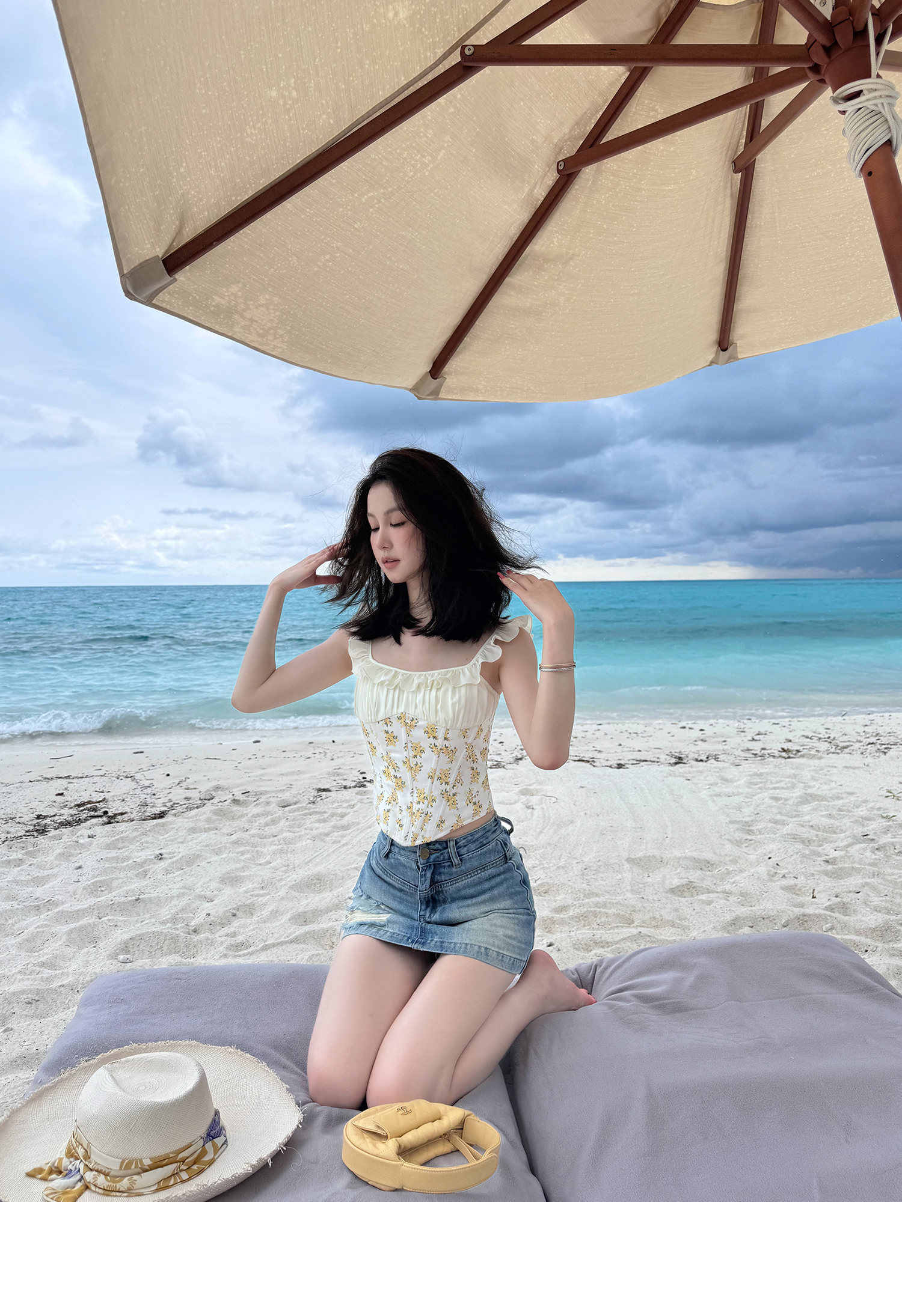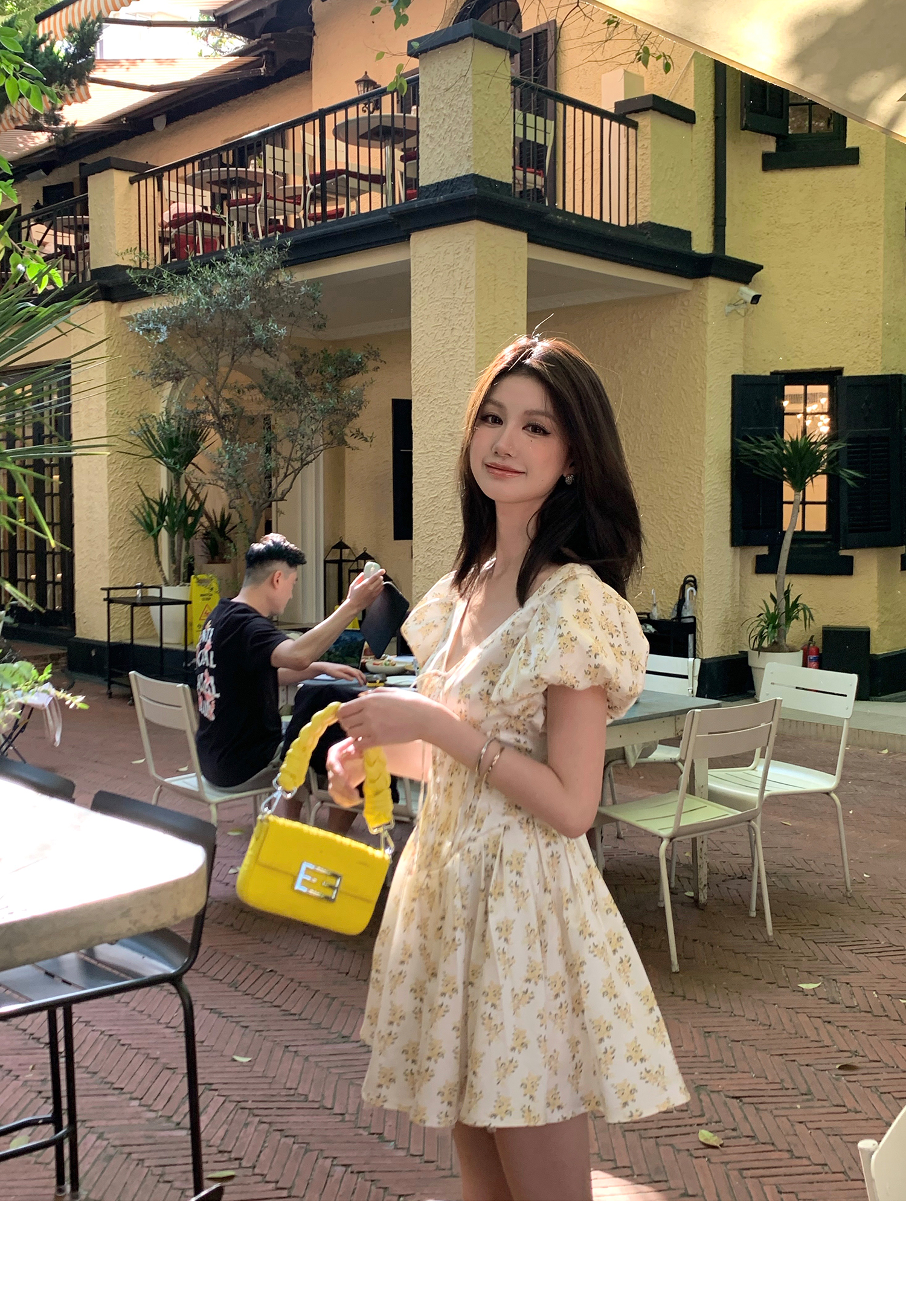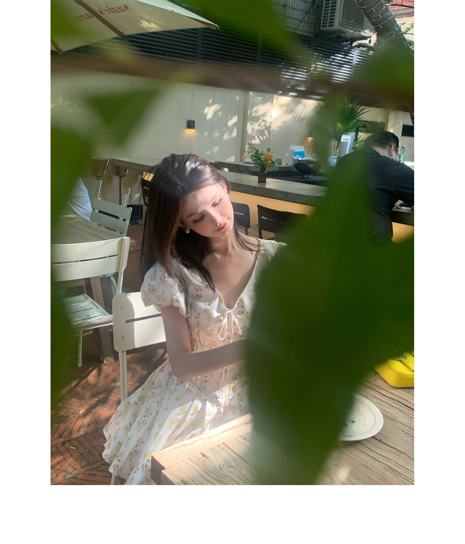 [Late Night Philadelphia] Slimming Puff Sleeve French Umbrella Skirt - Summer Floral Design