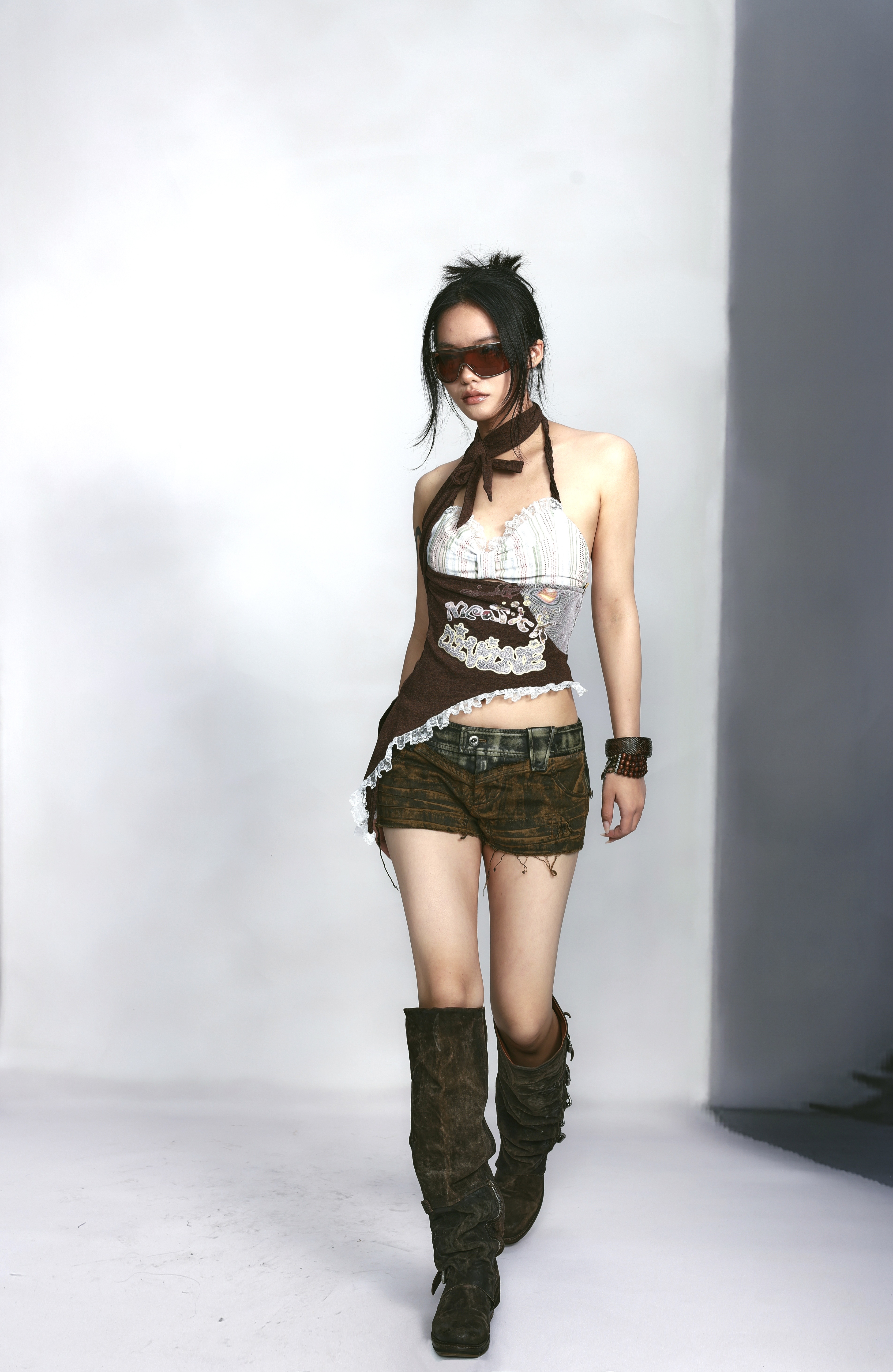 Leather Panel Slim Shorts – Rugged Vintage Finish