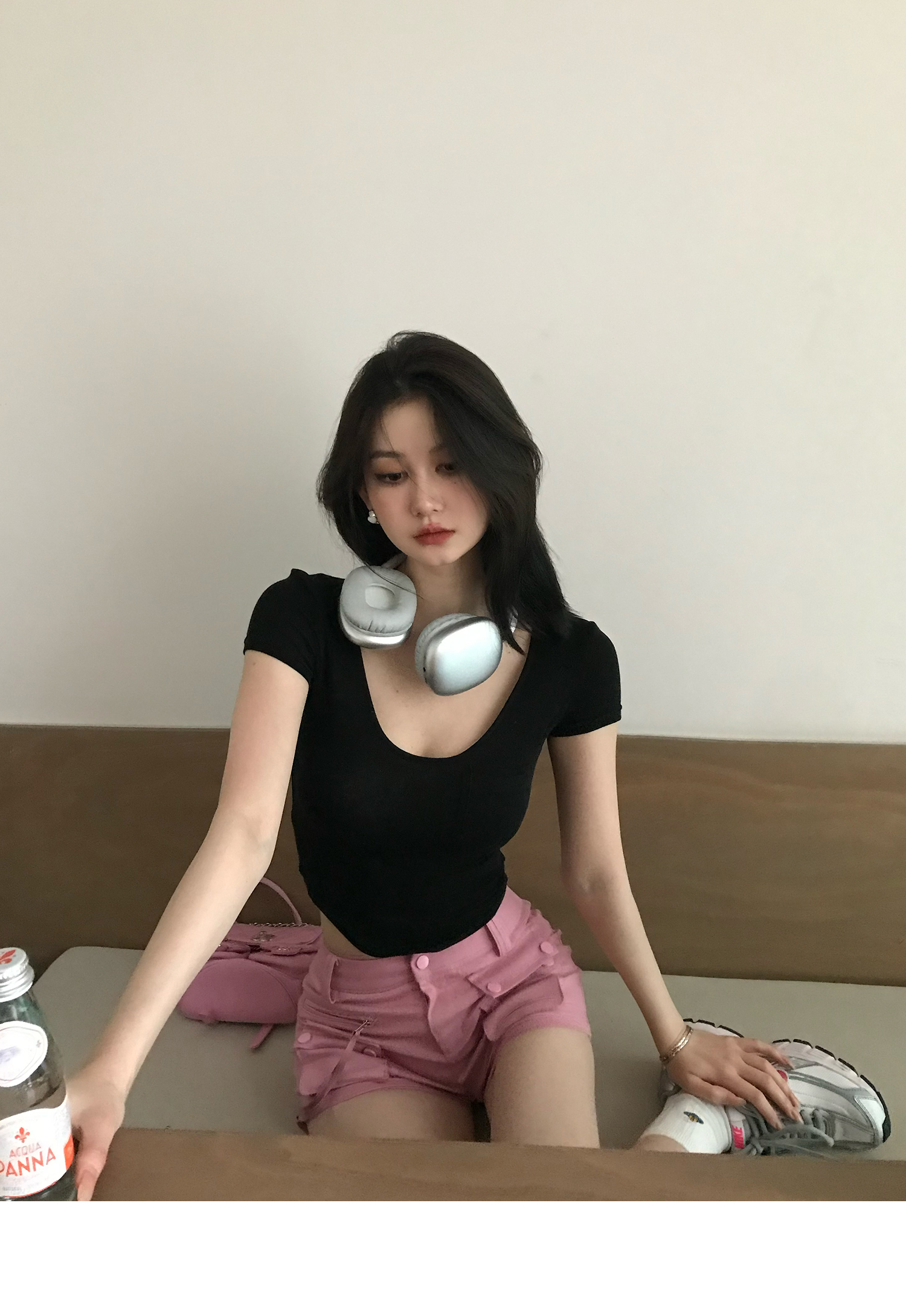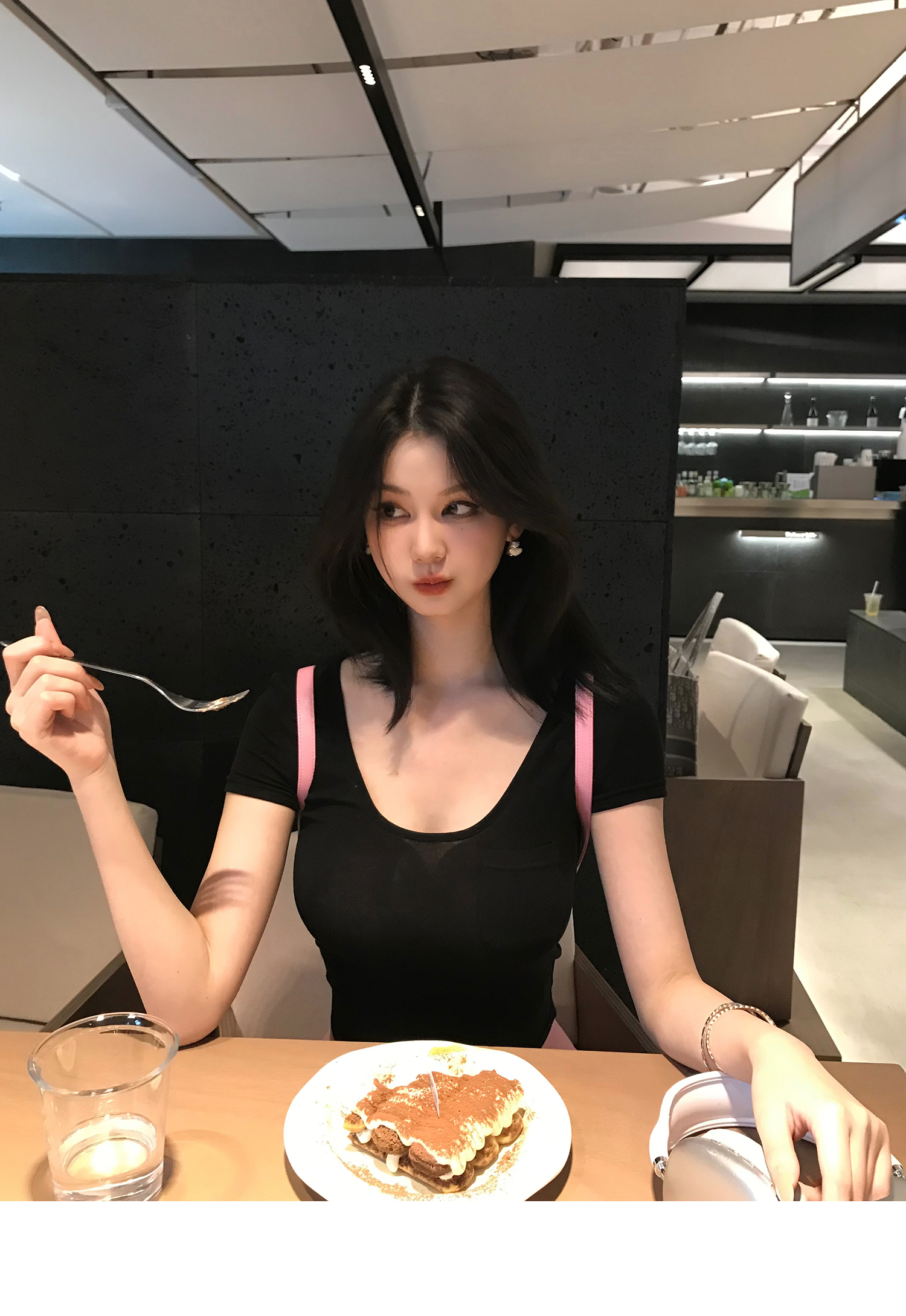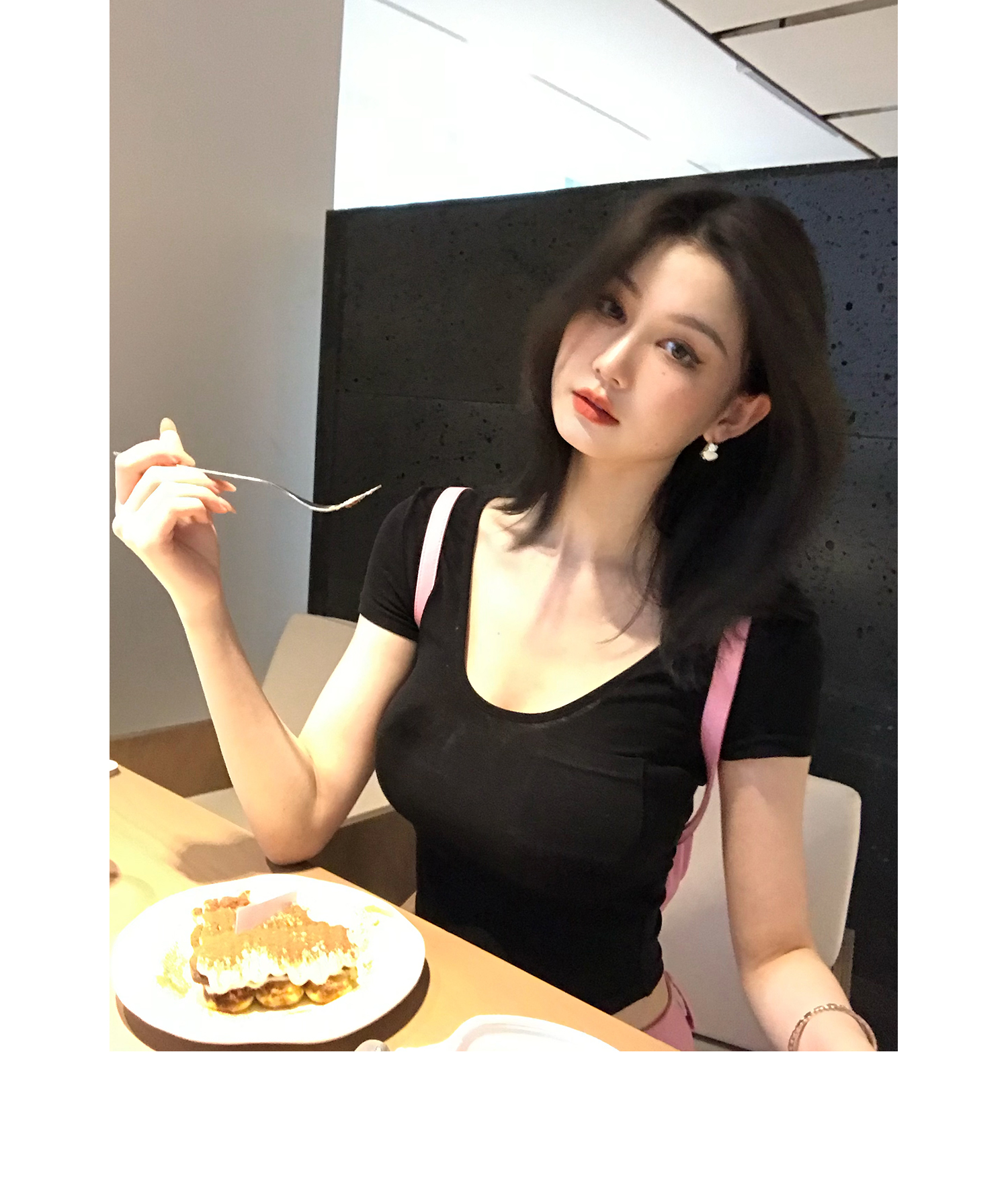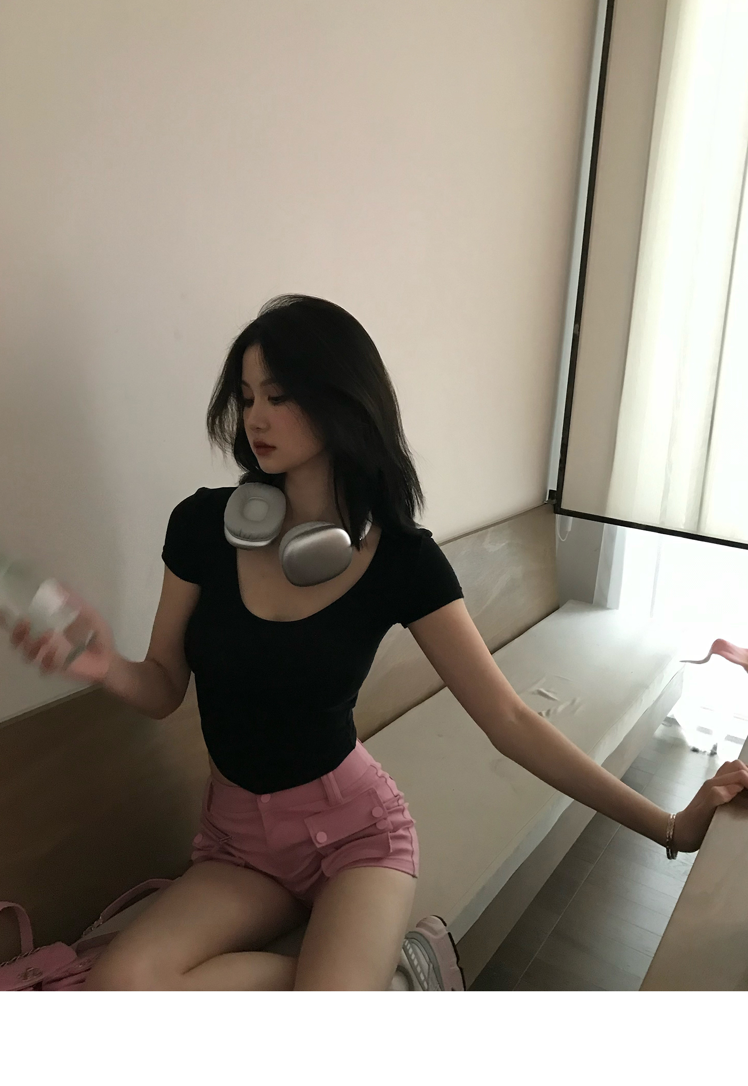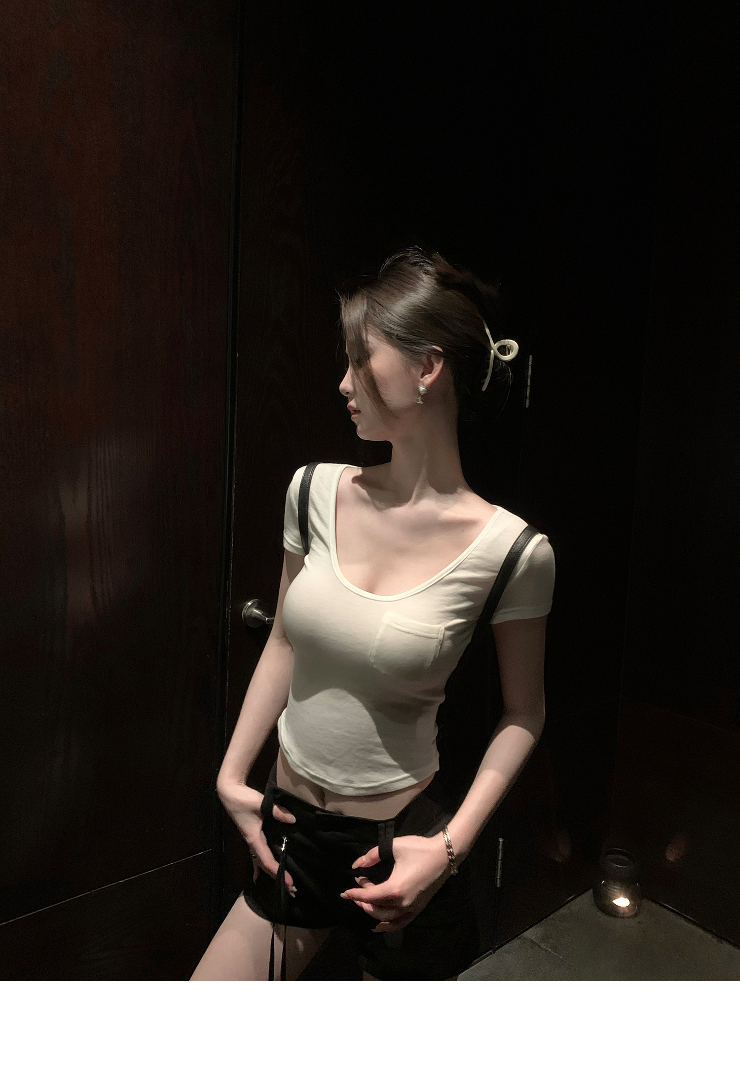 [Light Oxygen Mask Tee] Pure Desire U-Neck Short-Sleeve Slim Fit Top