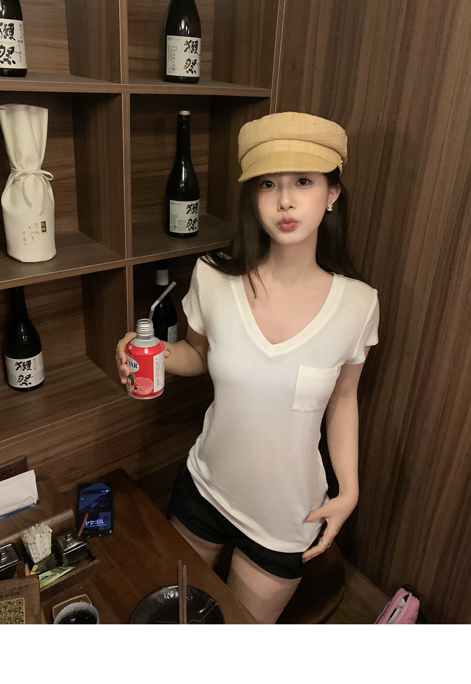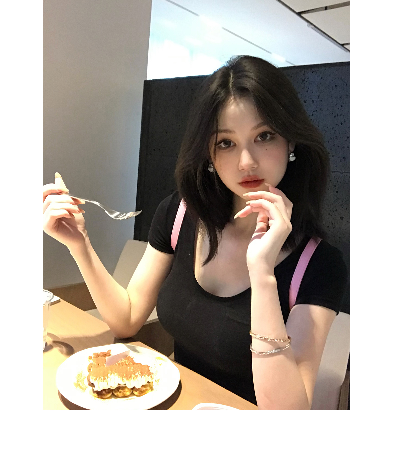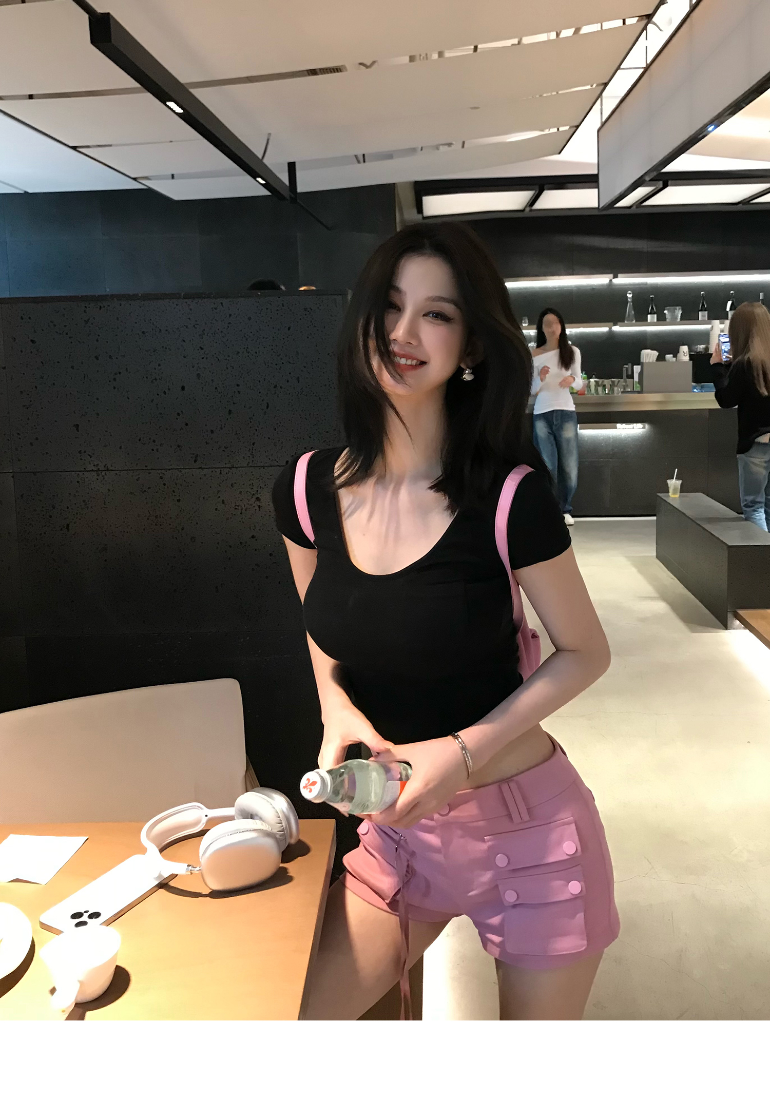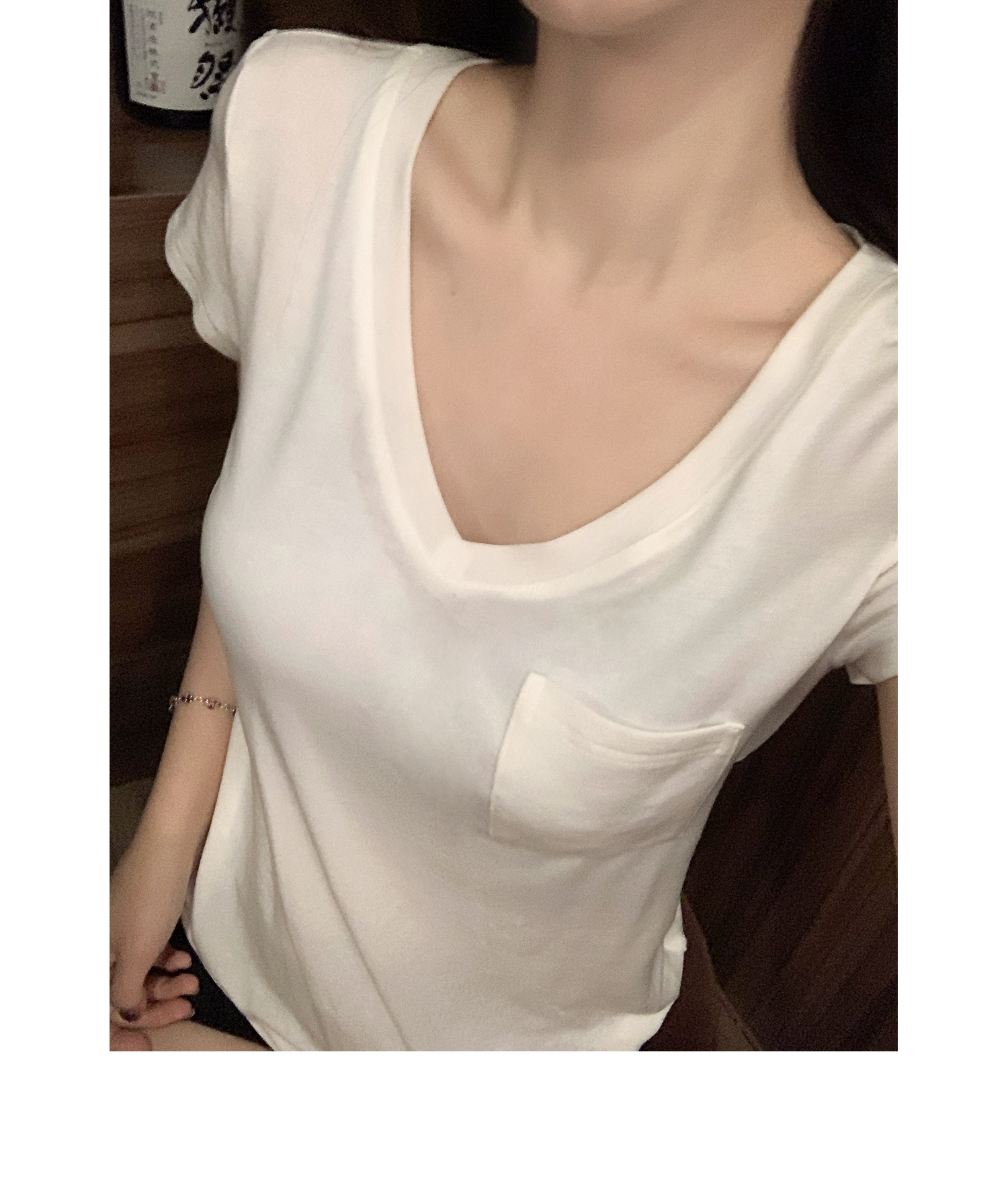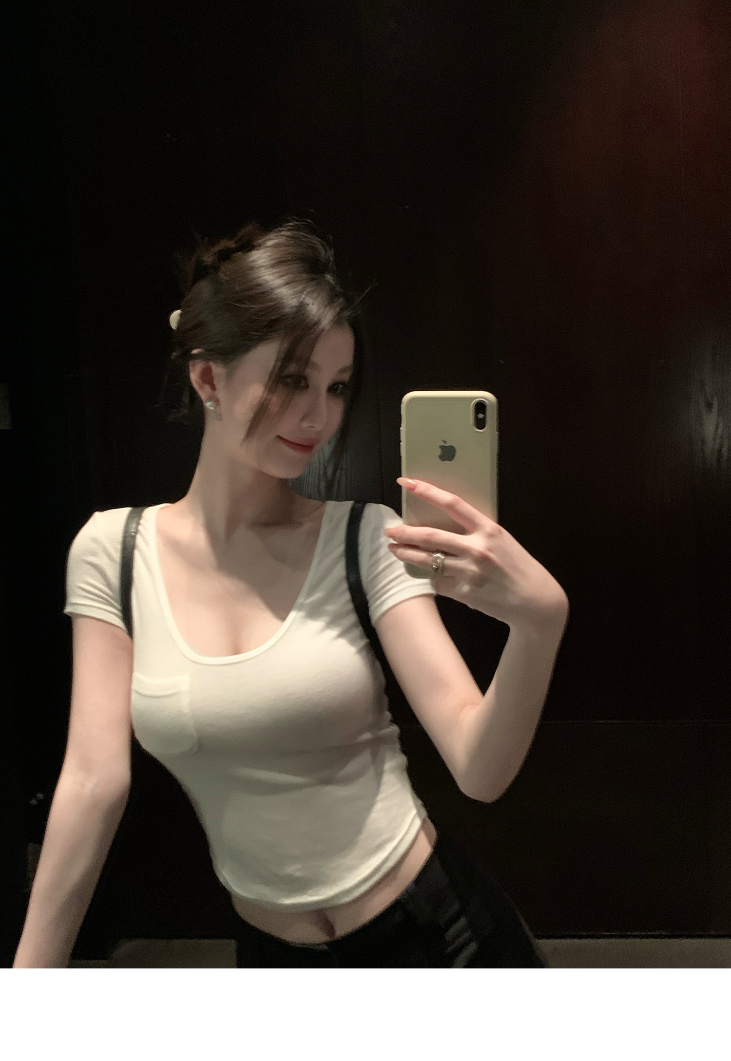 [Light Oxygen Mask Tee] Pure Desire U-Neck Short-Sleeve Slim Fit Top
