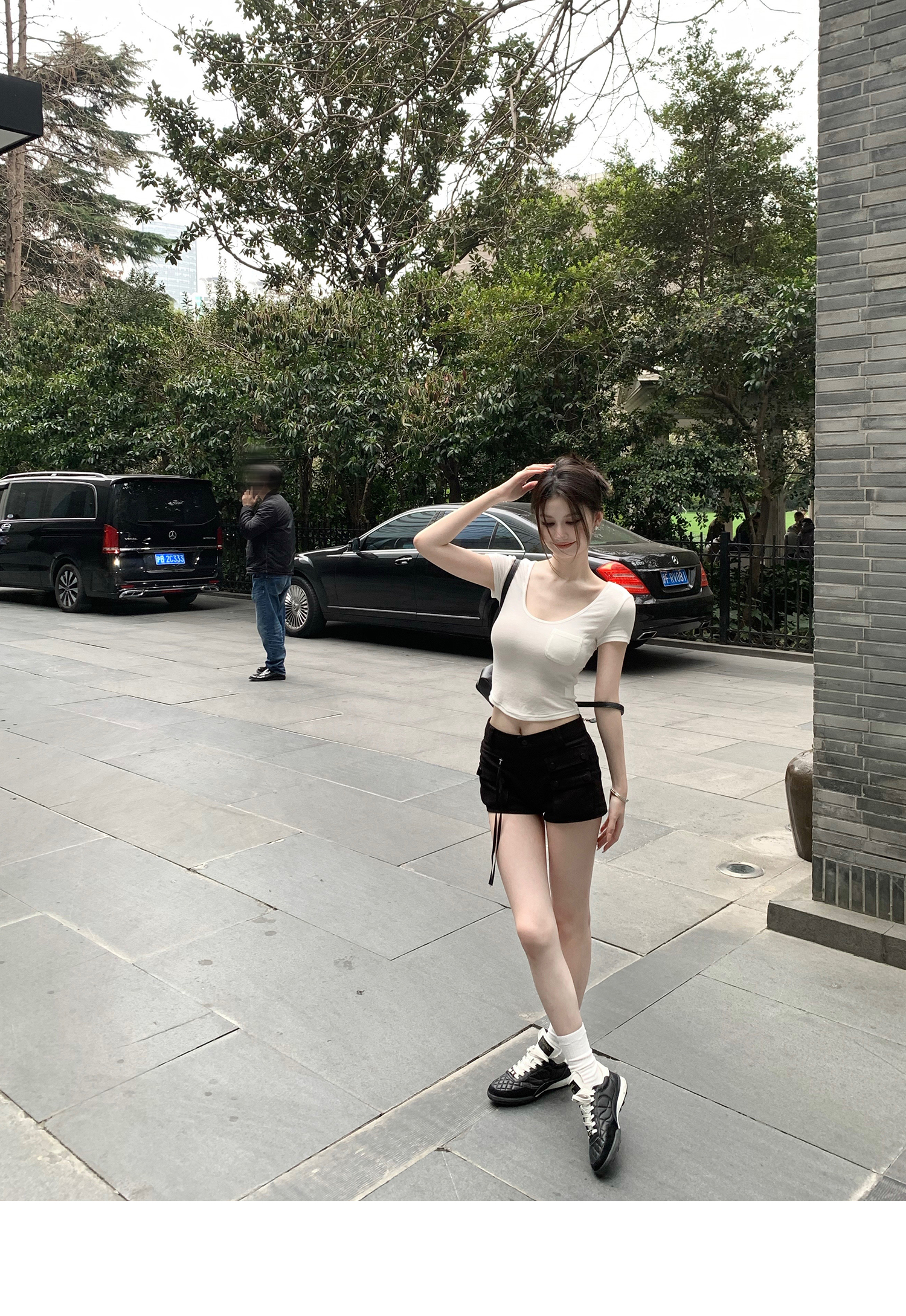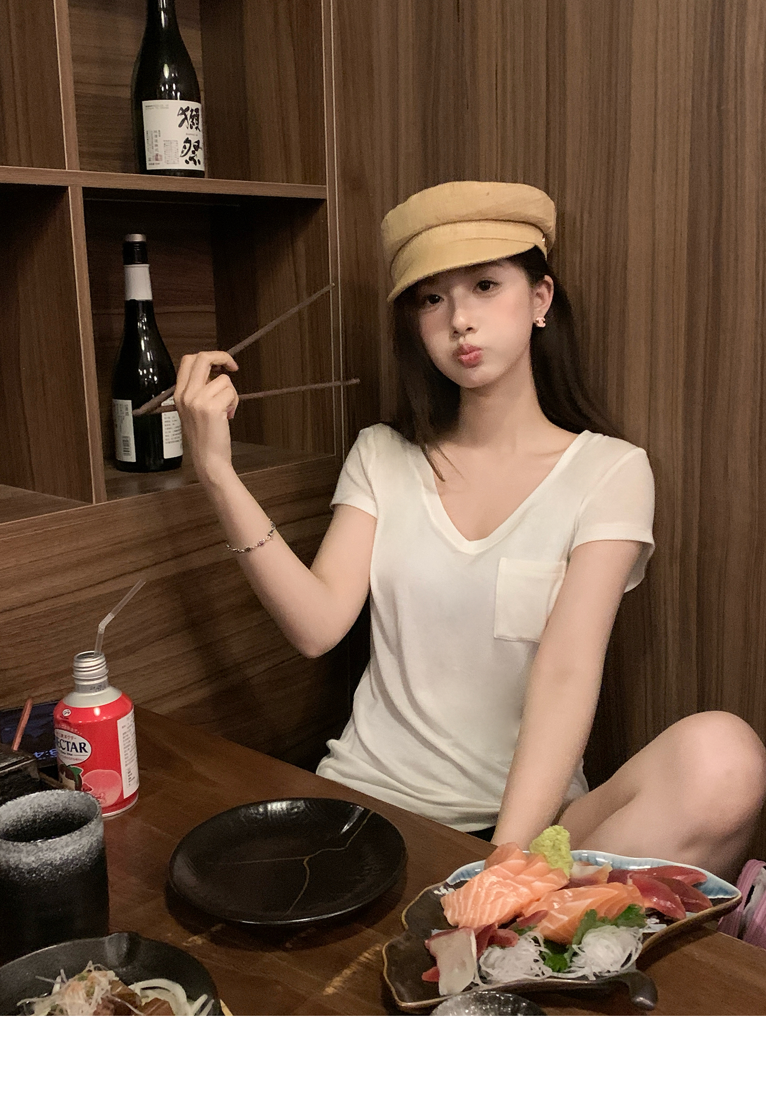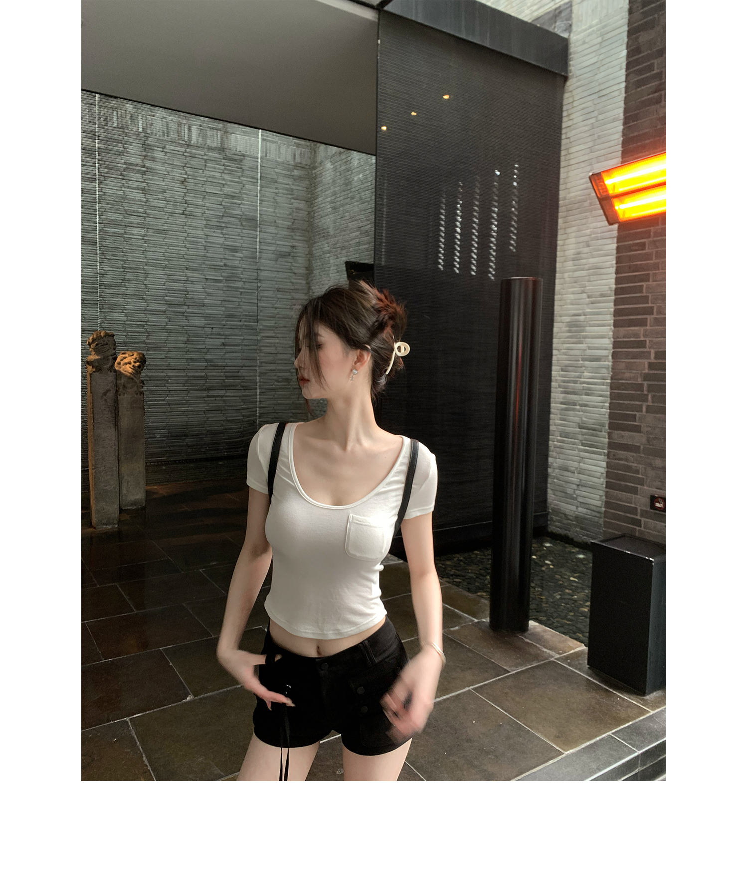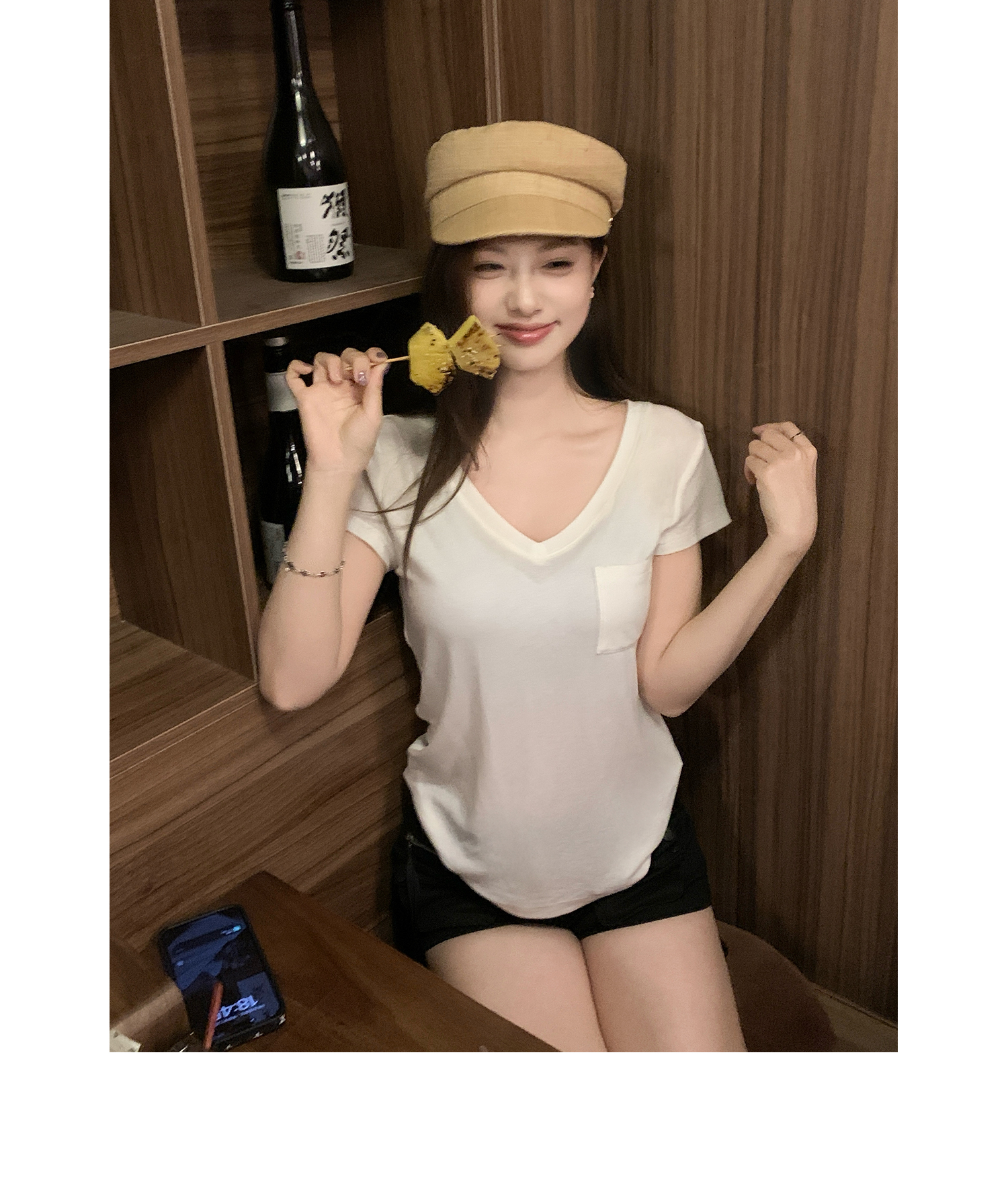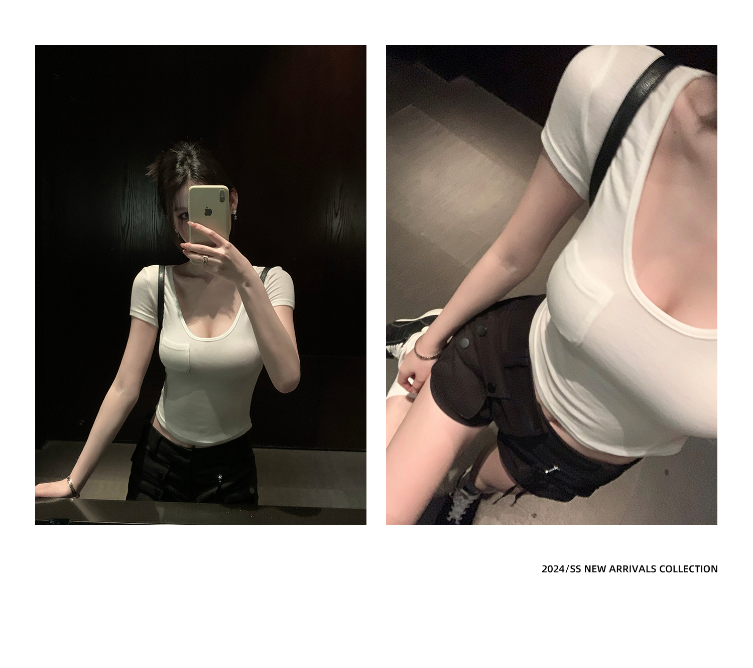 [Light Oxygen Mask Tee] Pure Desire U-Neck Short-Sleeve Slim Fit Top