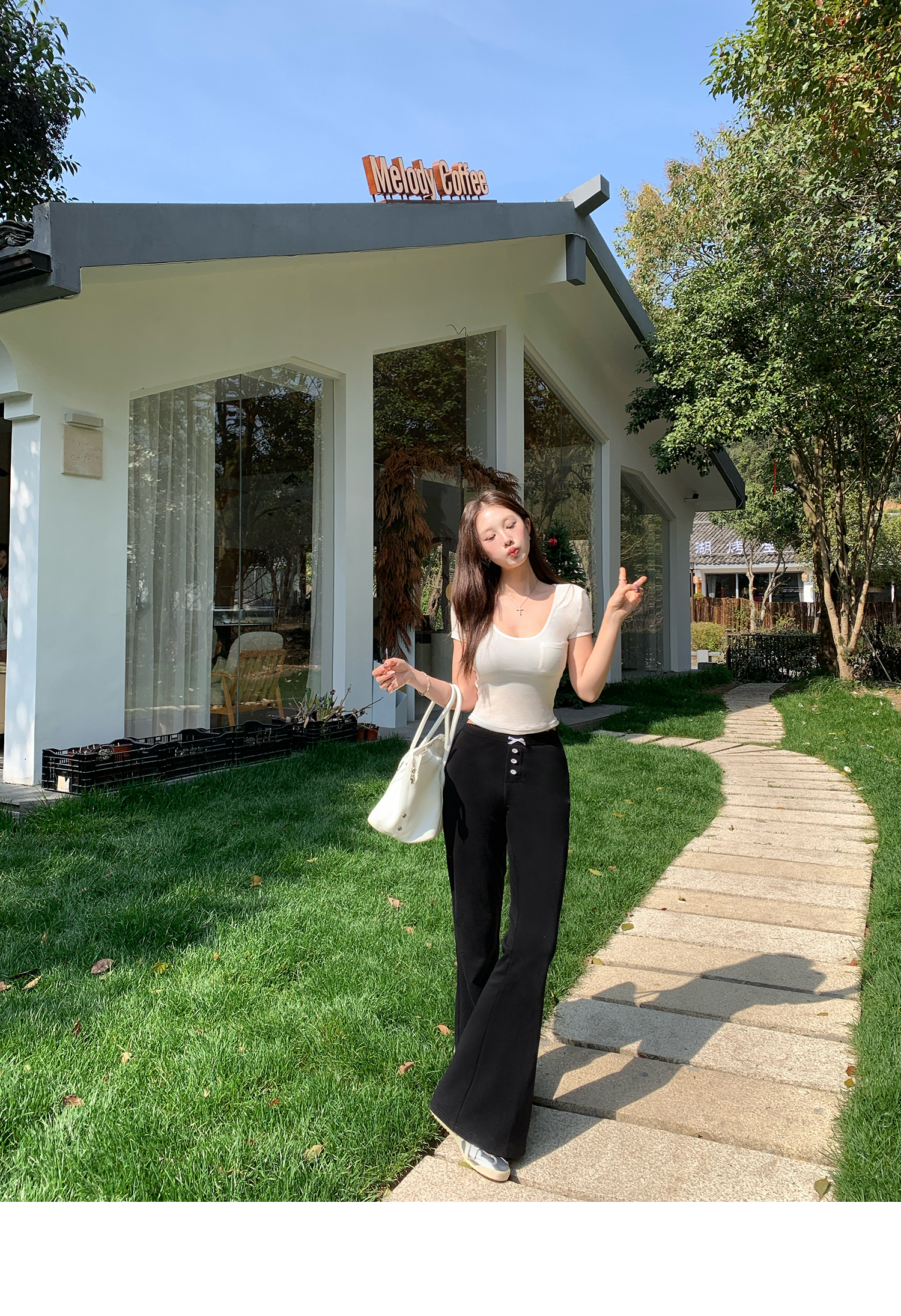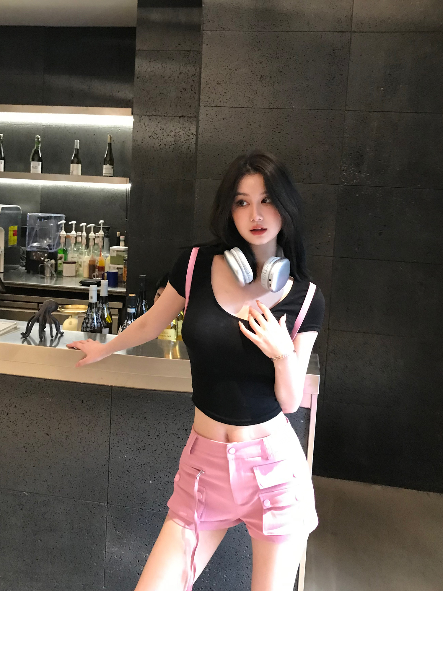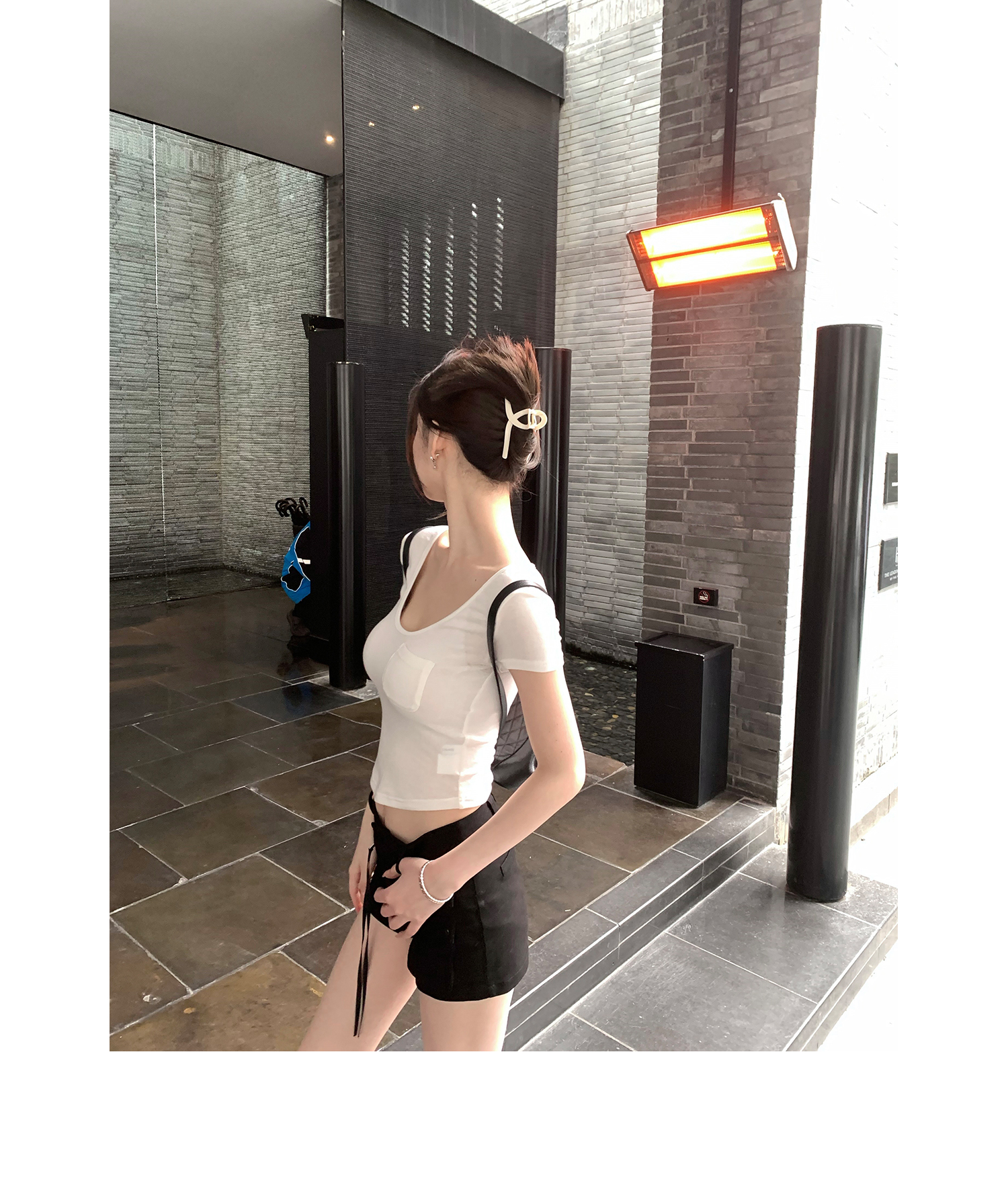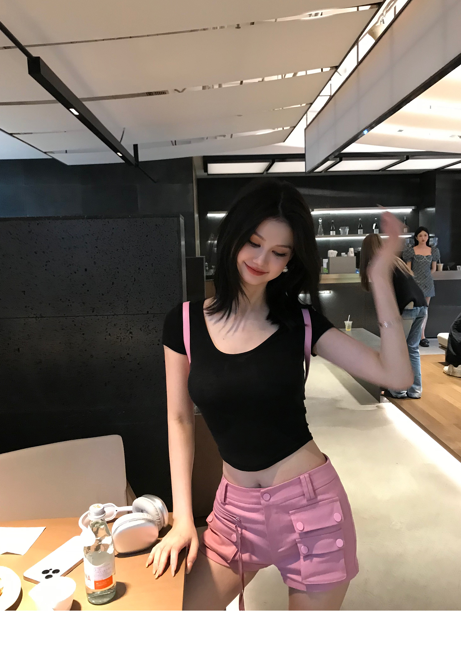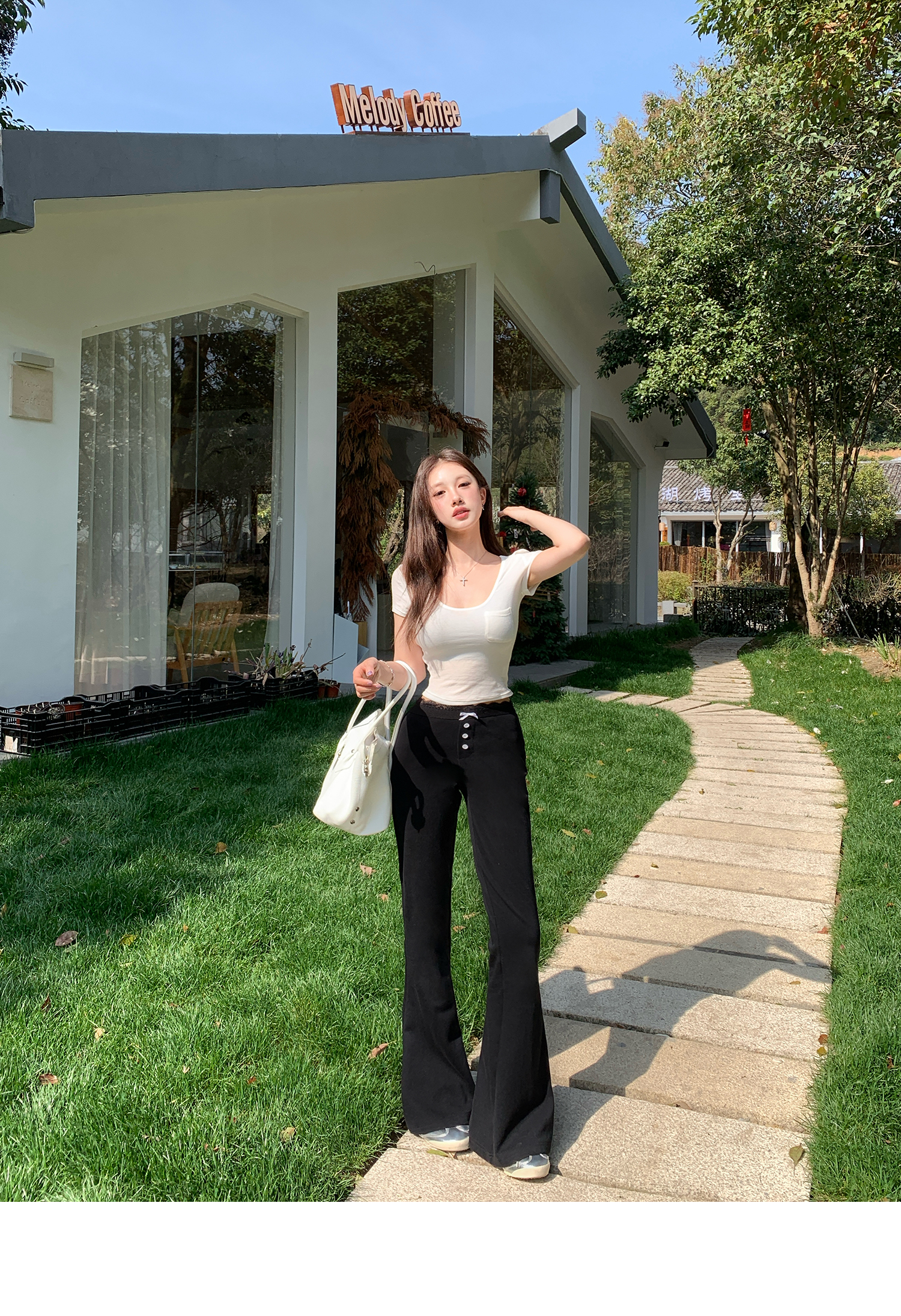 [Light Oxygen Mask Tee] Pure Desire U-Neck Short-Sleeve Slim Fit Top