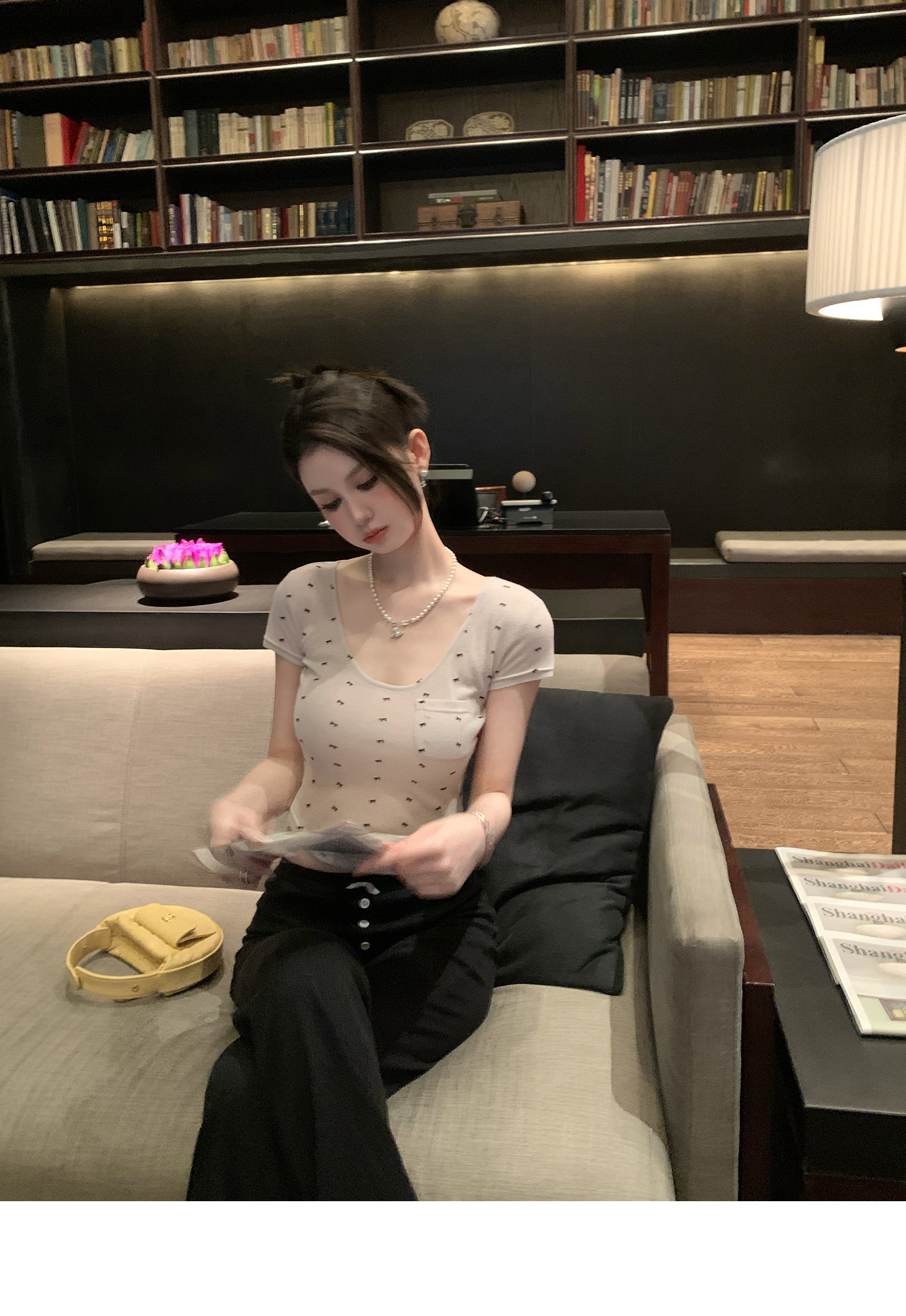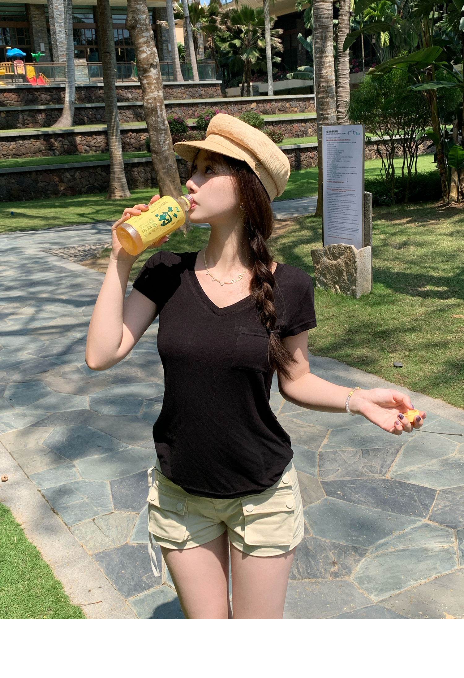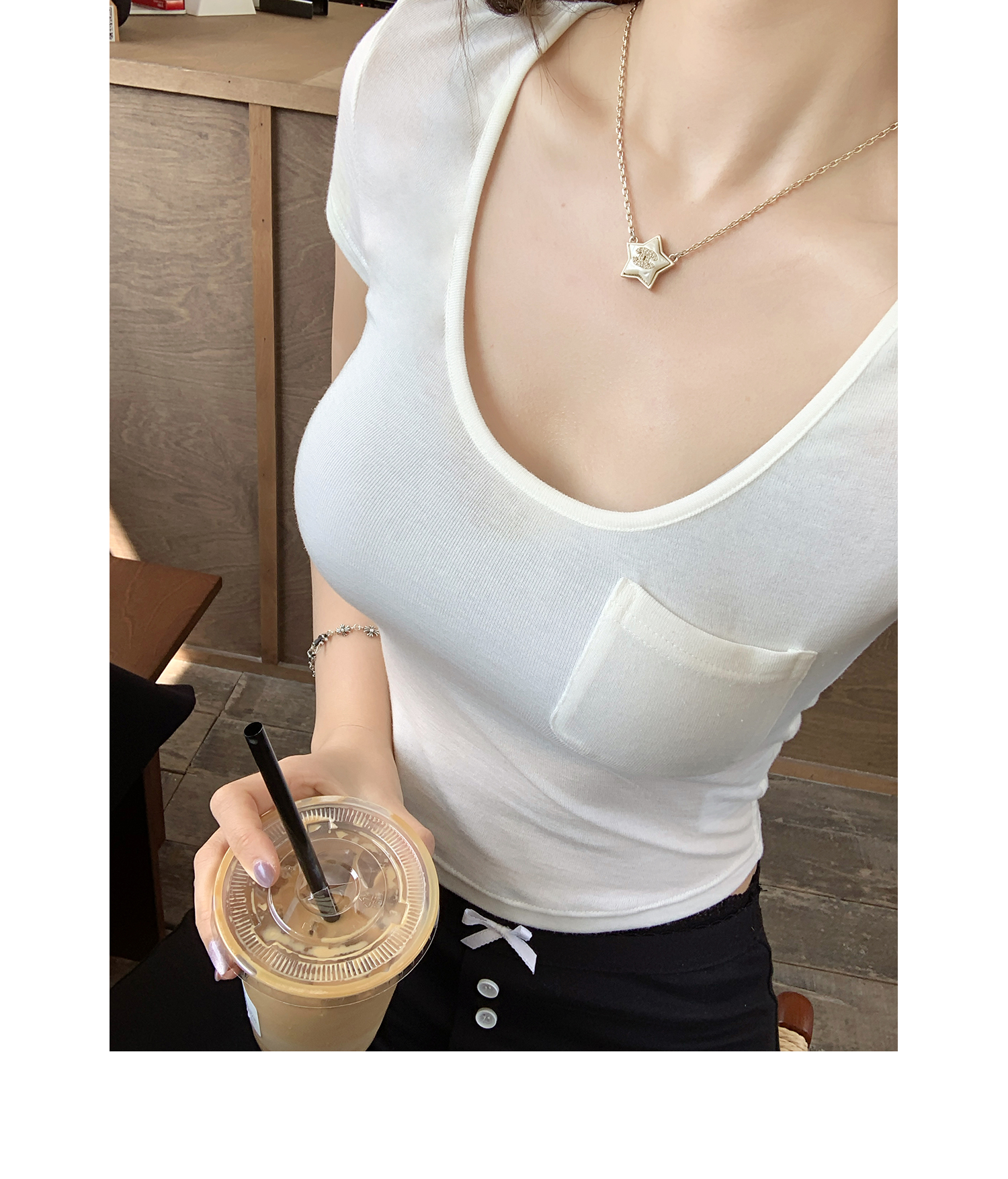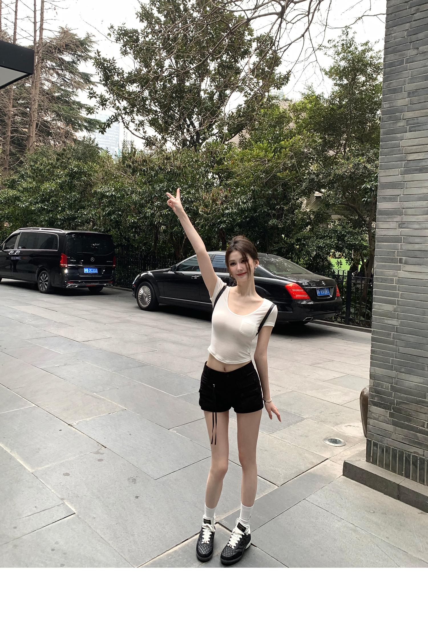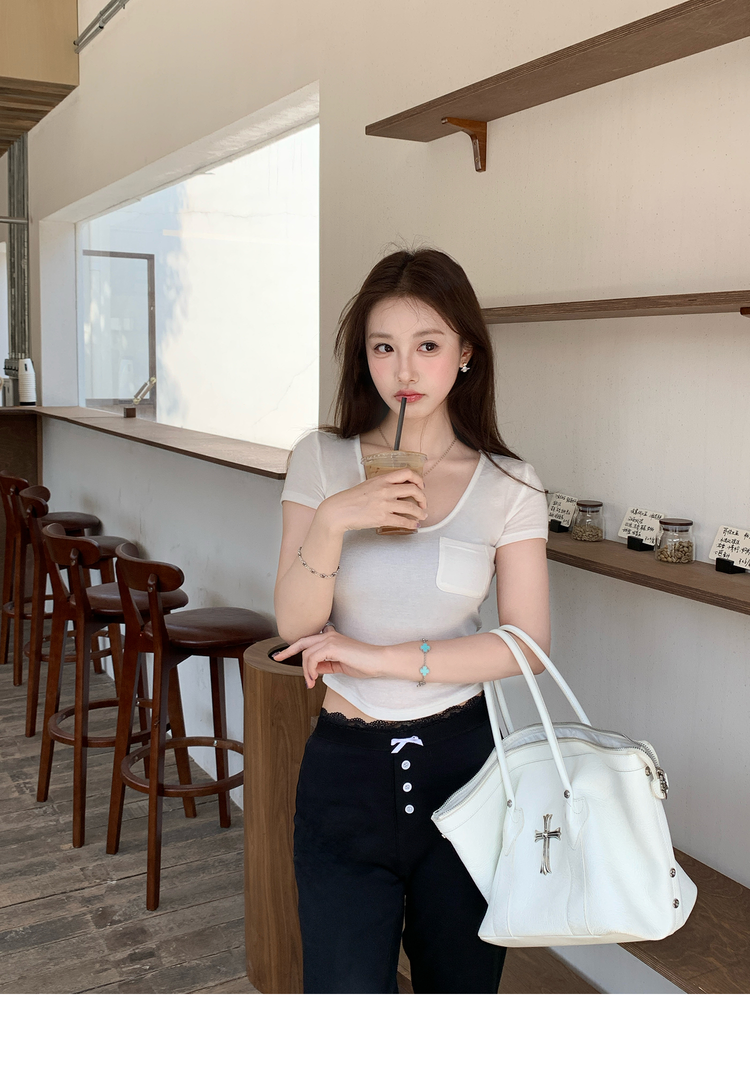 [Light Oxygen Mask Tee] Pure Desire U-Neck Short-Sleeve Slim Fit Top