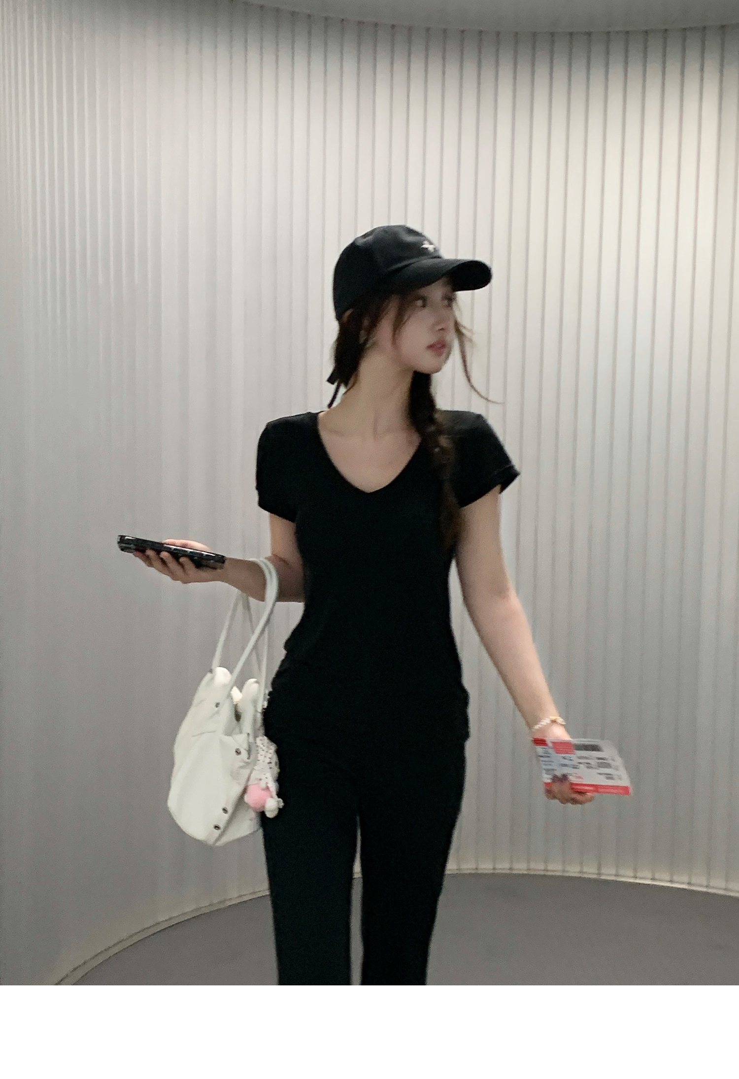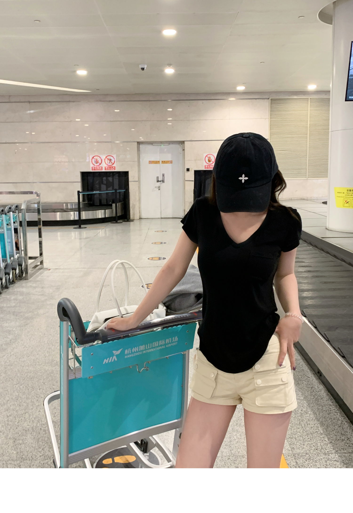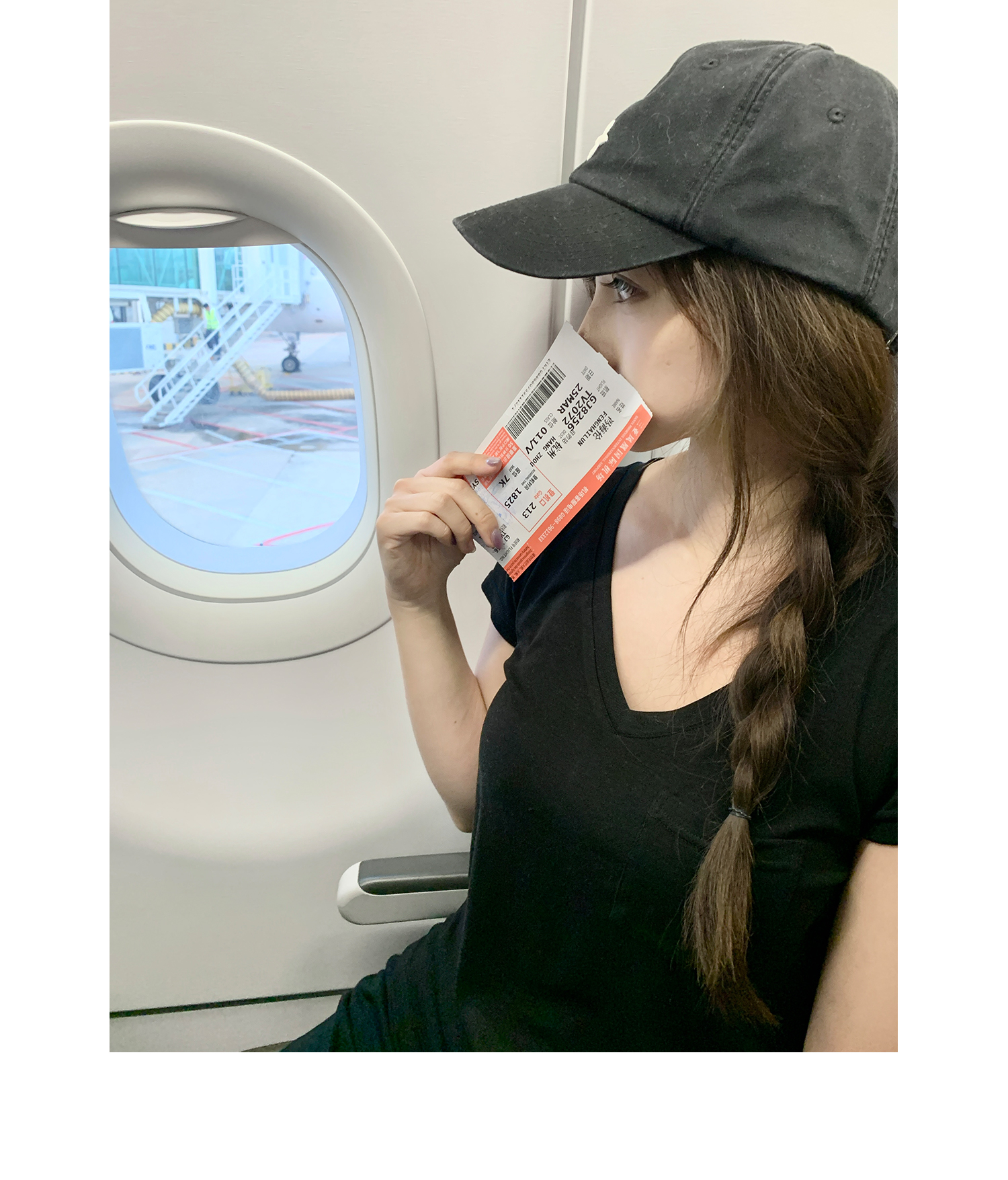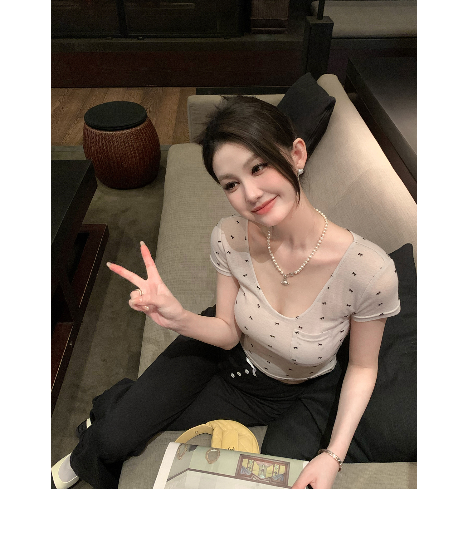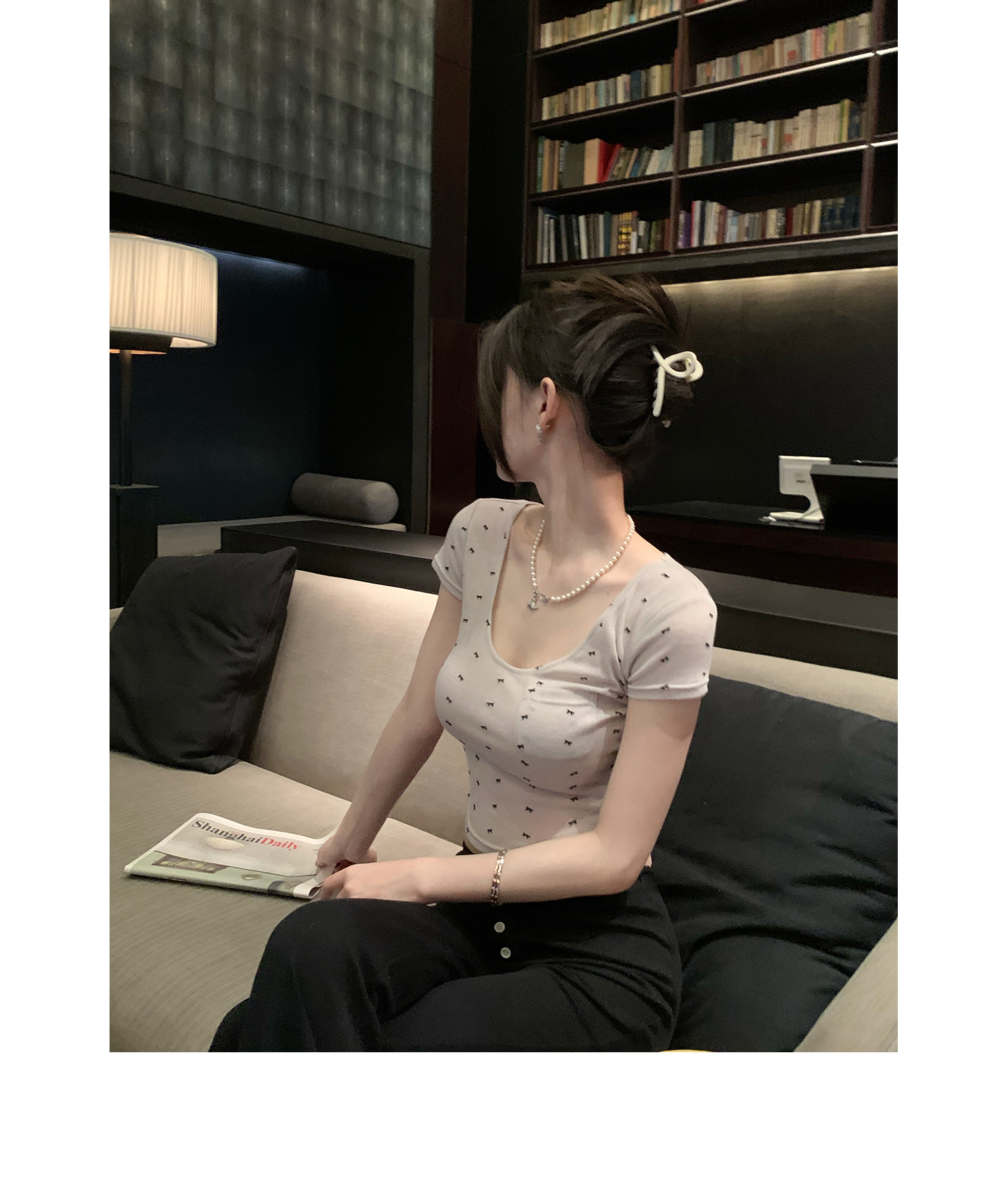 [Light Oxygen Mask Tee] Pure Desire U-Neck Short-Sleeve Slim Fit Top