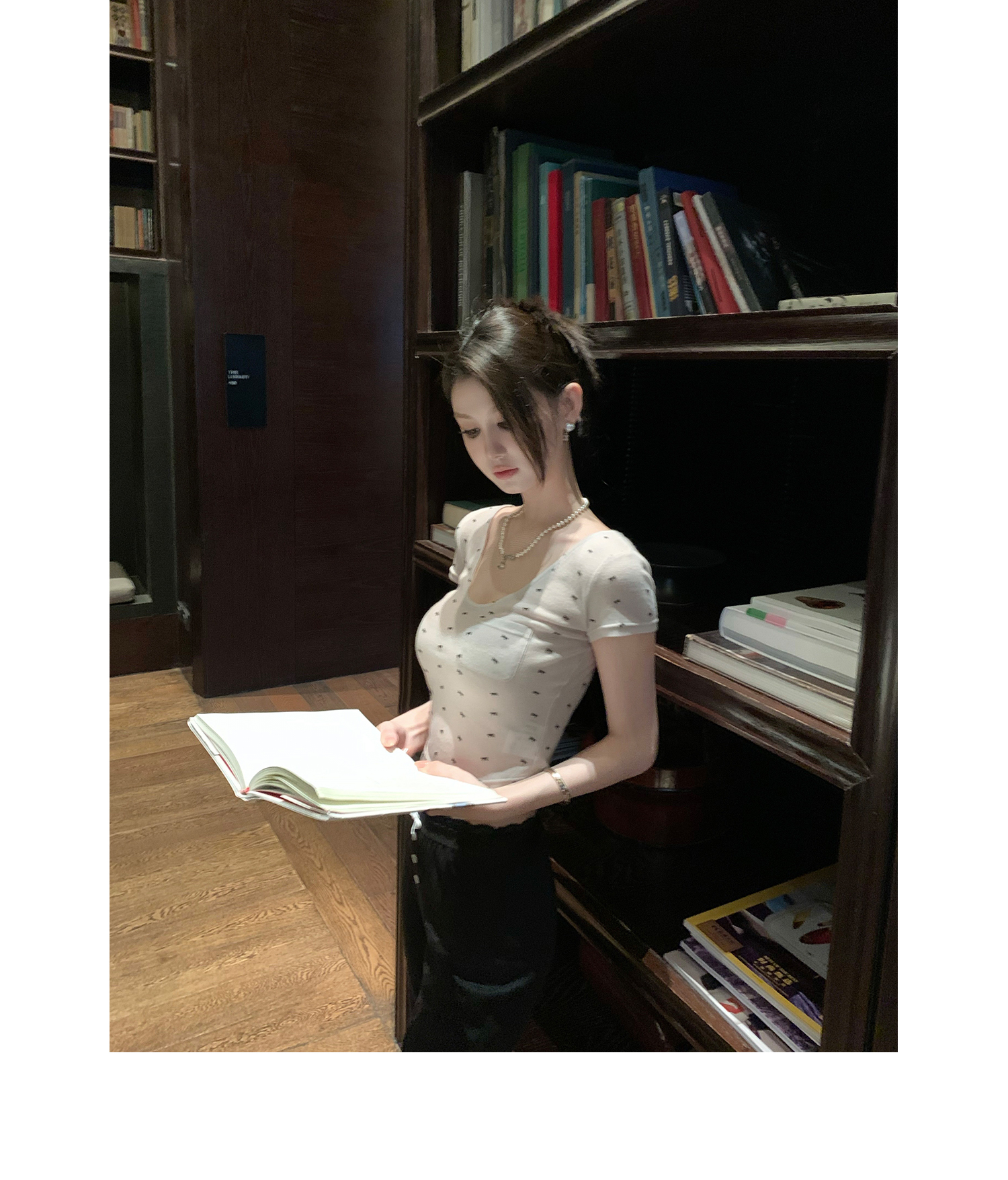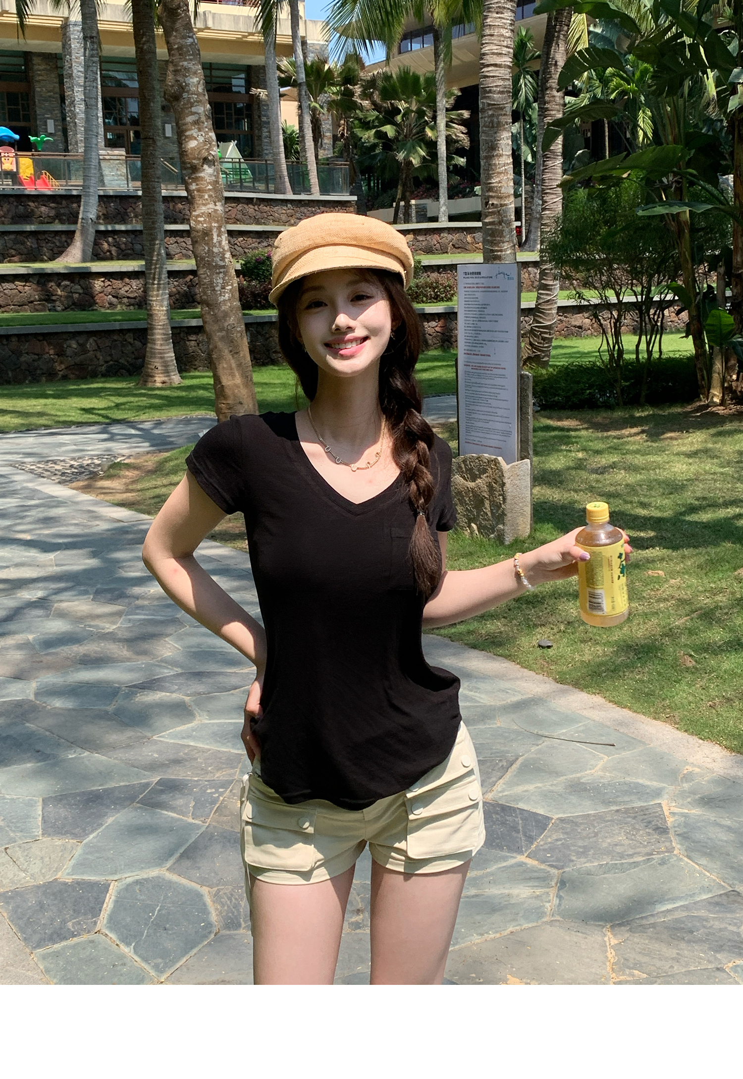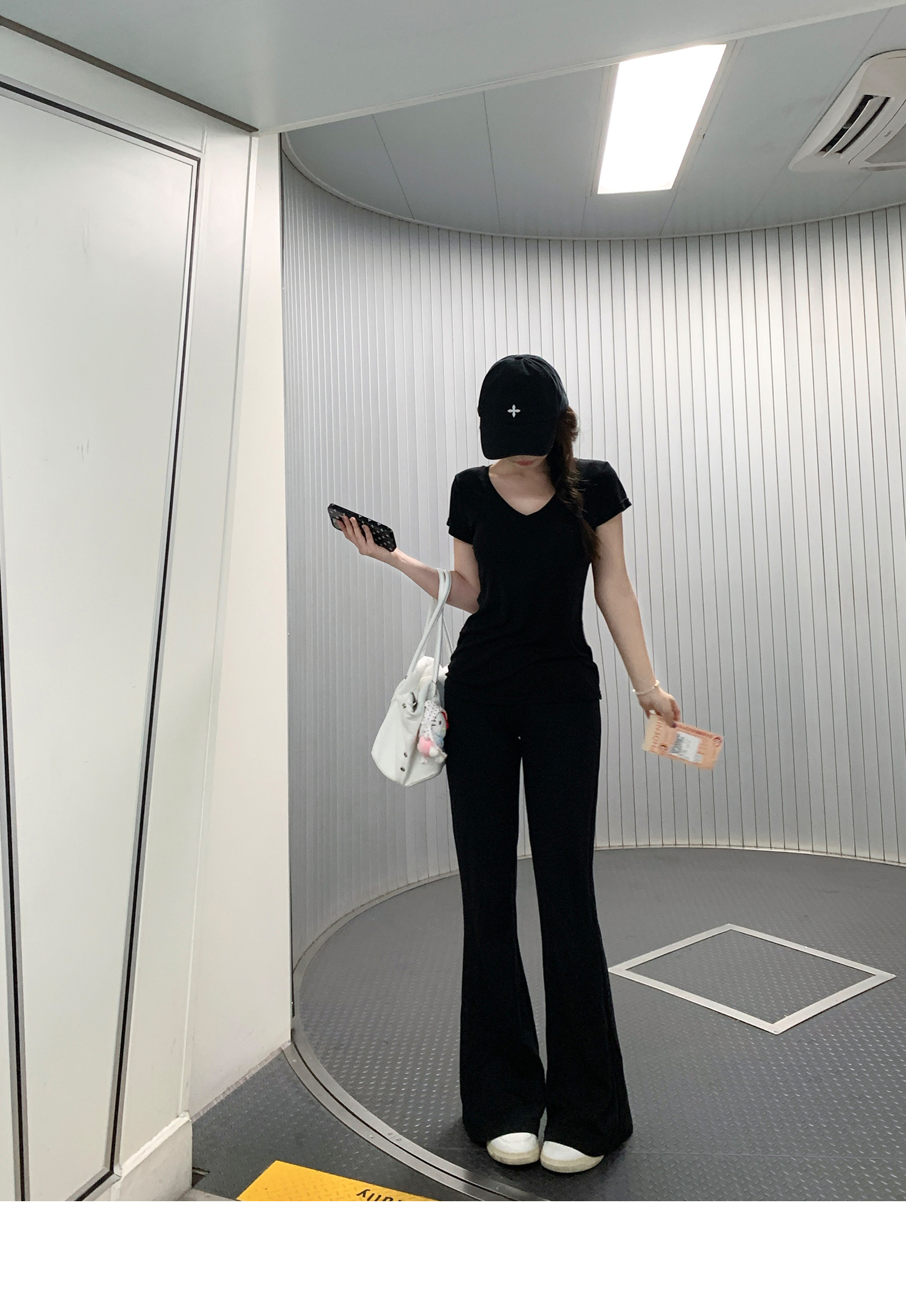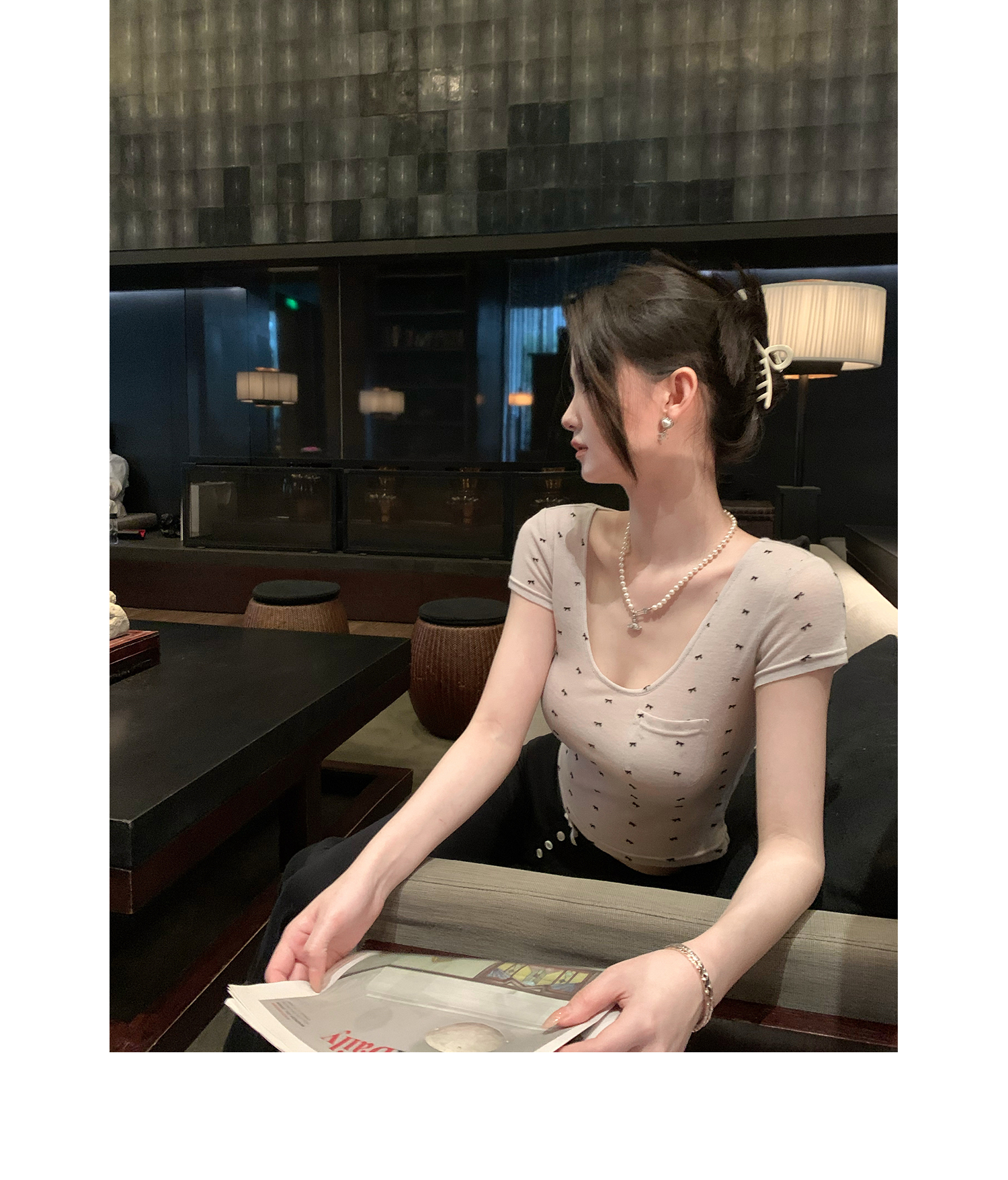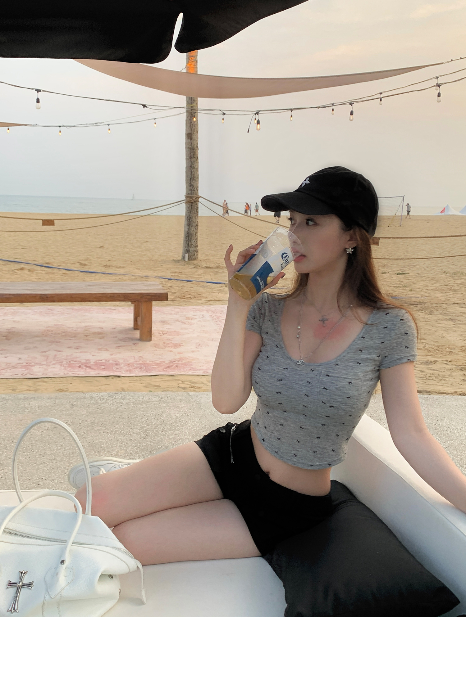 [Light Oxygen Mask Tee] Pure Desire U-Neck Short-Sleeve Slim Fit Top
