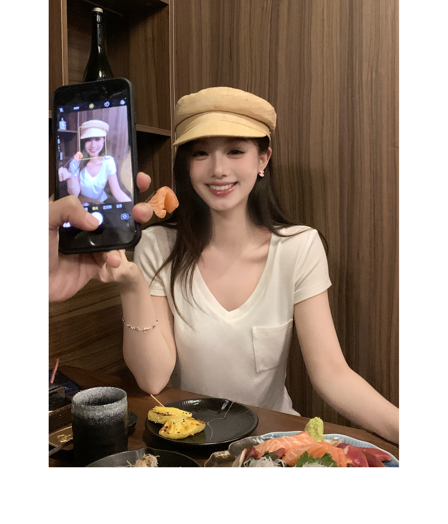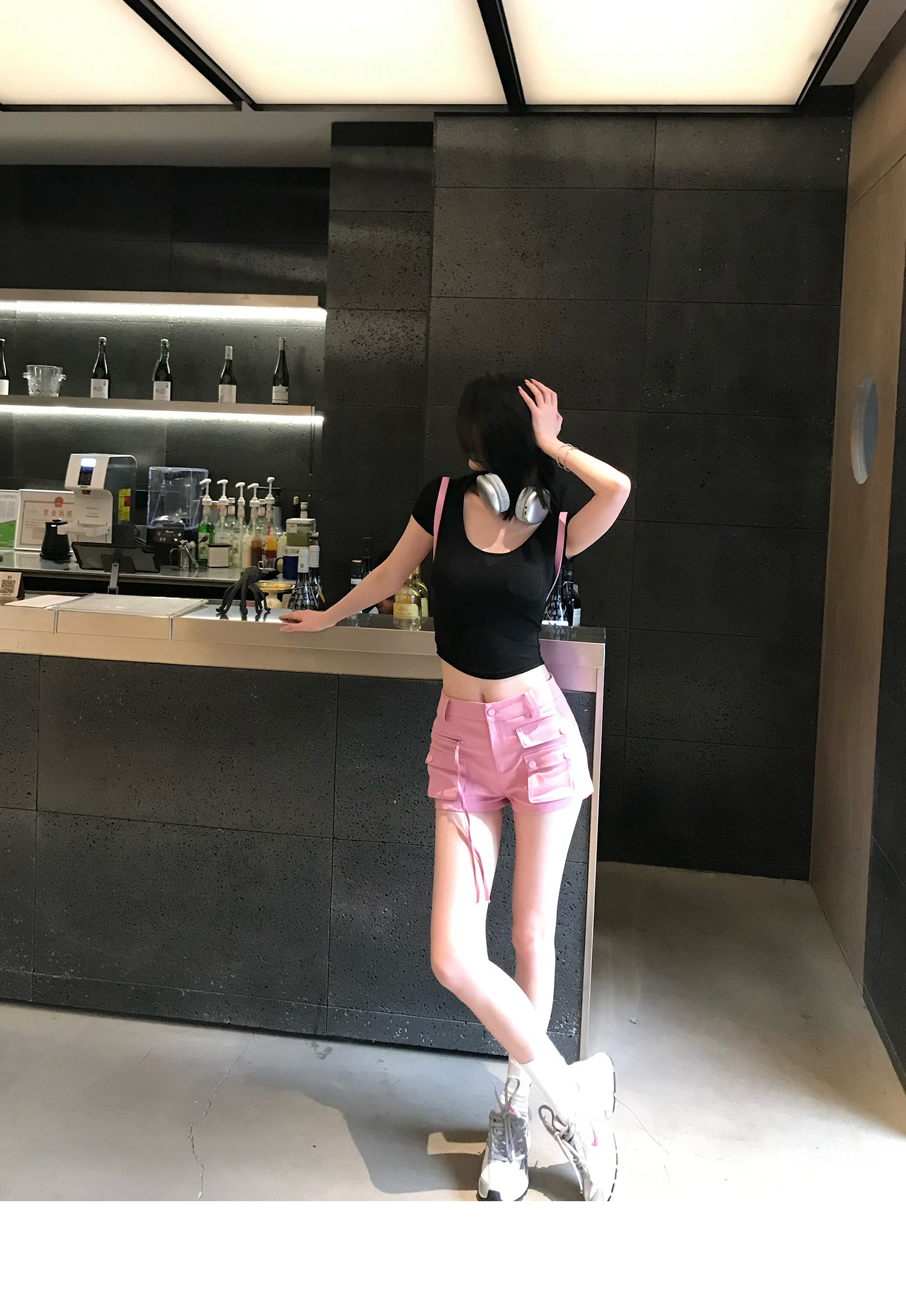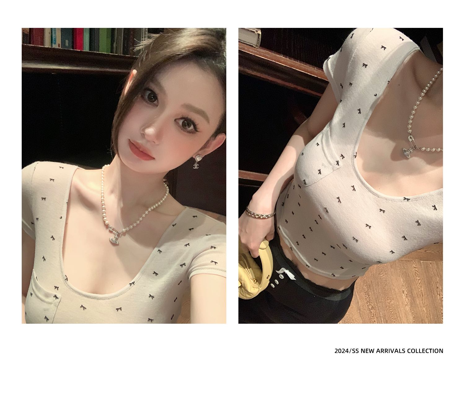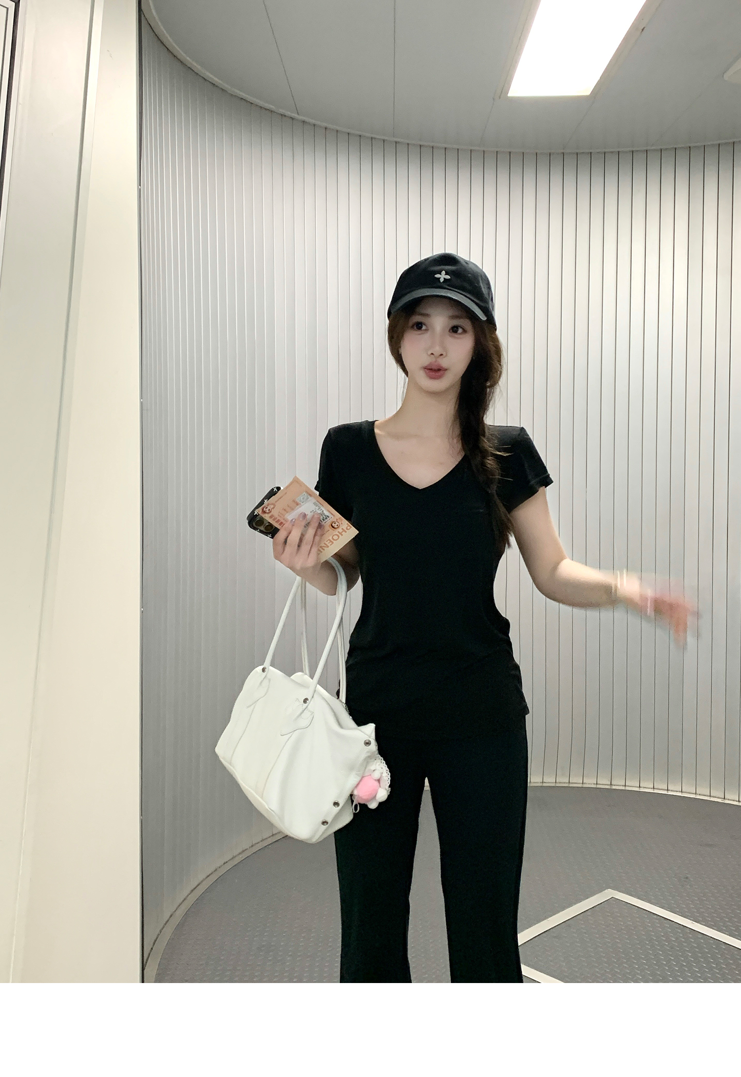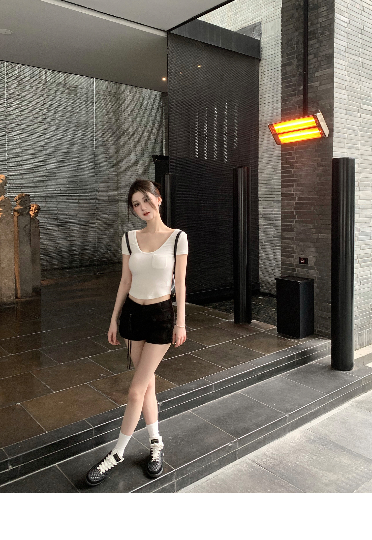 [Light Oxygen Mask Tee] Pure Desire U-Neck Short-Sleeve Slim Fit Top