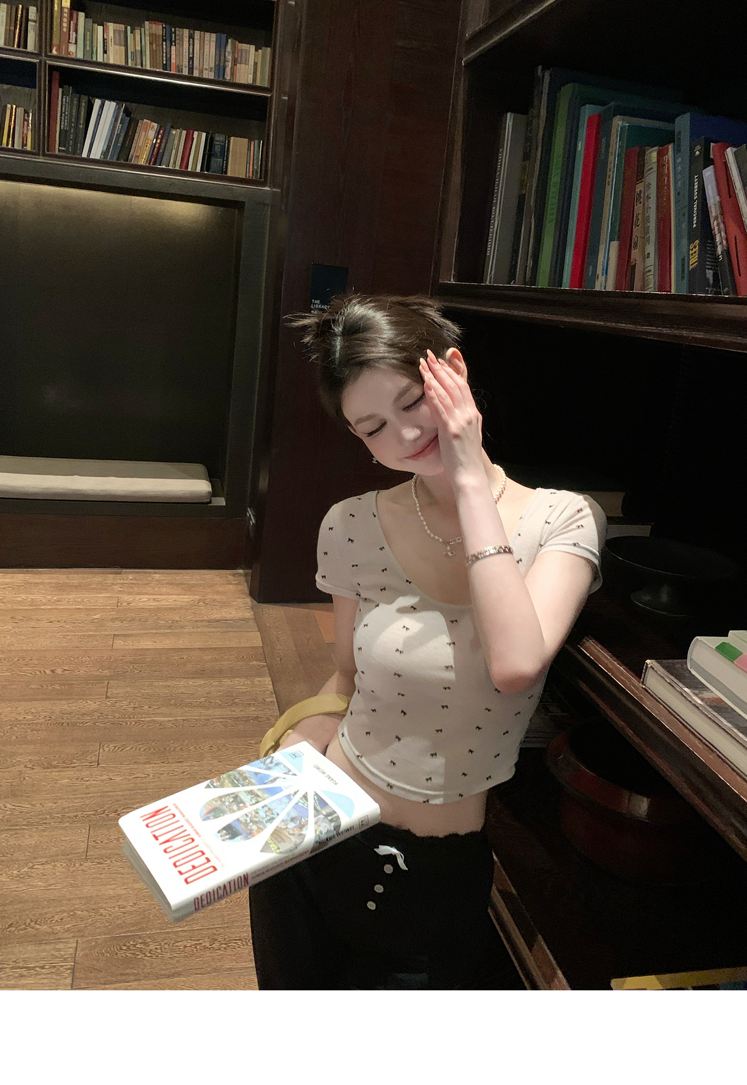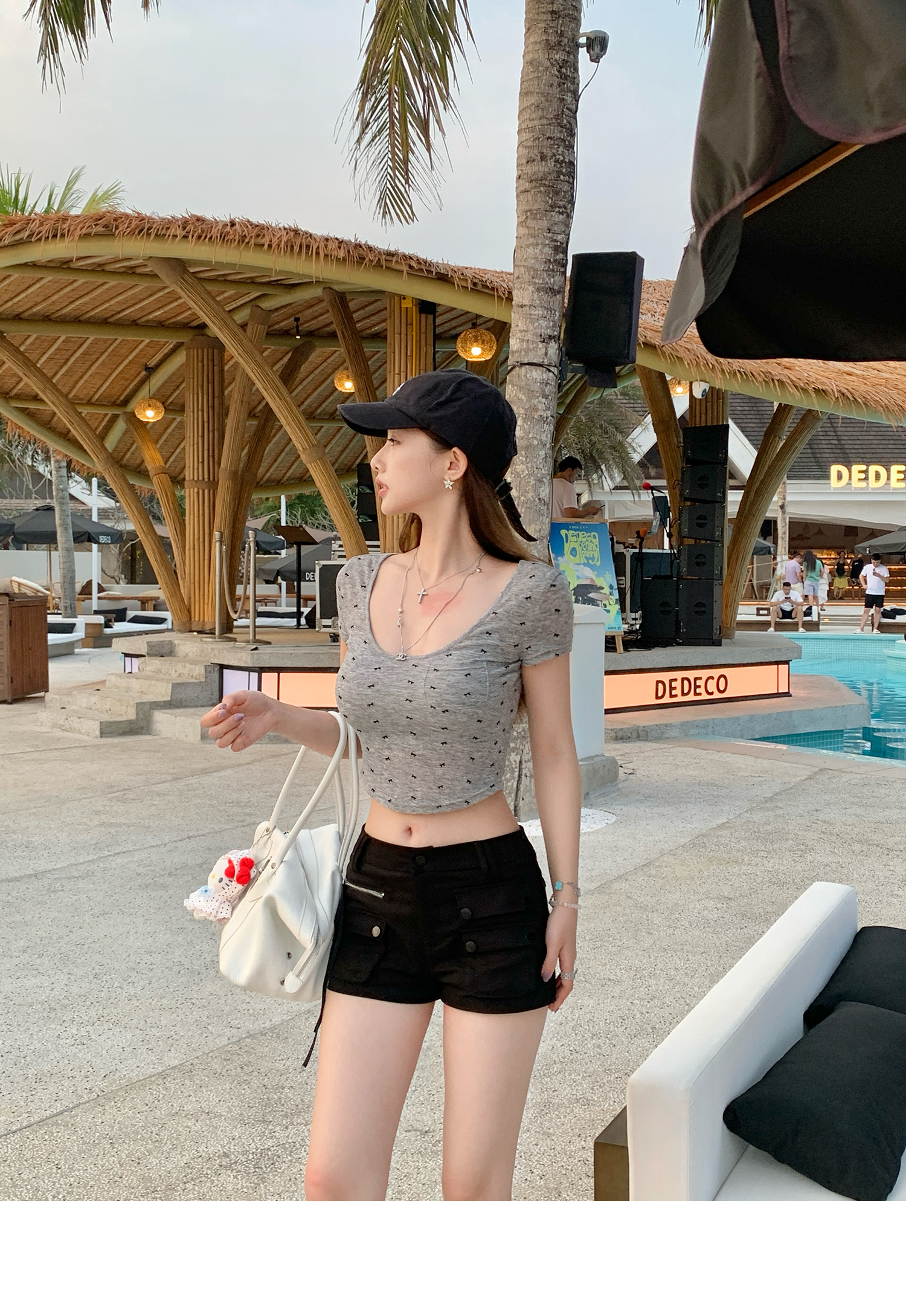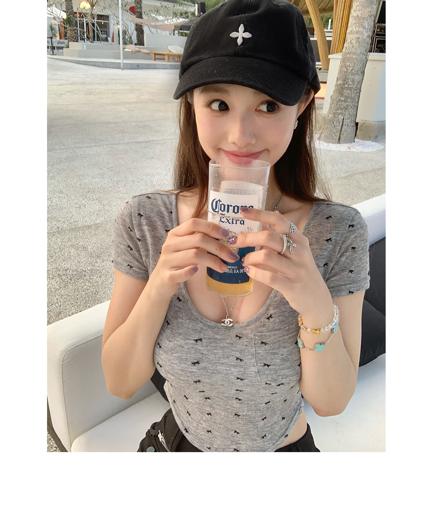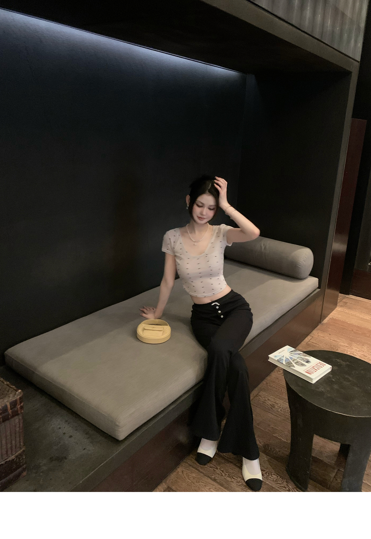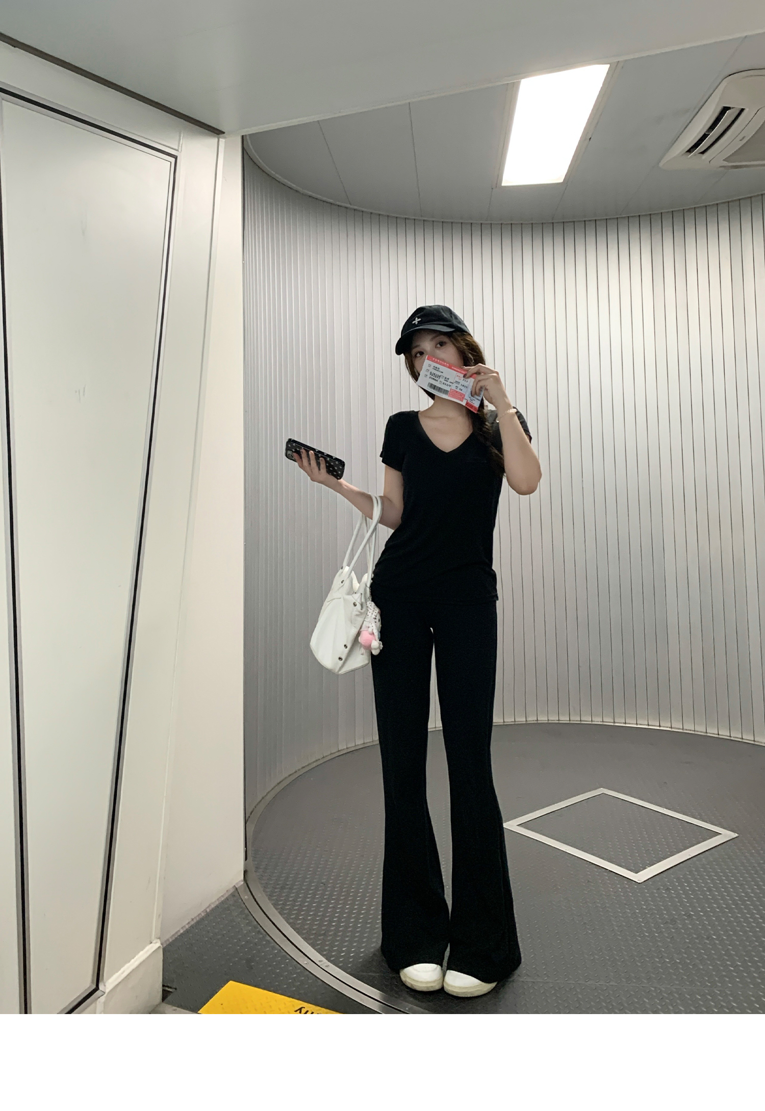 [Light Oxygen Mask Tee] Pure Desire U-Neck Short-Sleeve Slim Fit Top