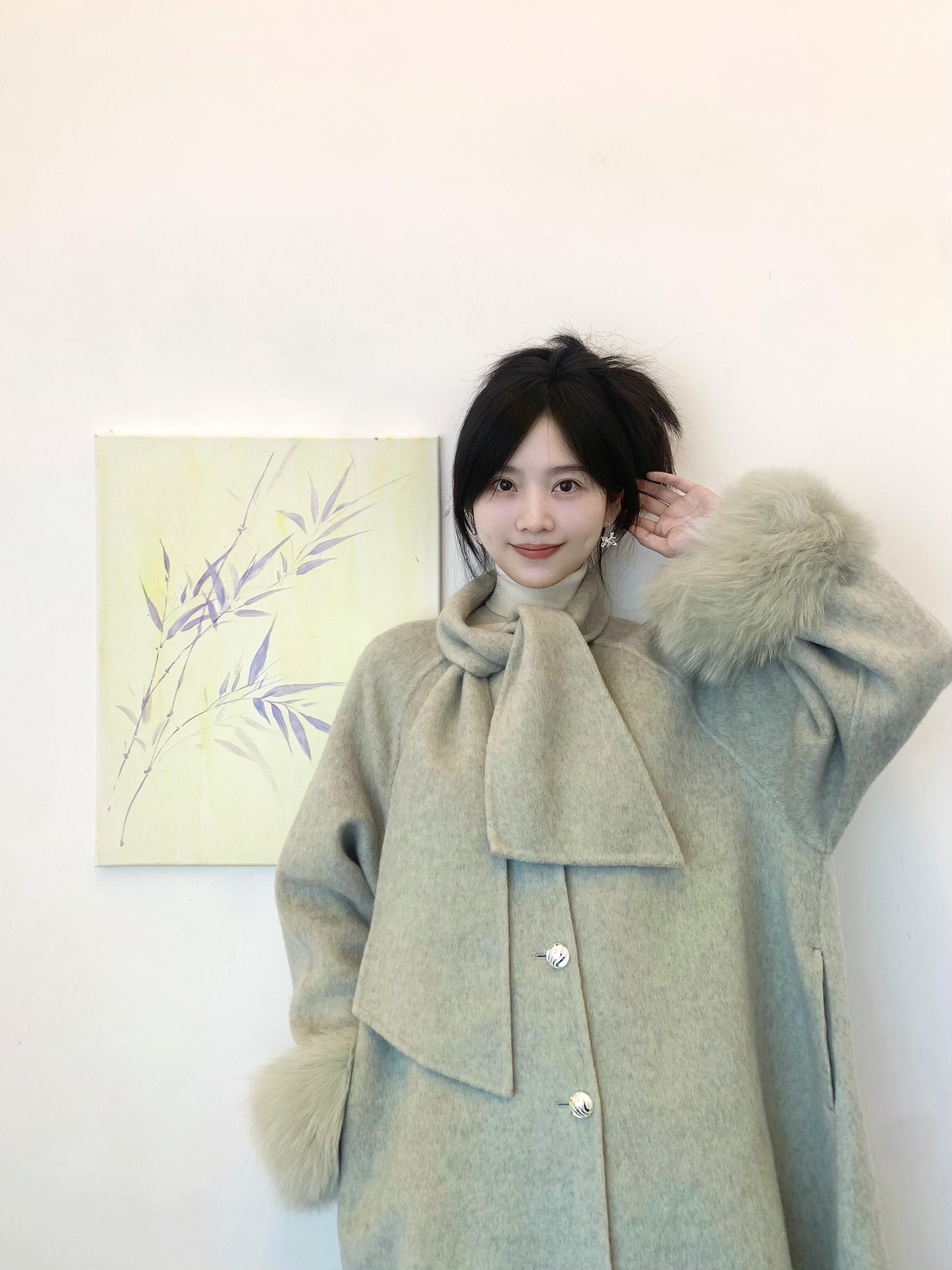 Elegant Cashmere Coat – Mid-Length Scarf Woolen Jacket