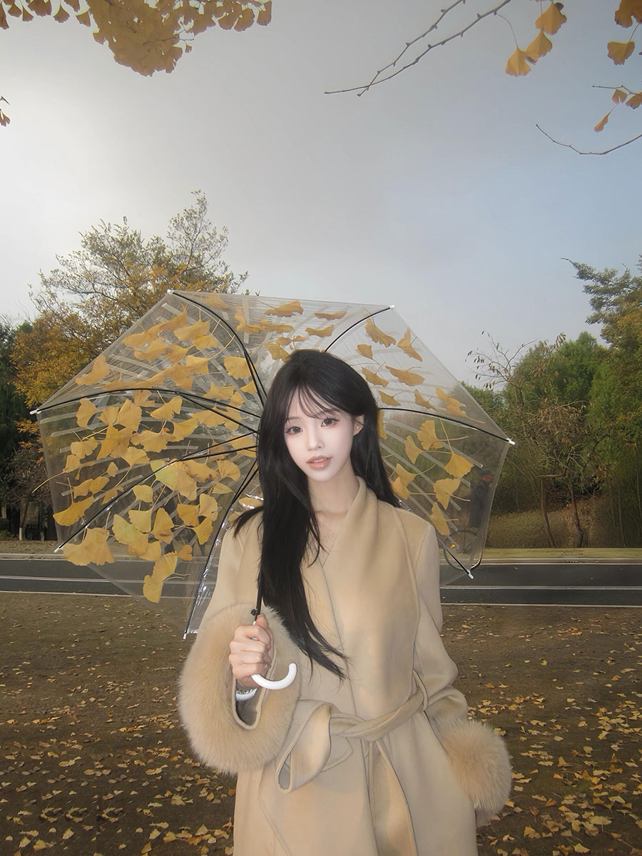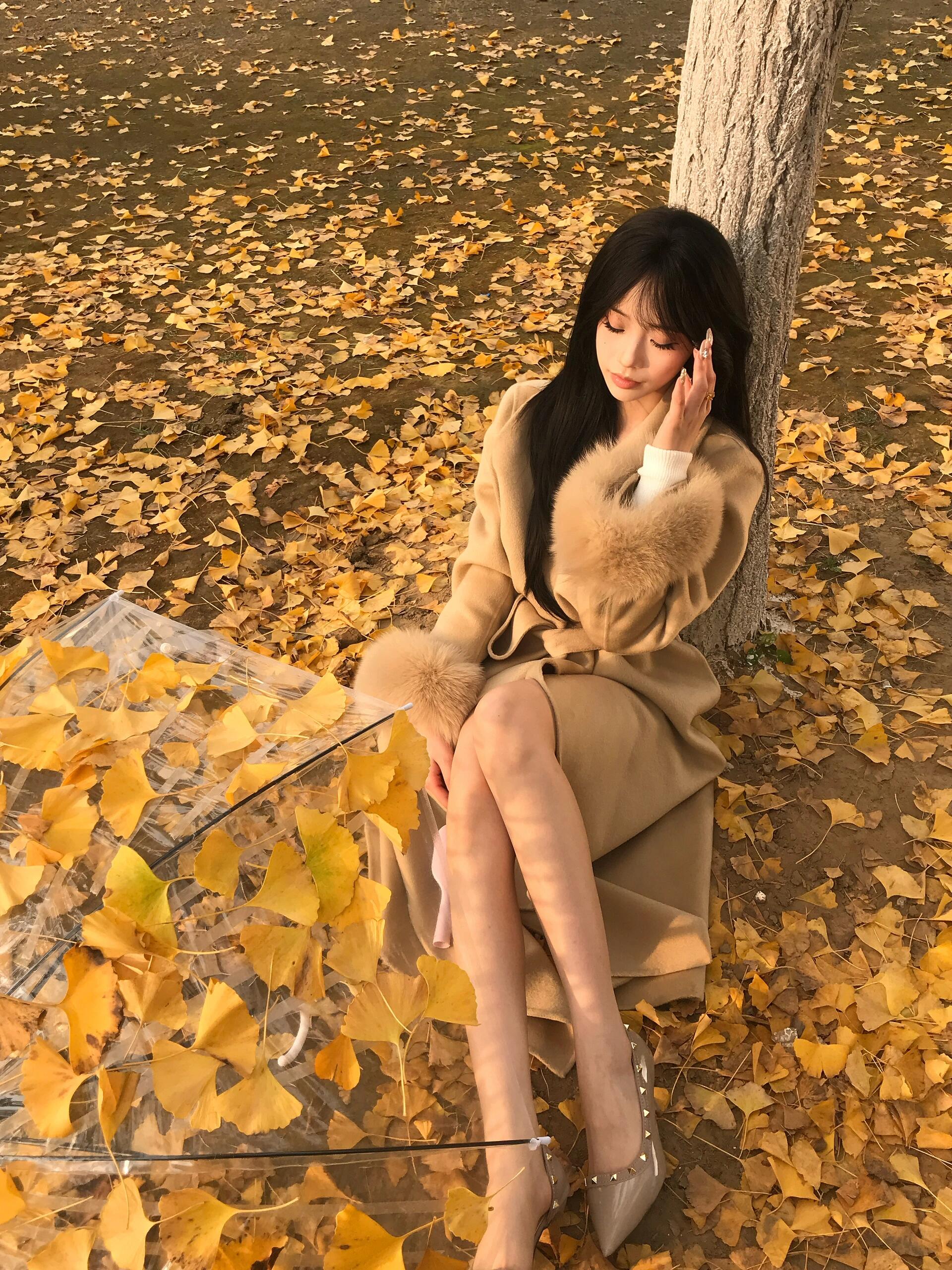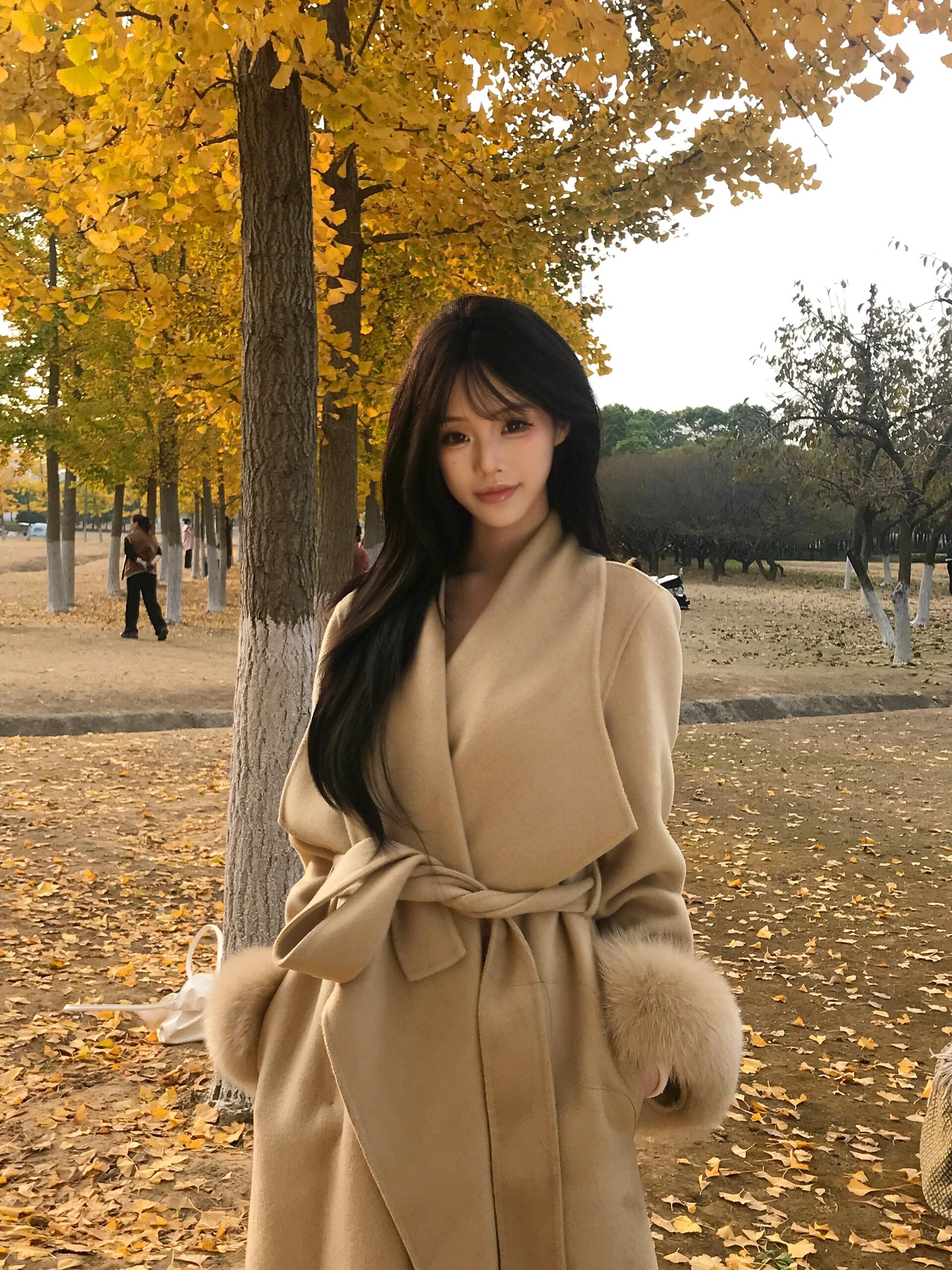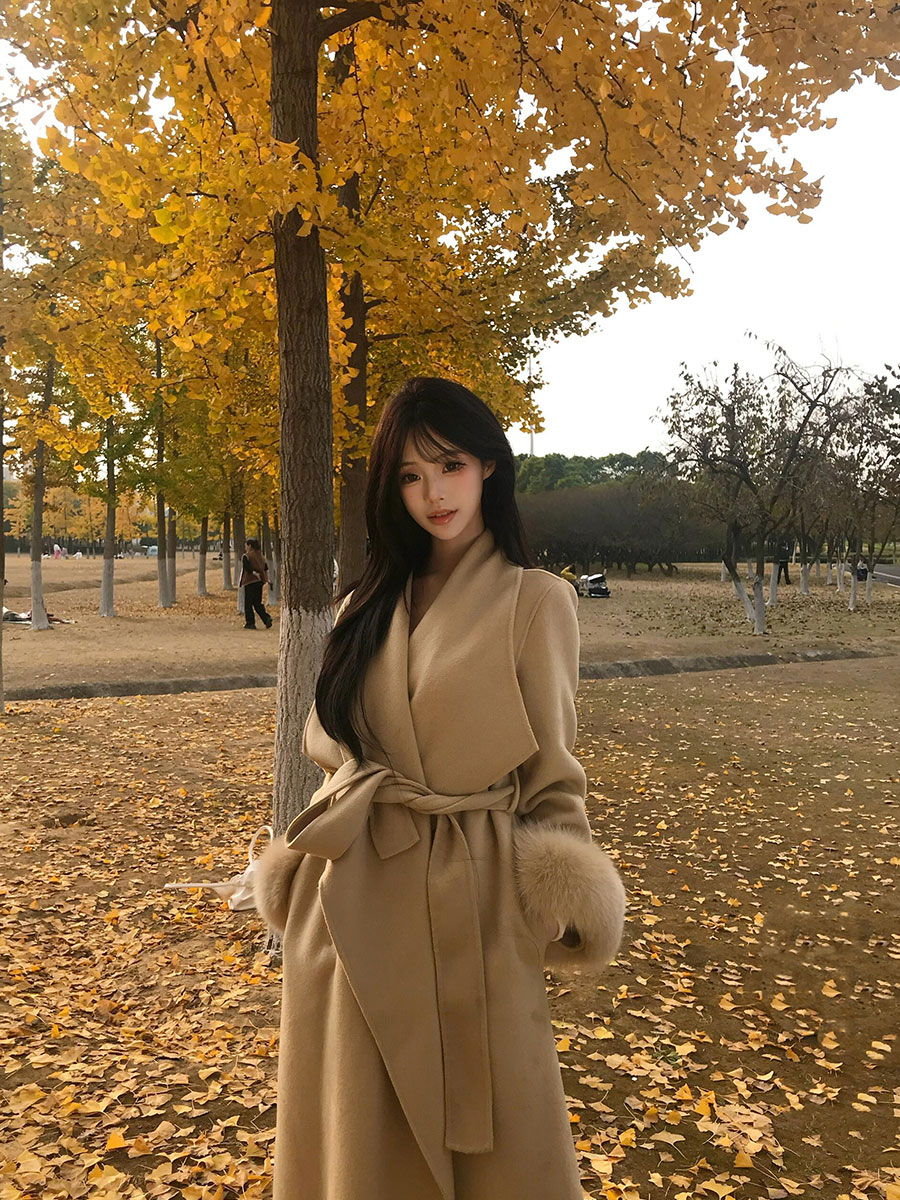 Golden Double-Faced Cashmere Coat – Winter Fox Fur Cuff Woolen Jacket